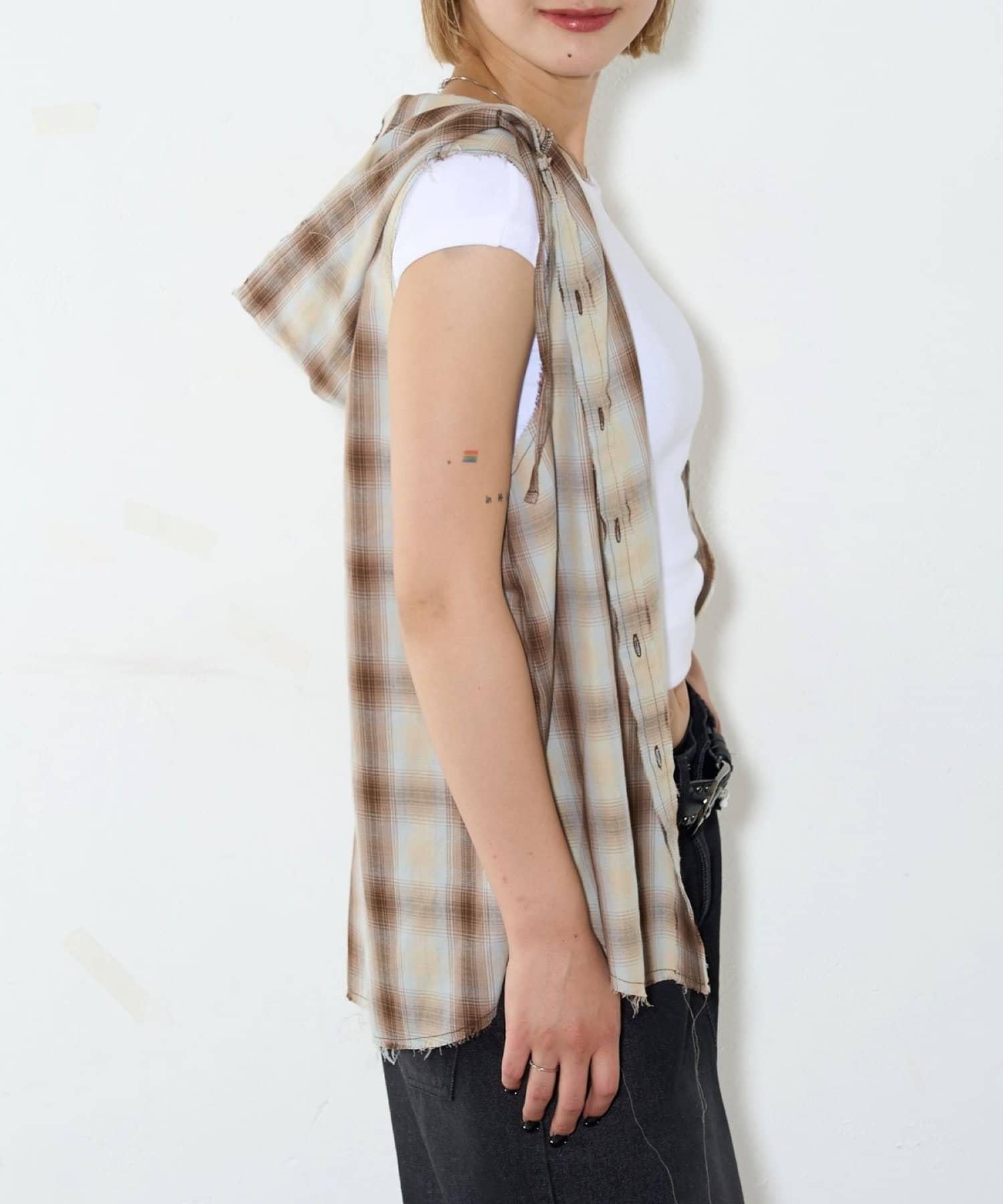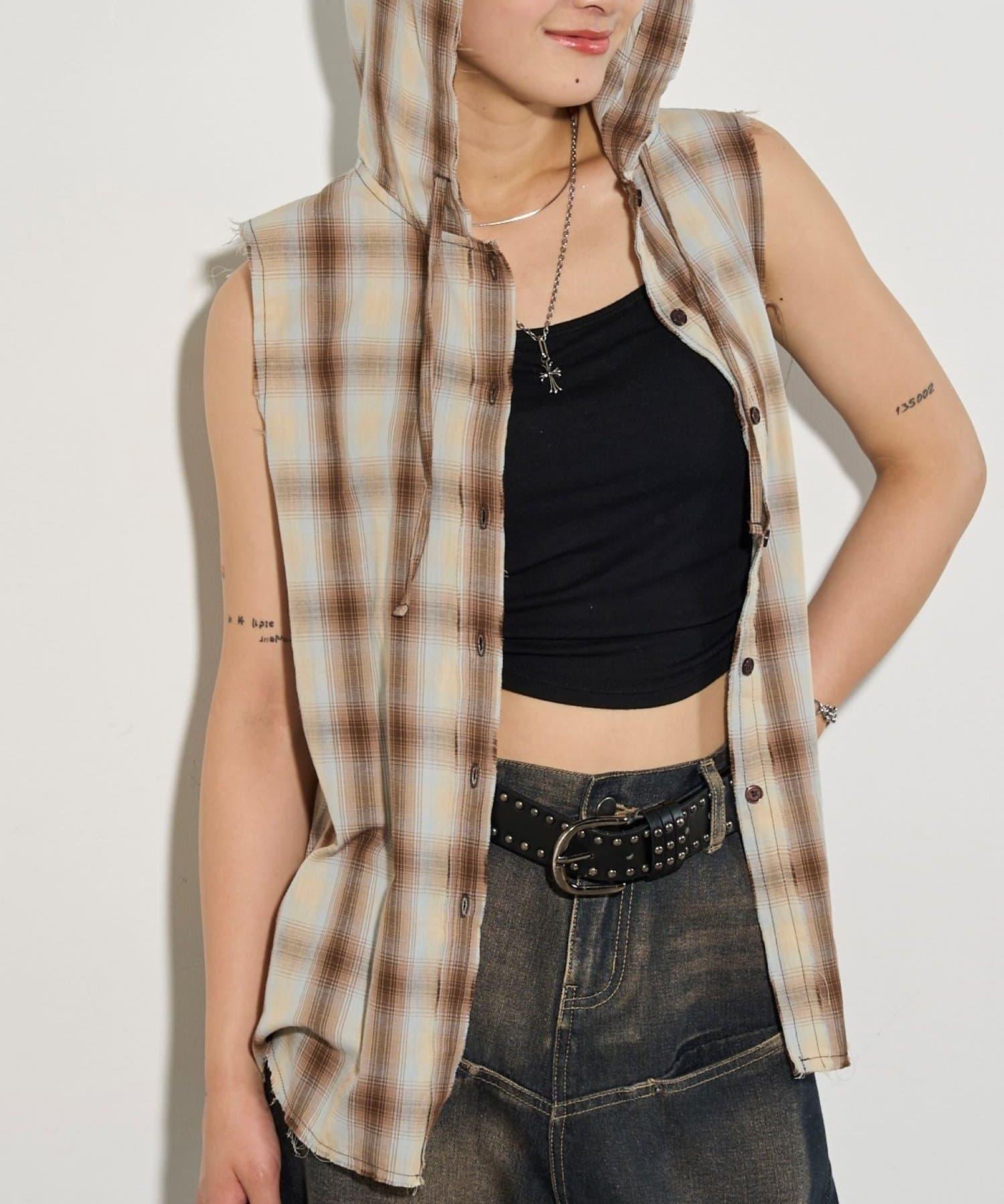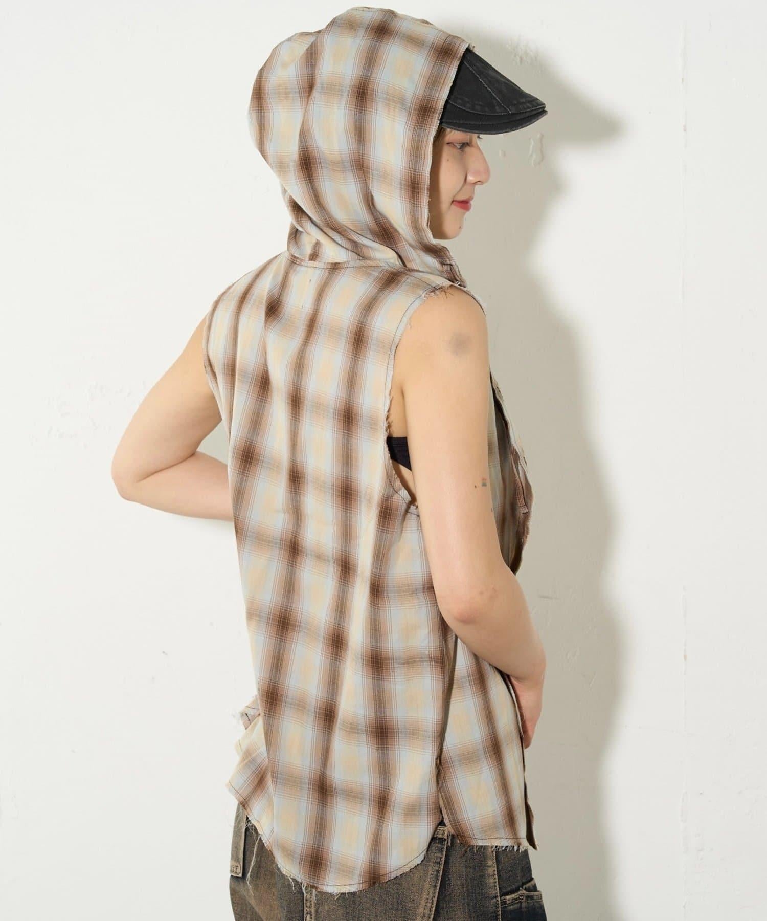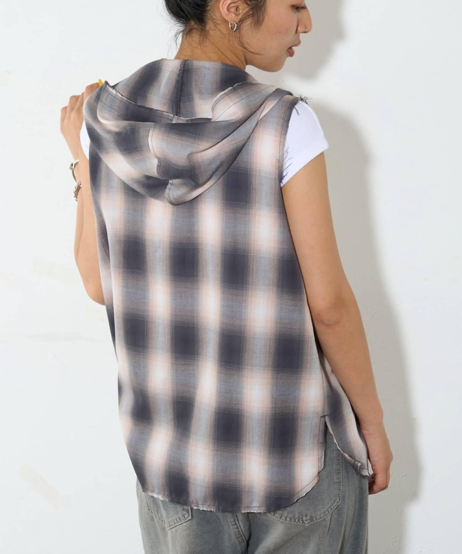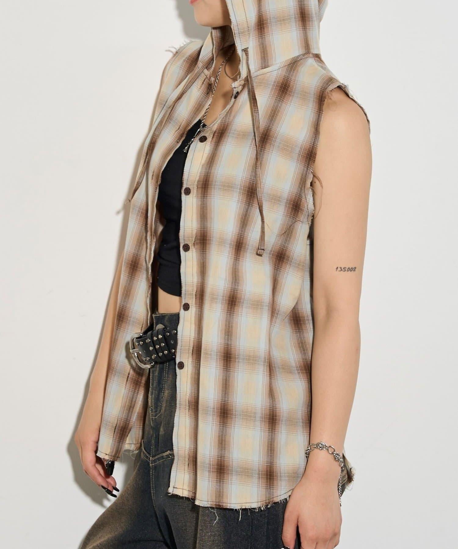 WHO'S WHO gallery 無袖格紋連帽襯衫