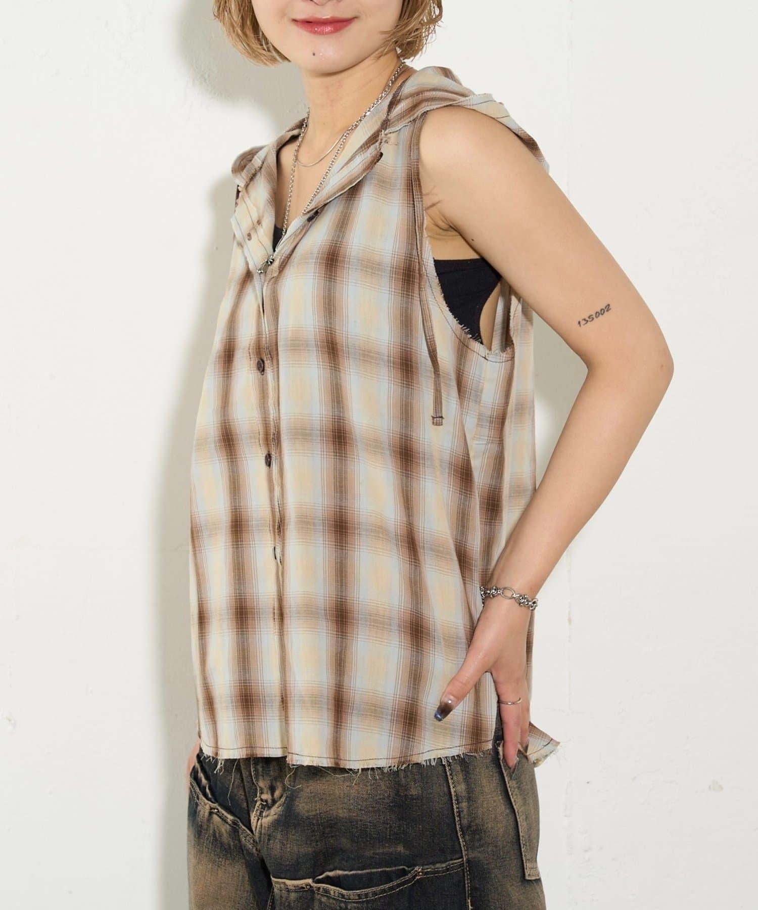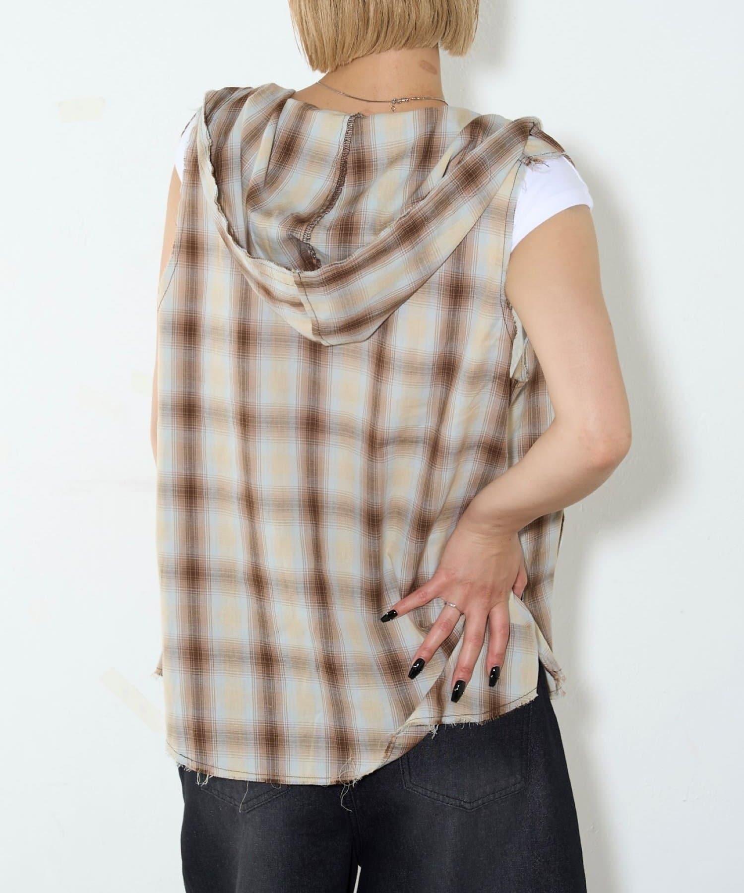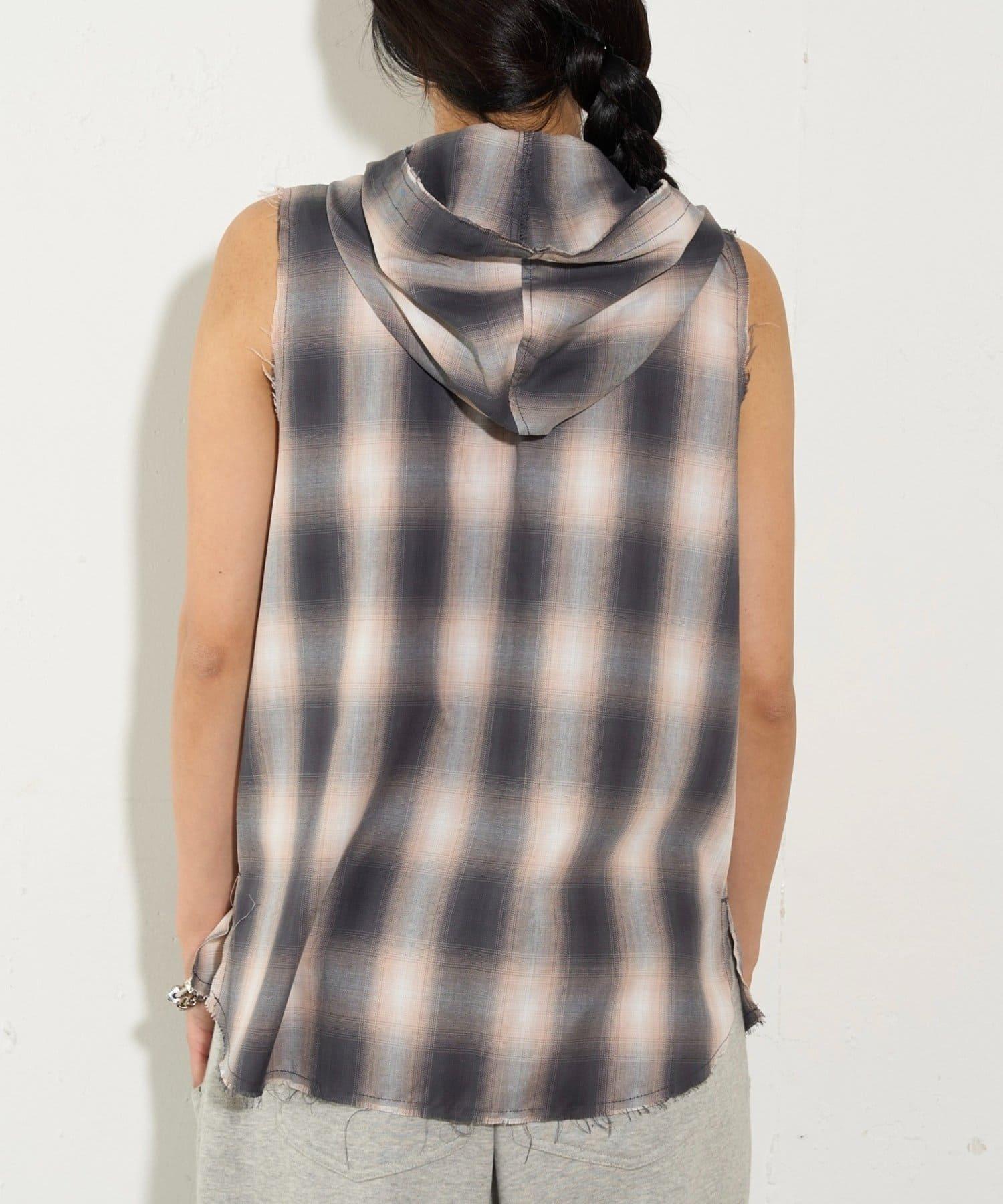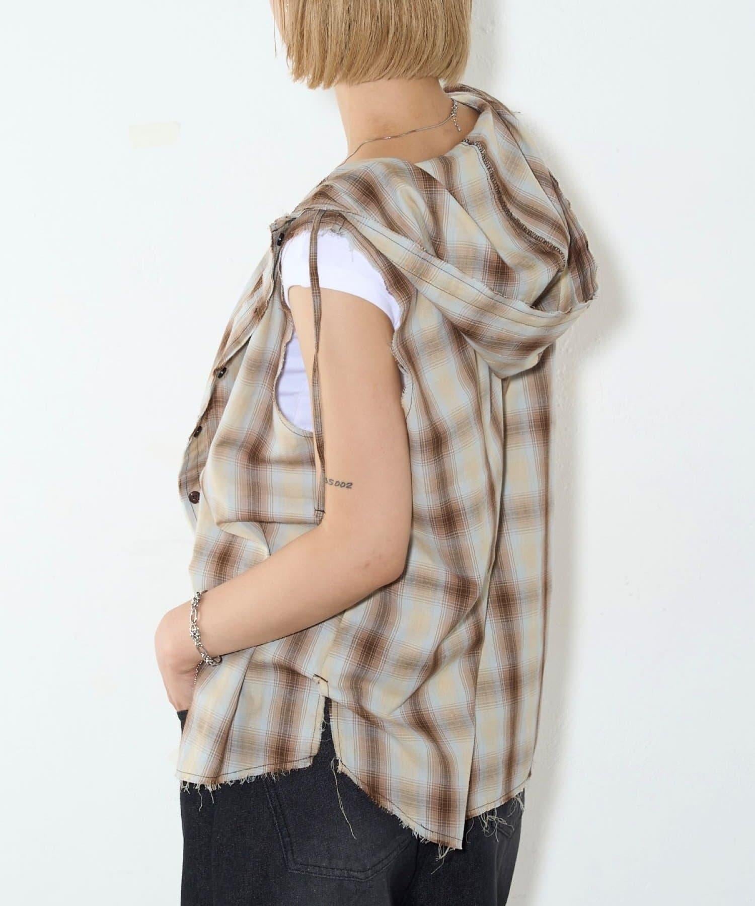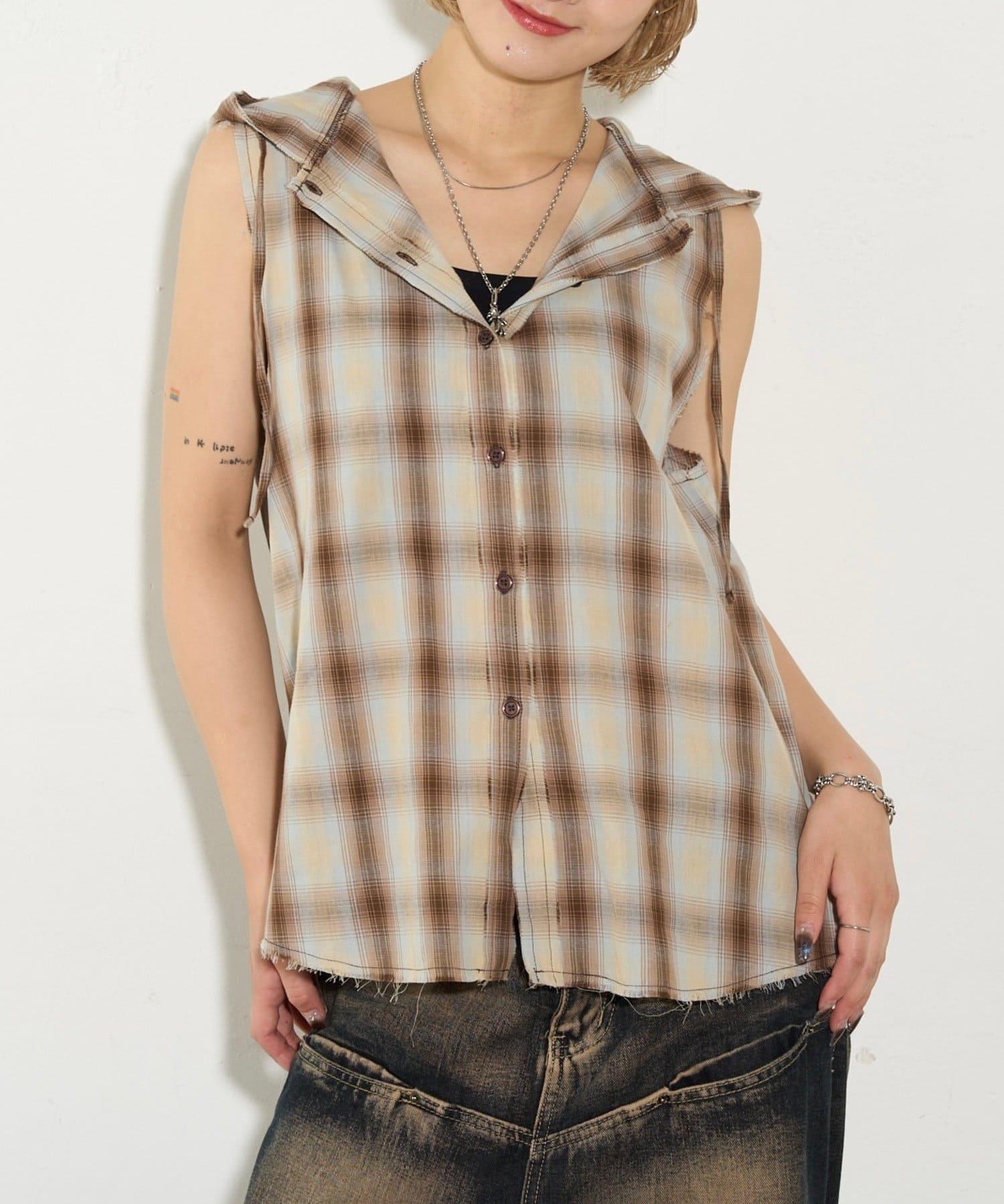 WHO'S WHO gallery 無袖格紋連帽襯衫