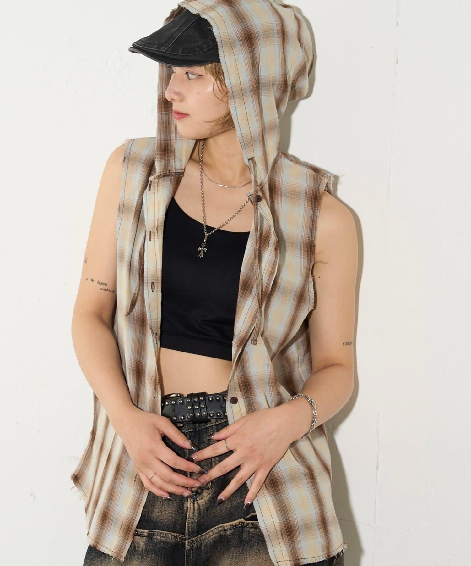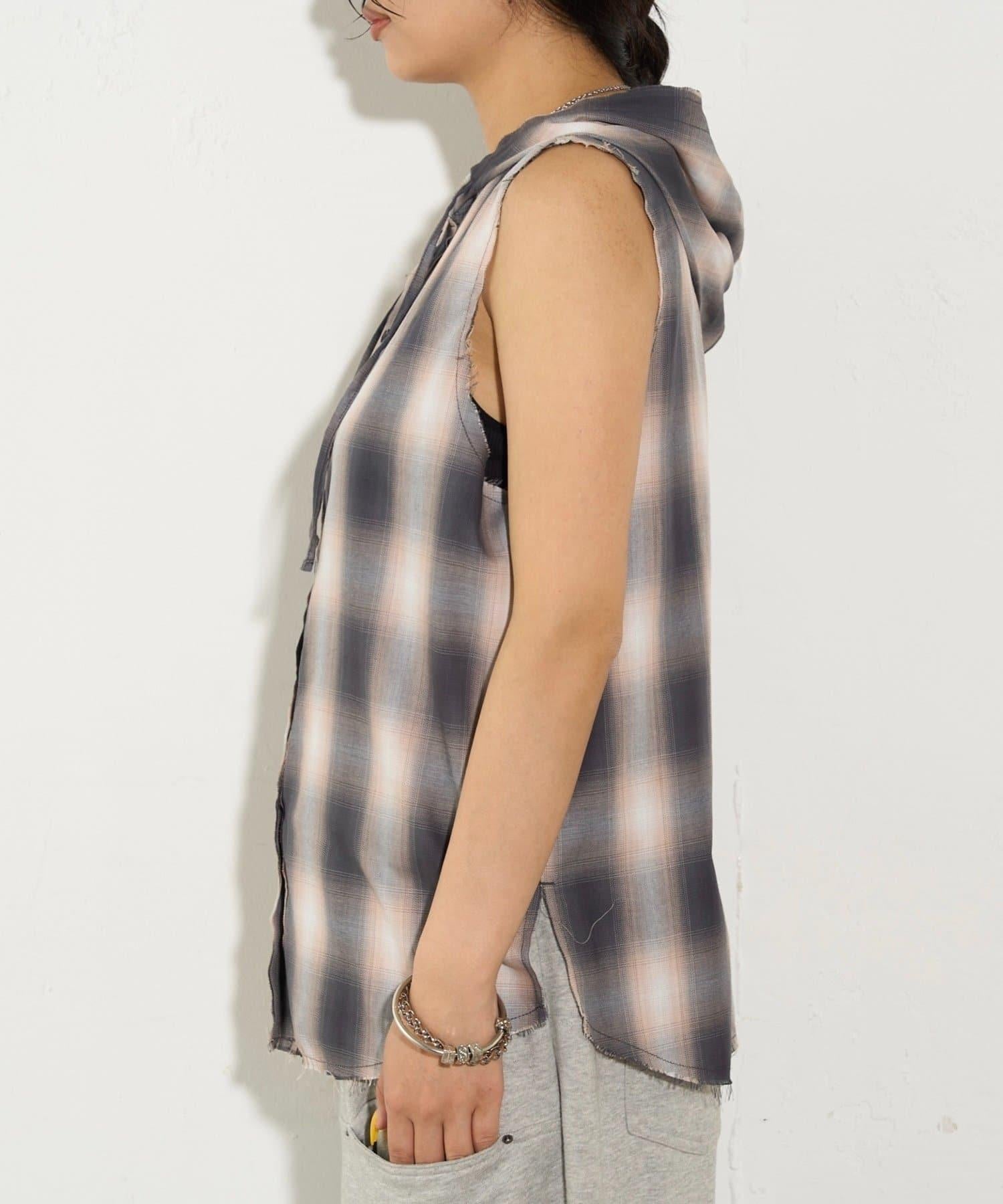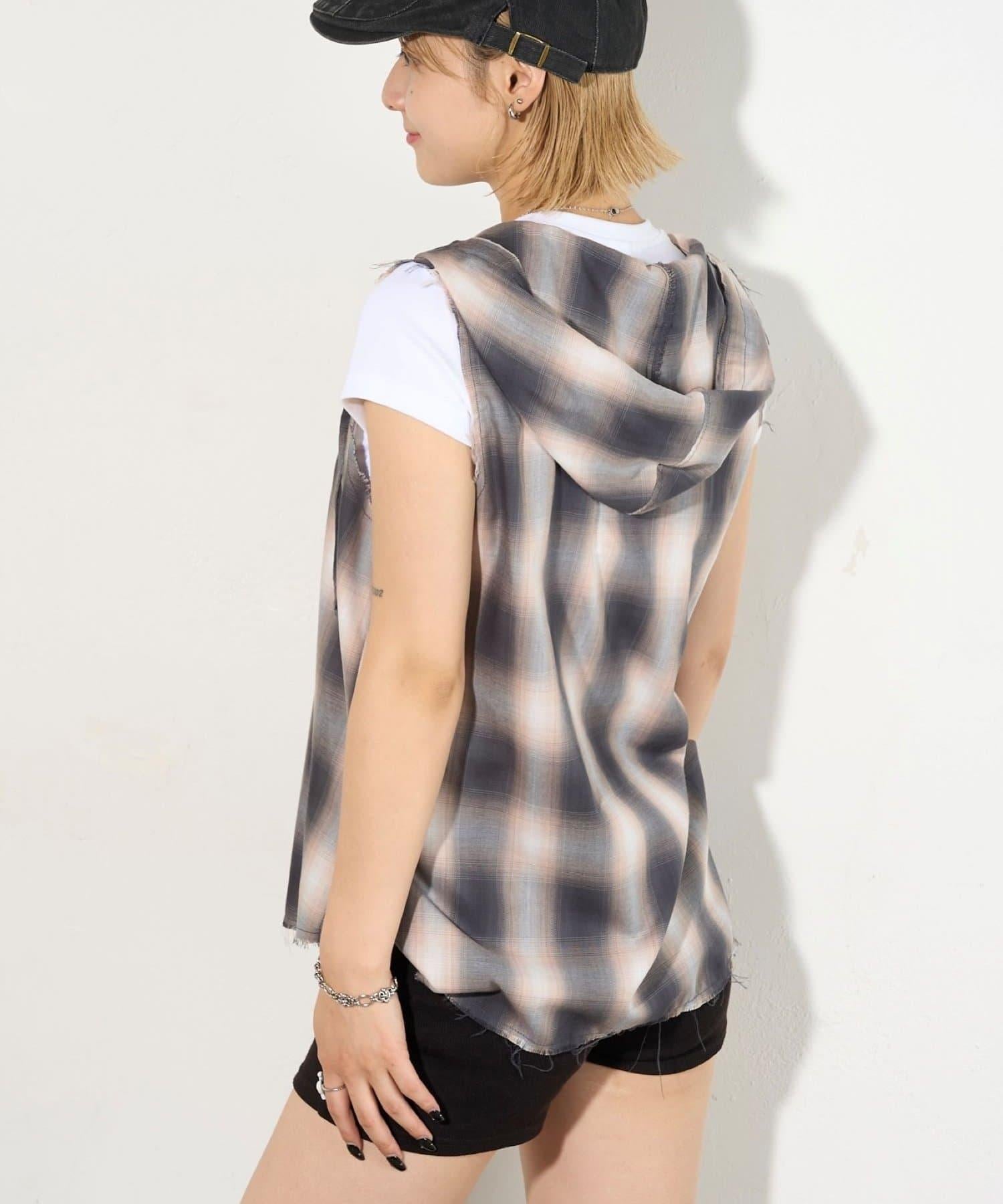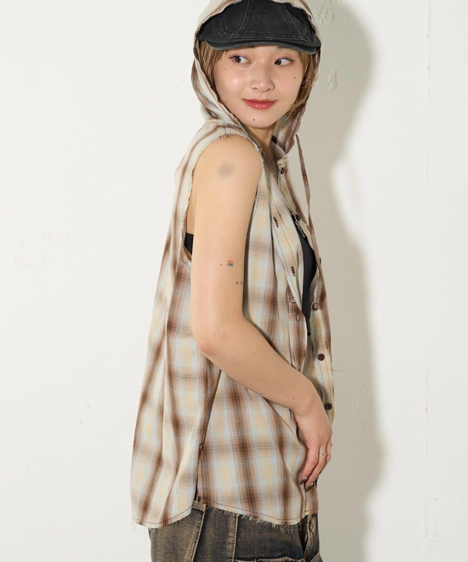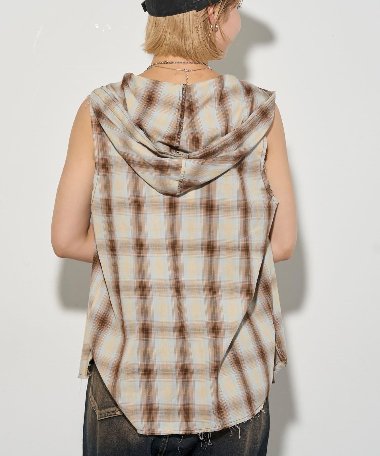 WHO'S WHO gallery 無袖格紋連帽襯衫