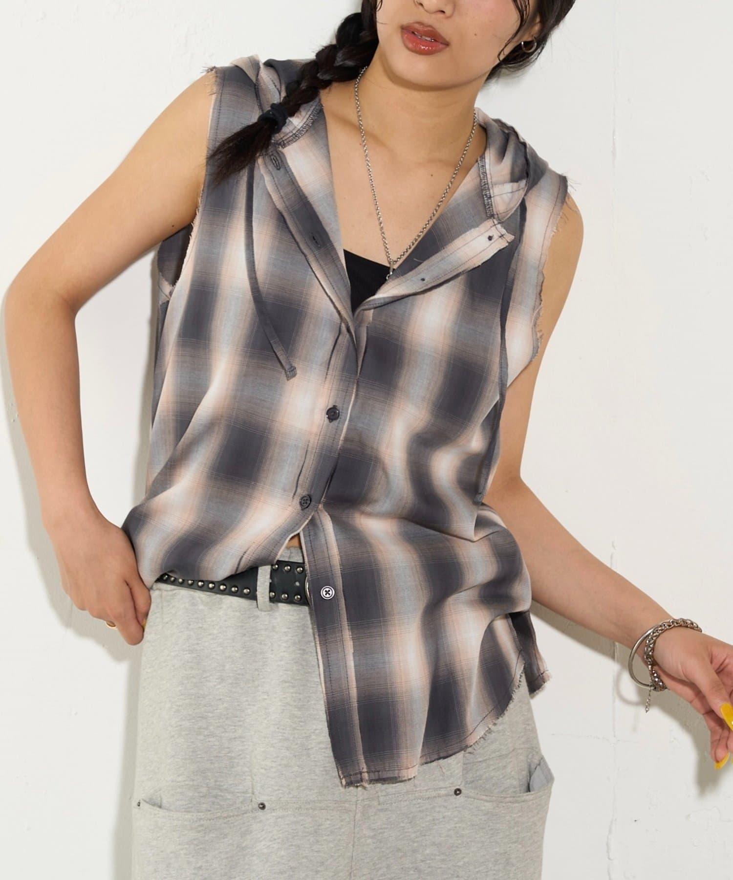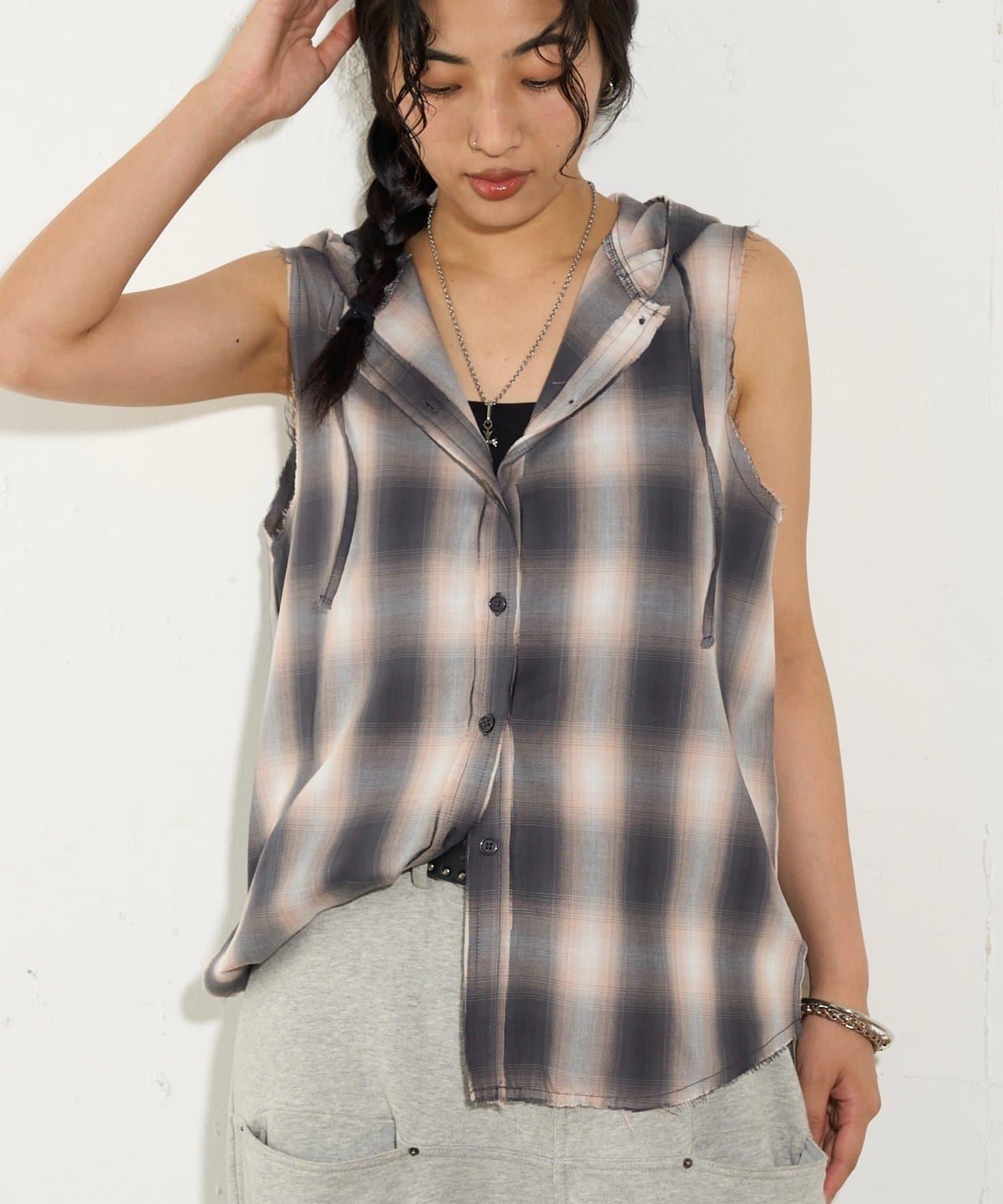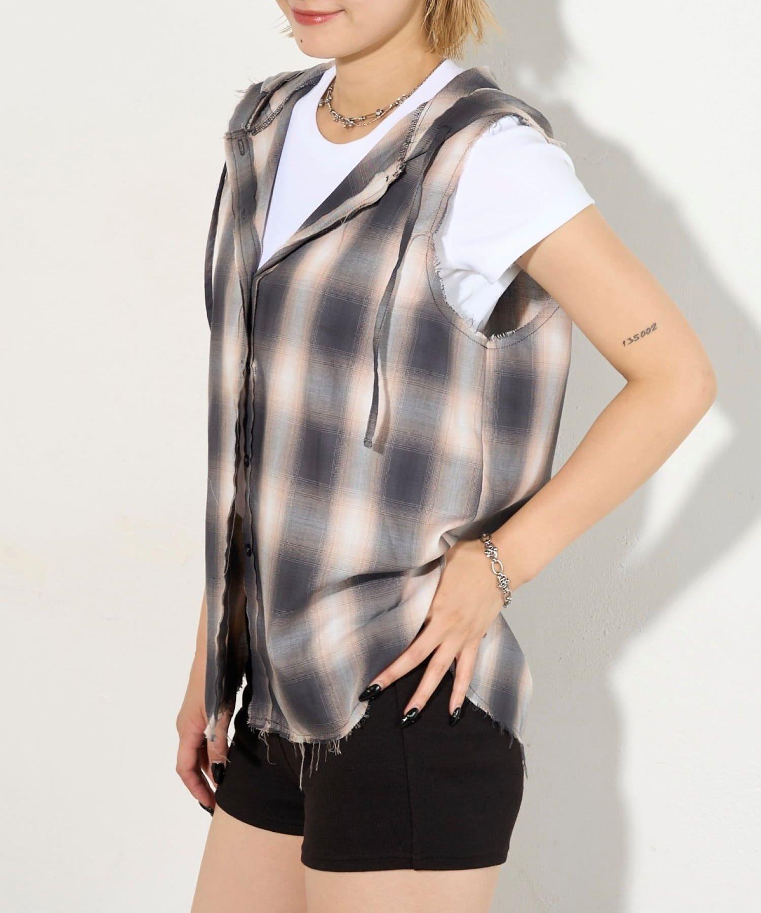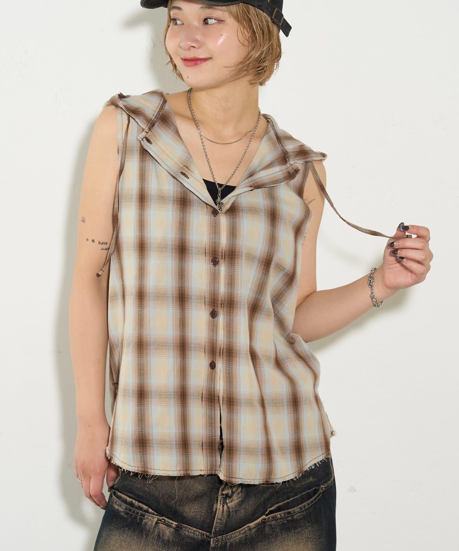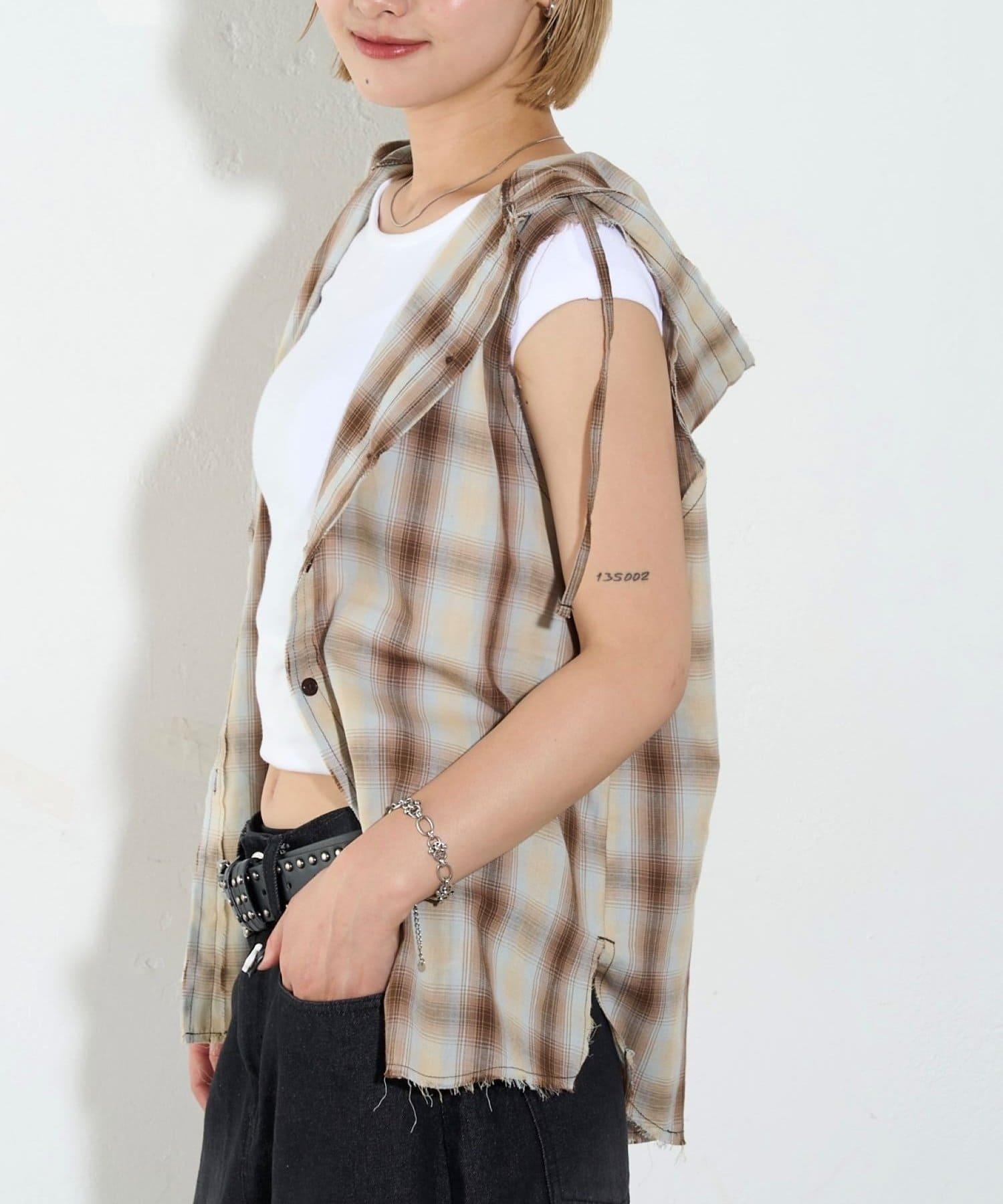 WHO'S WHO gallery 無袖格紋連帽襯衫