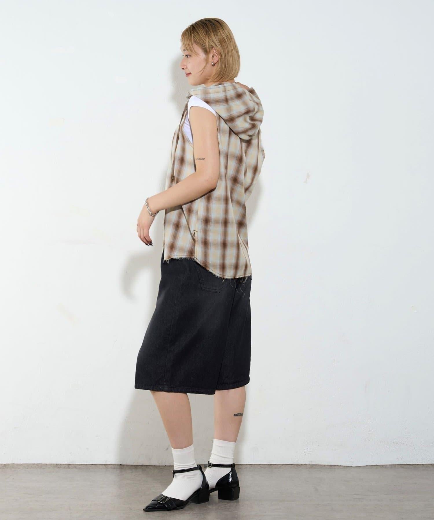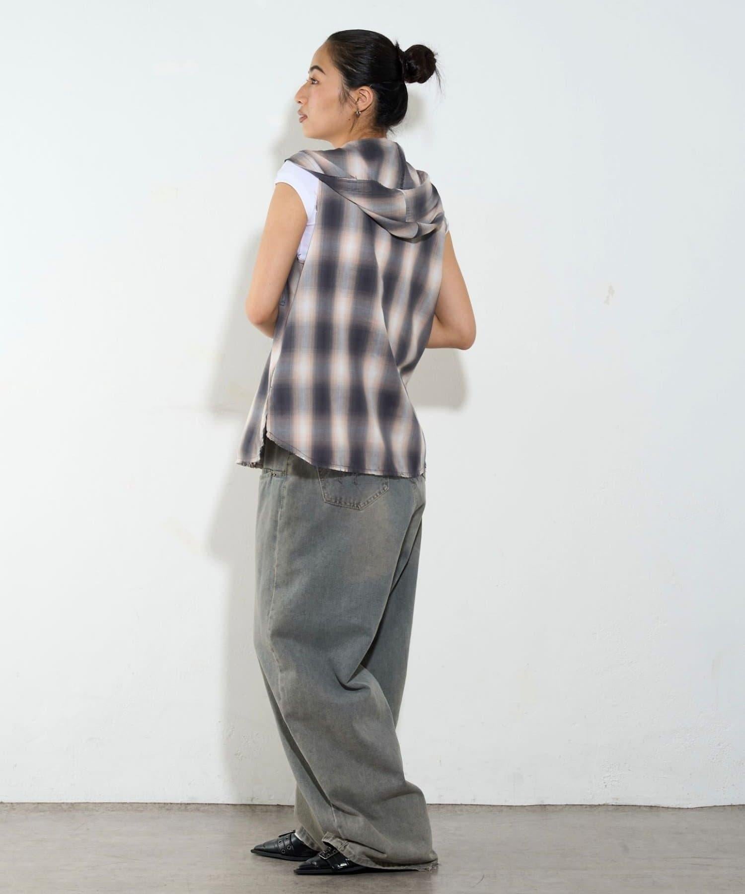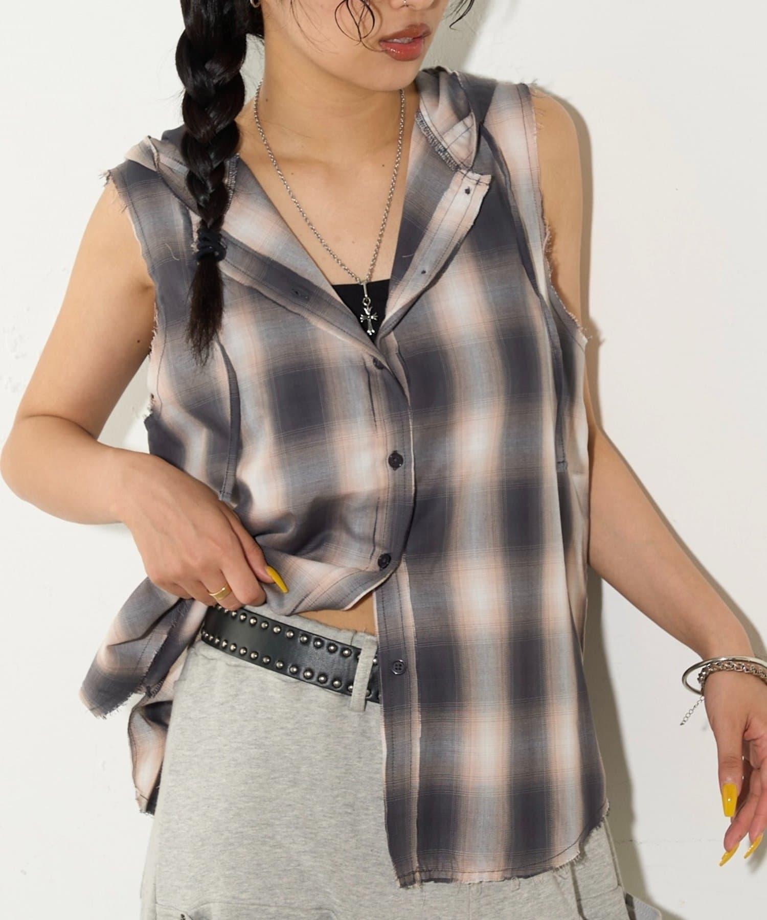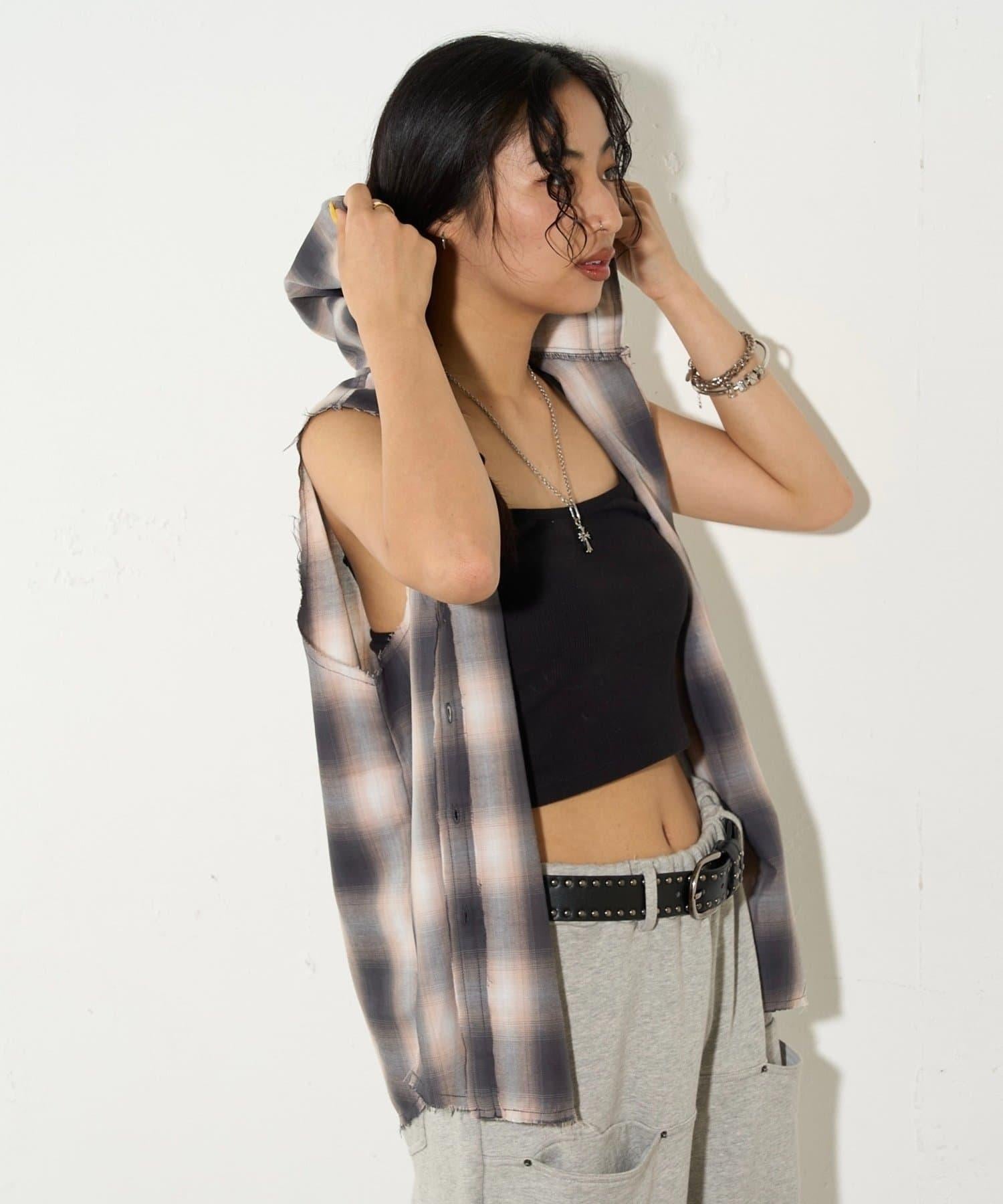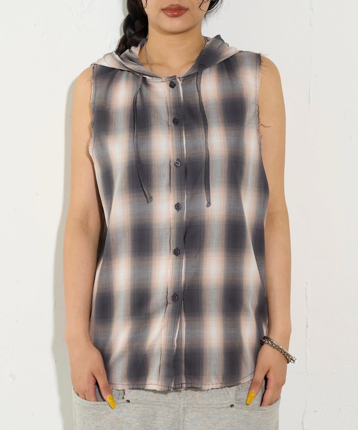 WHO'S WHO gallery 無袖格紋連帽襯衫