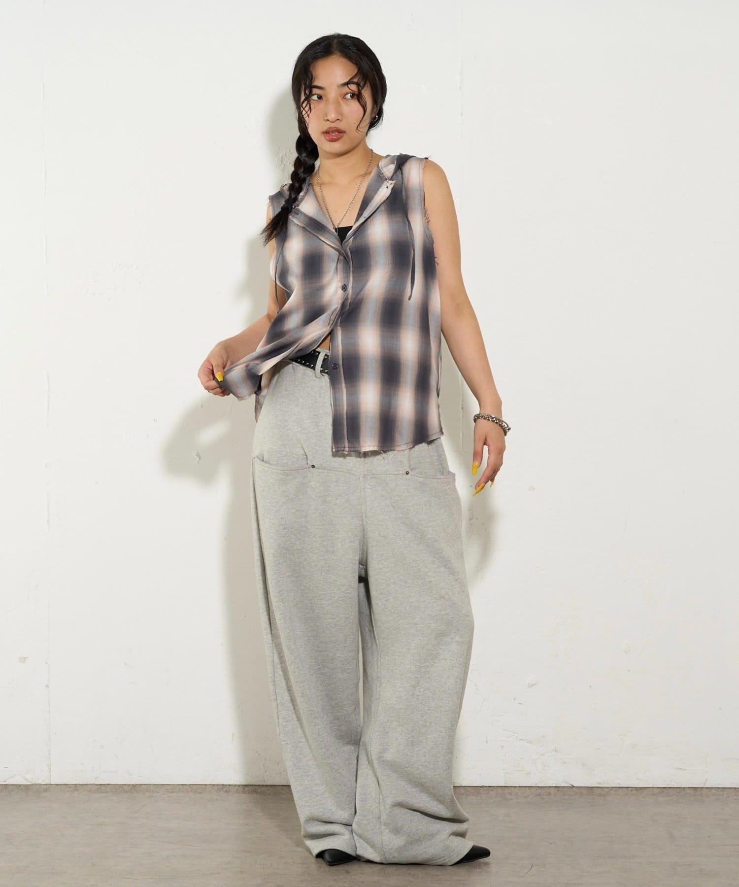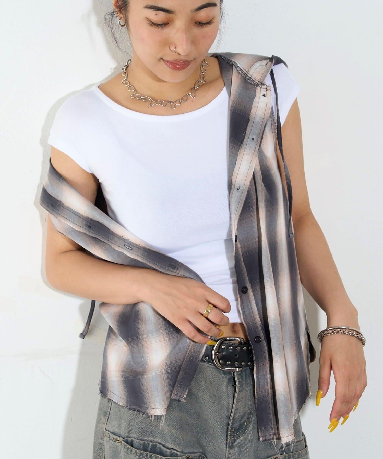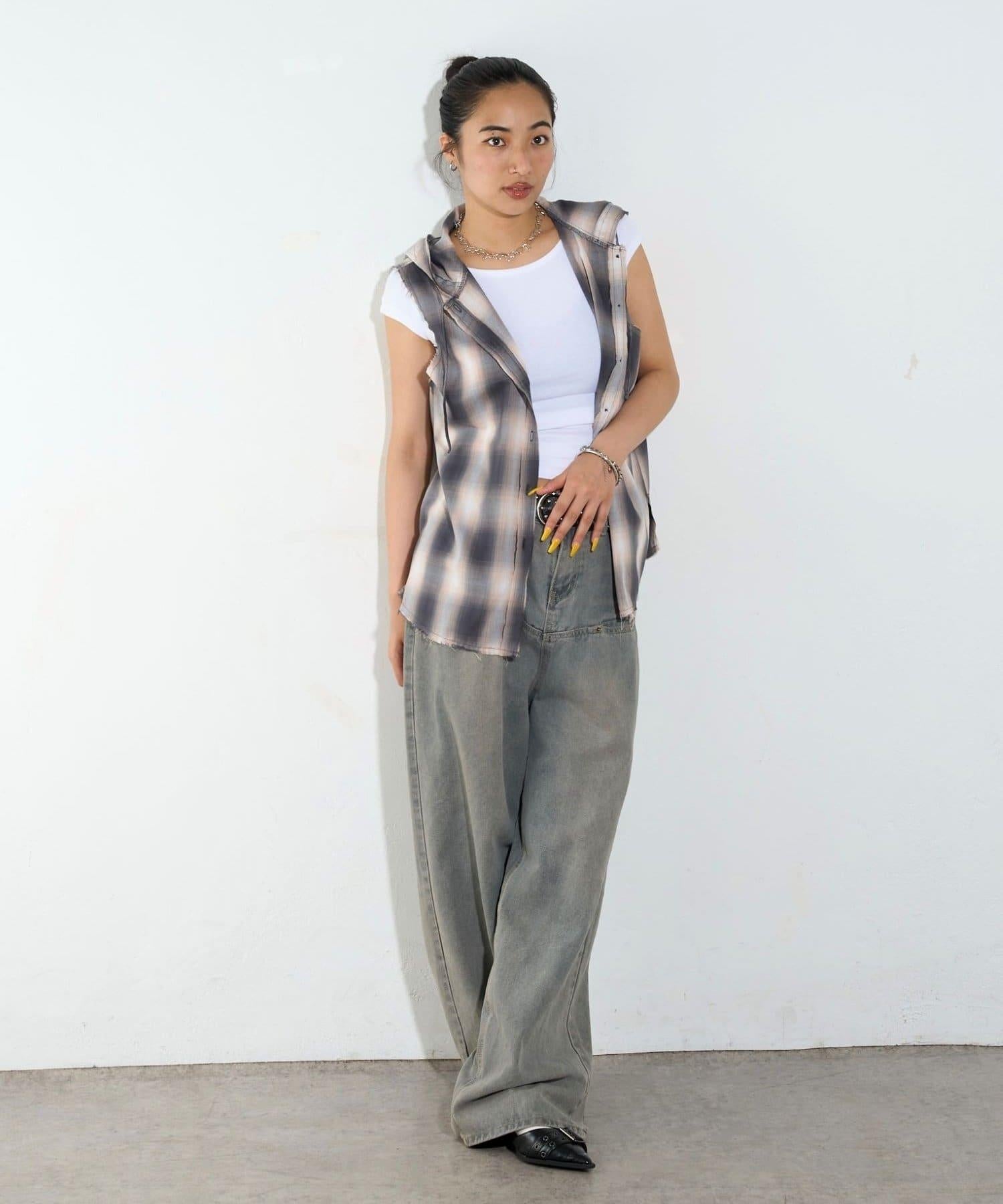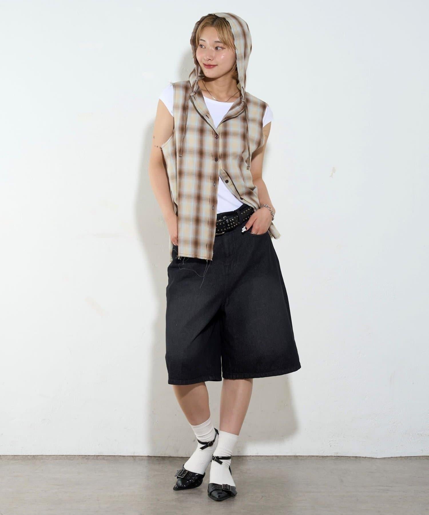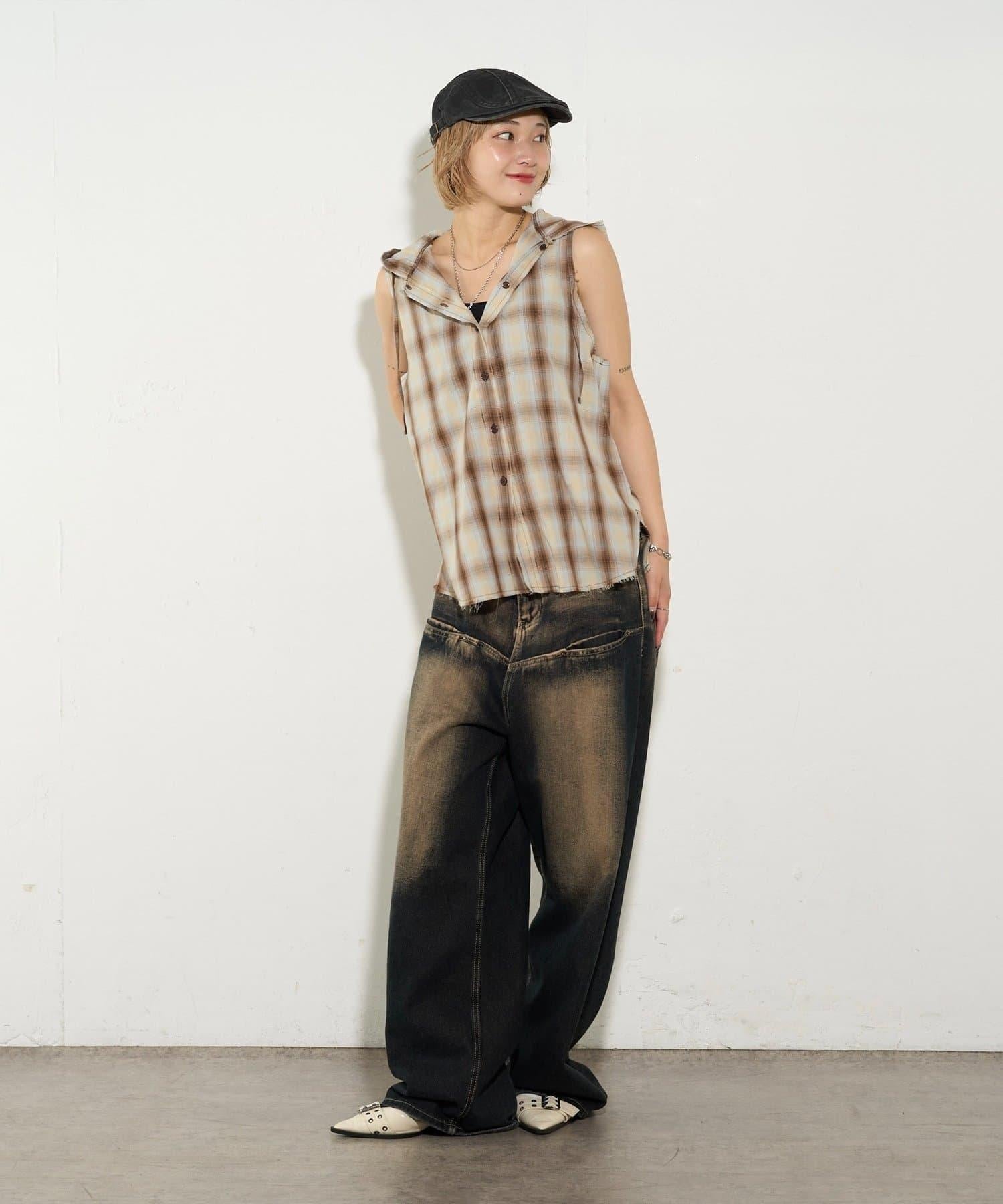 WHO'S WHO gallery 無袖格紋連帽襯衫