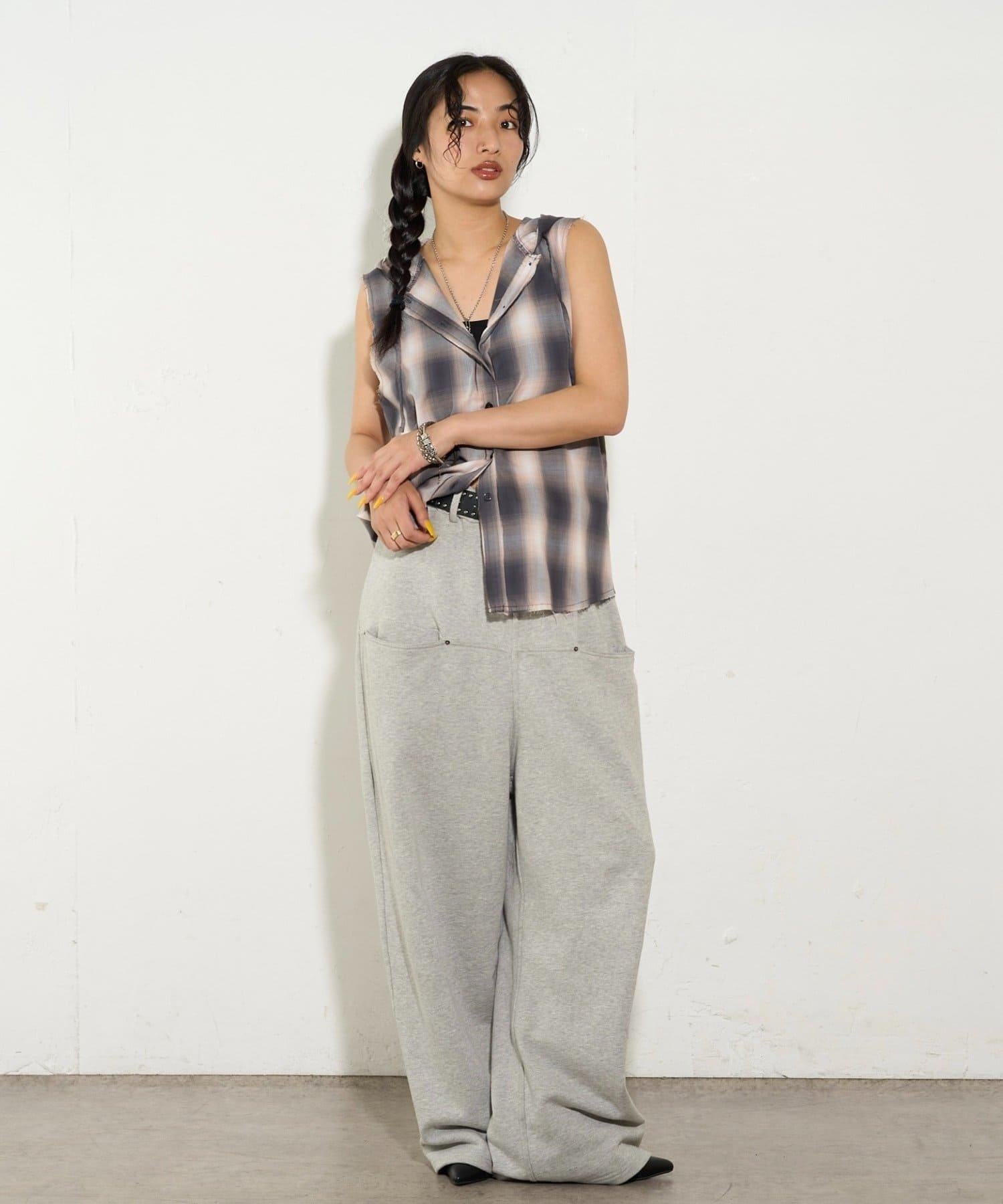 →運動衫和格紋圖案是絕佳的搭配,由於是無袖設計,在炎熱的季節也能輕鬆穿著。