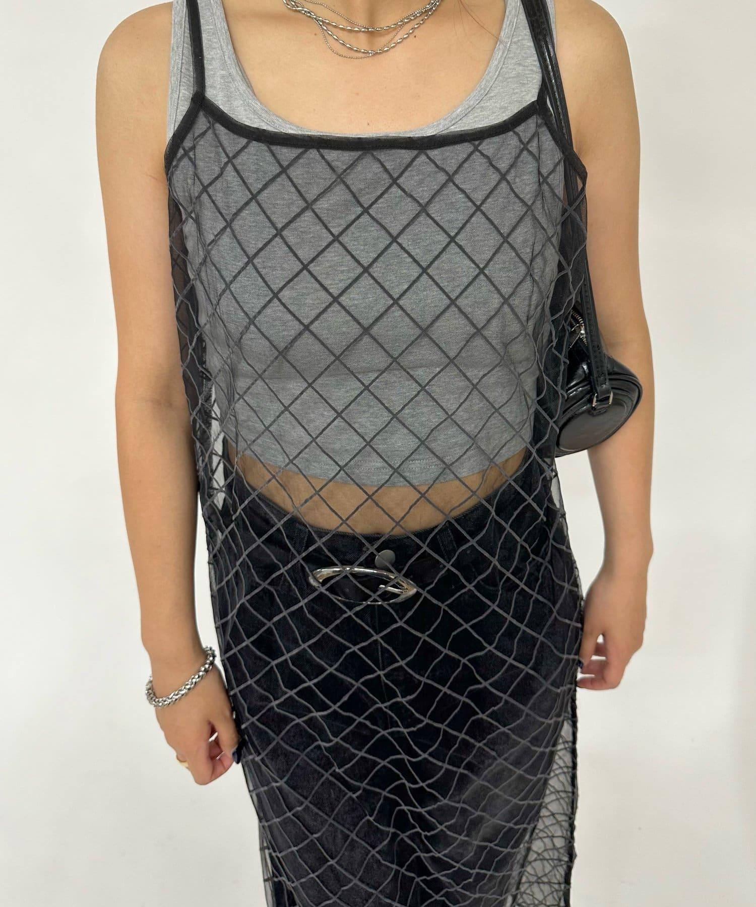 輕薄的透視面料既可作為單件內搭,也可作為疊穿款式外搭上衣。