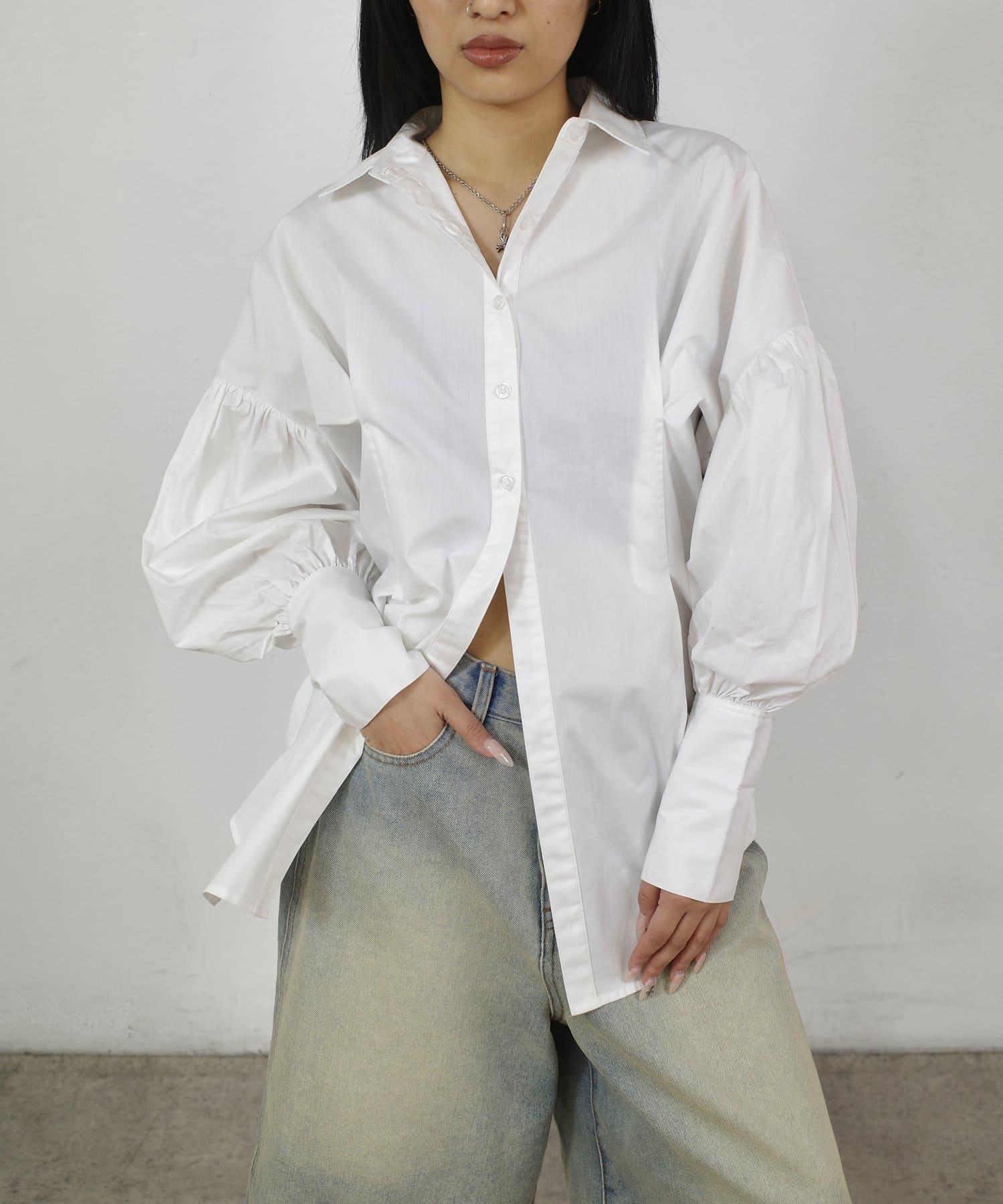 通過收緊褶皺可以改變襯衫的形狀,是一件可以根據心情穿著的百搭襯衫。