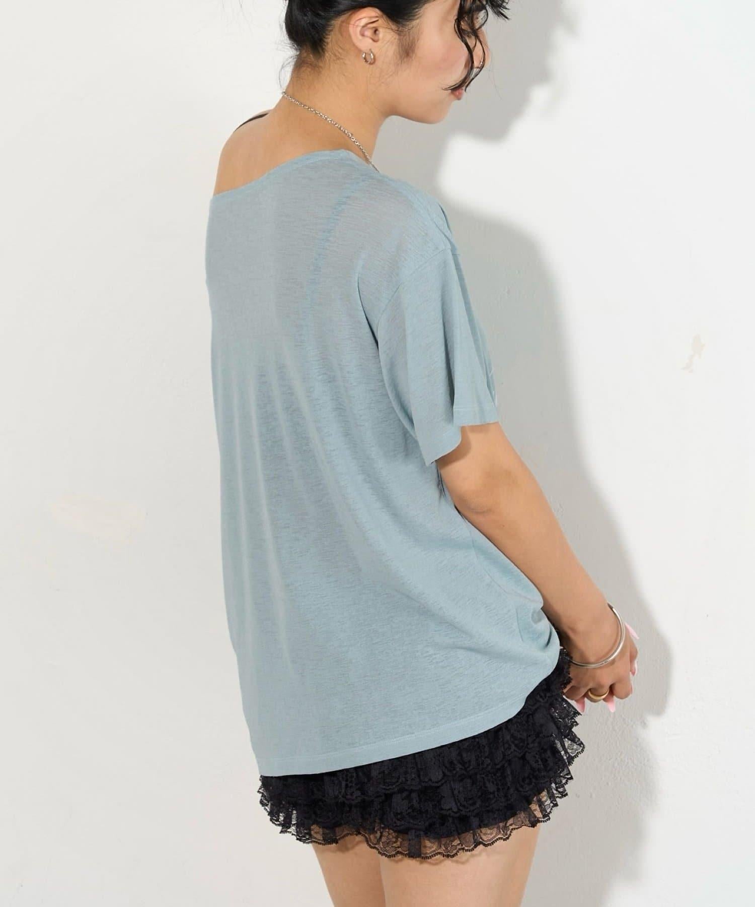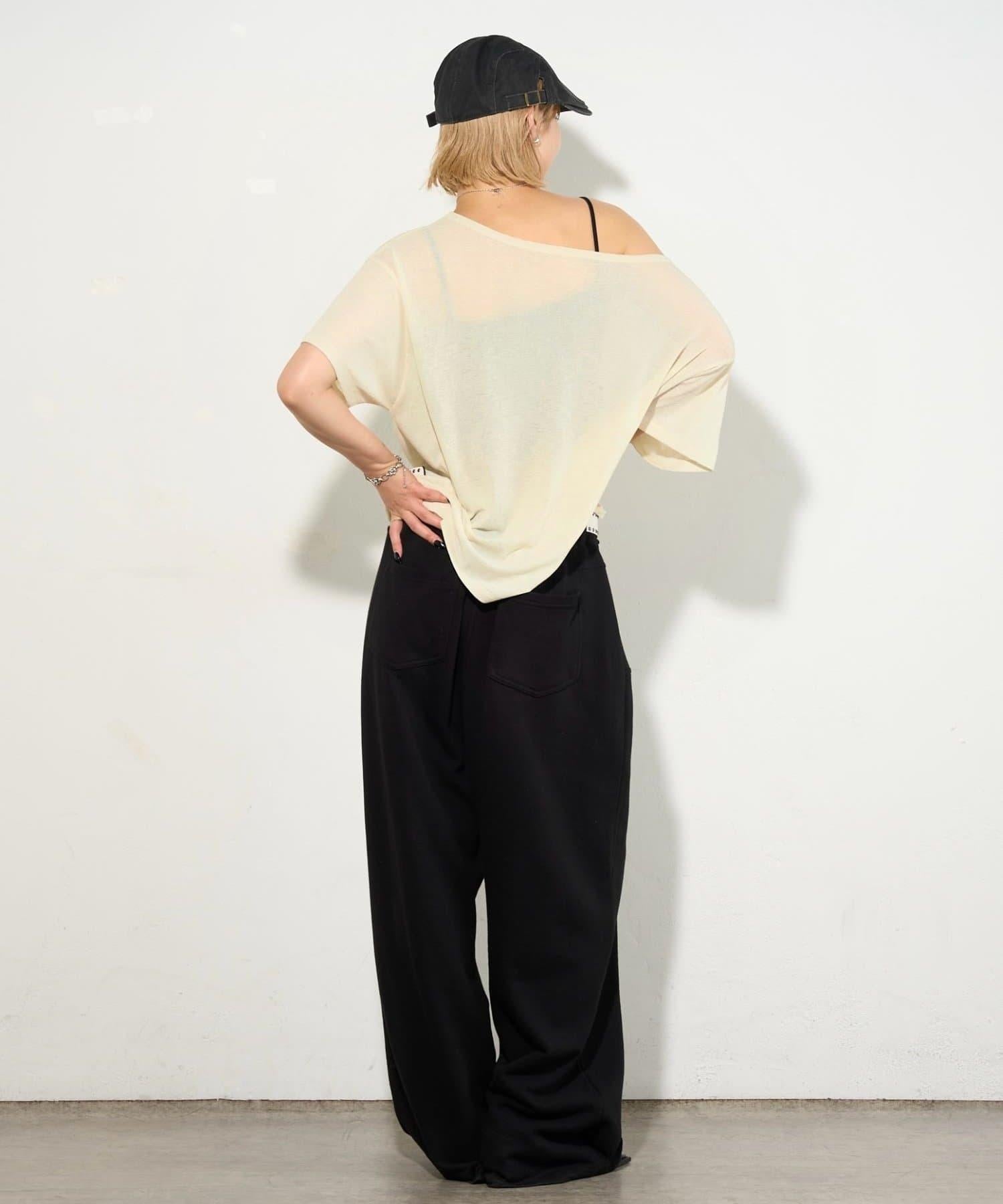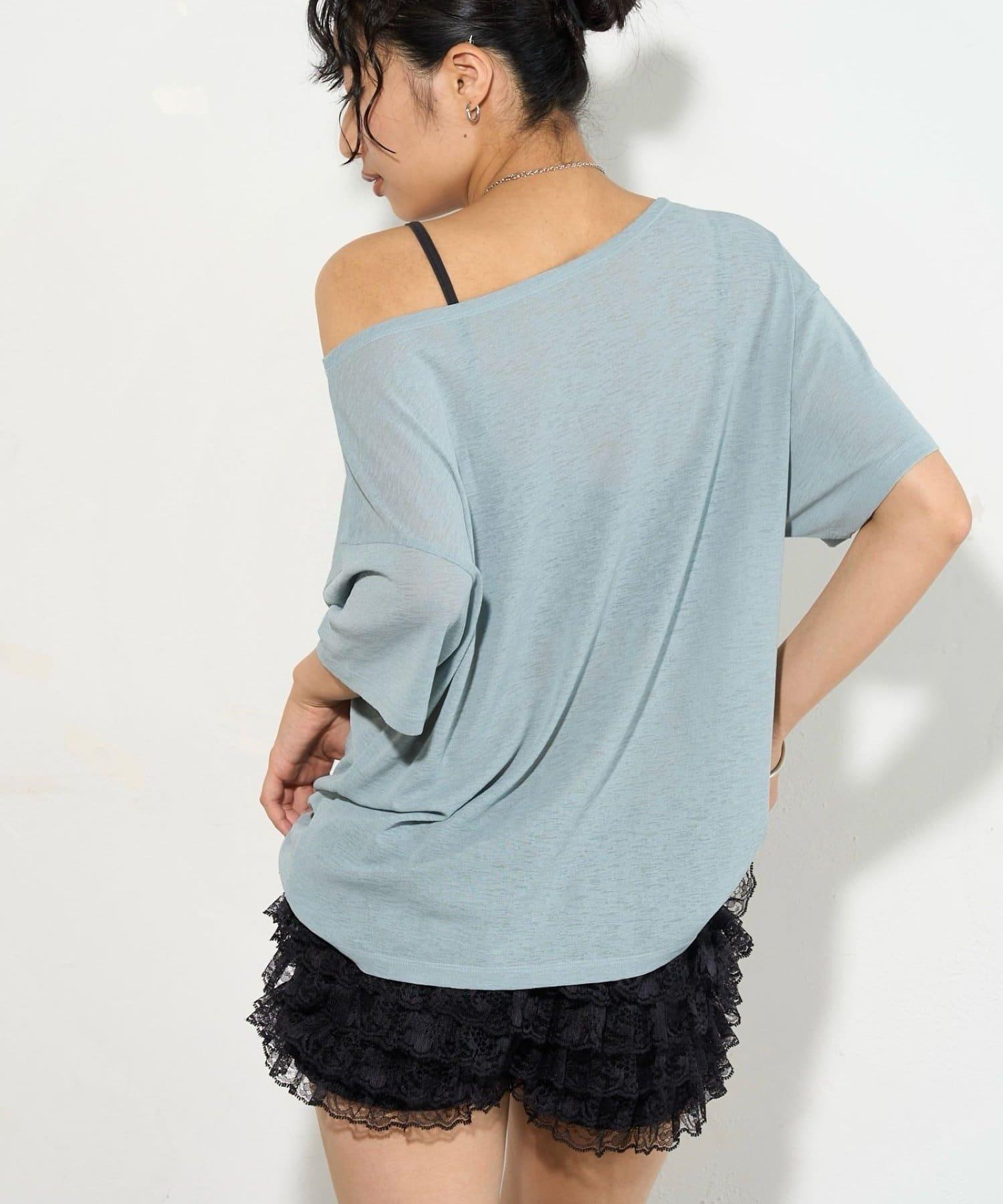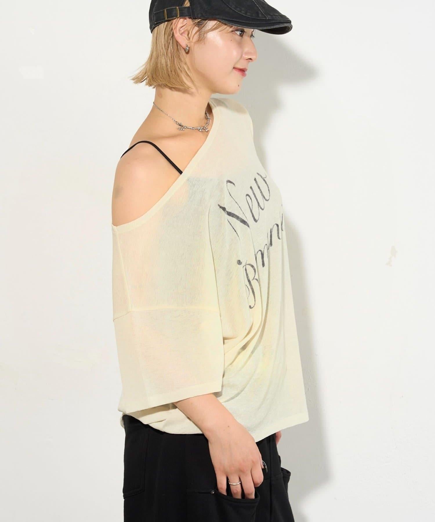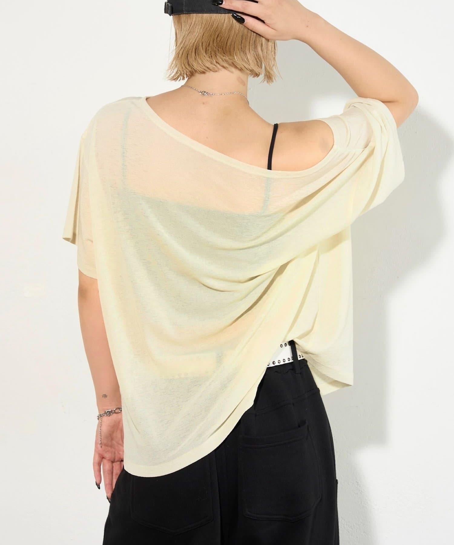 WHO'S WHO gallery 透視寬鬆一字肩T恤