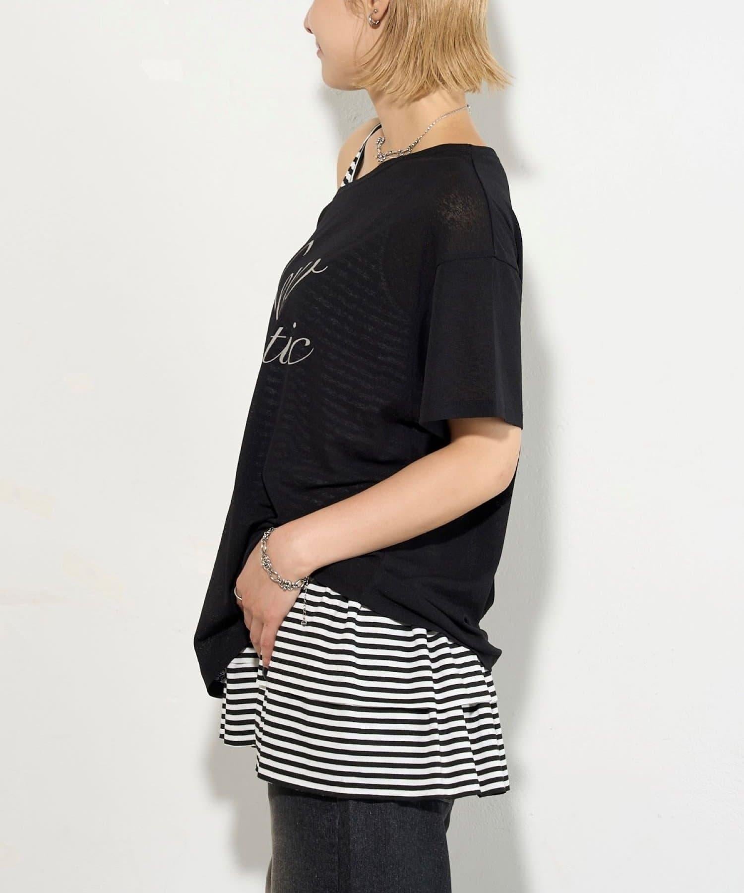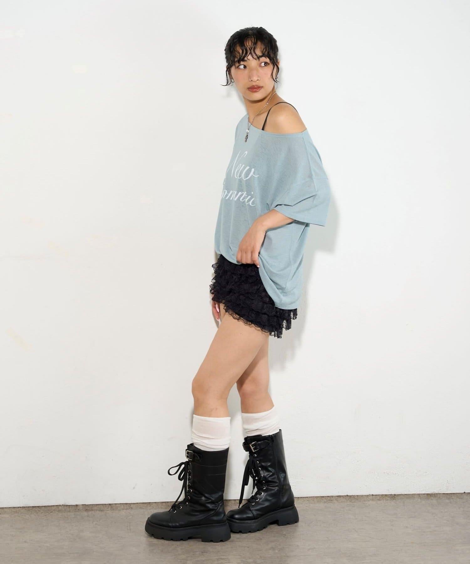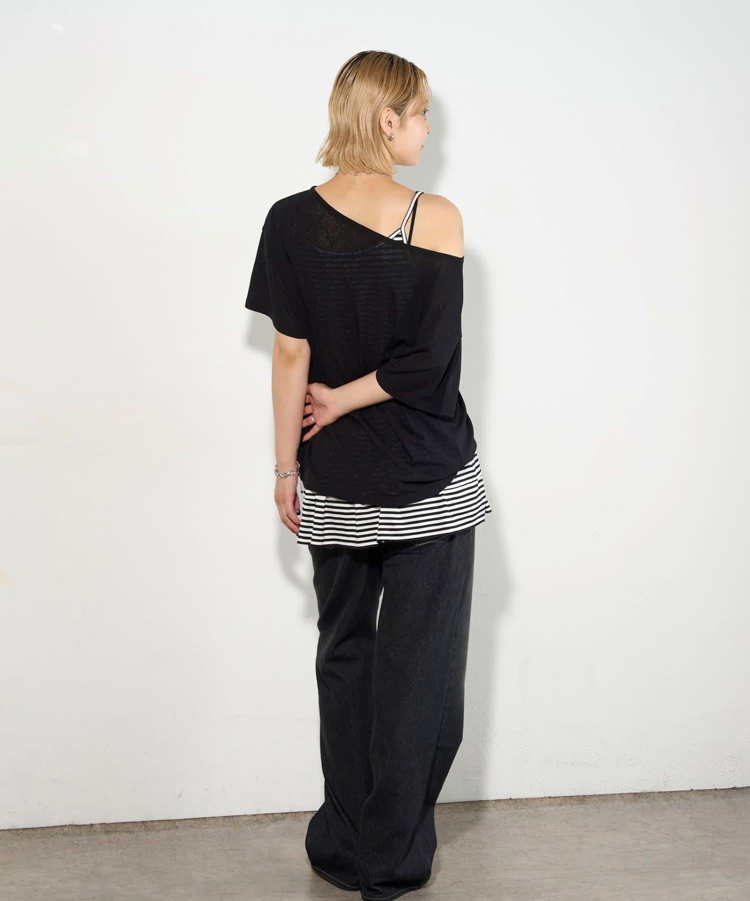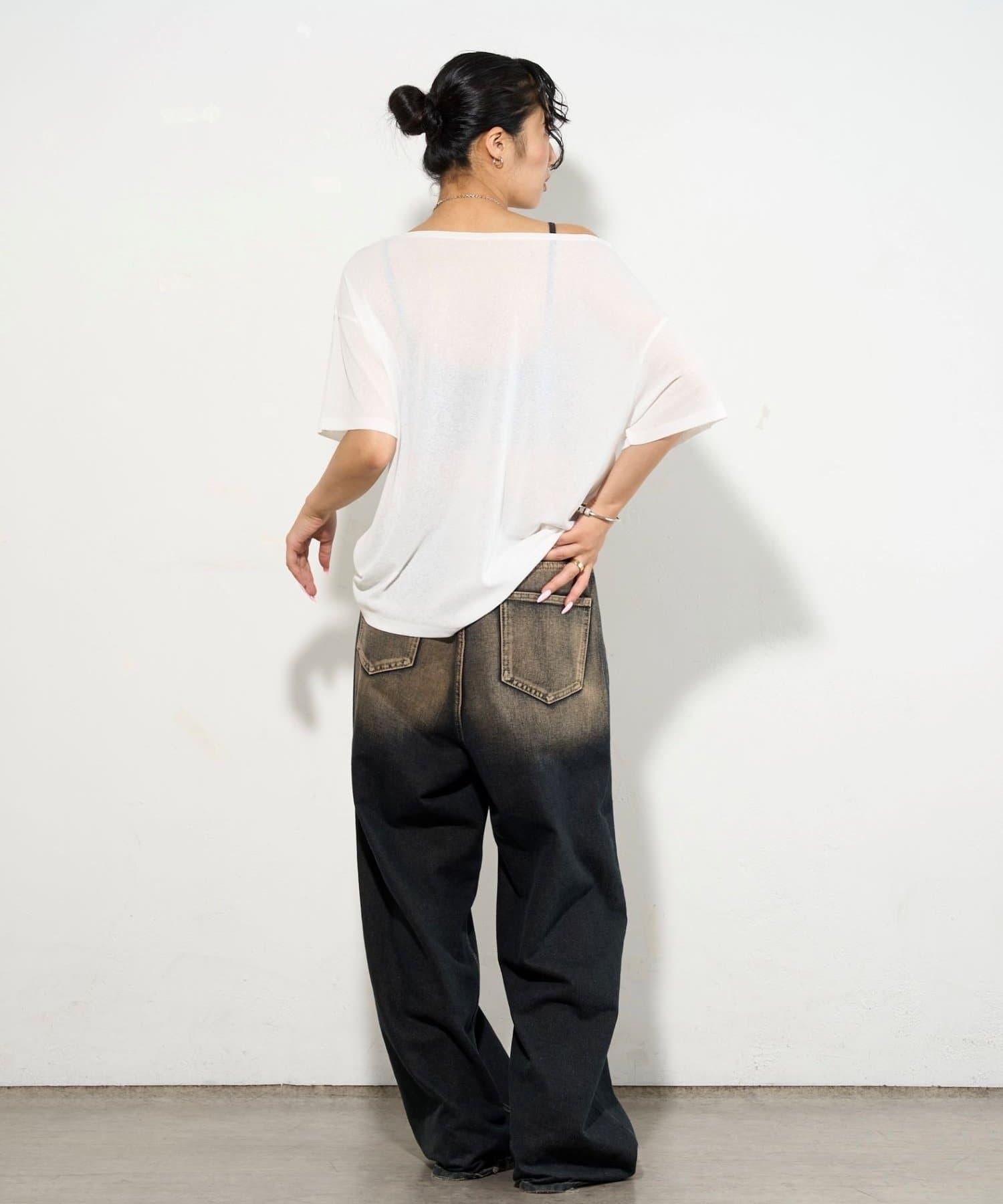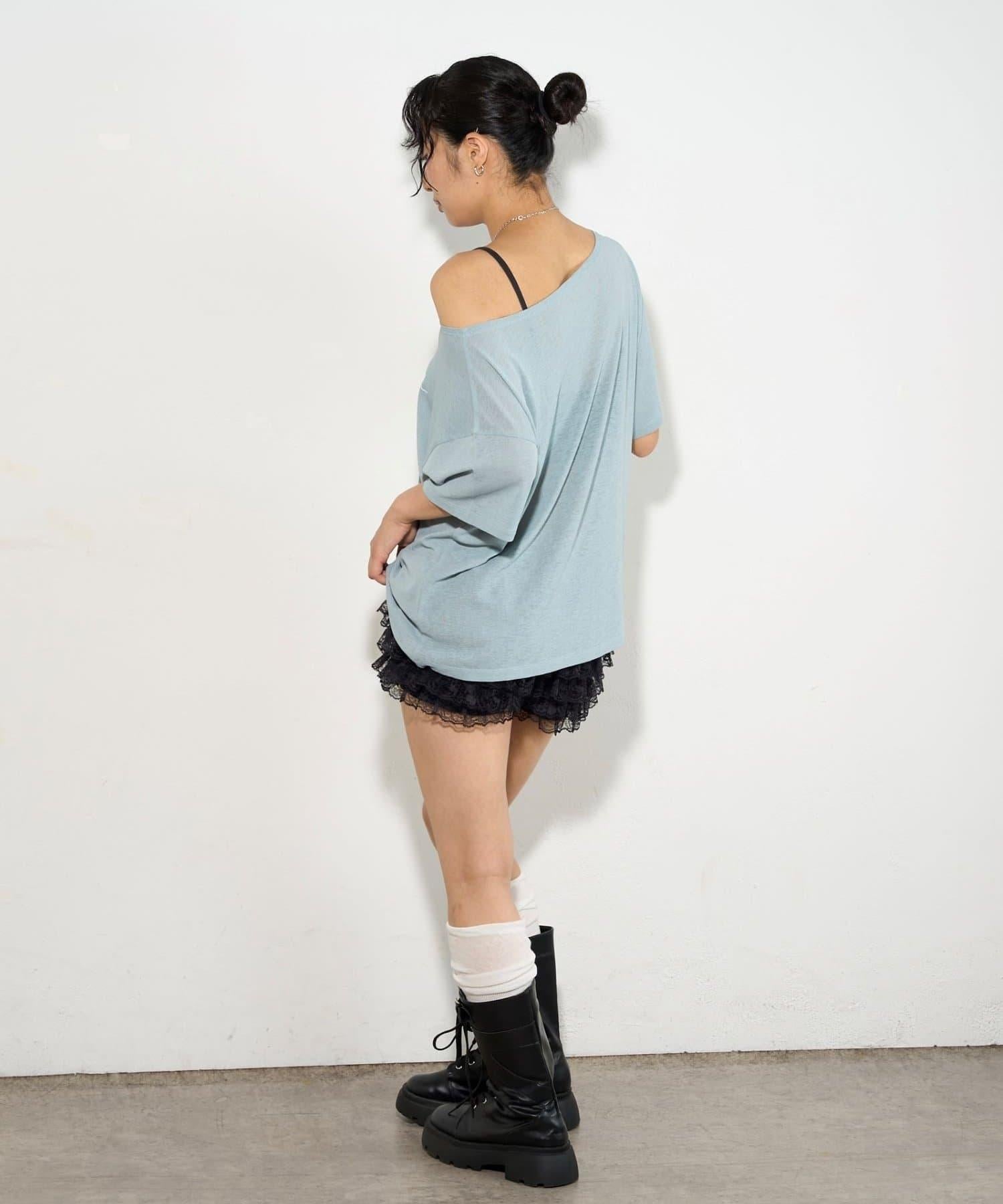 WHO'S WHO gallery 透視寬鬆一字肩T恤