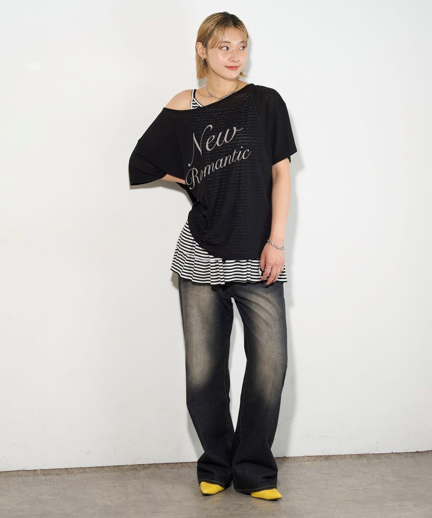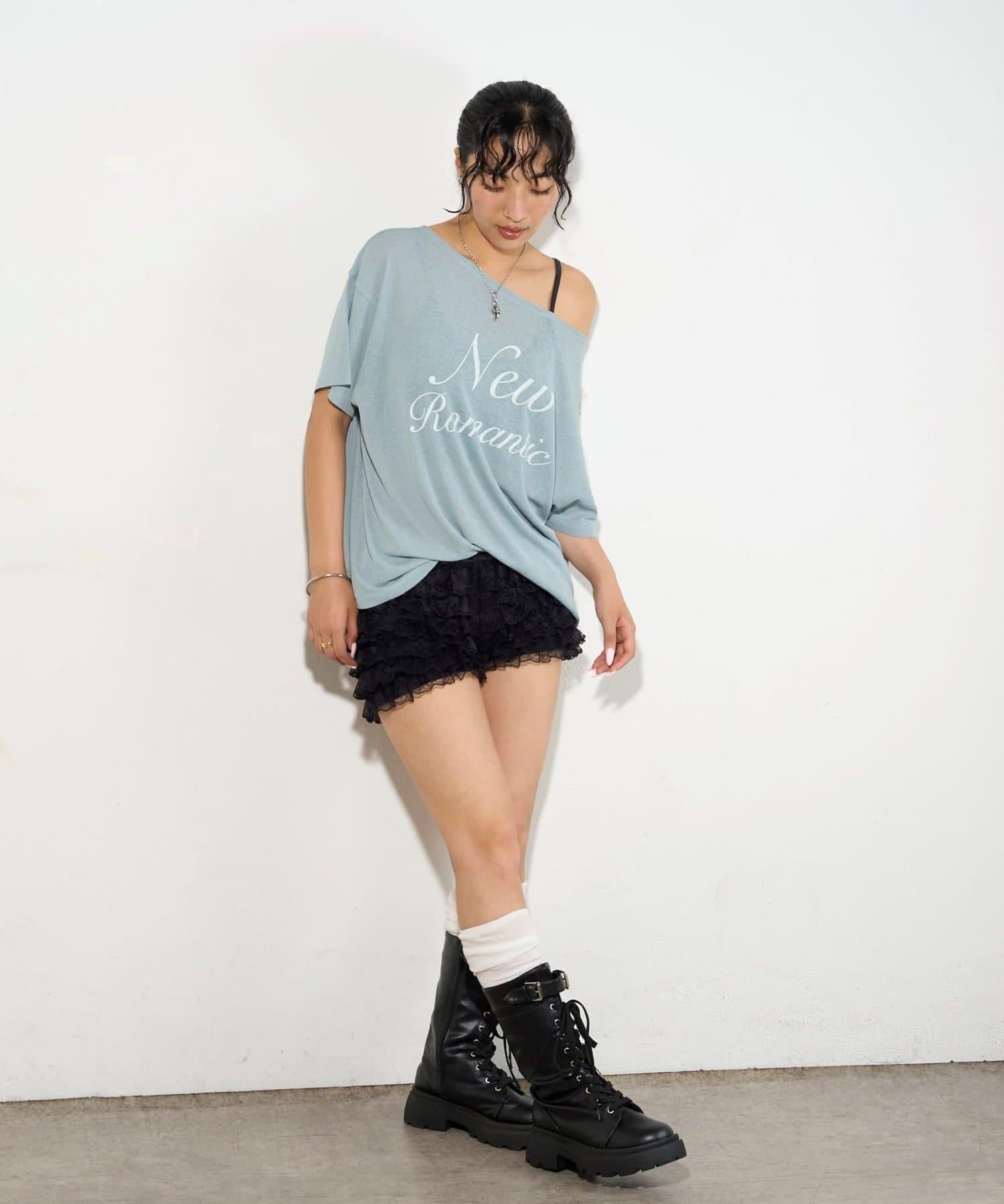 "新浪漫 "標誌是關鍵!時尚單肩 T 恤,透視感十足。
