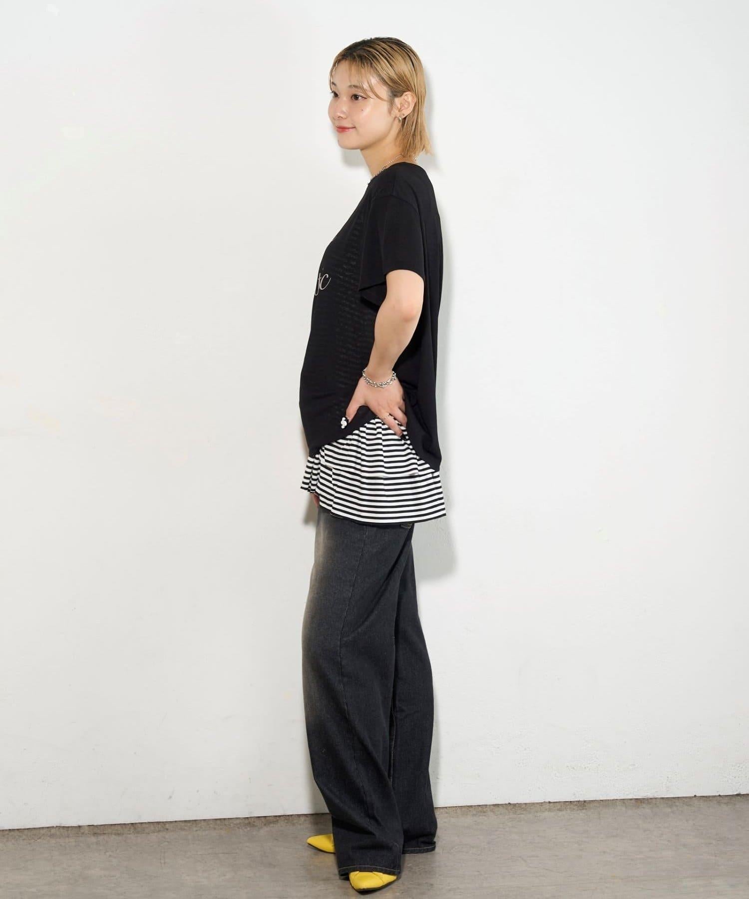 領口較寬,可作為單肩 T 恤穿著,給人新潮時尚的印象。