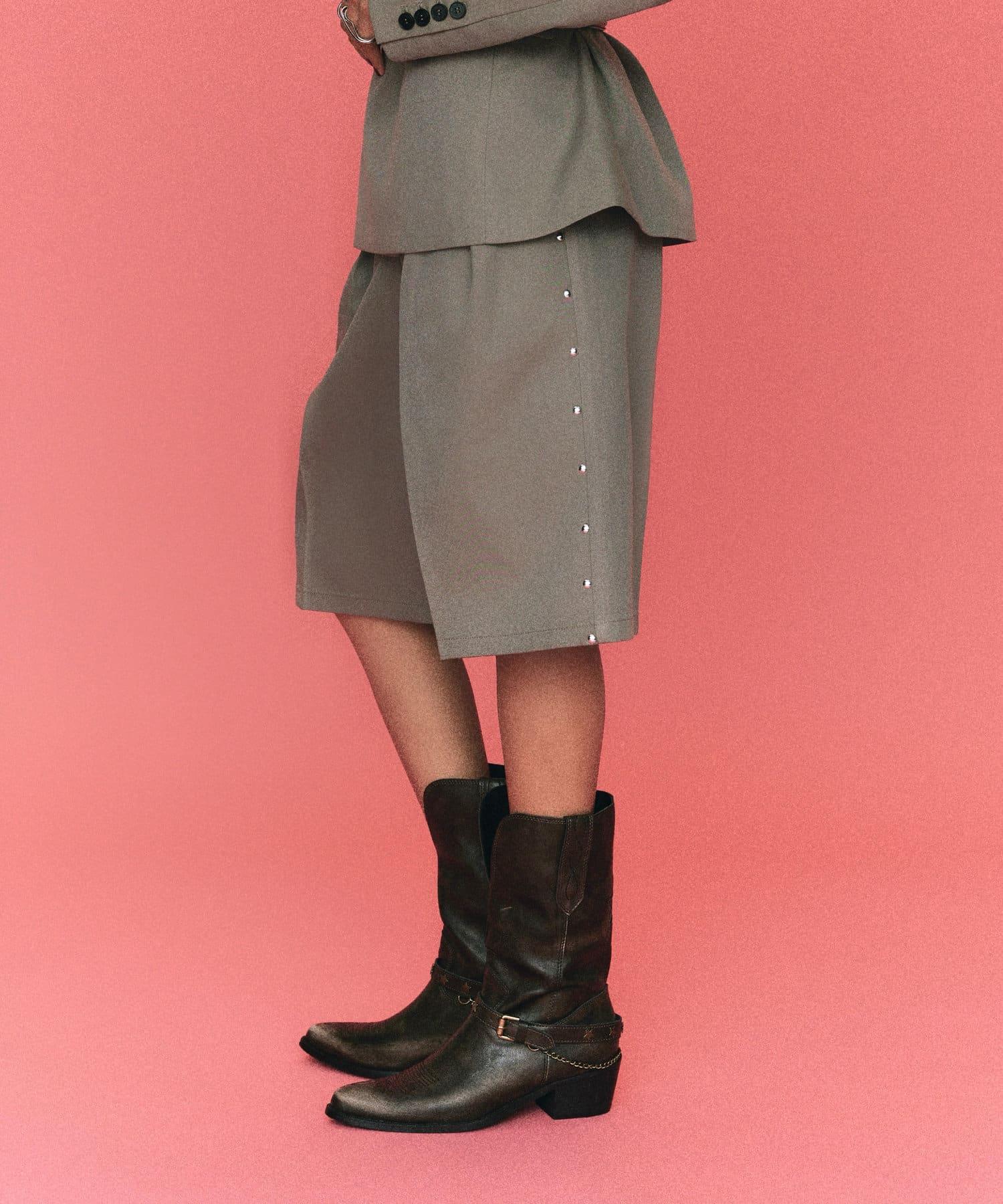 【WHO'S WHO gallery】鉚釘褶皺中長西裝褲