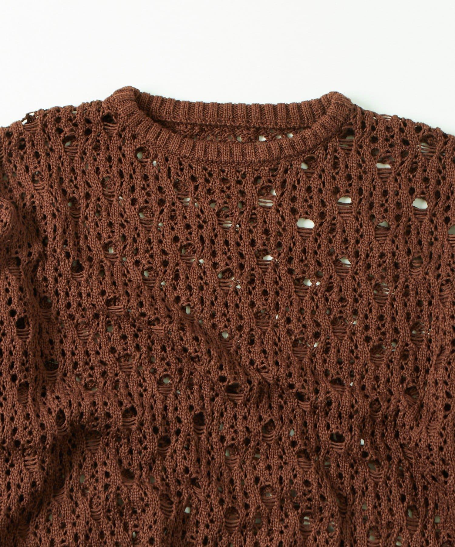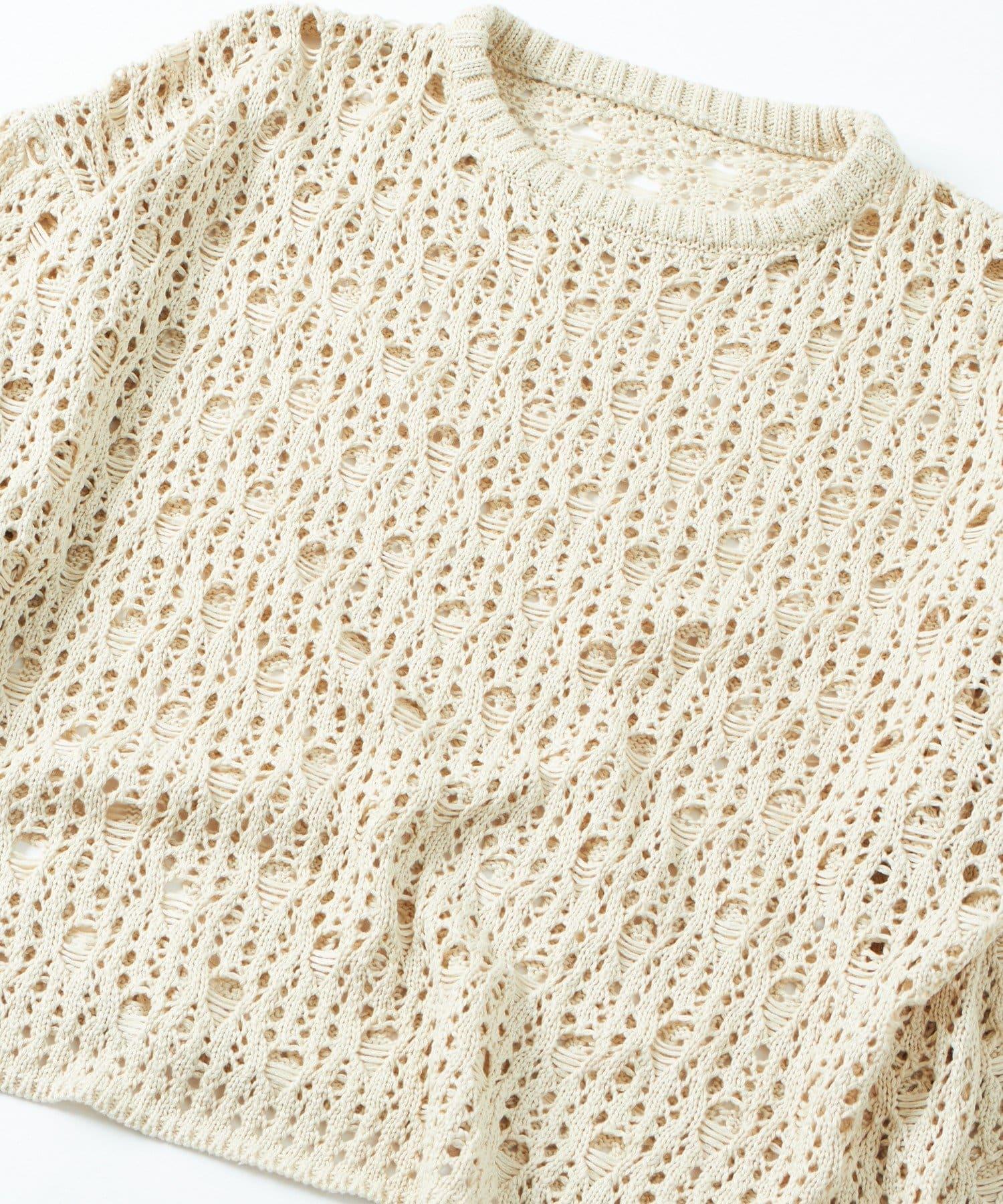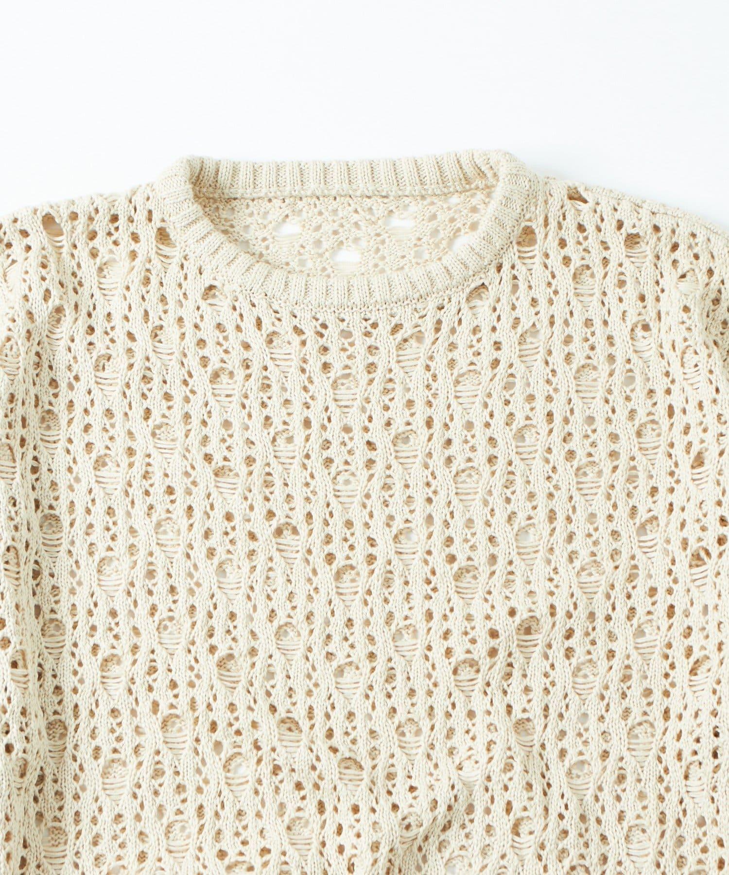 【WHO'S WHO gallery】鏤空編織一字肩寬鬆針織衫