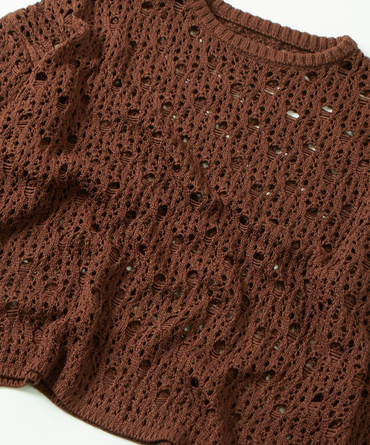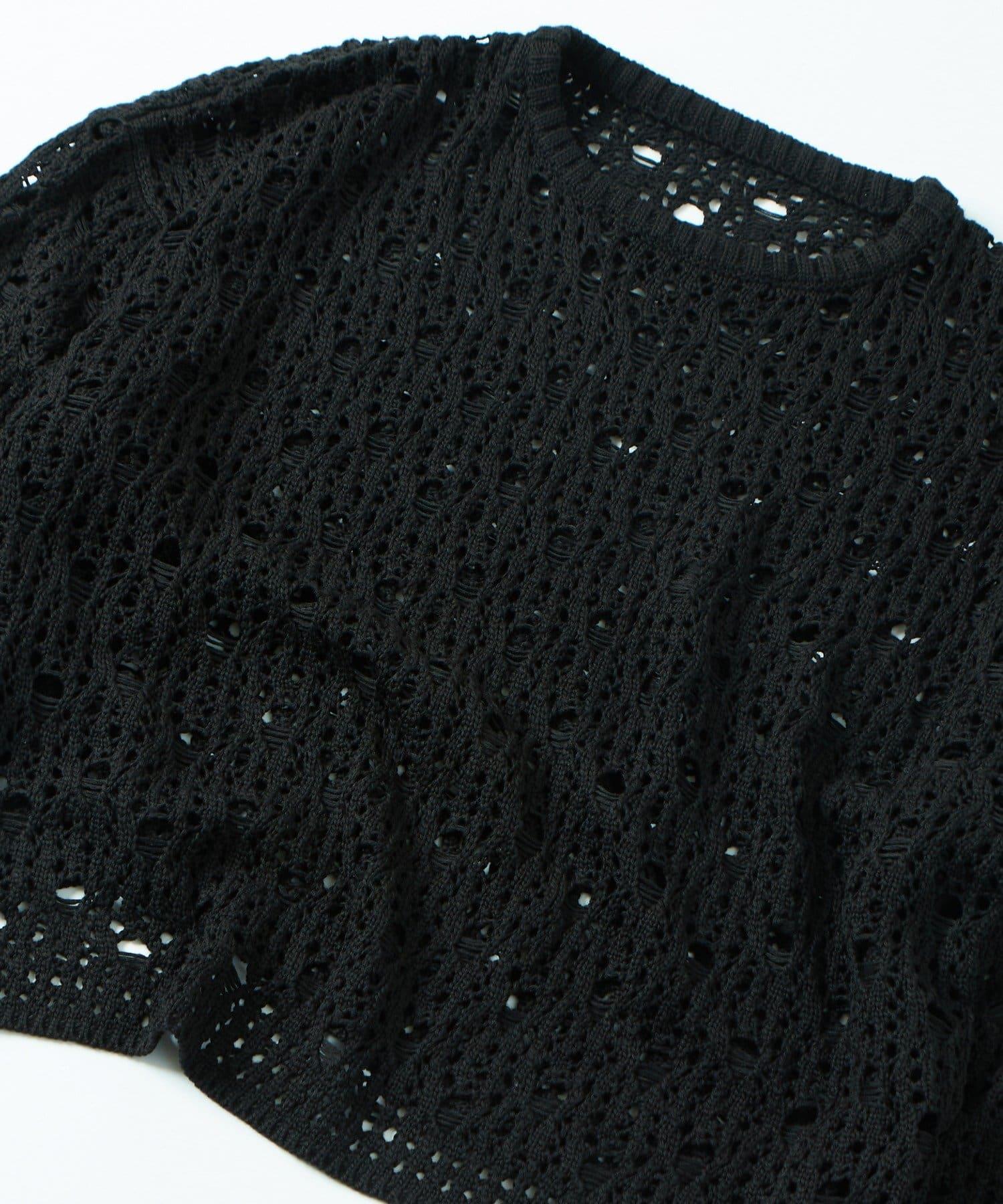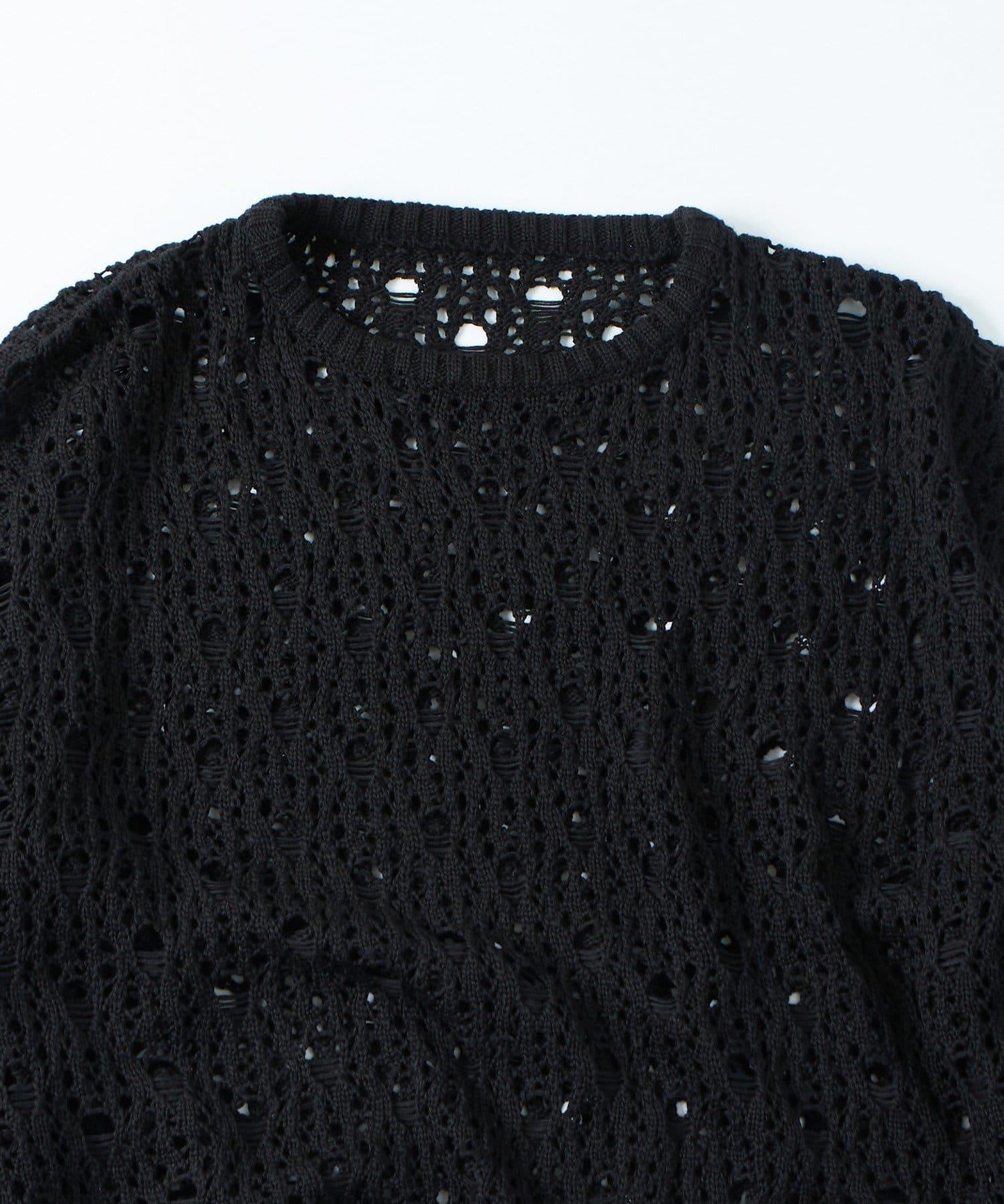 【WHO'S WHO gallery】鏤空編織一字肩寬鬆針織衫