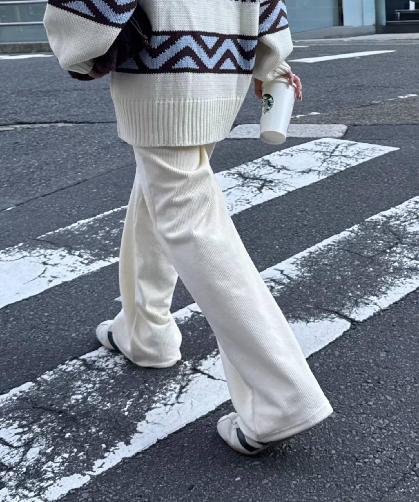 燈芯絨面料賦予了這款長褲優美的廓形,提升了季節氛圍!