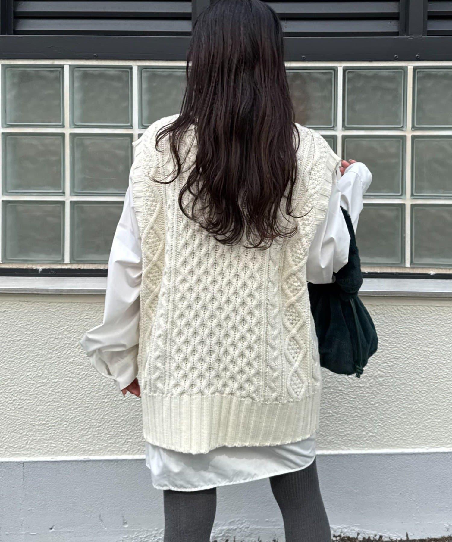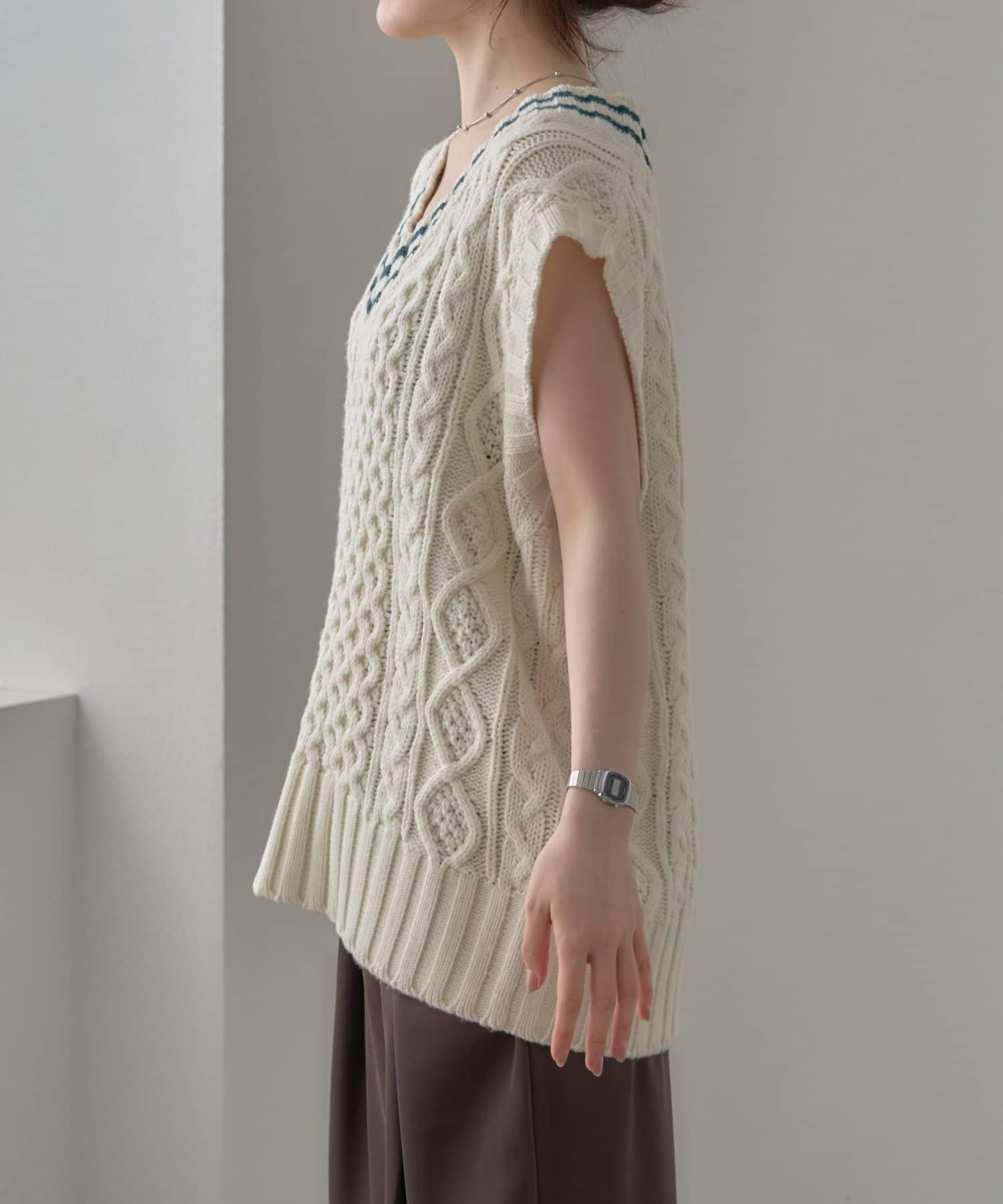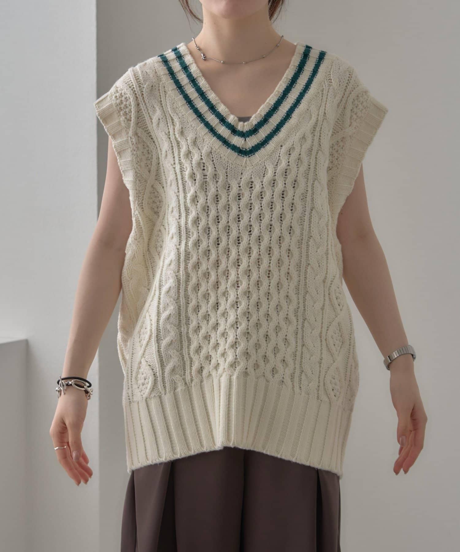一款電纜針織馬甲,提升了季節氛圍。