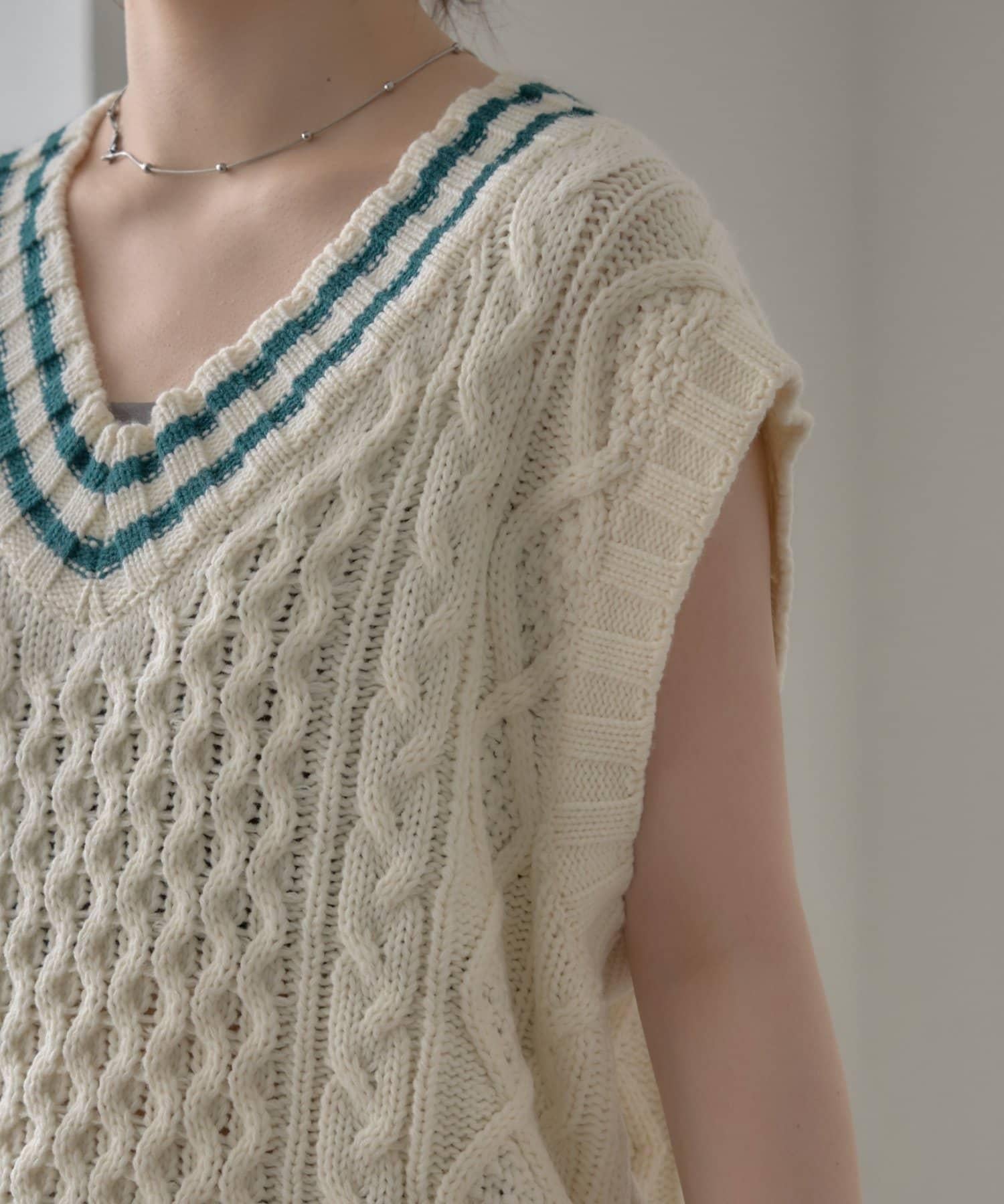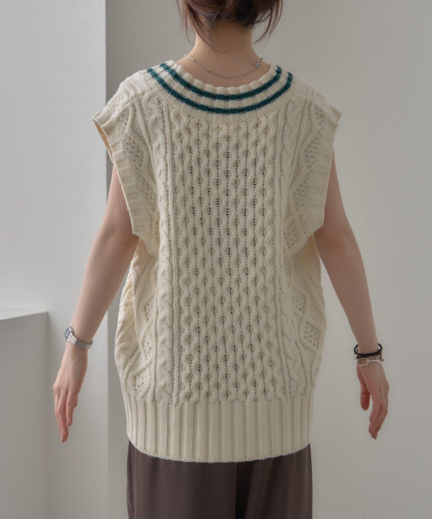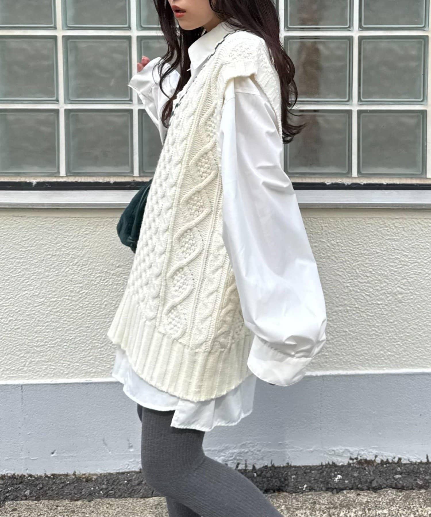 一款電纜針織馬甲,提升了季節氛圍。