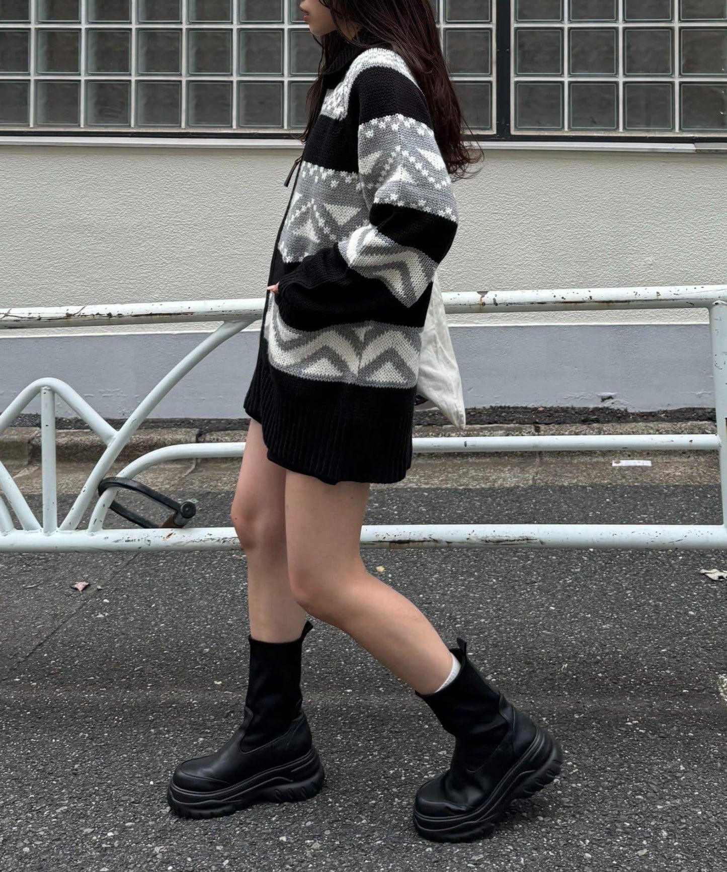 作為秋冬季的輕便外衣也很活躍,針織面料粗糙,厚度較好。