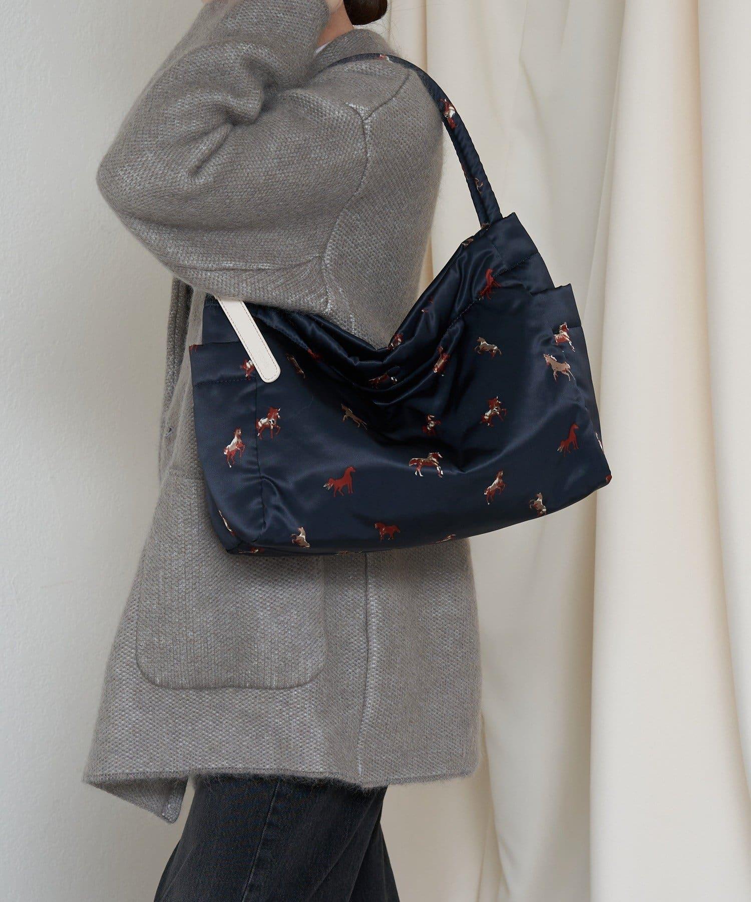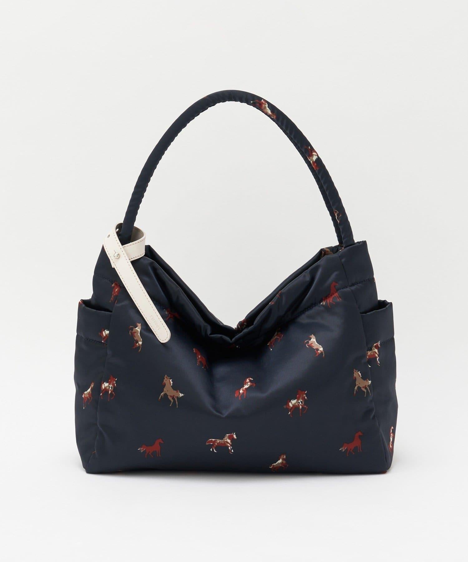 這款手提包由輕質的 Claus 尼龍製成,並飾有 WOODLANDER 獨特而優雅的馬匹印花。