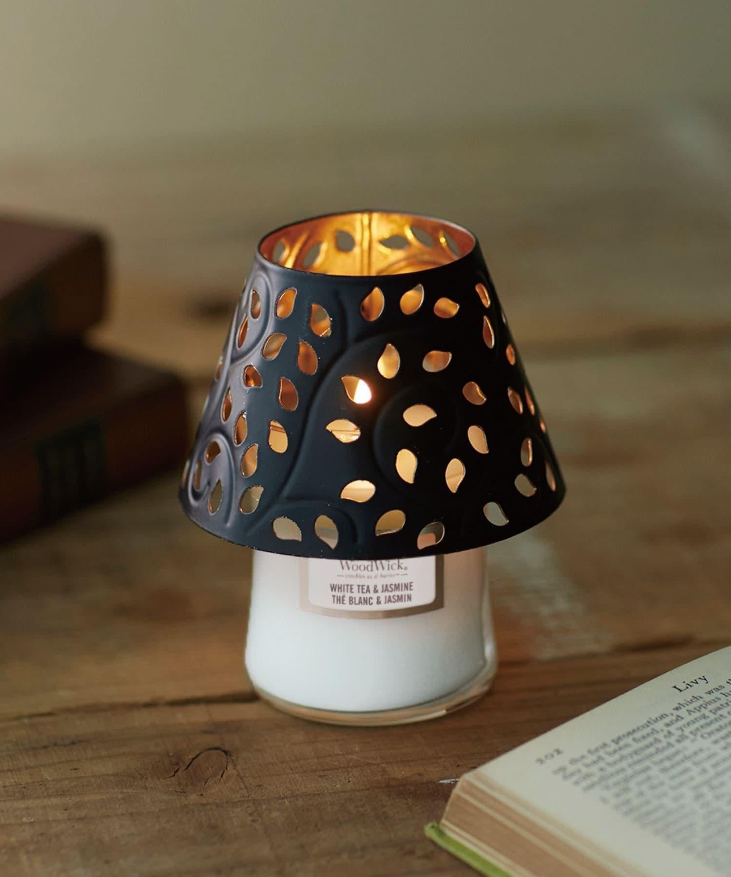 禮品套裝結合了社交網站上流行的 WoodWick 蠟燭和燈罩。