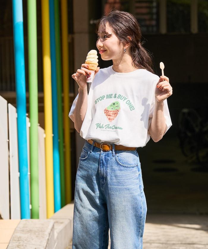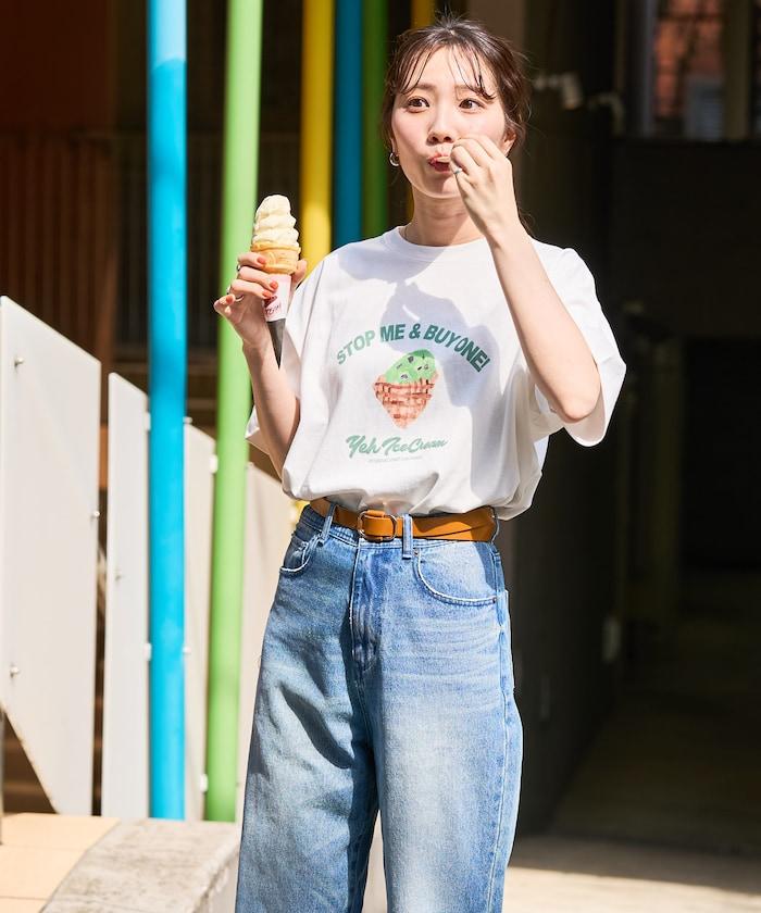 YEH 冰淇淋圖案短袖 T 恤(帶正面徽標