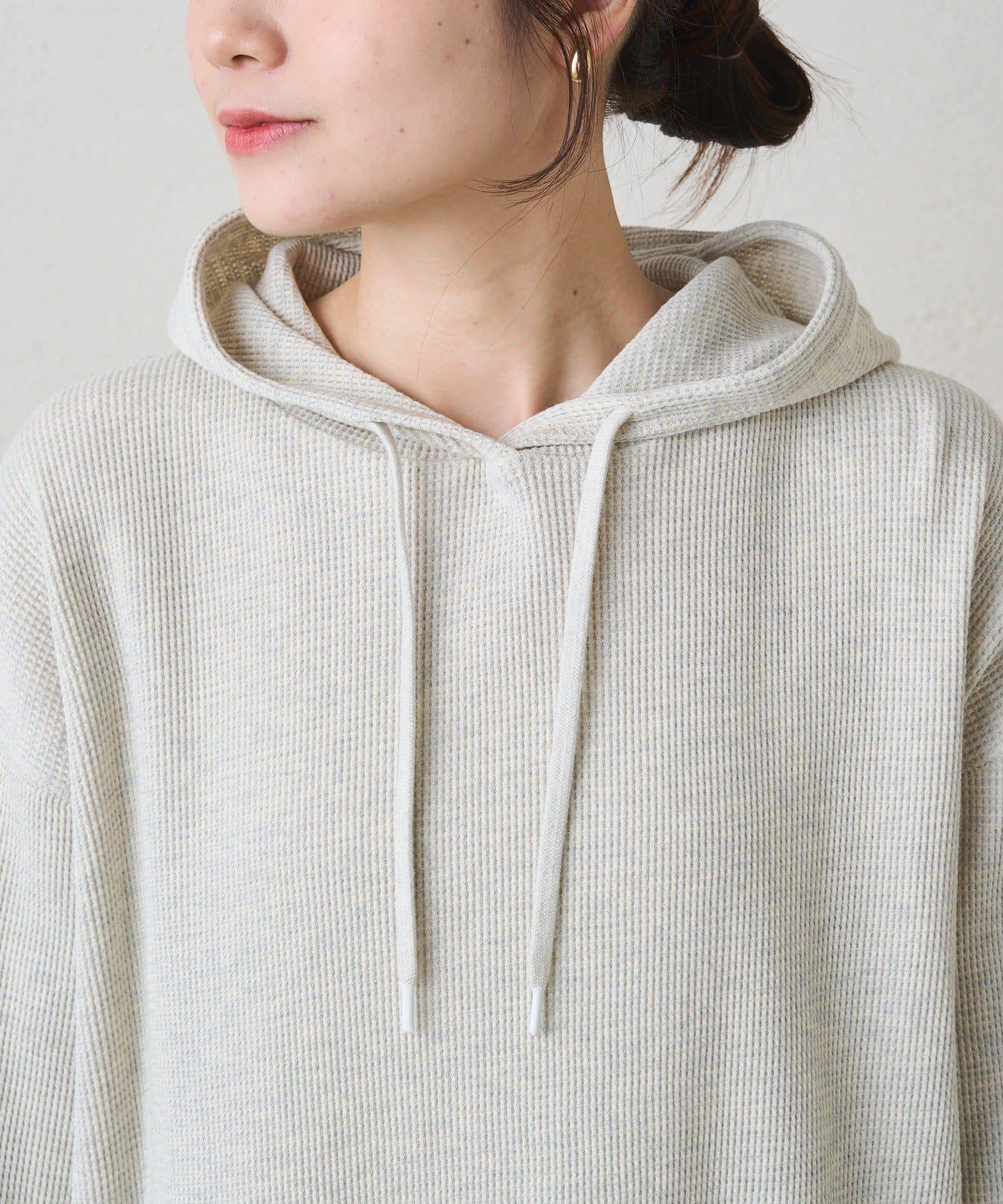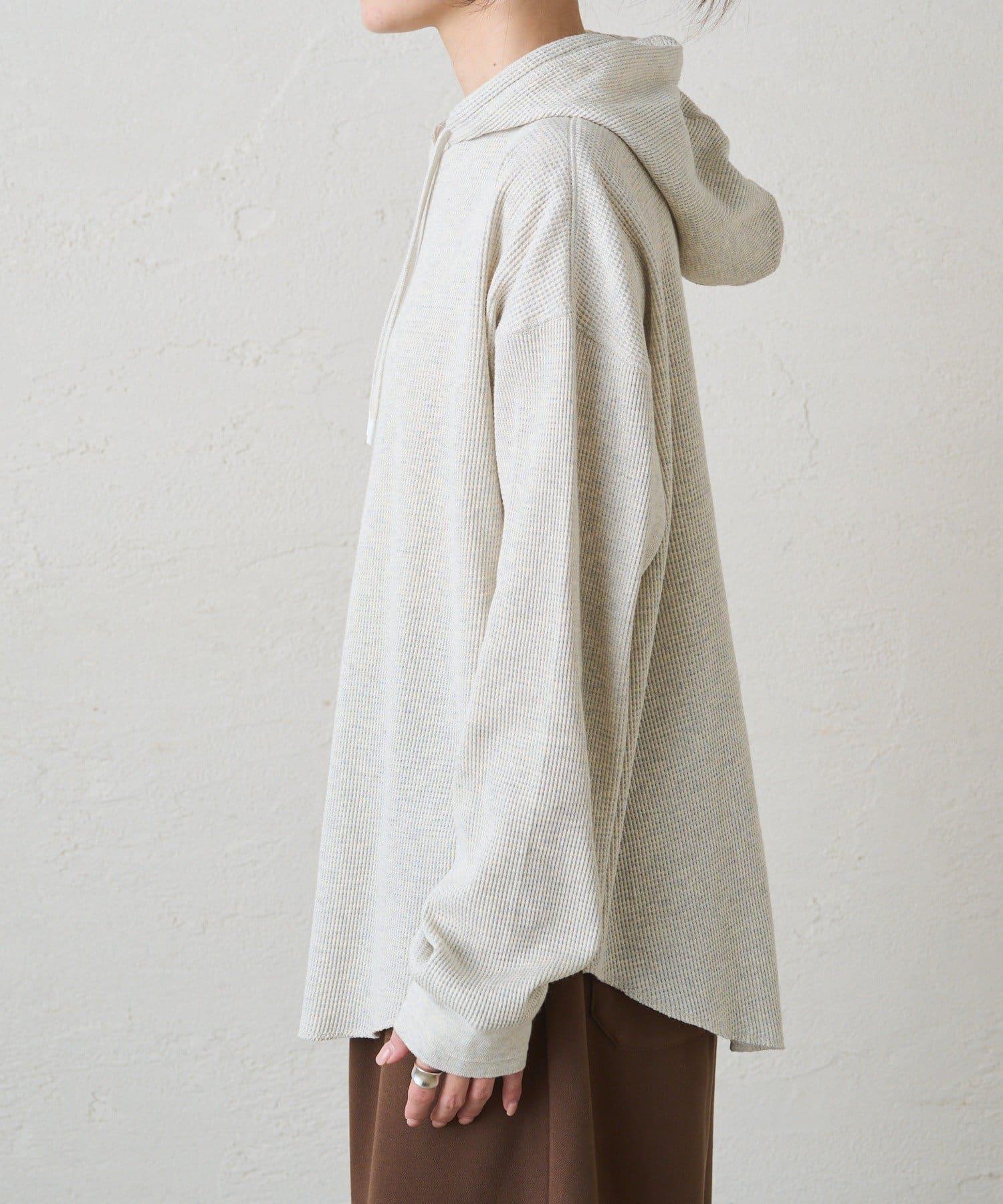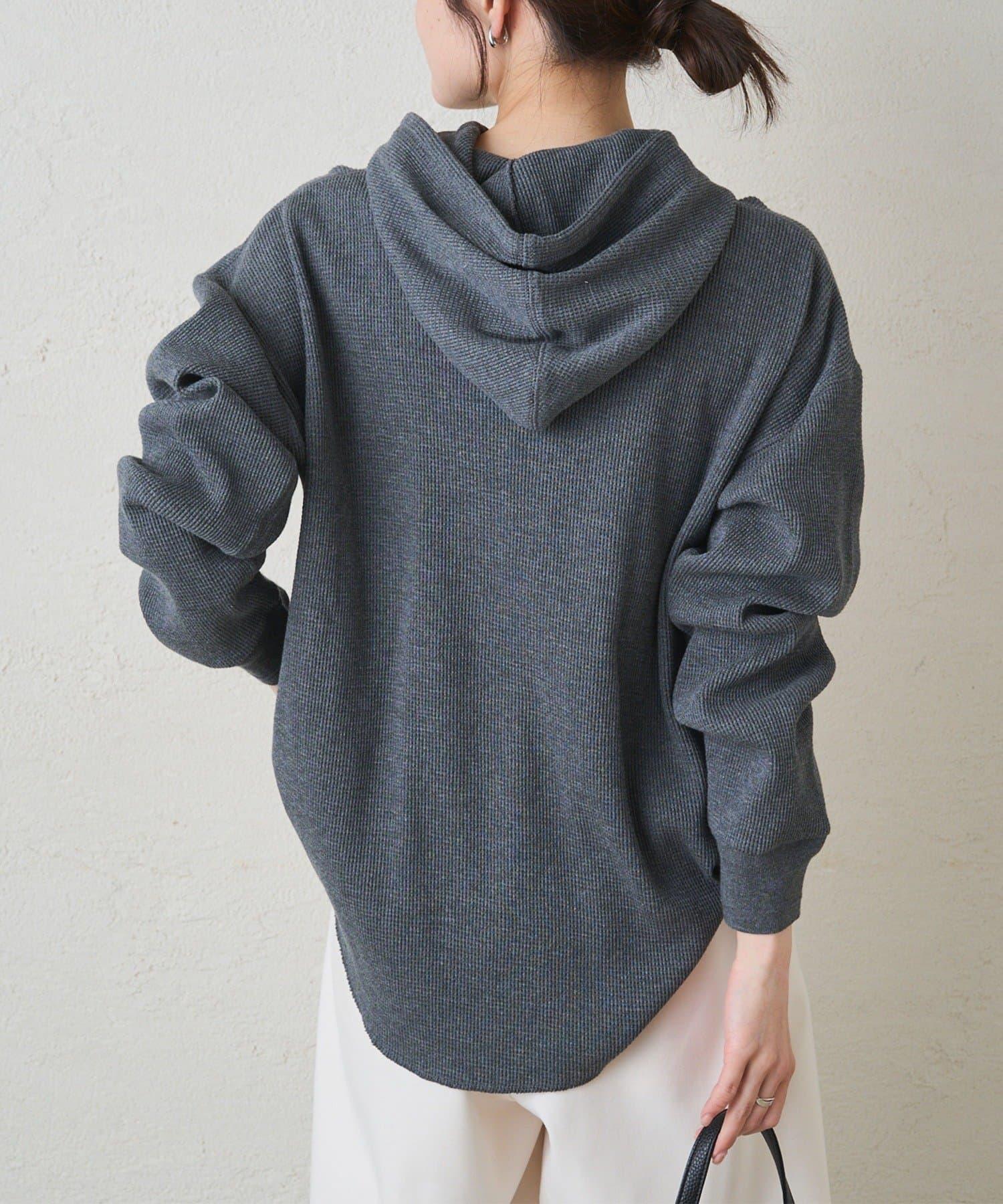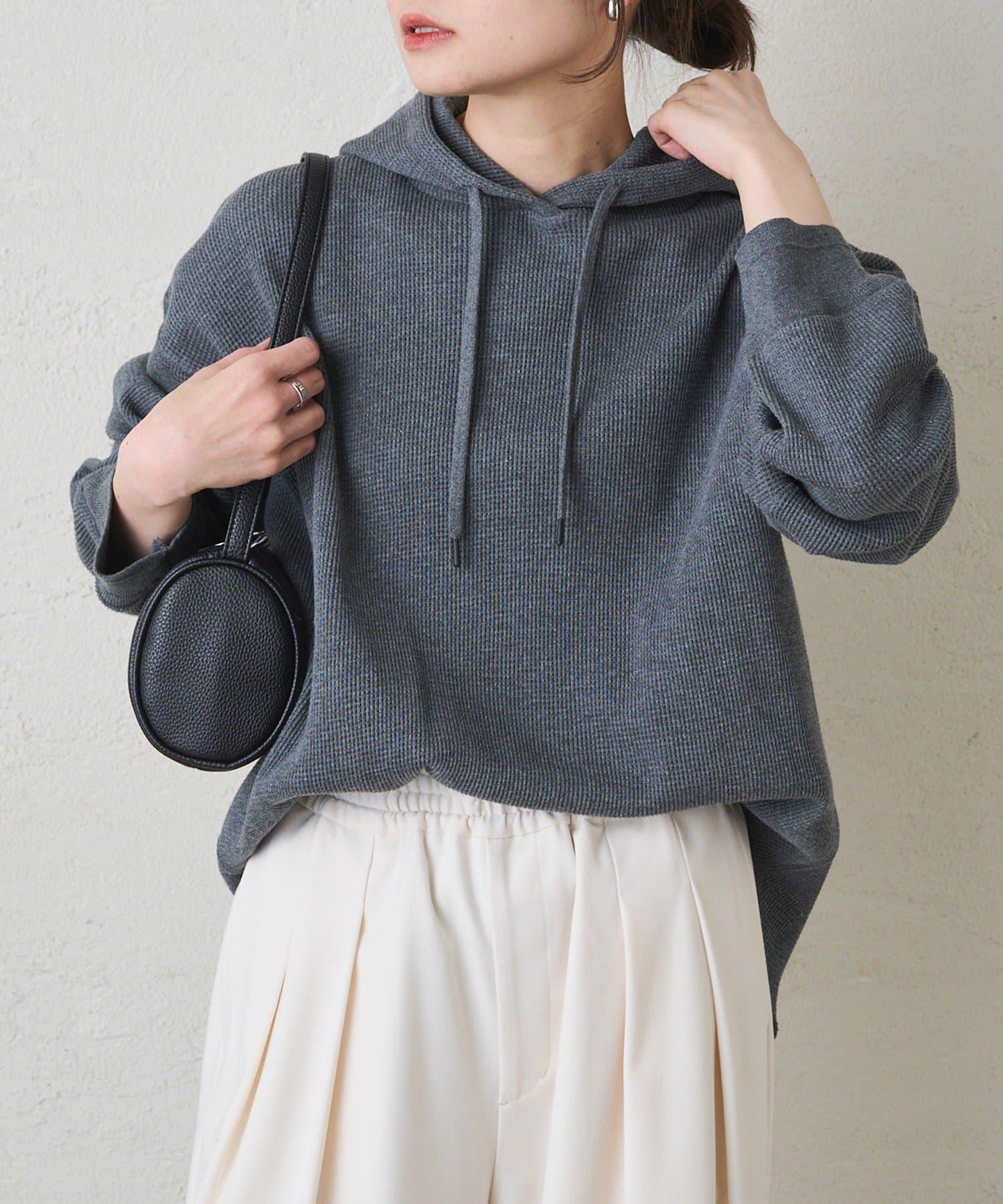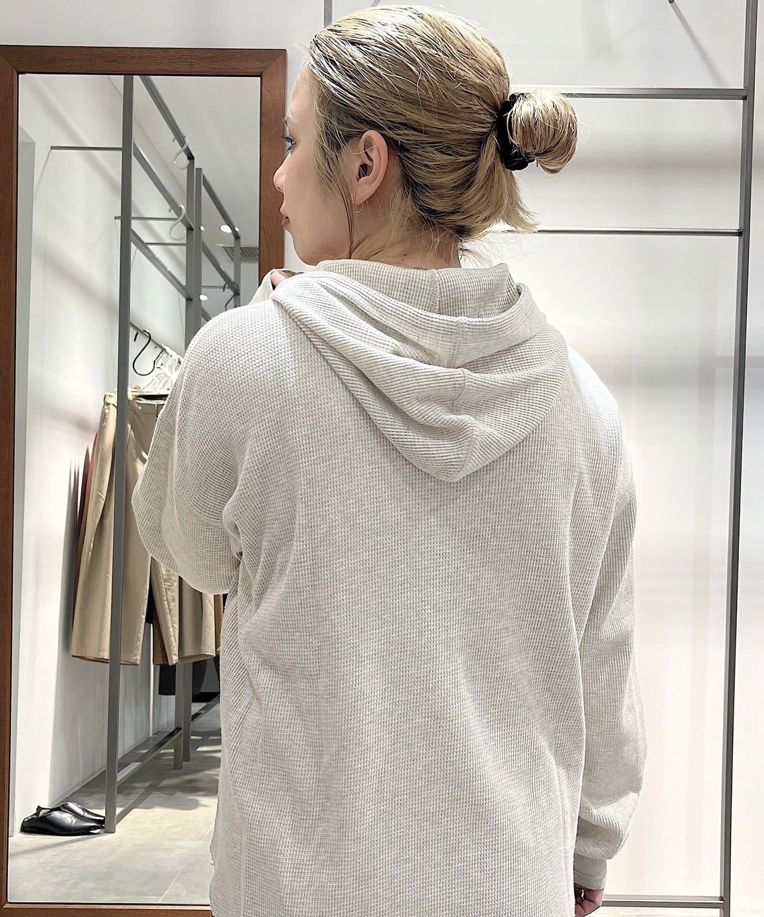 華夫格面料表面凹凸不平,富有表現力,使原本看起來厚重的連帽衫變得輕盈迷人。