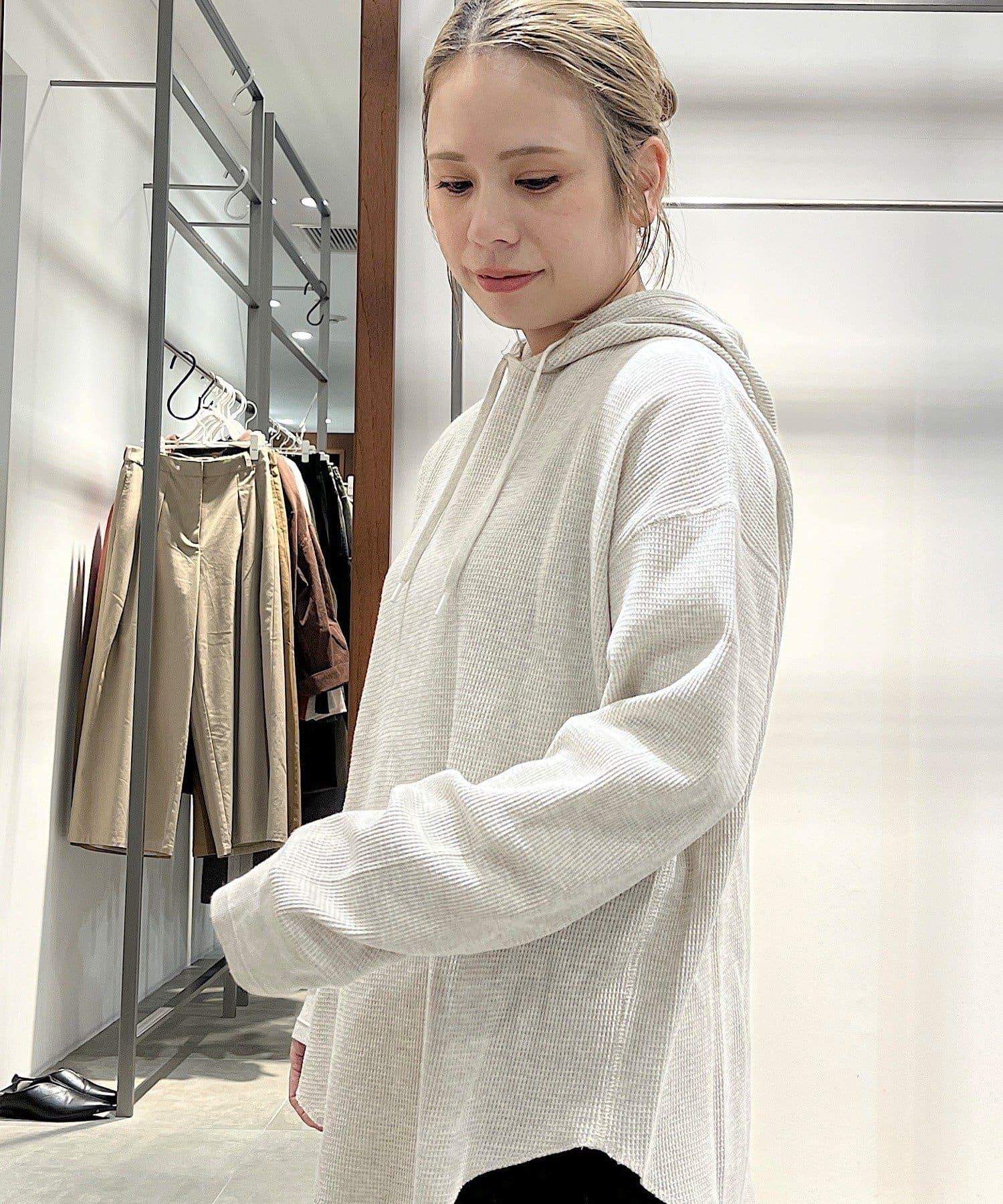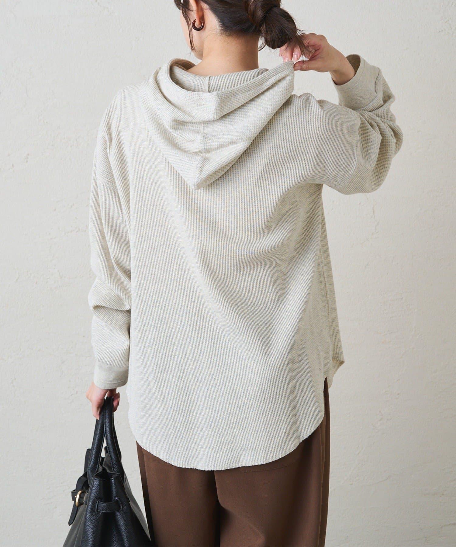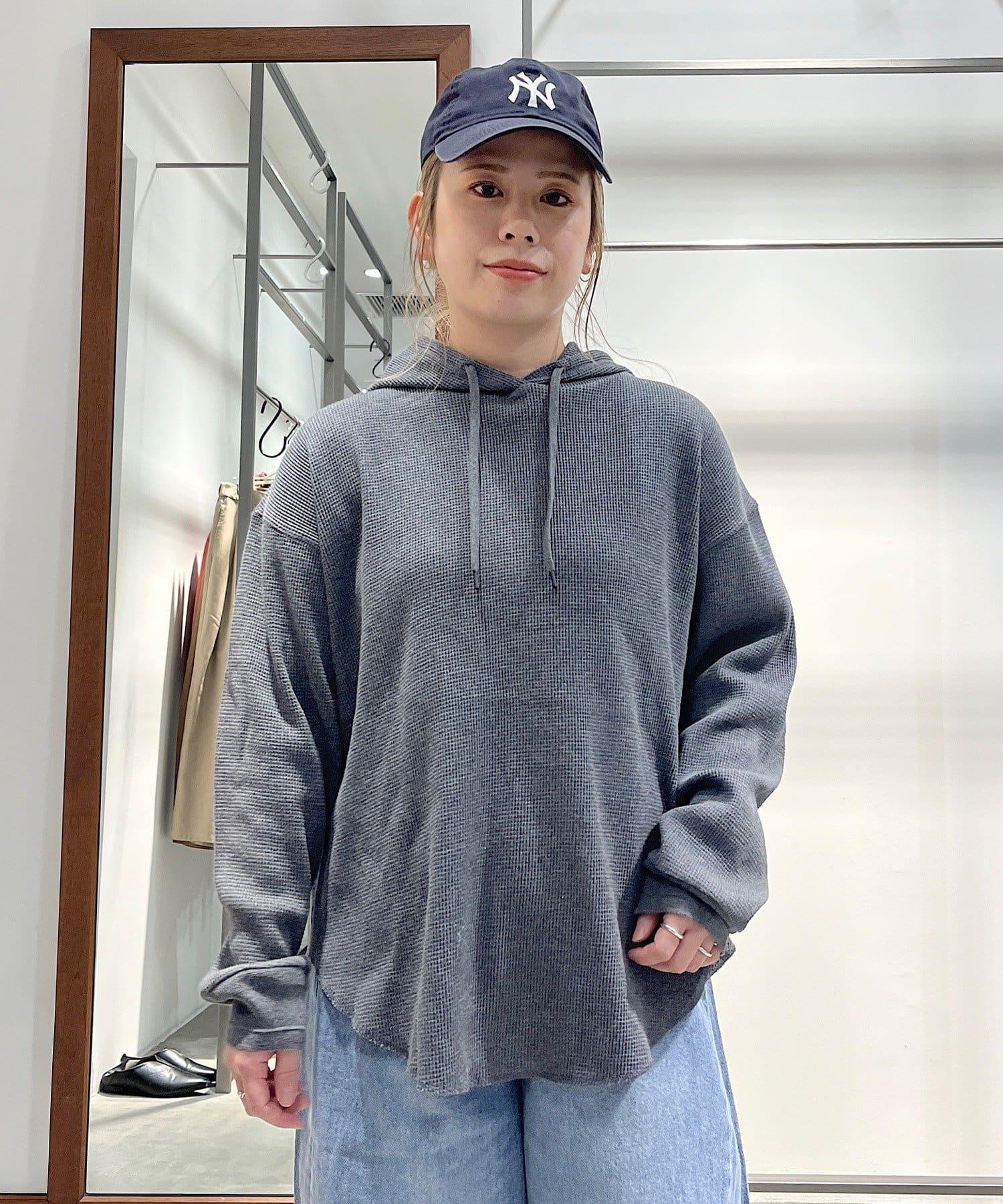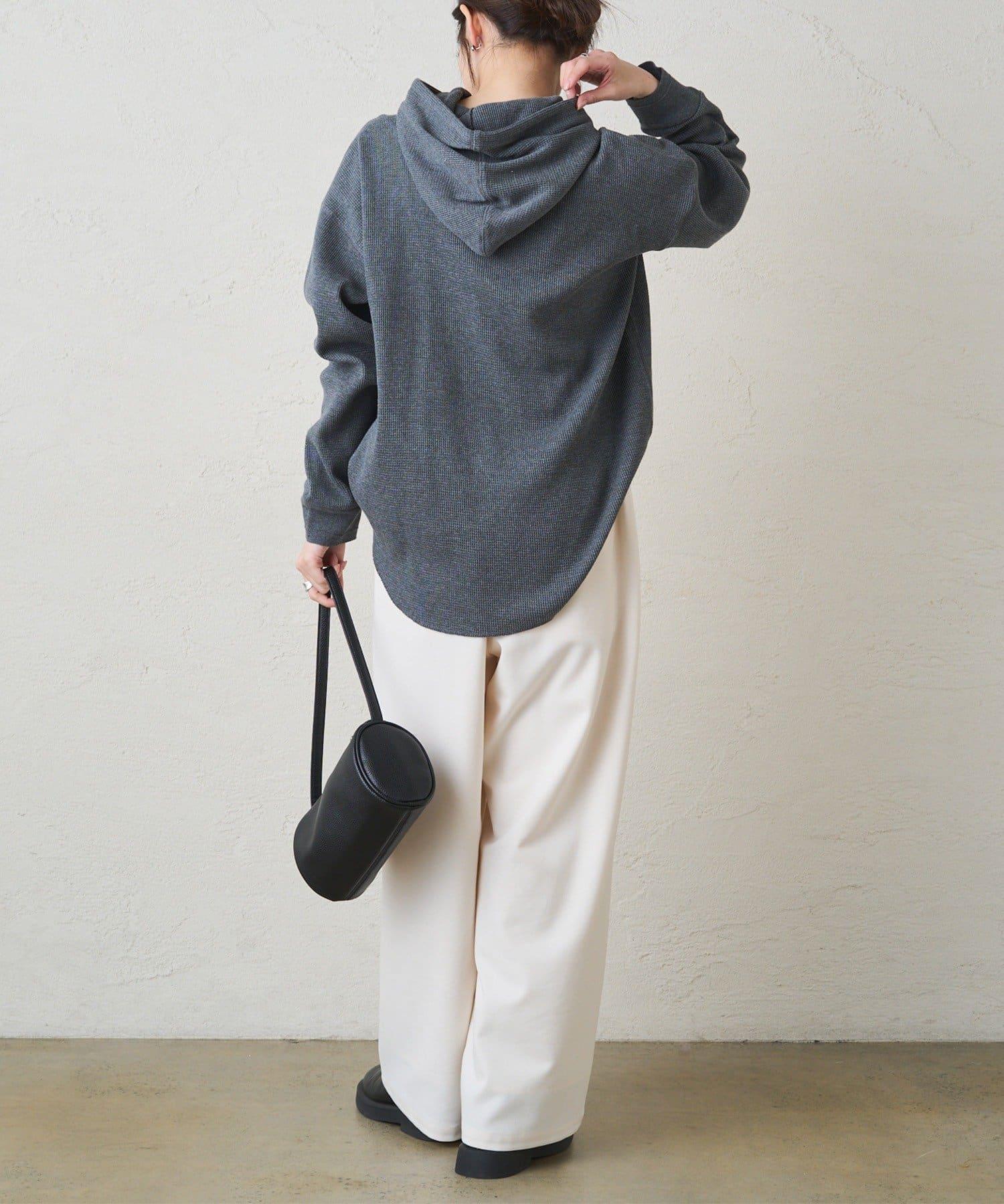 華夫格面料表面凹凸不平,富有表現力,使原本看起來厚重的連帽衫變得輕盈迷人。