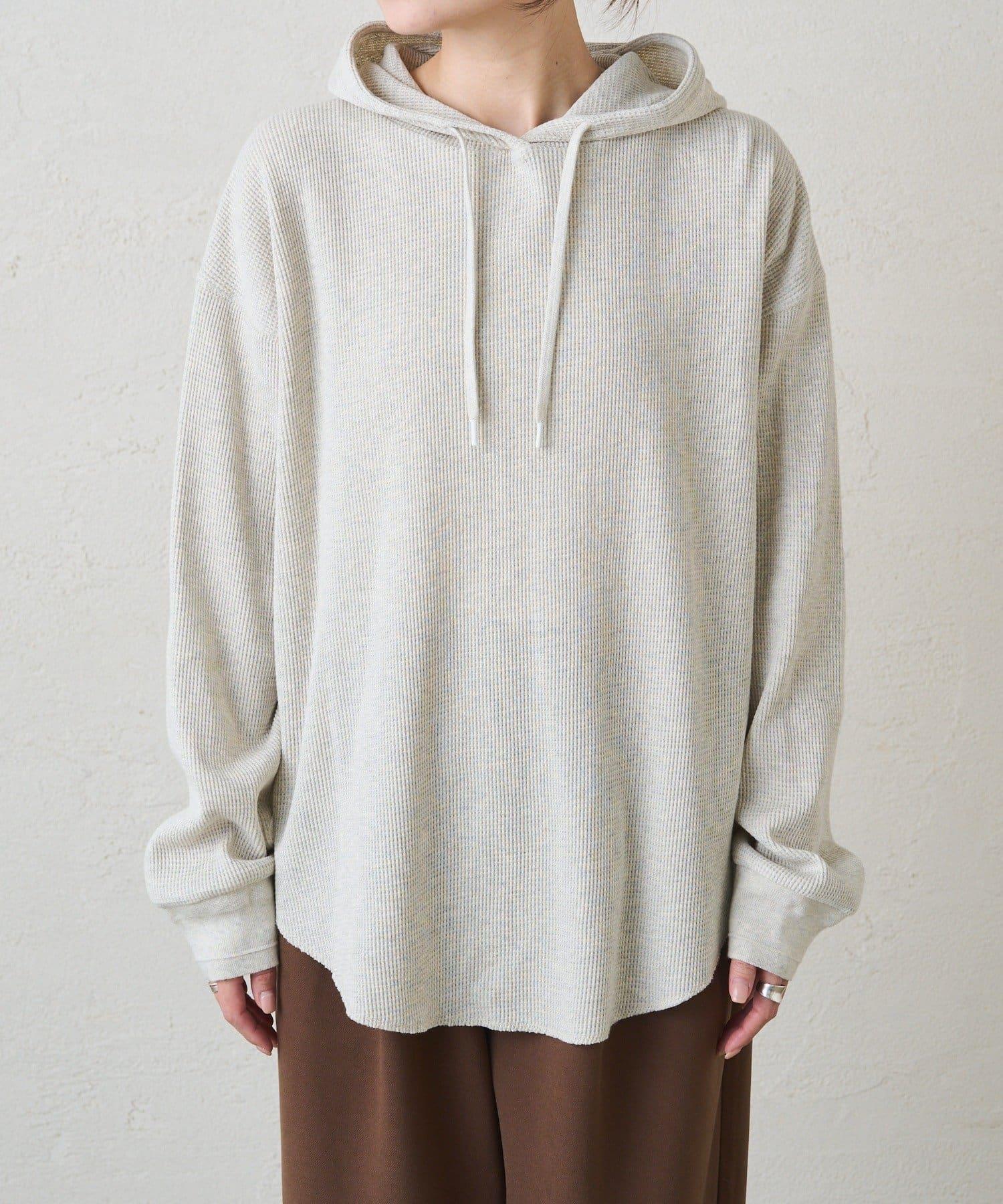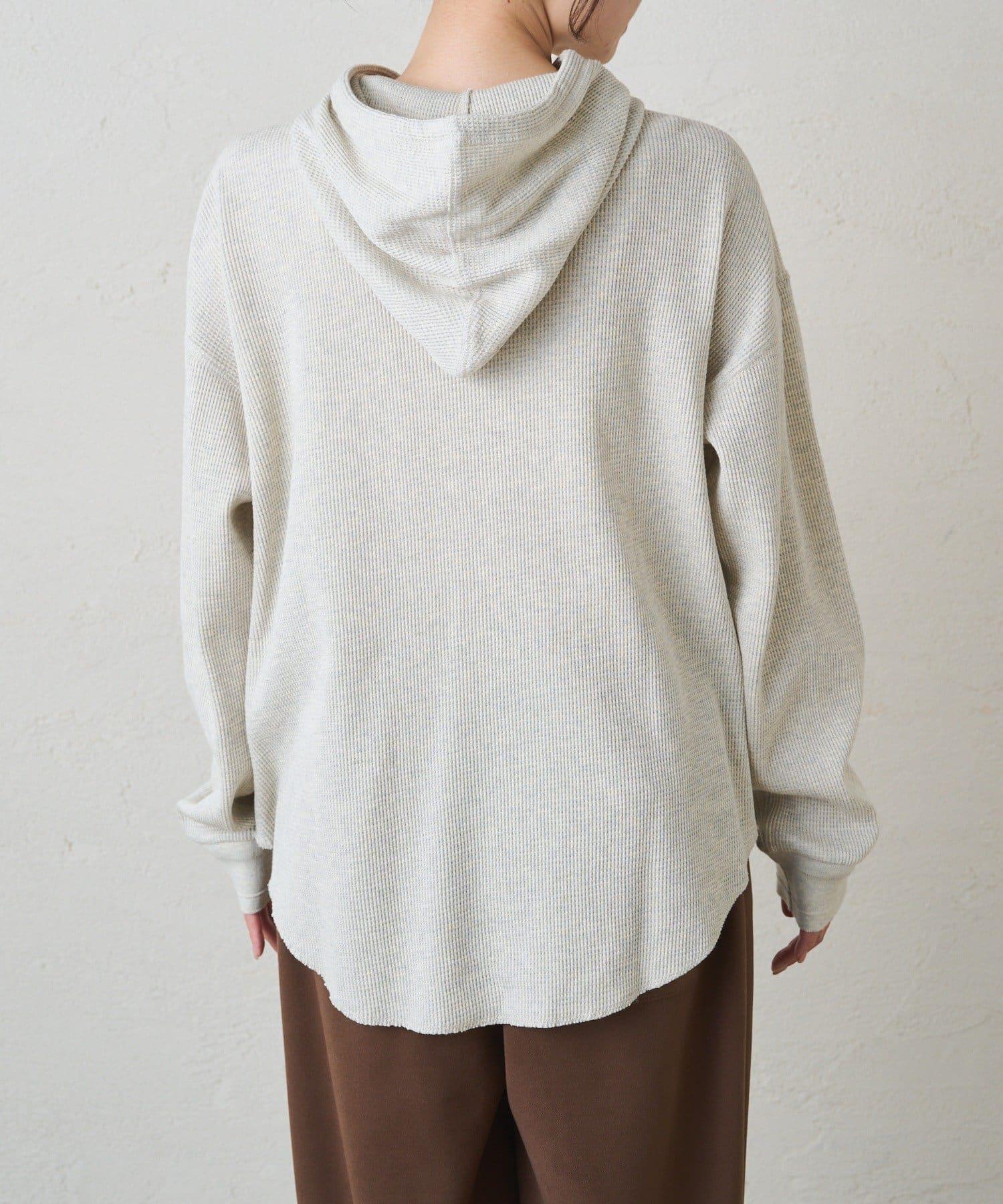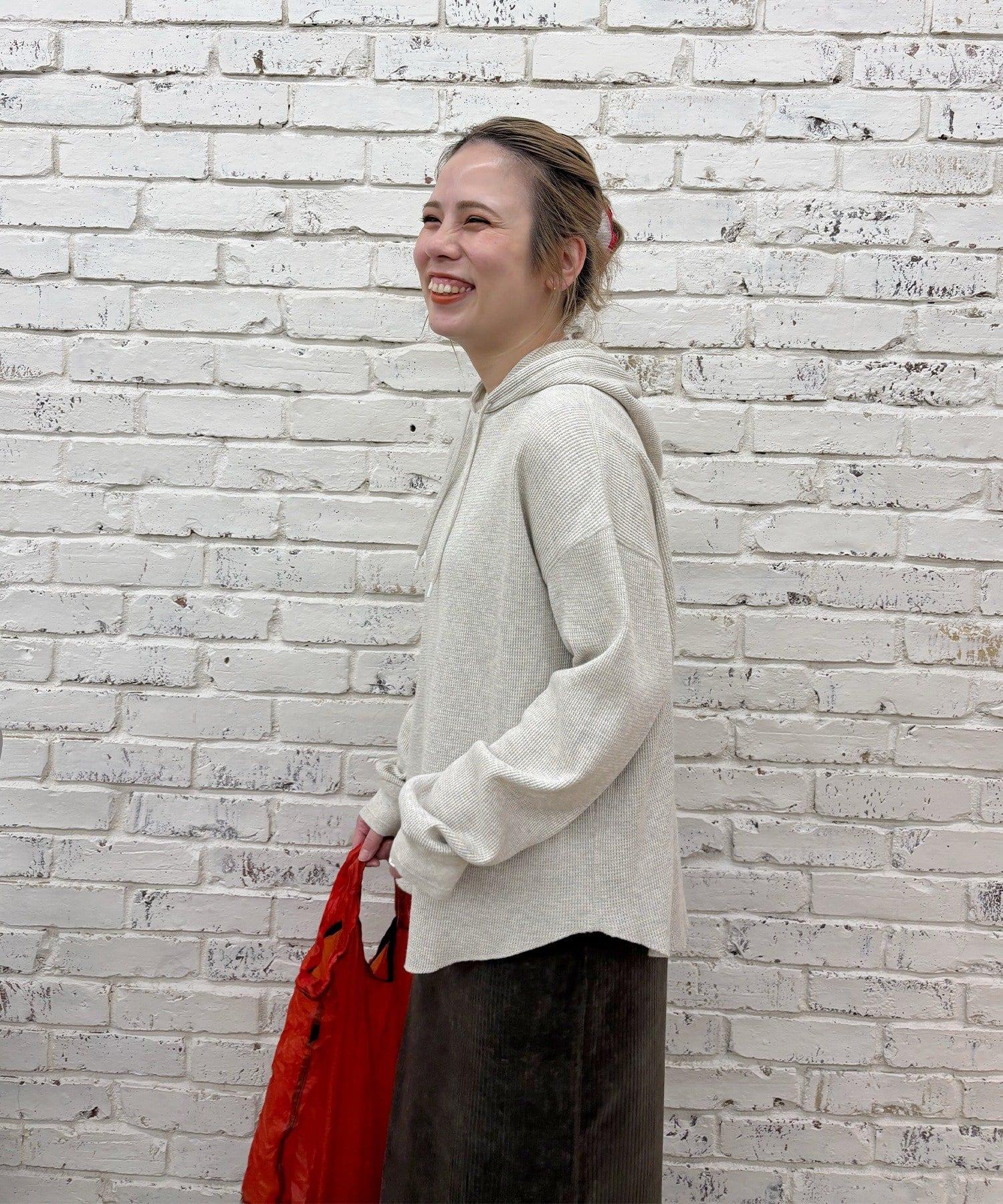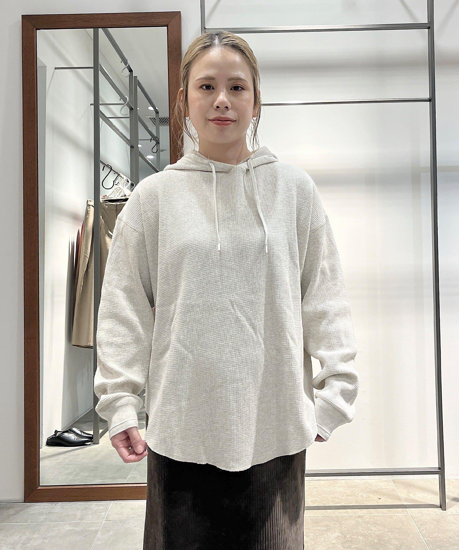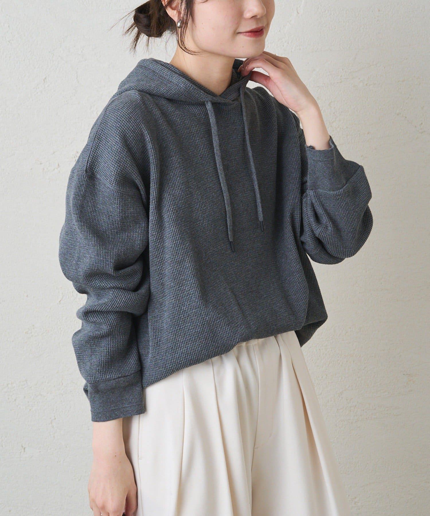 華夫格面料表面凹凸不平,富有表現力,使原本看起來厚重的連帽衫變得輕盈迷人。