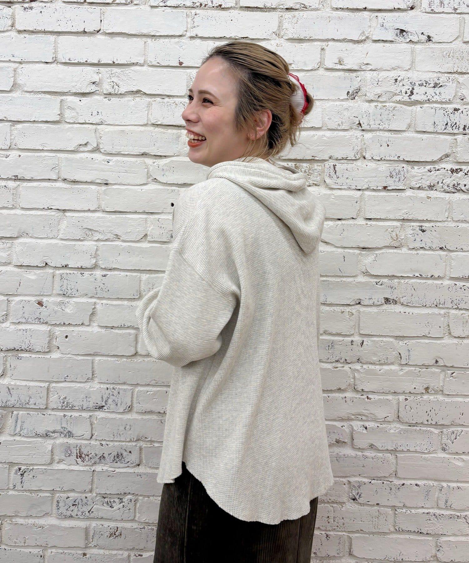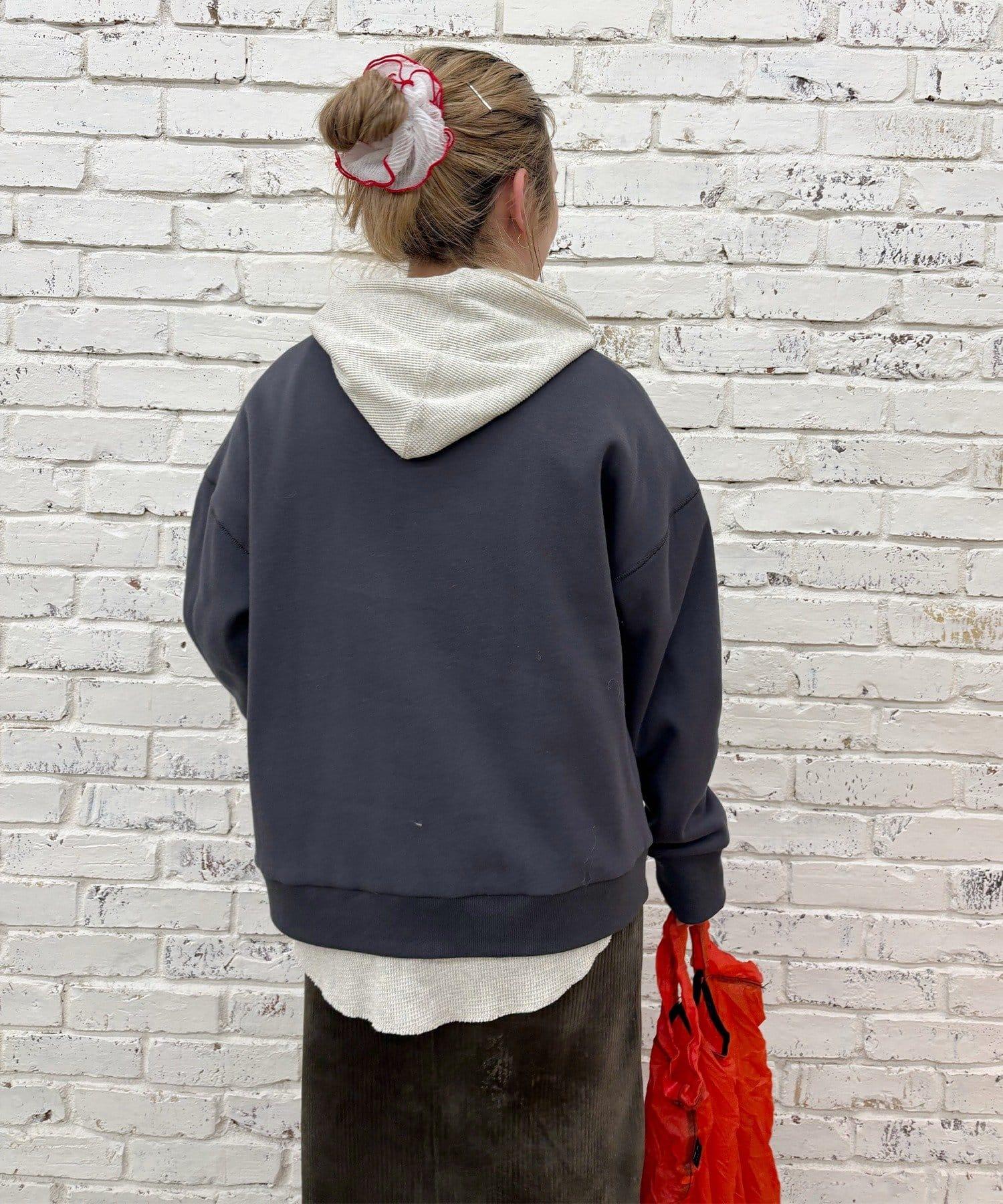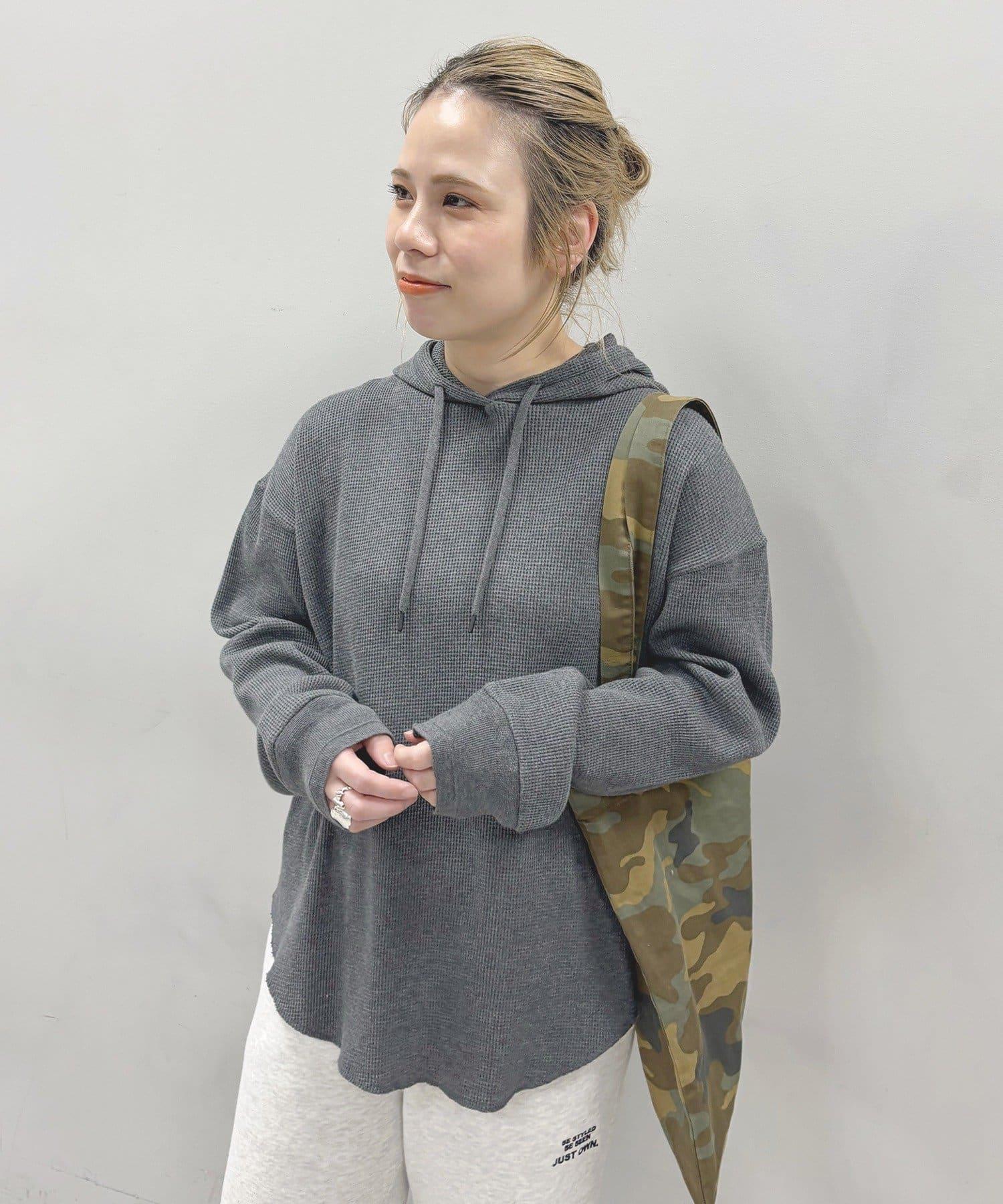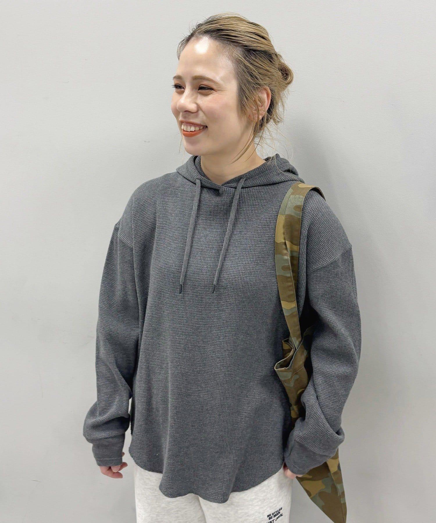 華夫格面料表面凹凸不平,富有表現力,使原本看起來厚重的連帽衫變得輕盈迷人。