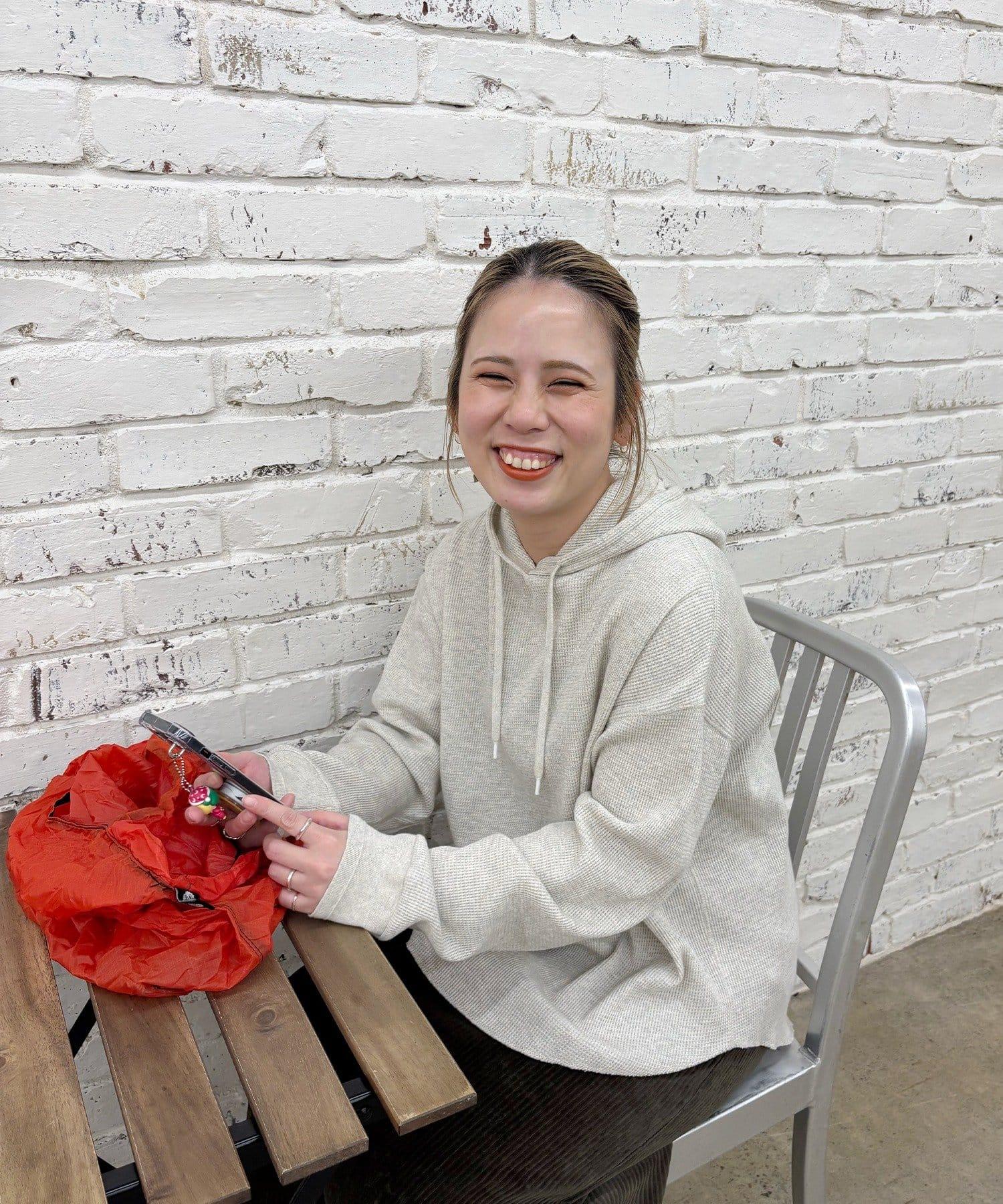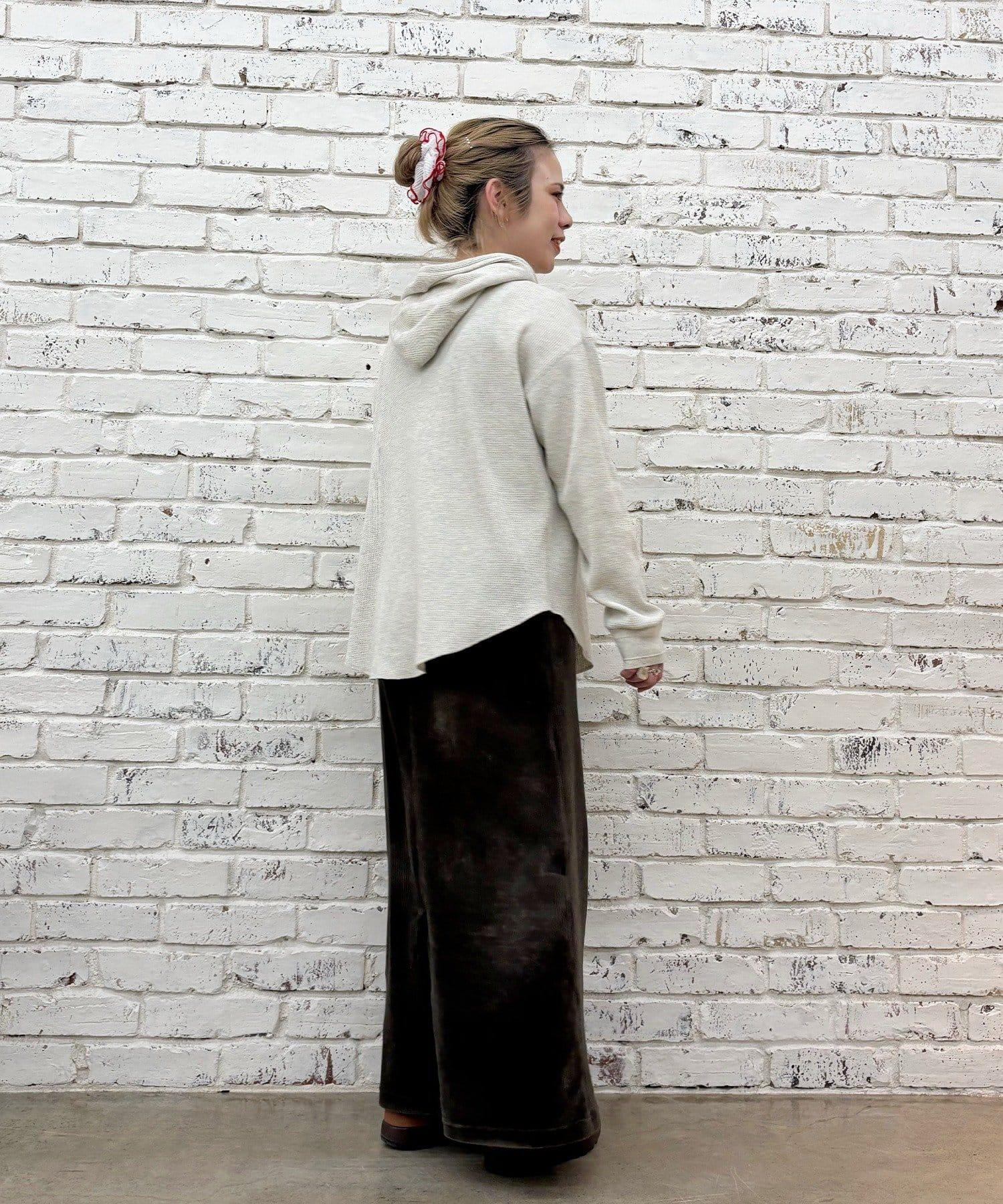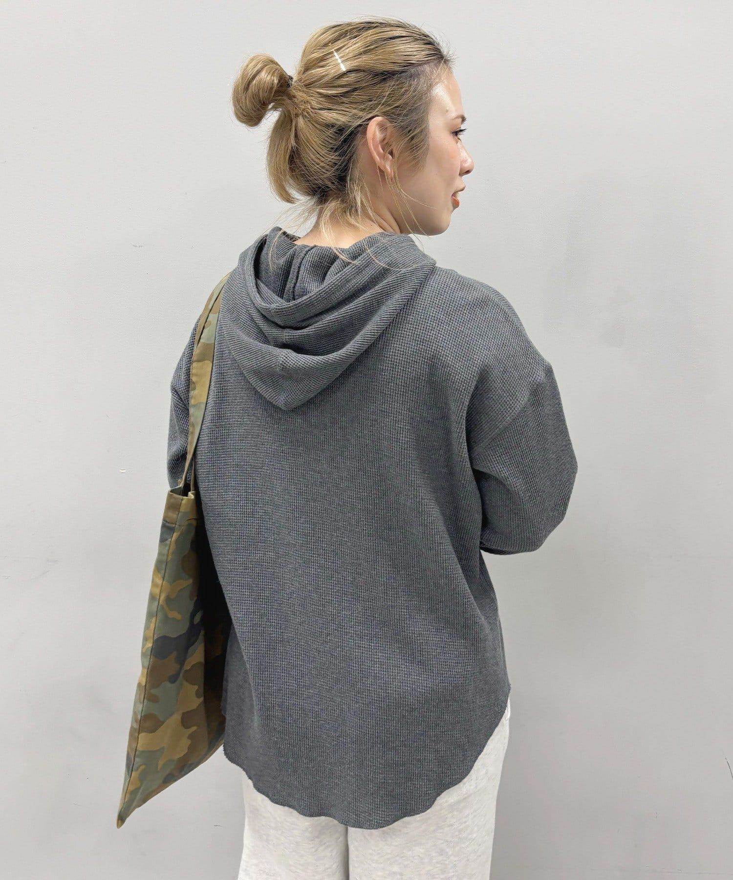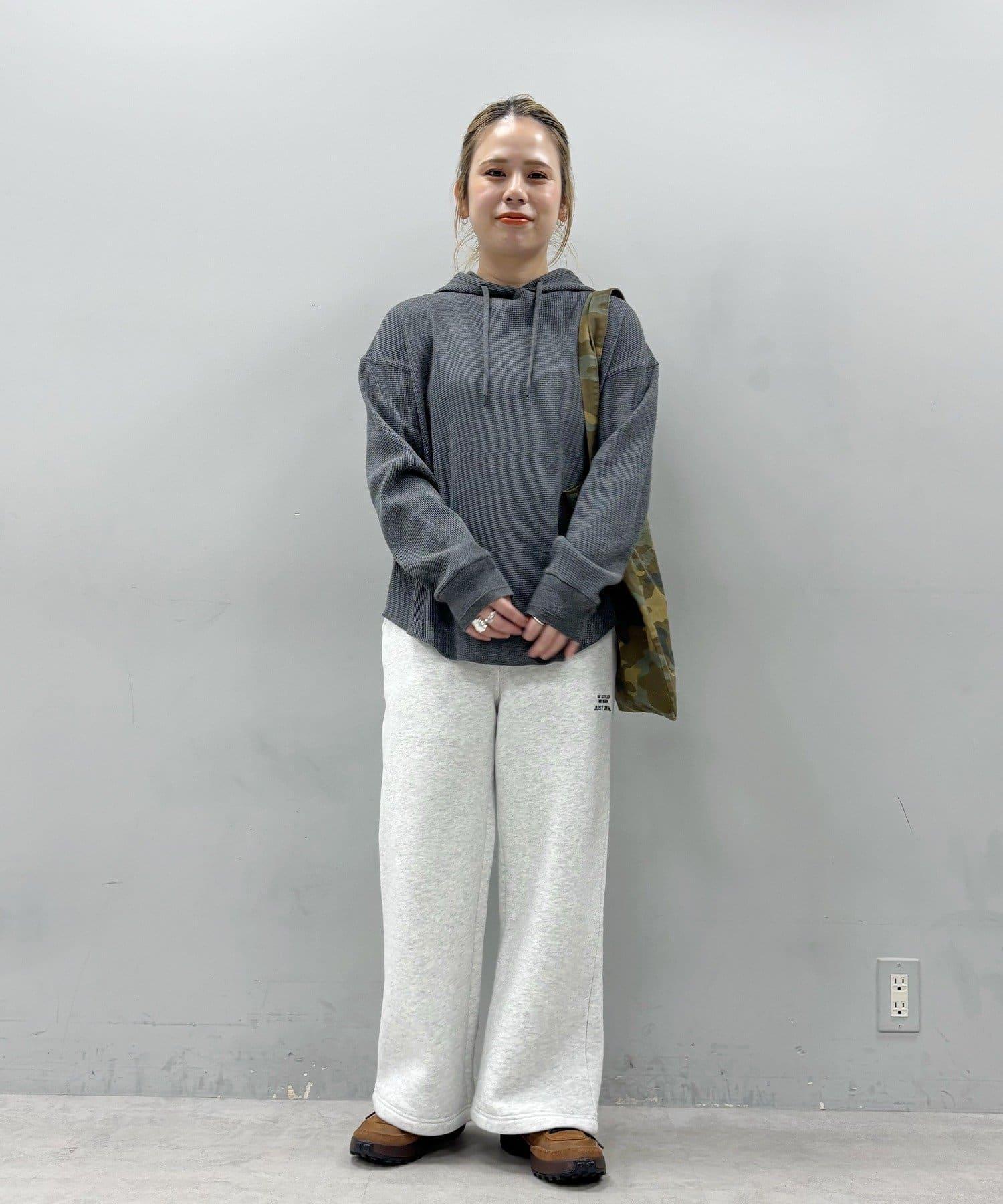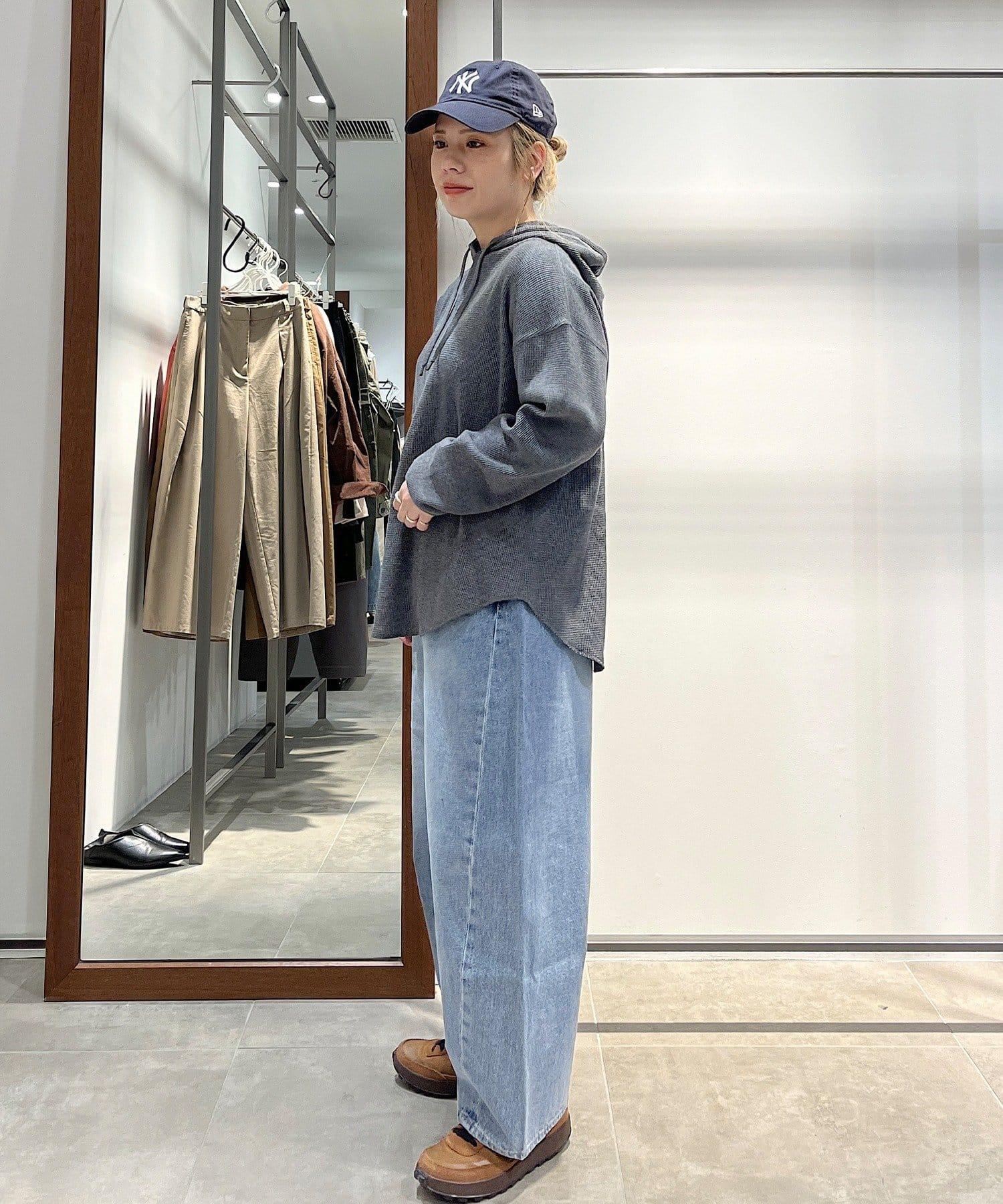華夫格面料表面凹凸不平,富有表現力,使原本看起來厚重的連帽衫變得輕盈迷人。