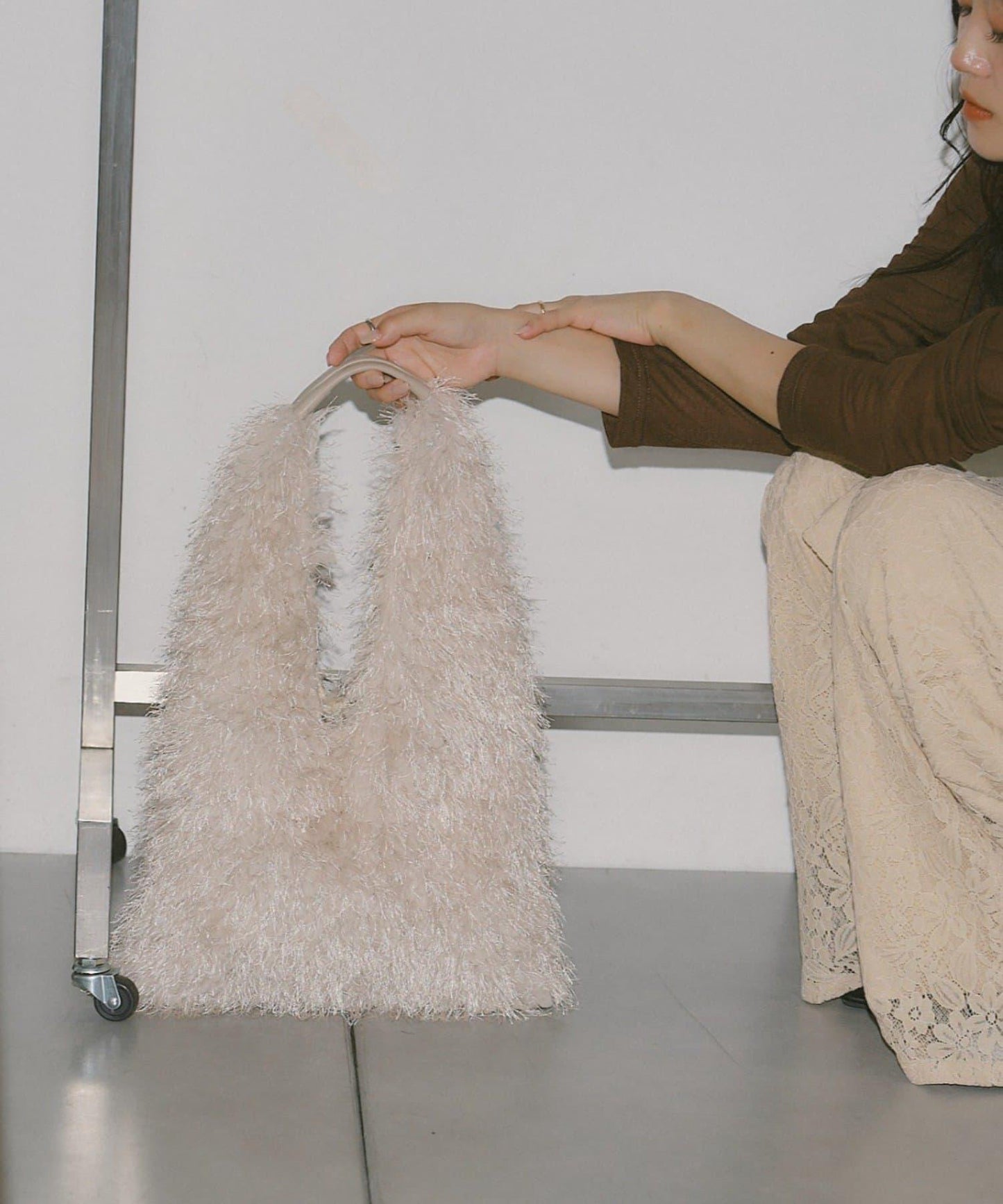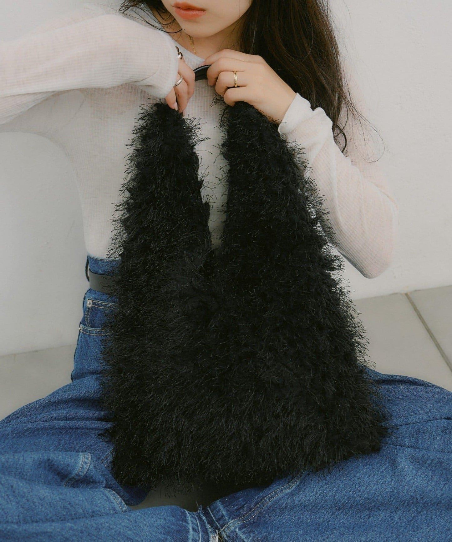 一款帶有蓬鬆長流蘇的手袋。