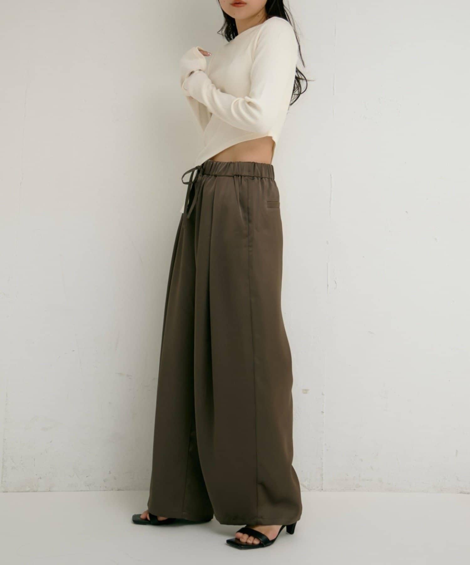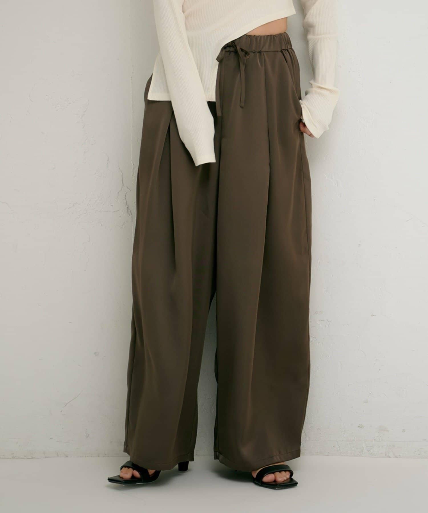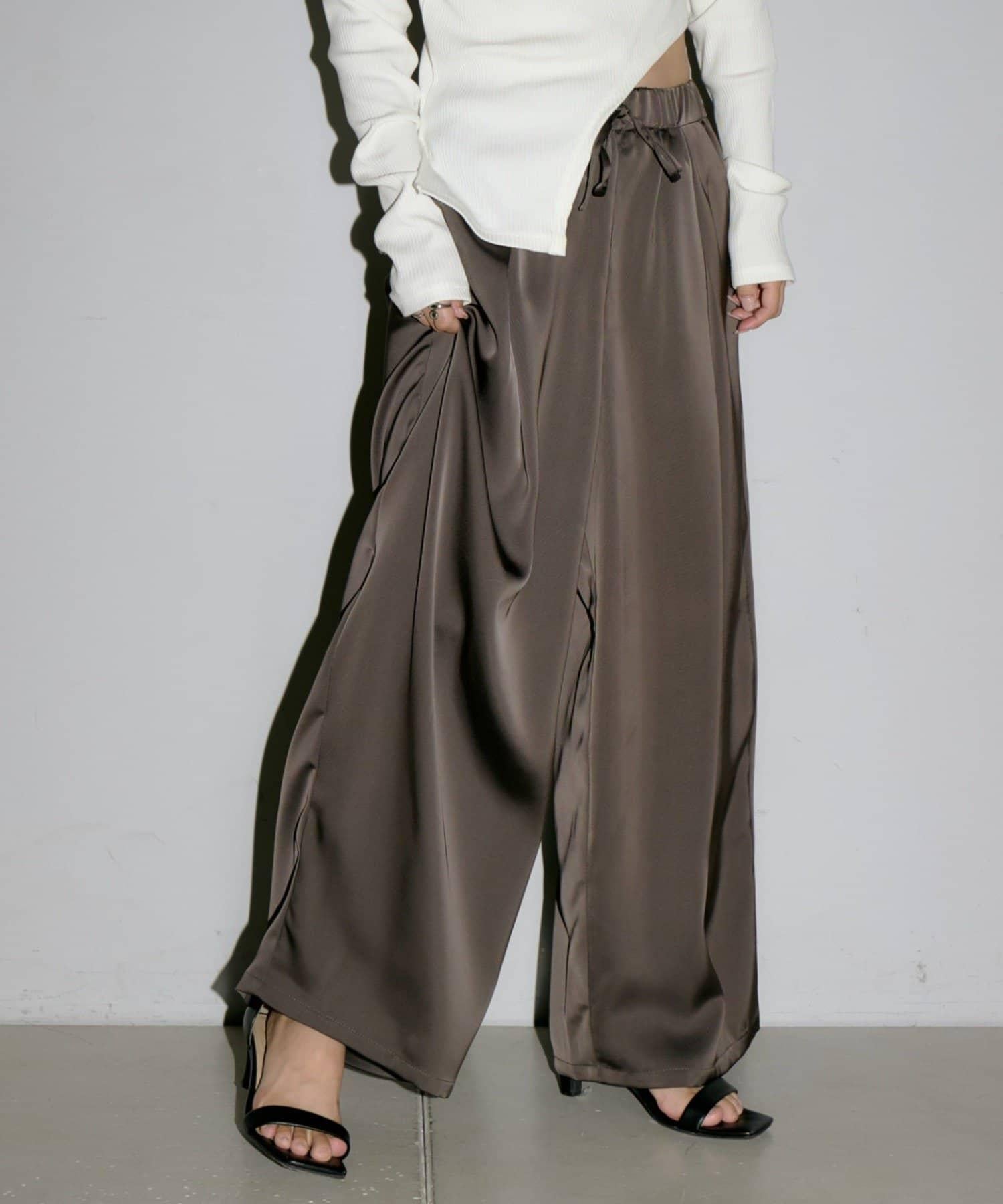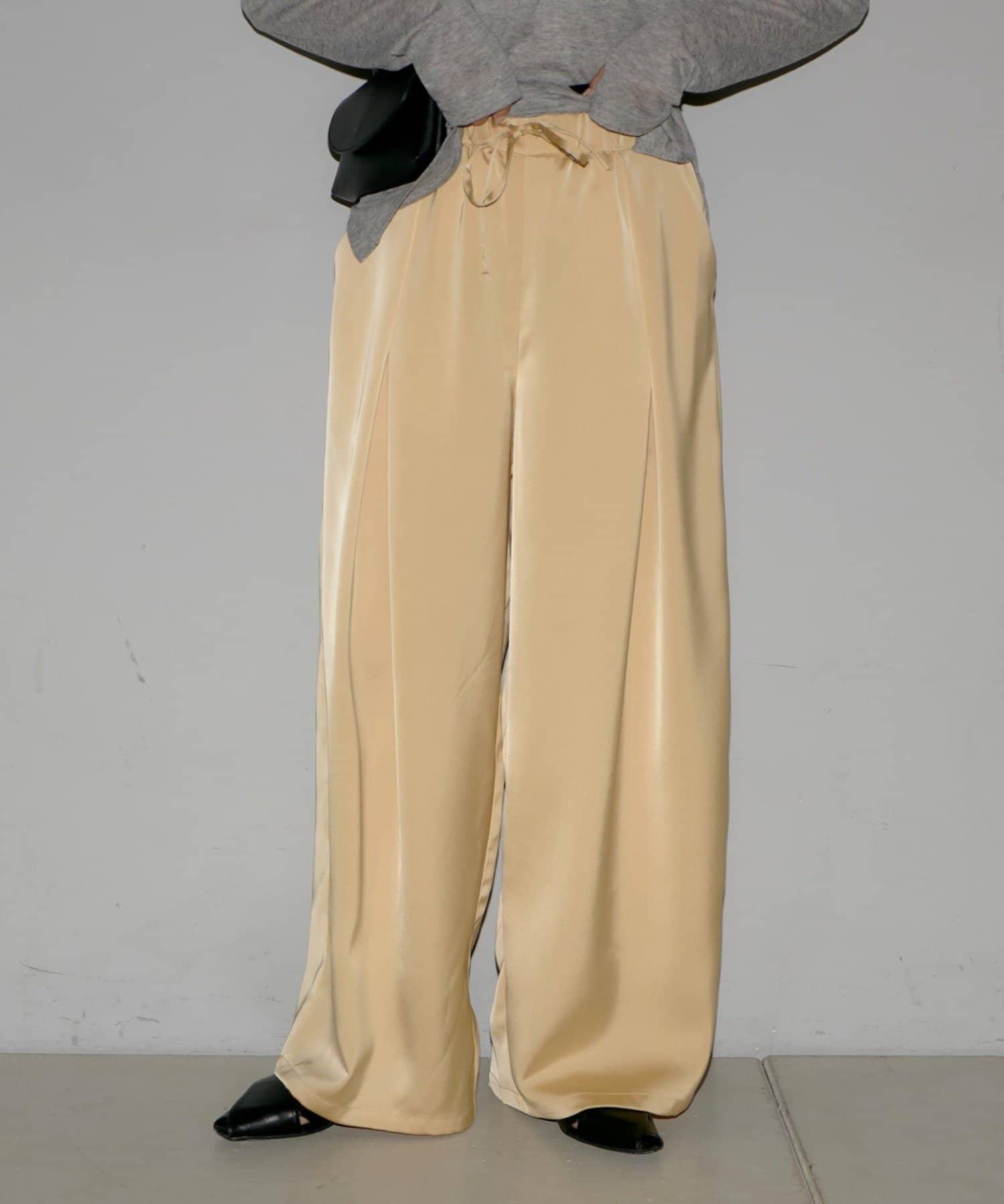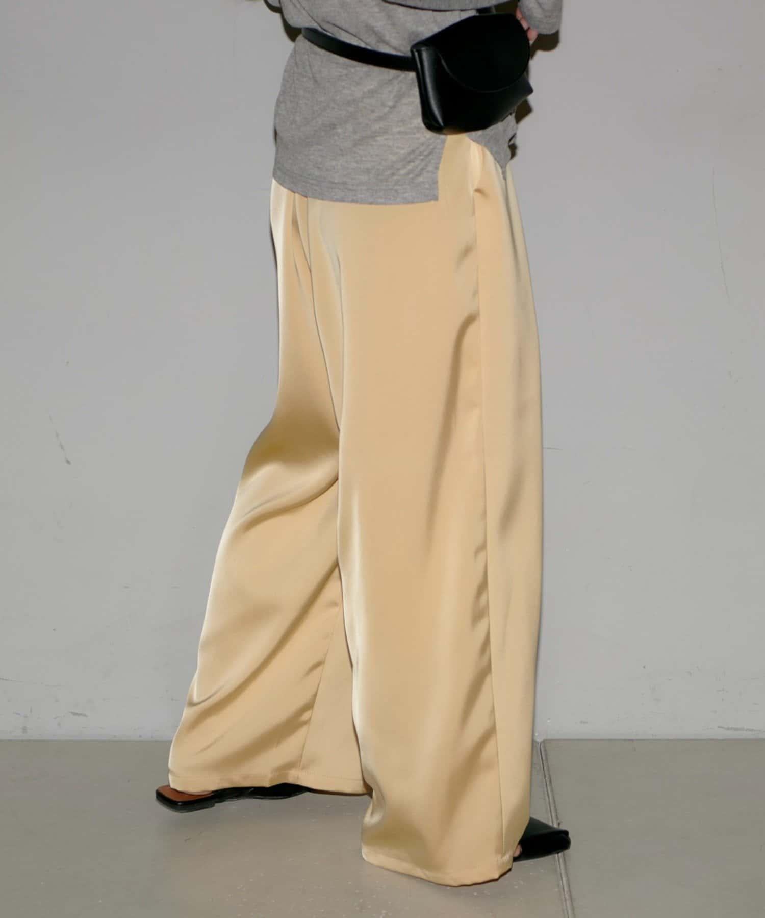 【yomo企畫】緞面褶皺寬鬆休閒褲