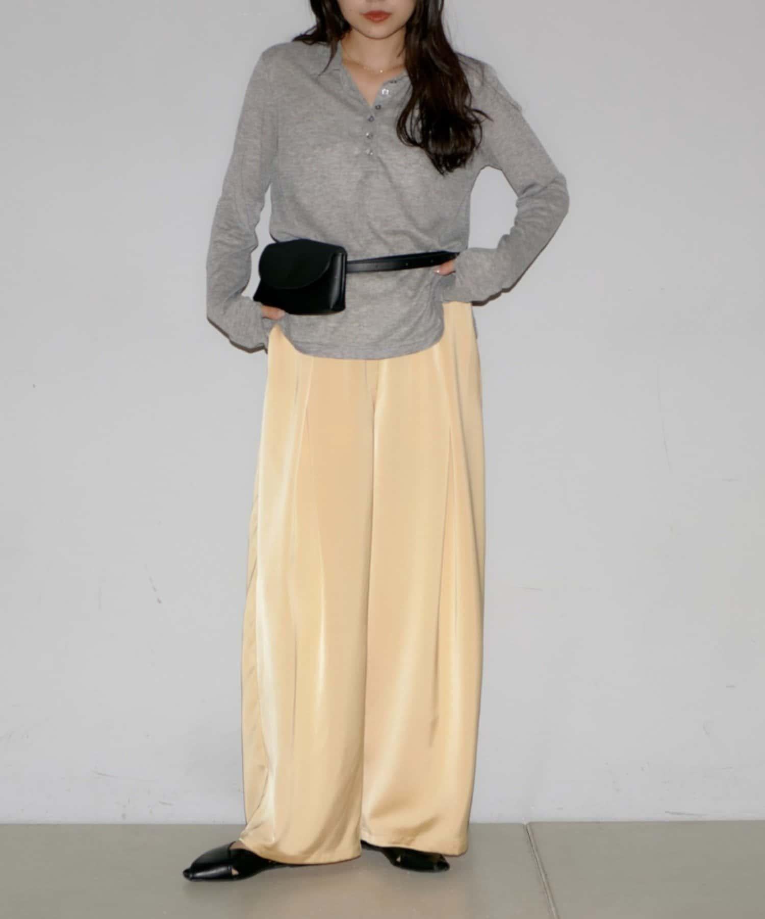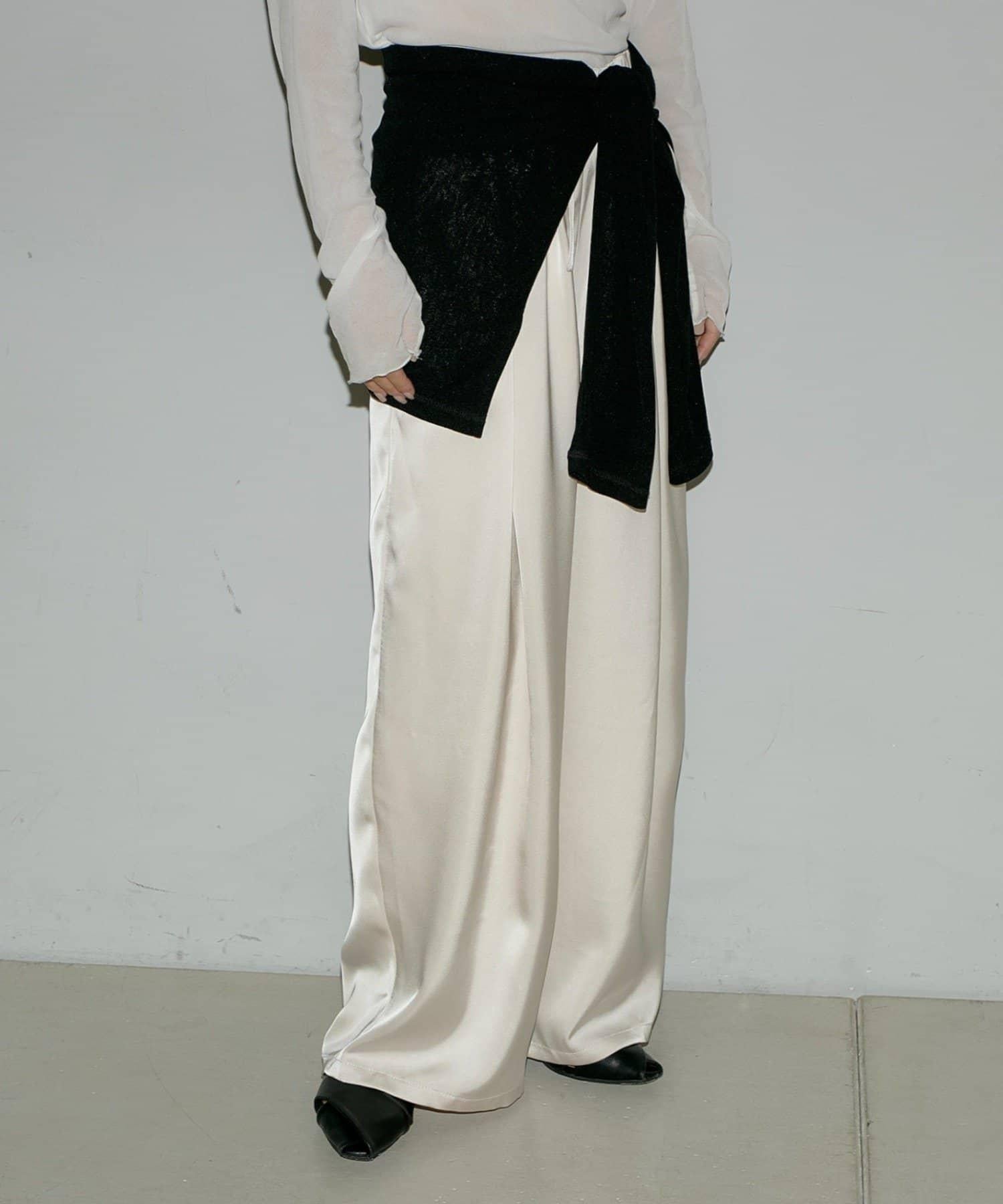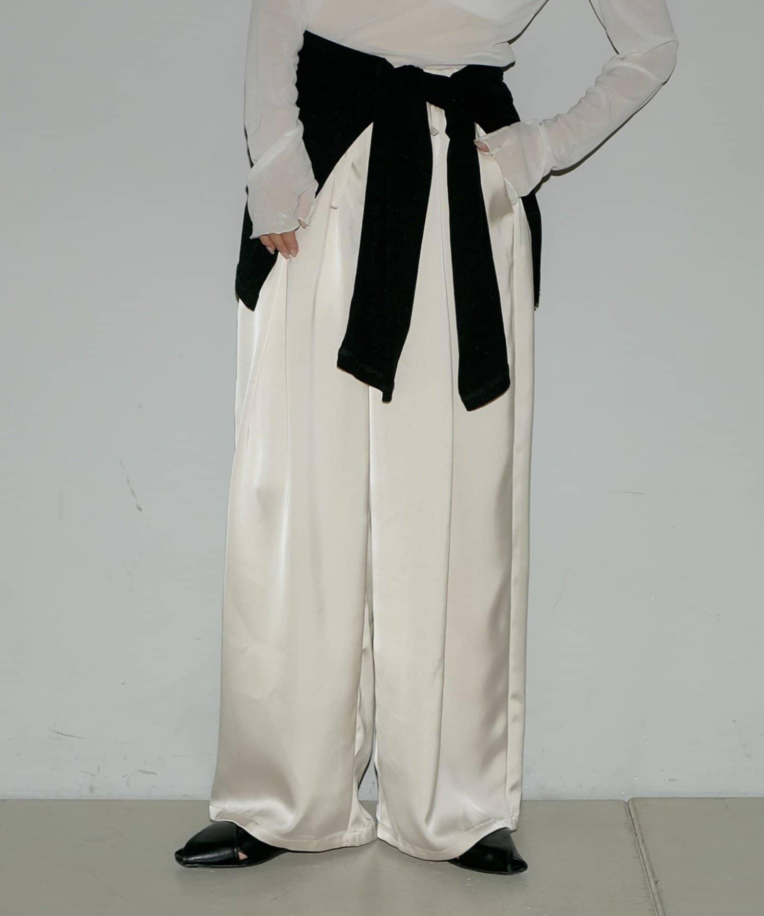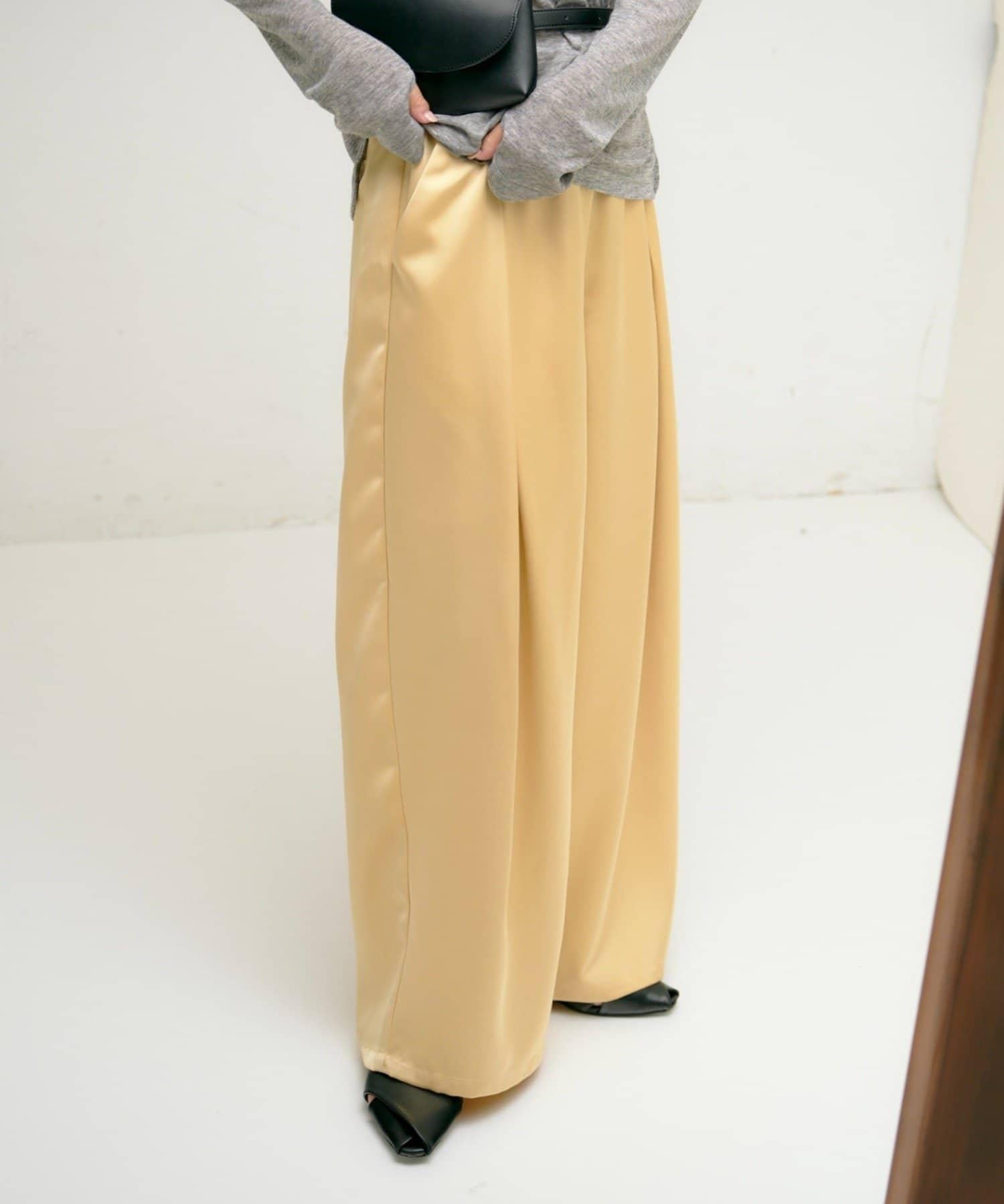 【yomo企畫】緞面褶皺寬鬆休閒褲