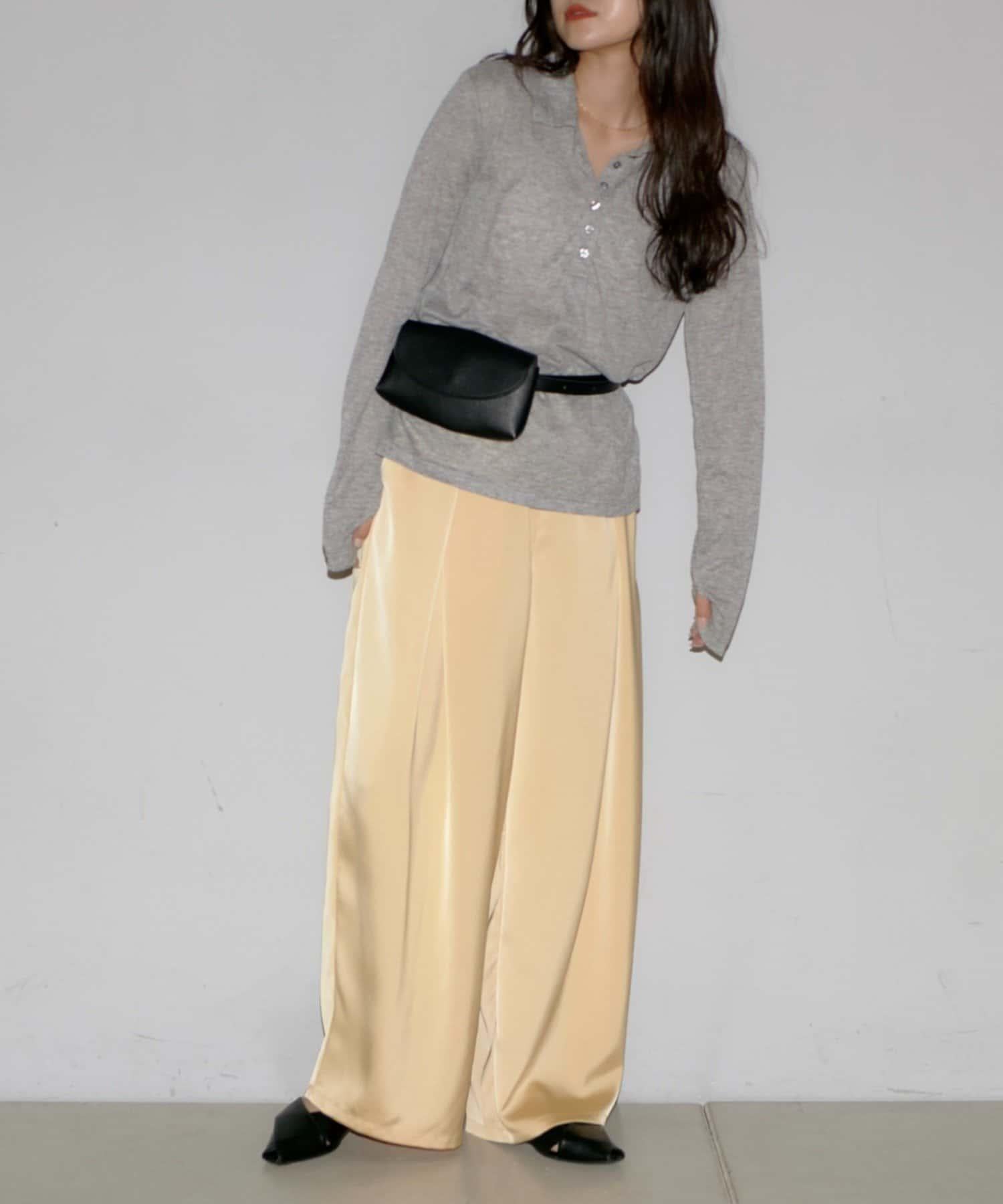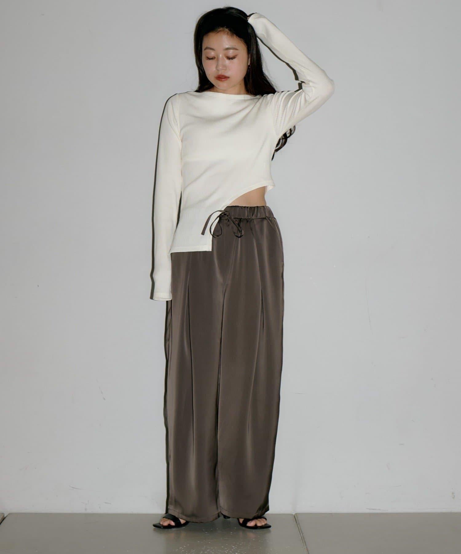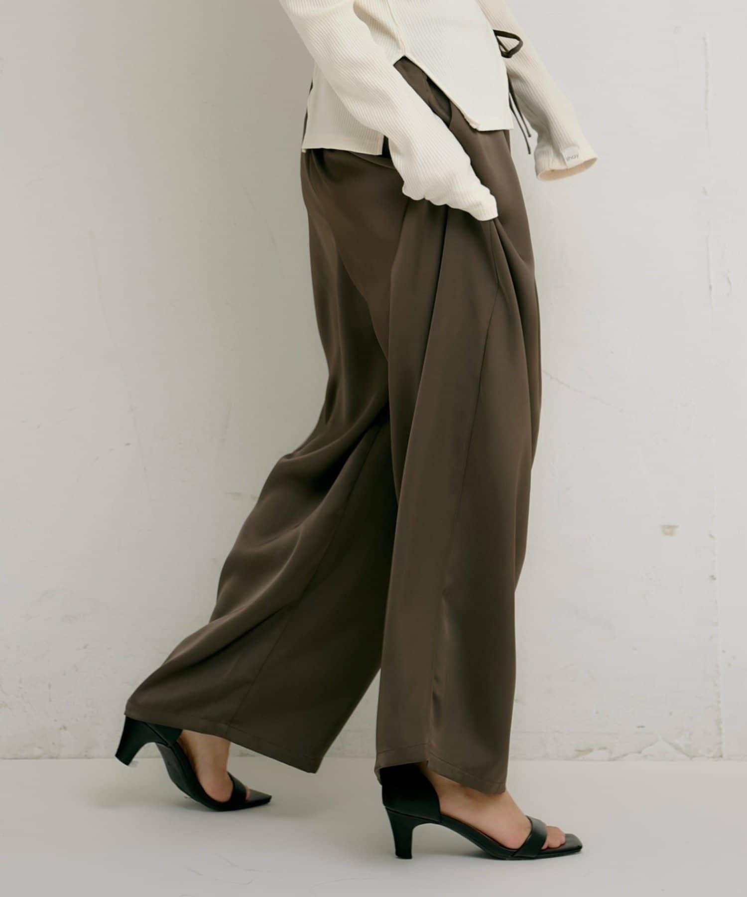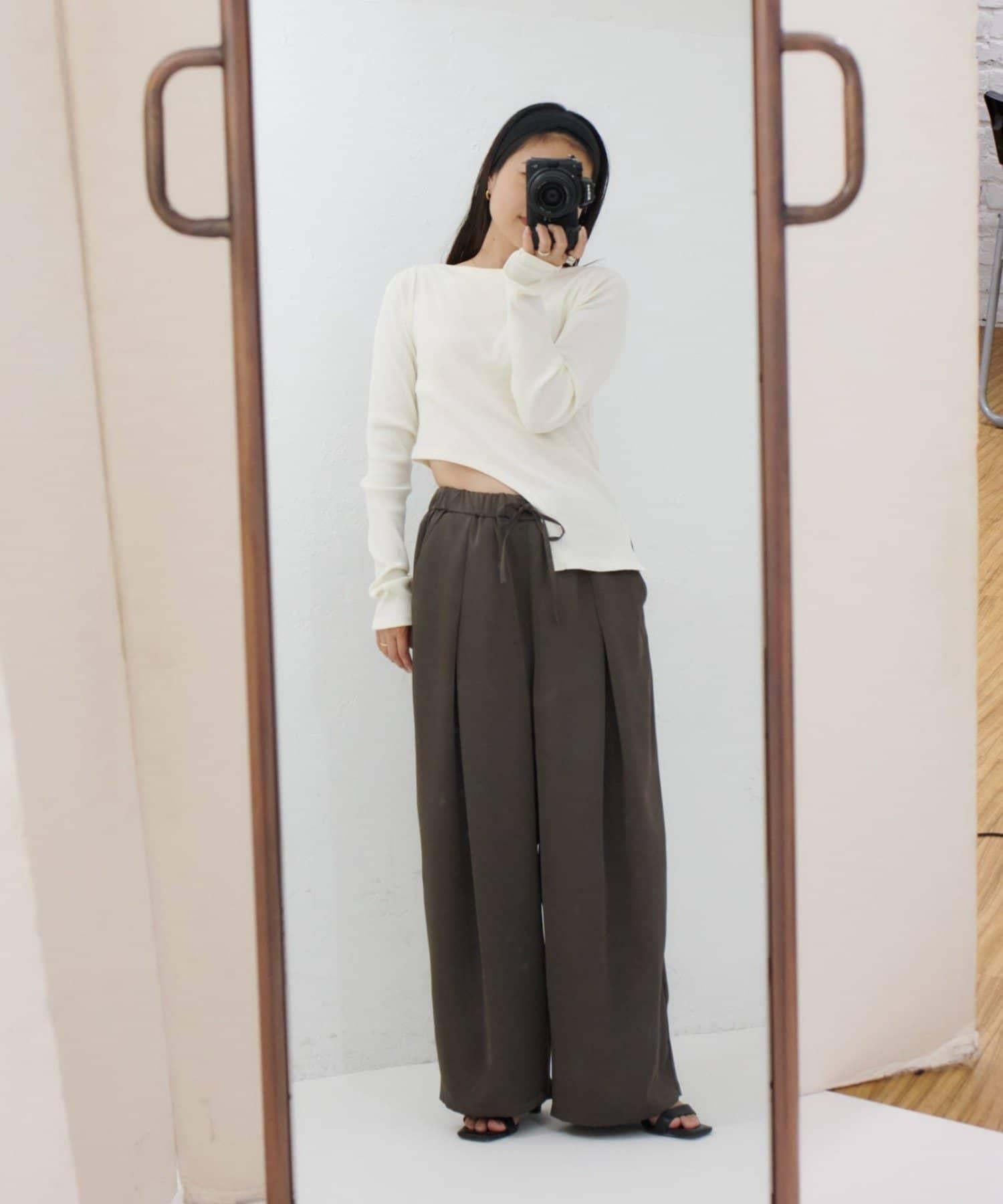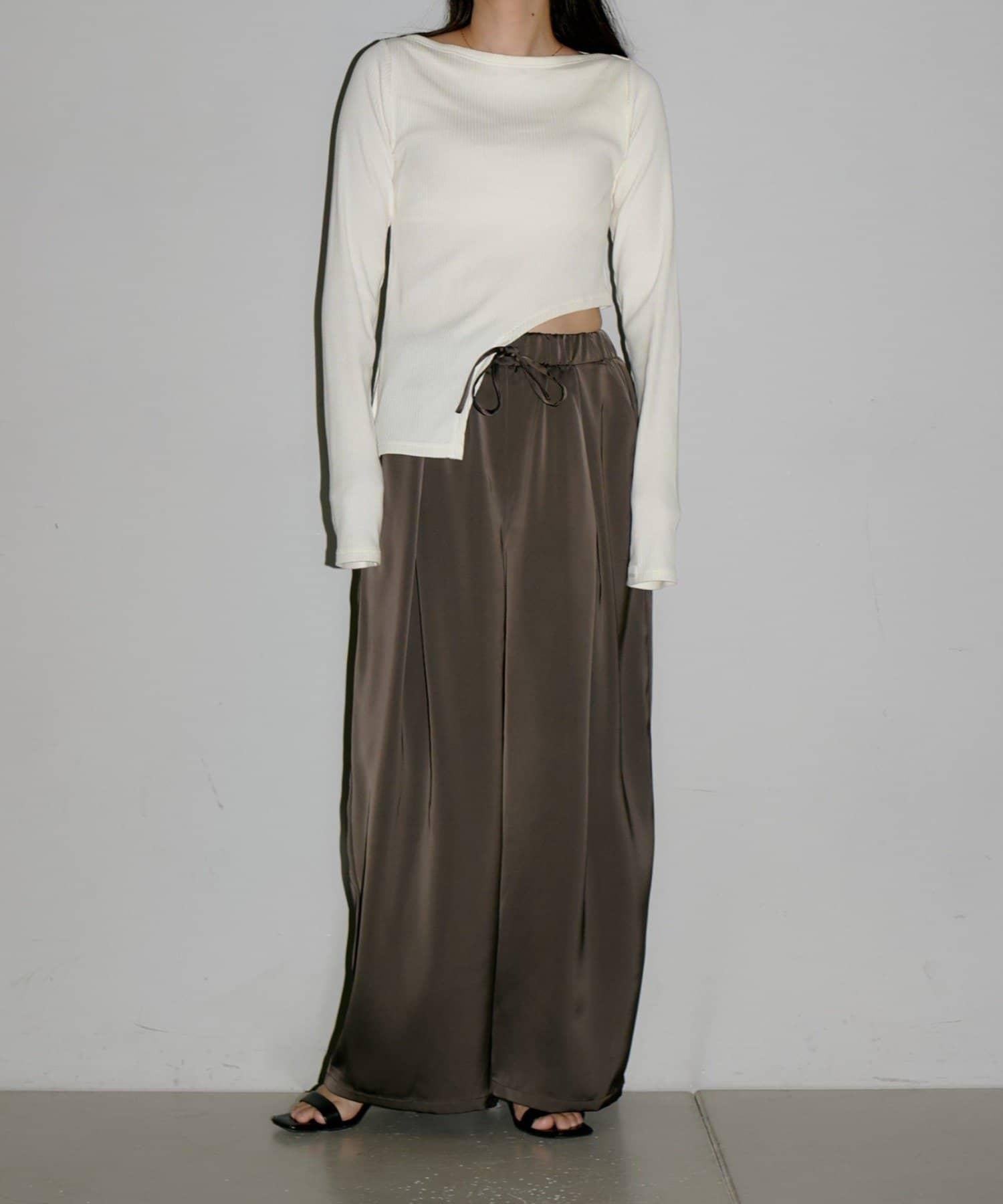 【yomo企畫】緞面褶皺寬鬆休閒褲