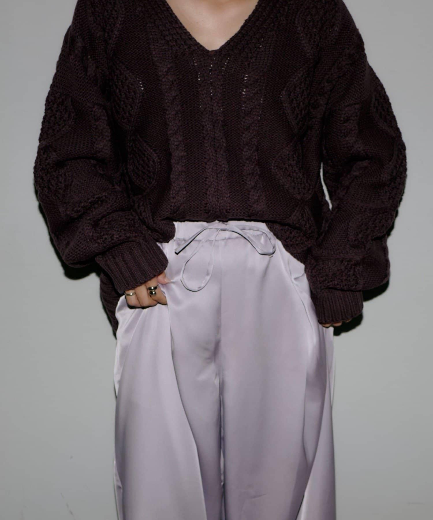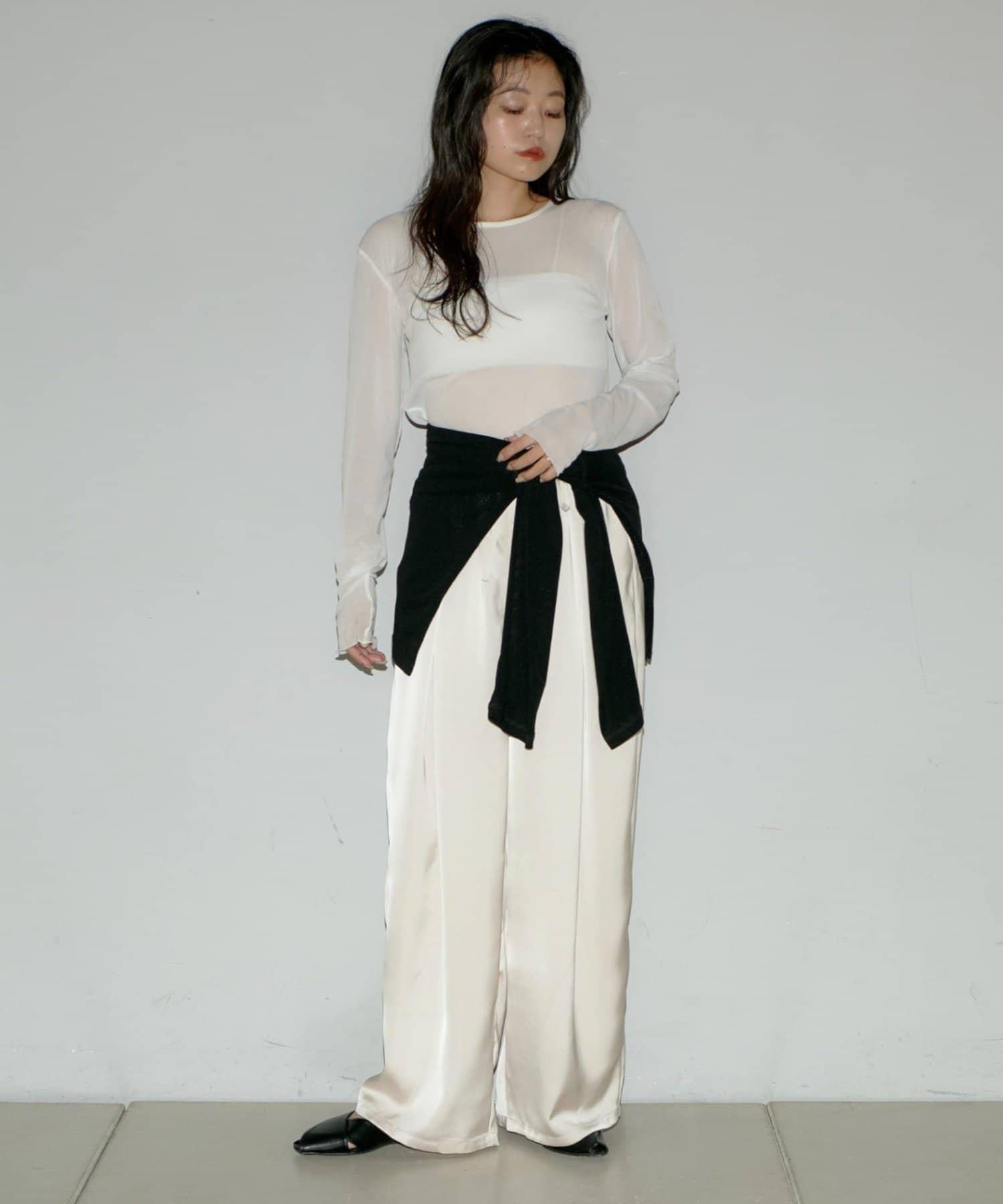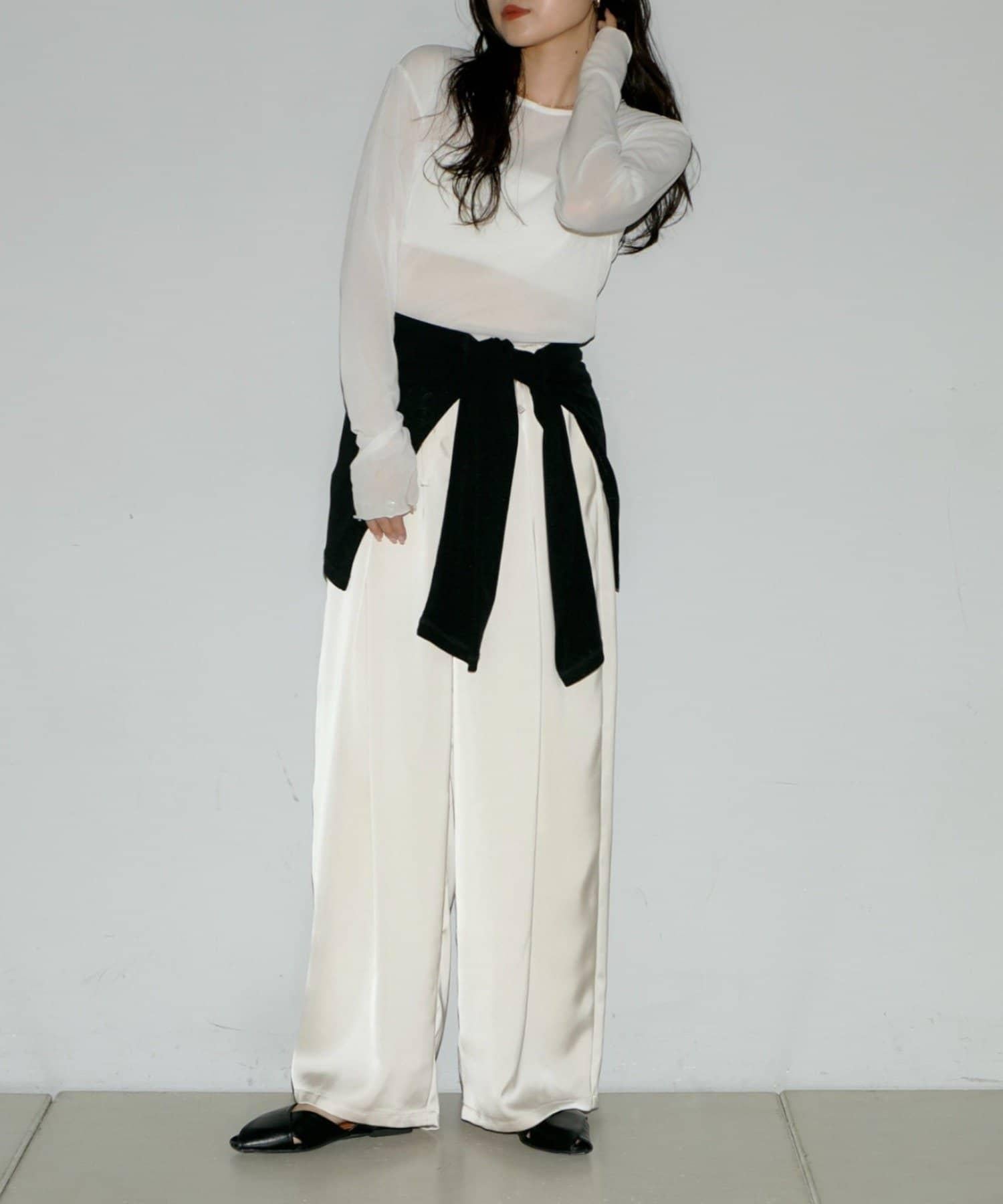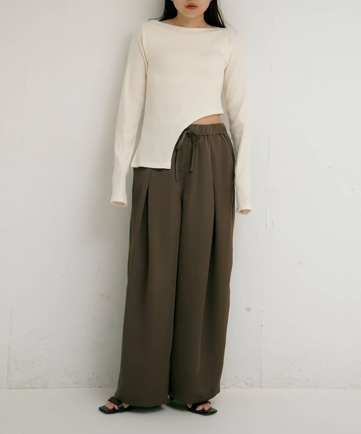 【yomo企畫】緞面褶皺寬鬆休閒褲