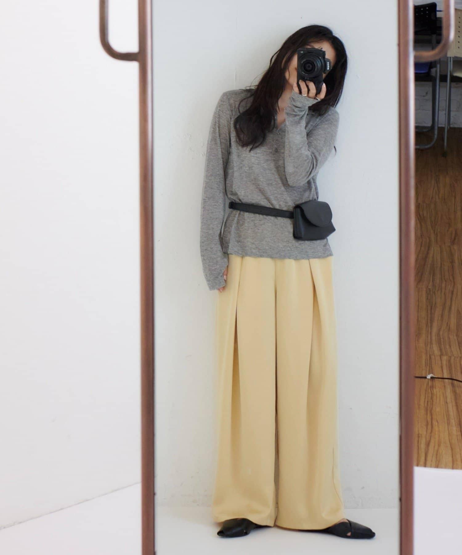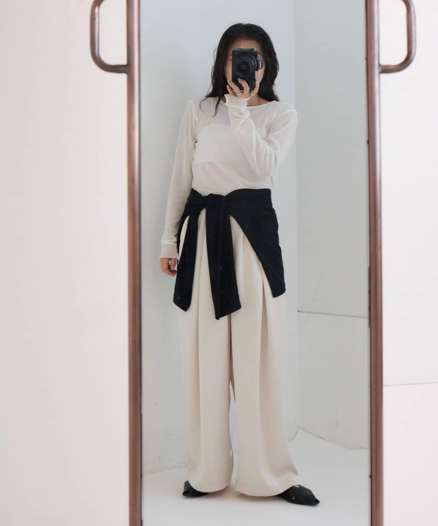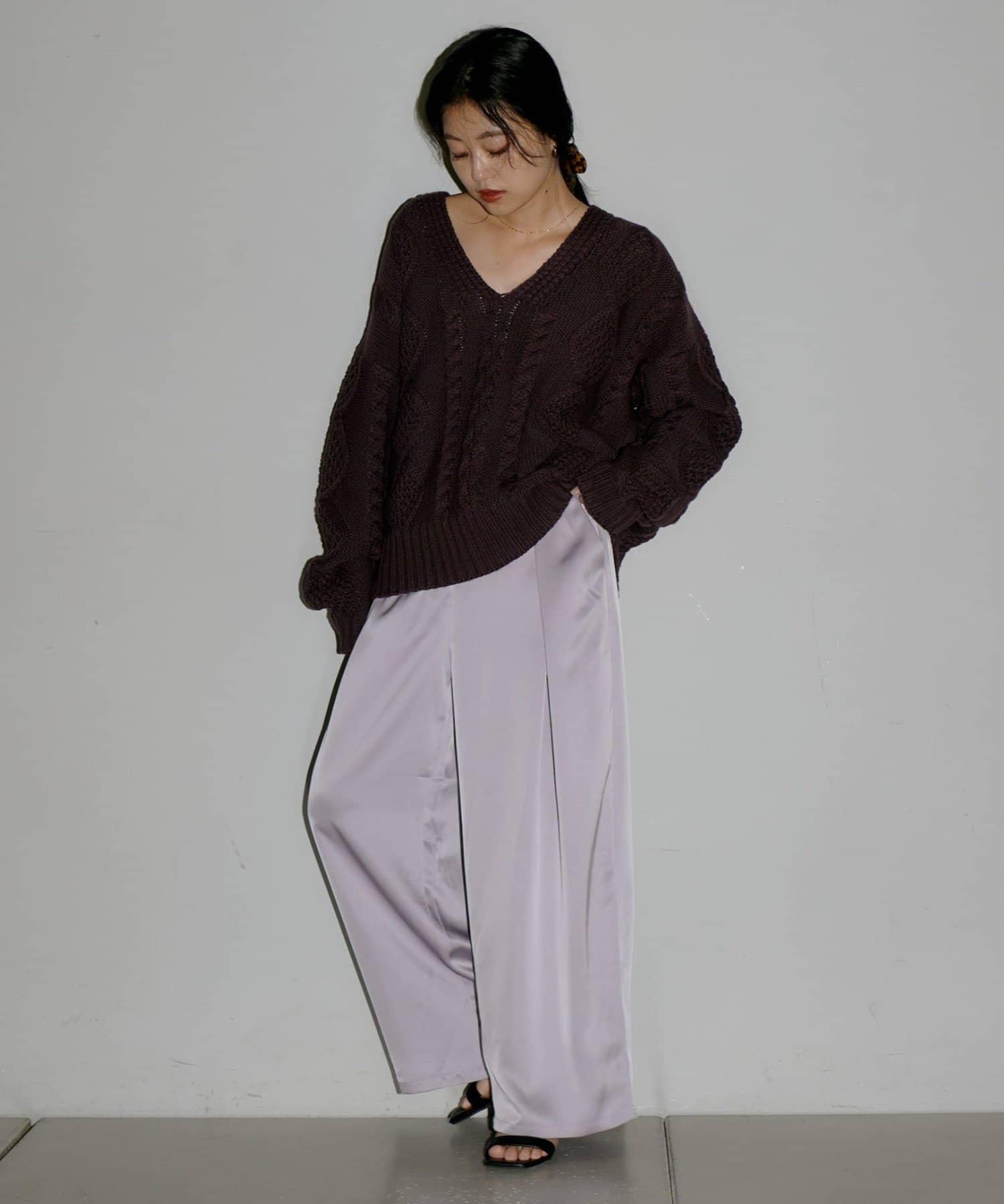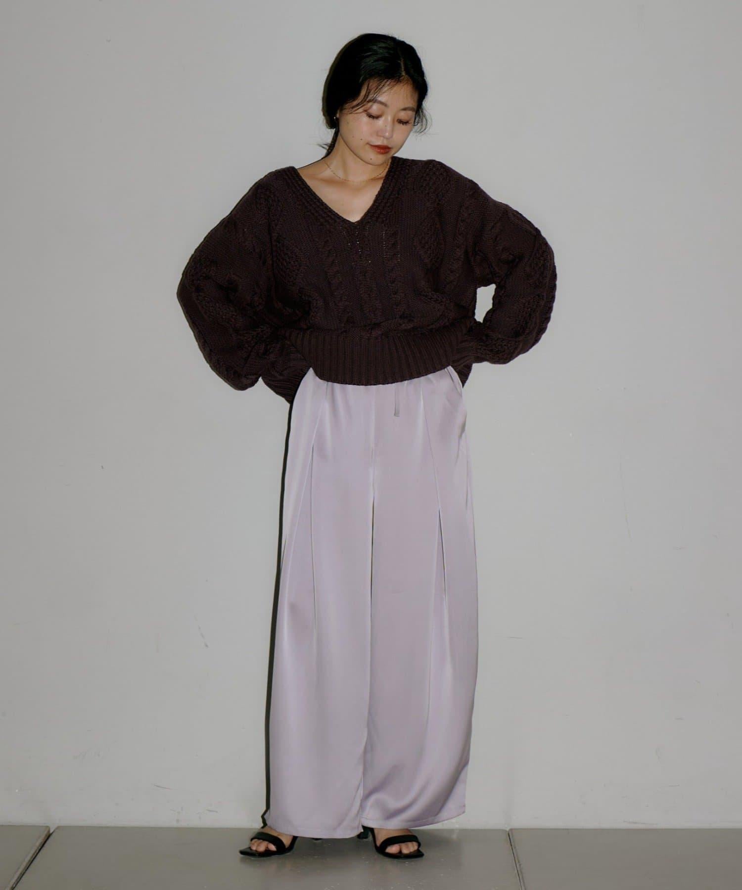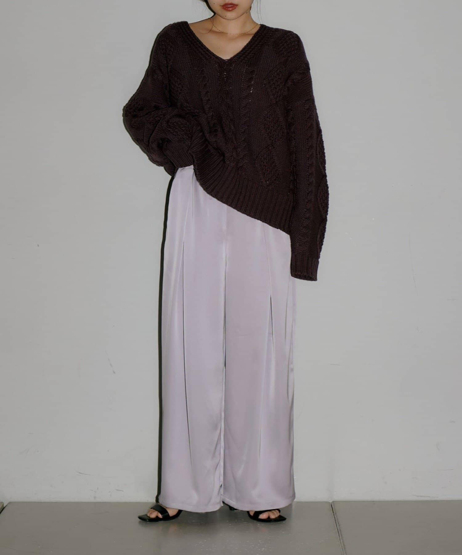 【yomo企畫】緞面褶皺寬鬆休閒褲