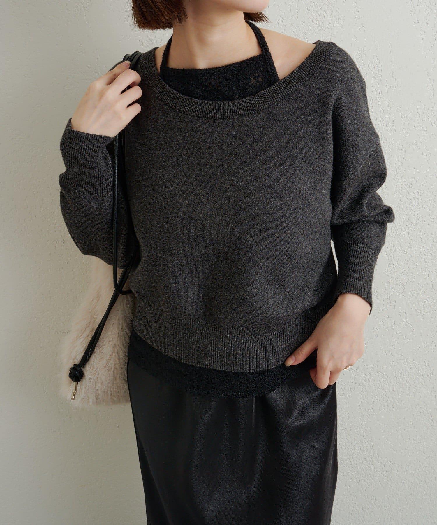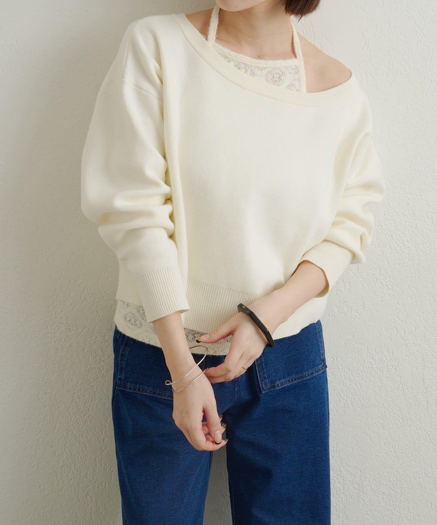 【yuina企畫】蕾絲束身上衣×針織套裝
