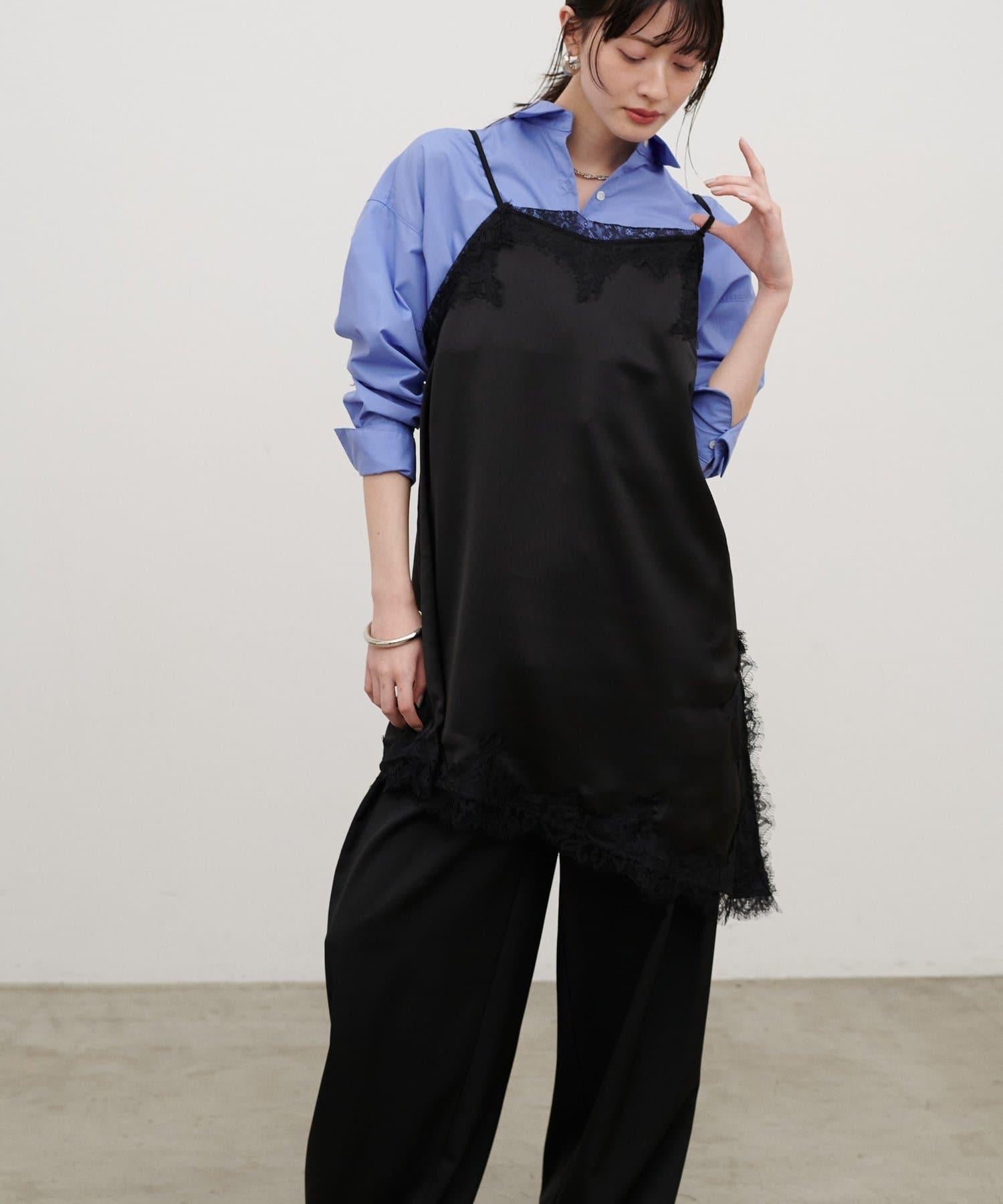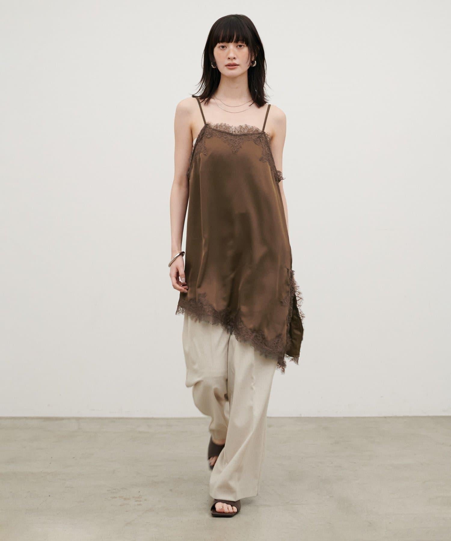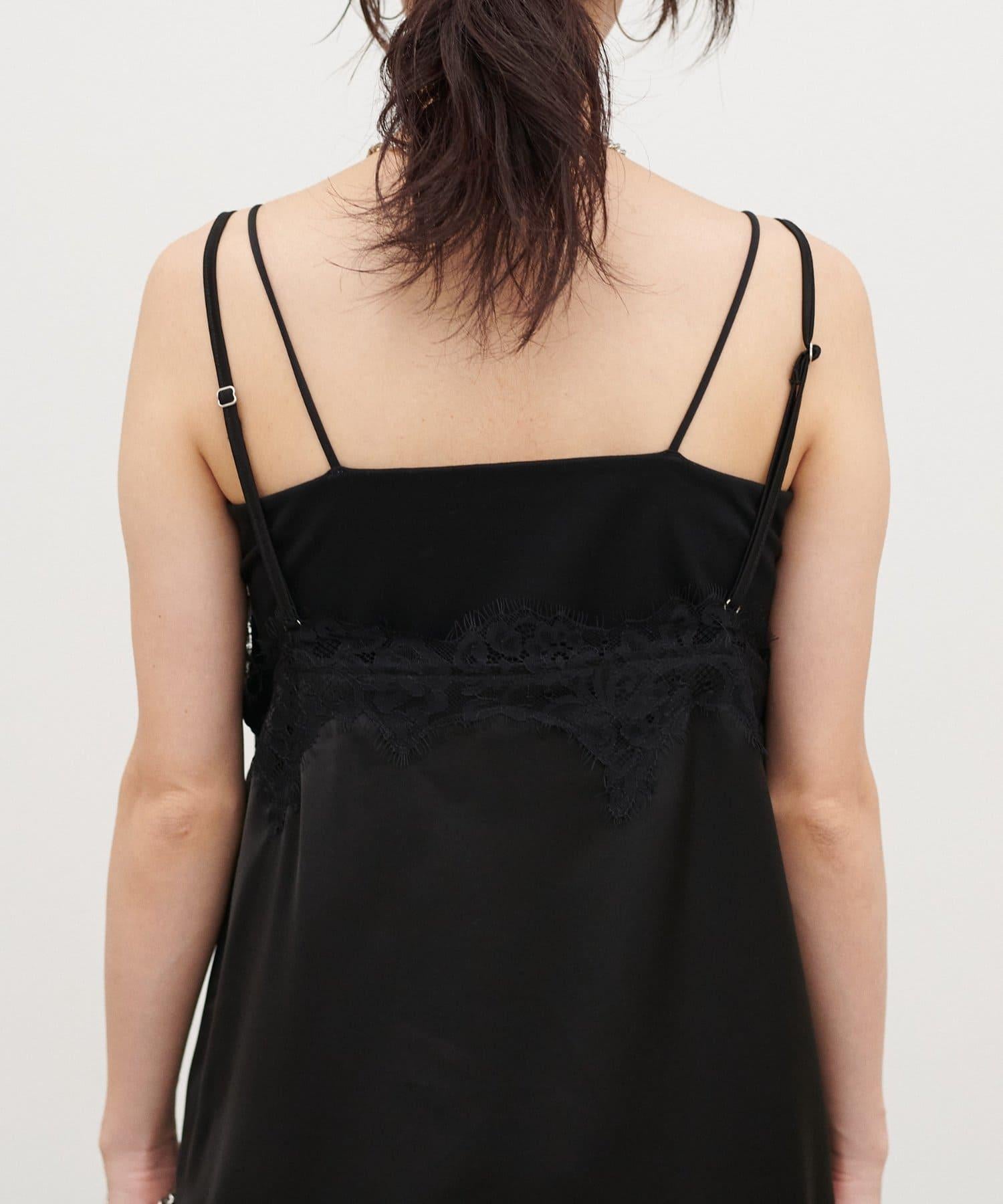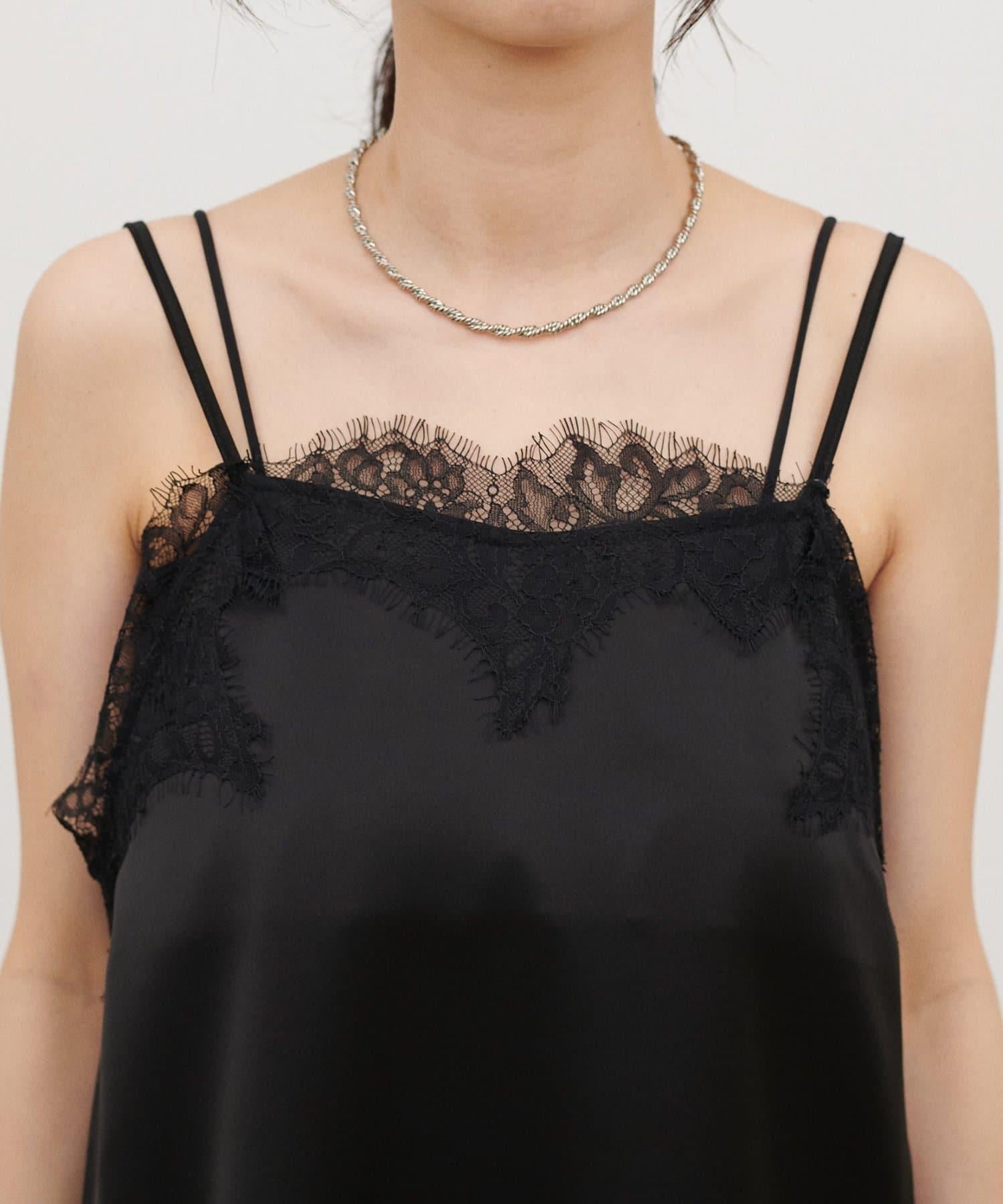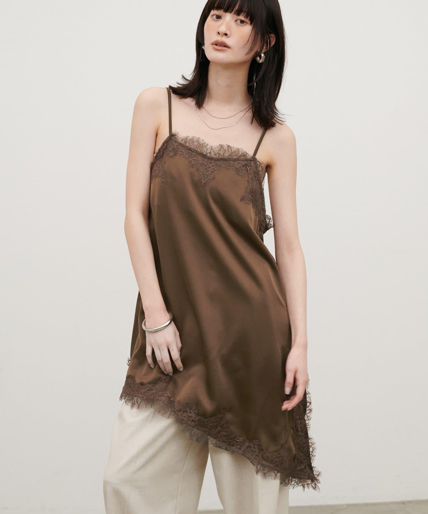[Yurie Pick] 緞面不對稱蕾絲吊帶衫