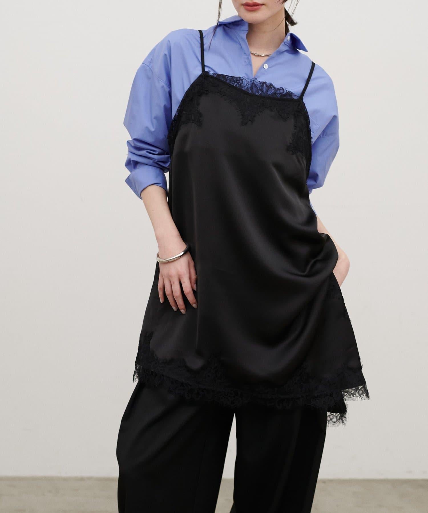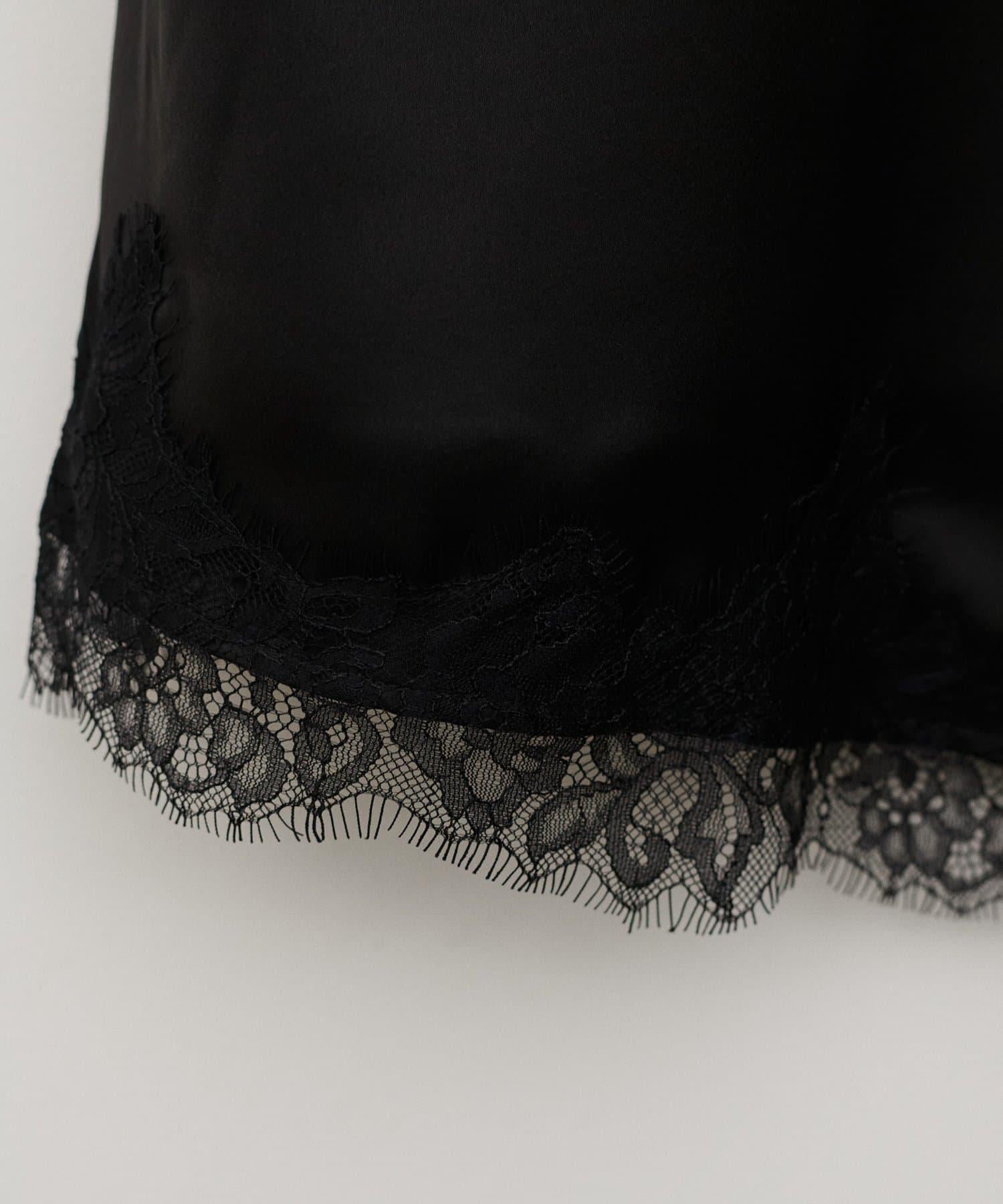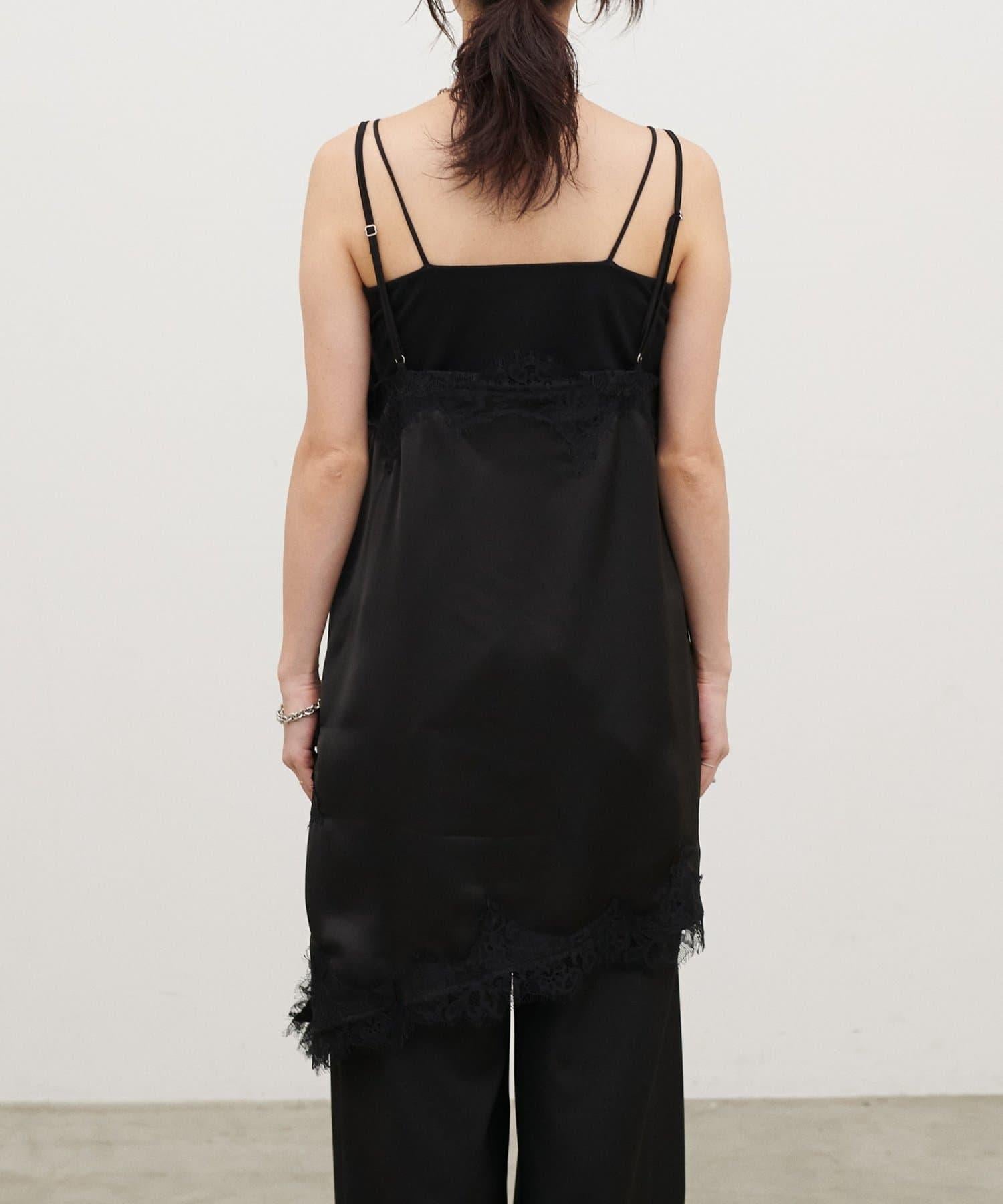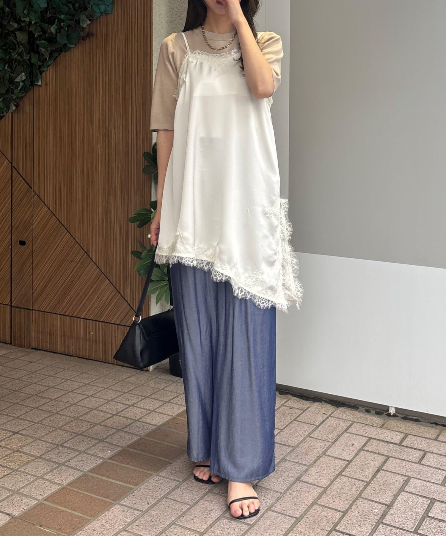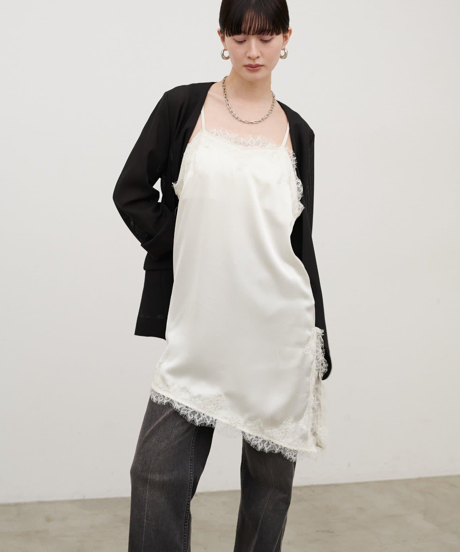 [Yurie Pick] 緞面不對稱蕾絲吊帶衫