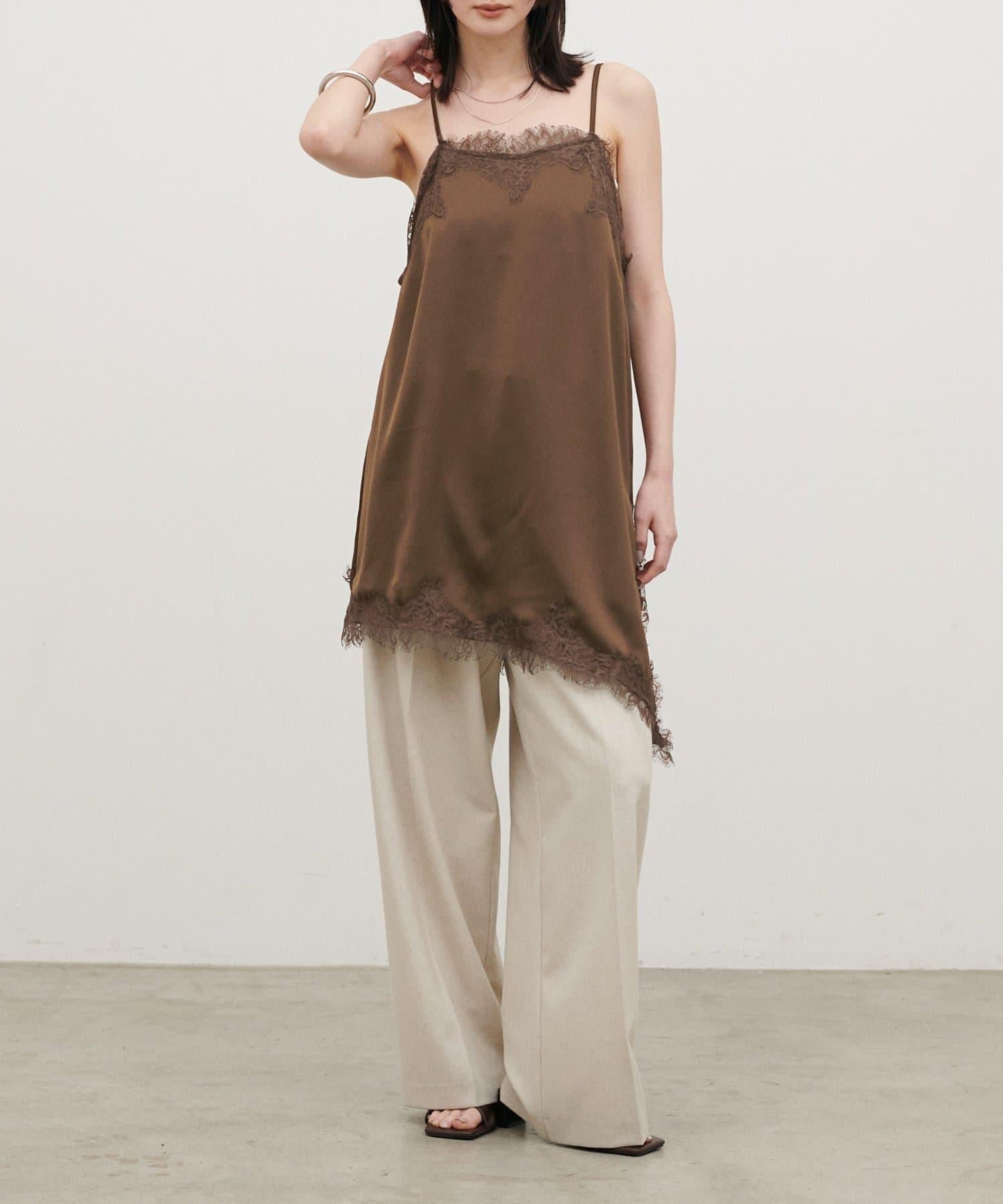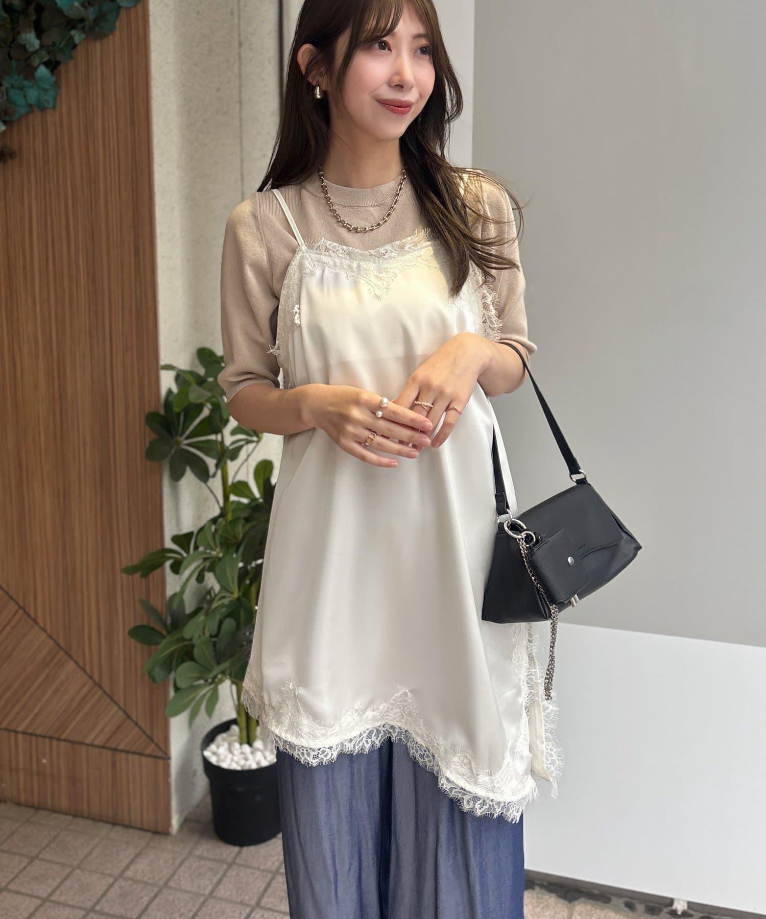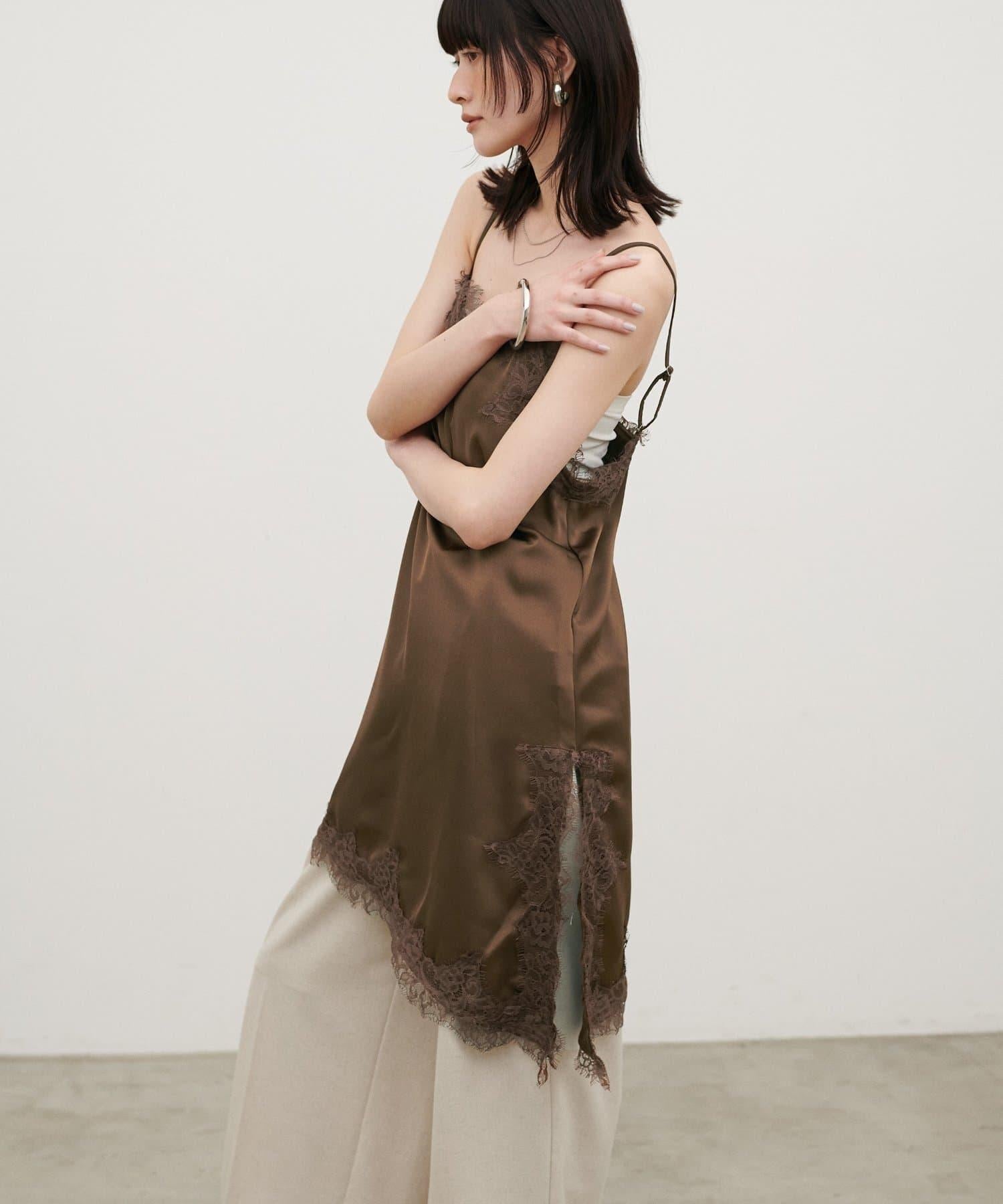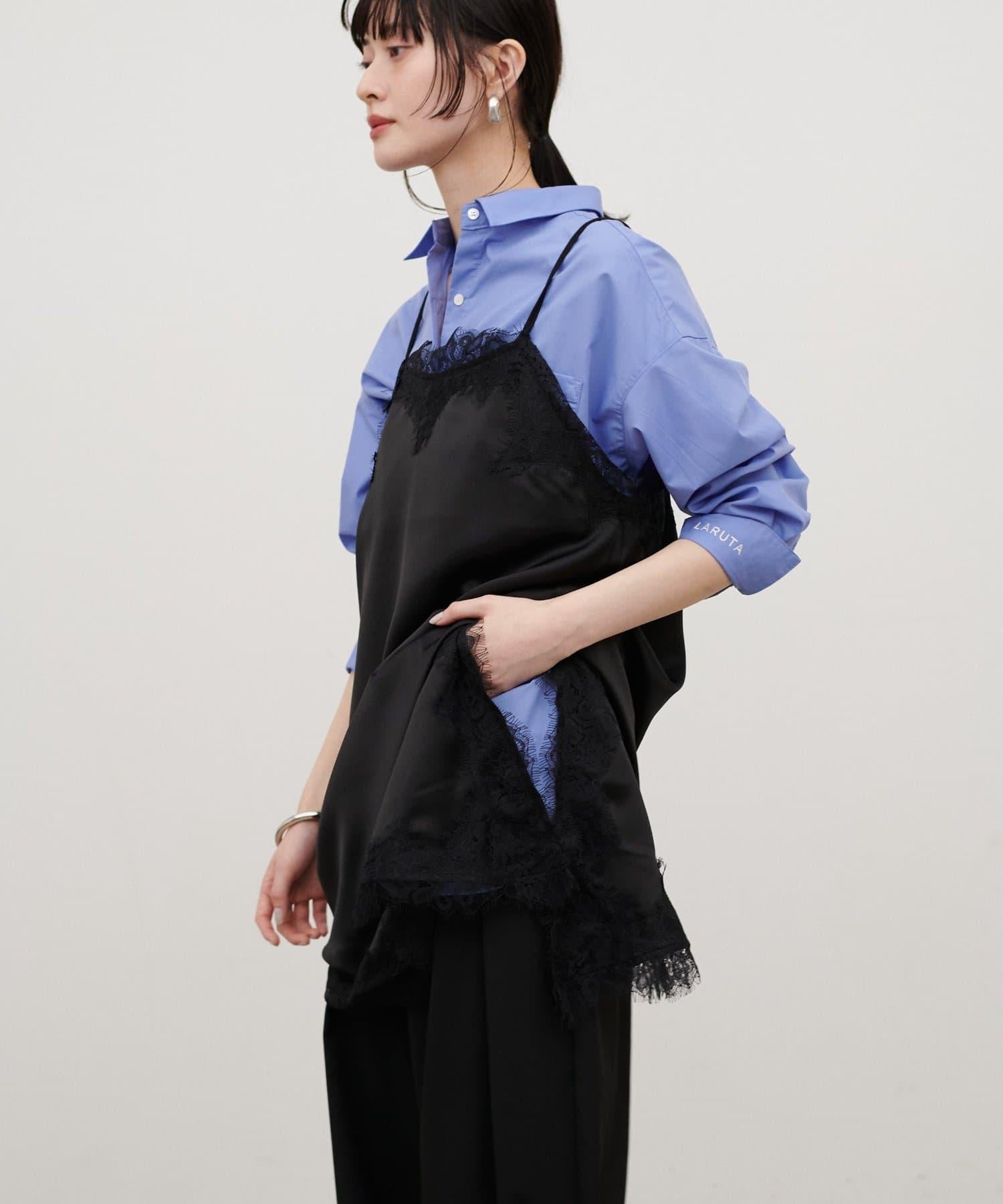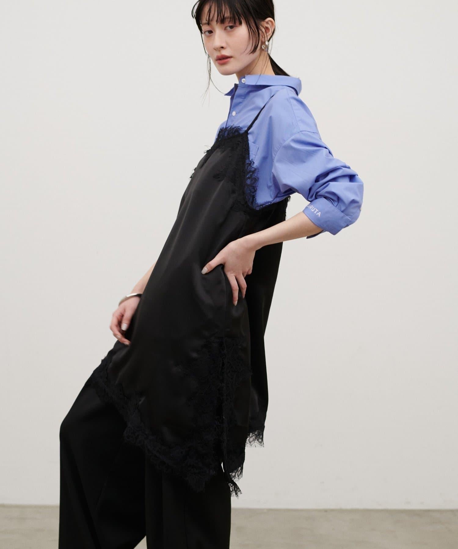 [Yurie Pick] 緞面不對稱蕾絲吊帶衫
