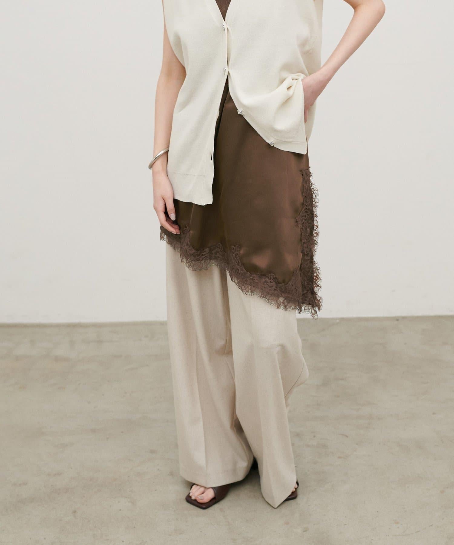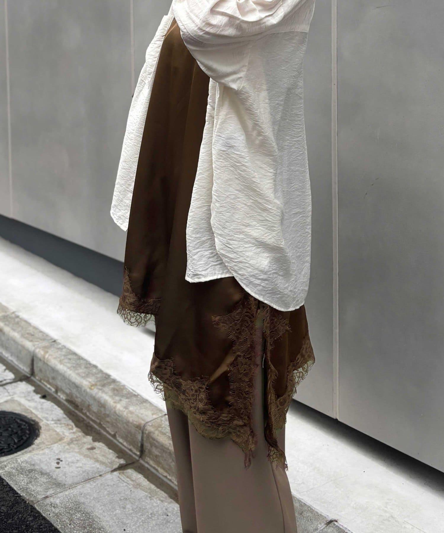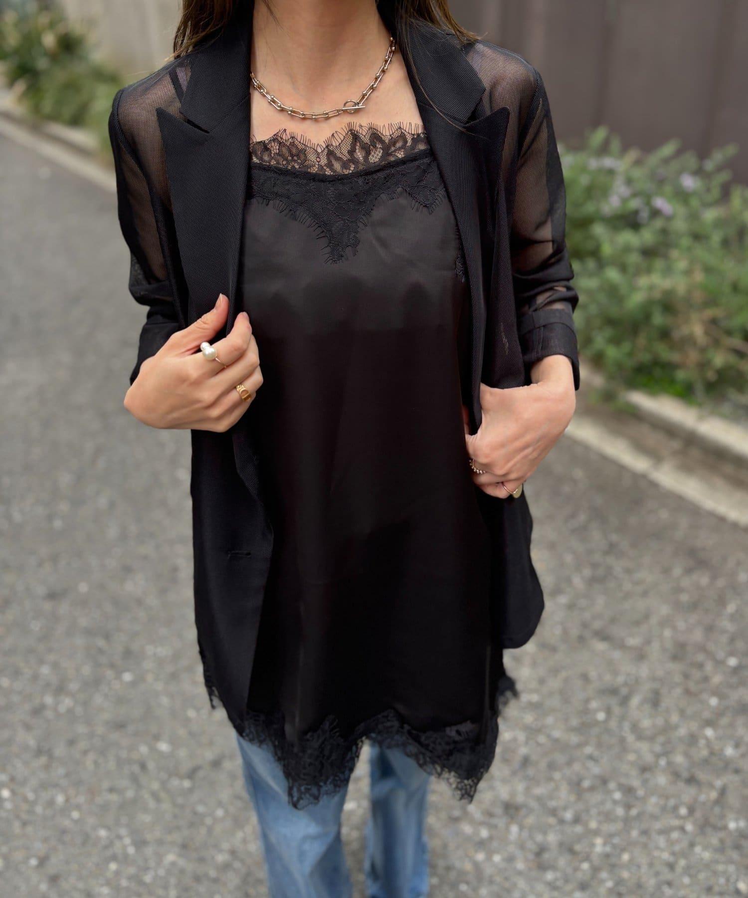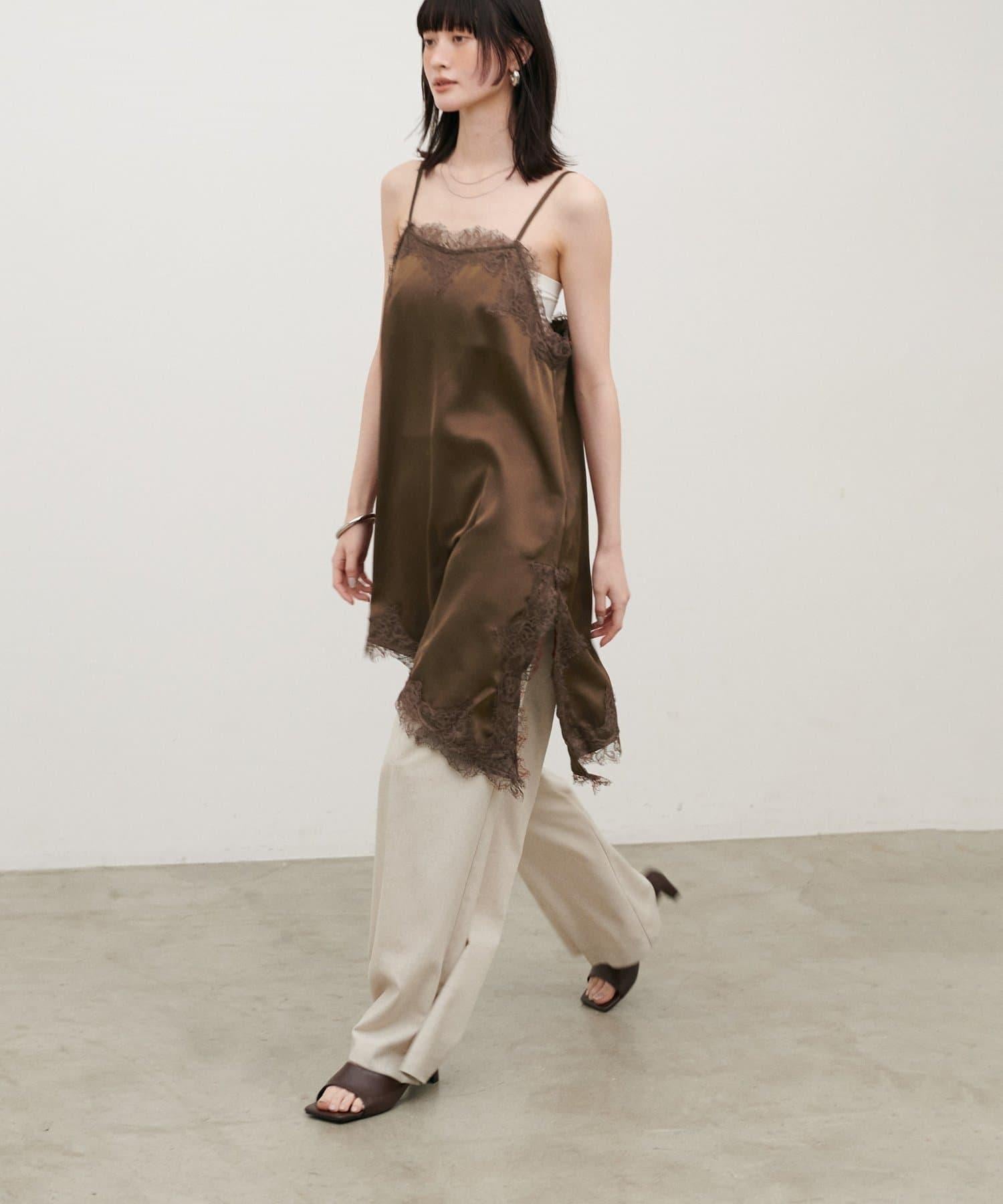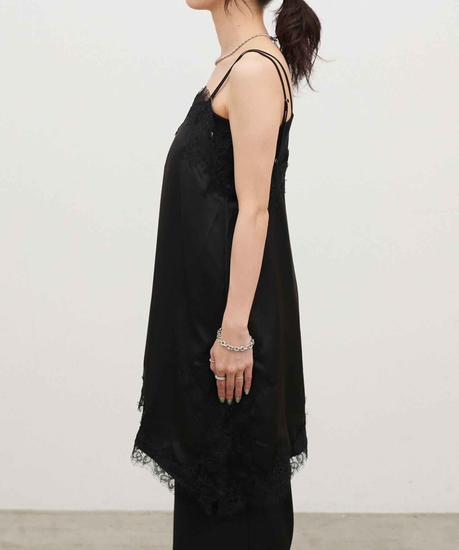 [Yurie Pick] 緞面不對稱蕾絲吊帶衫