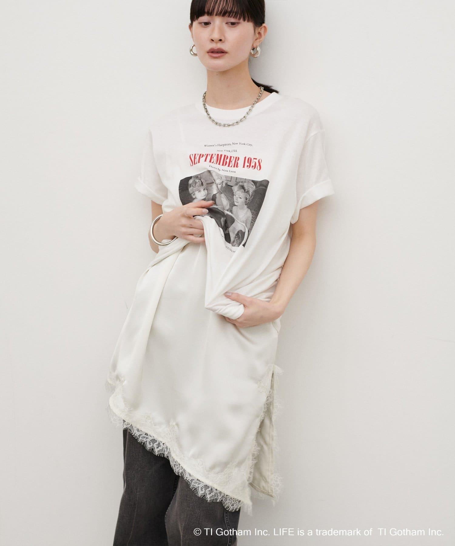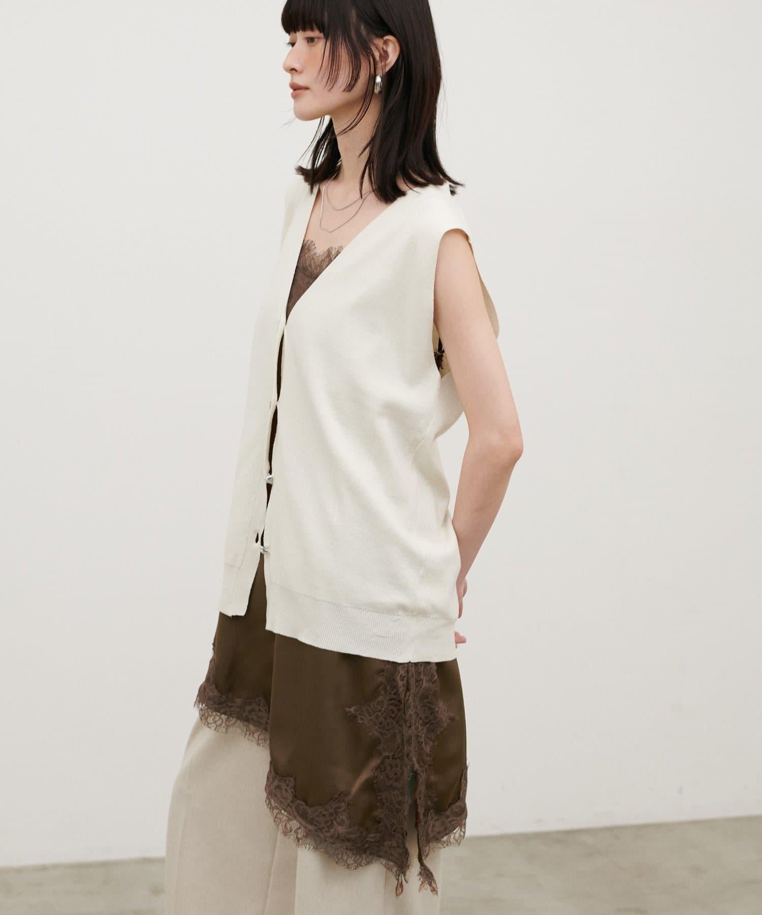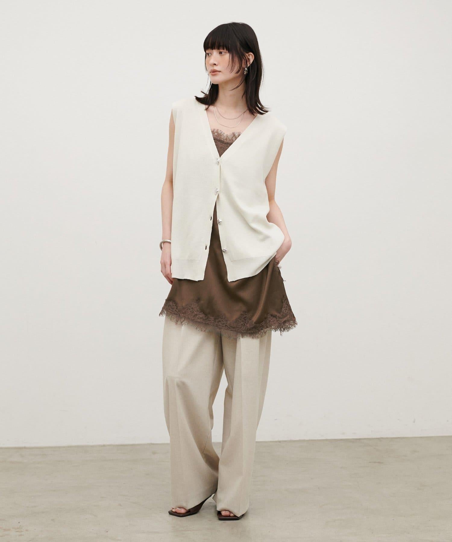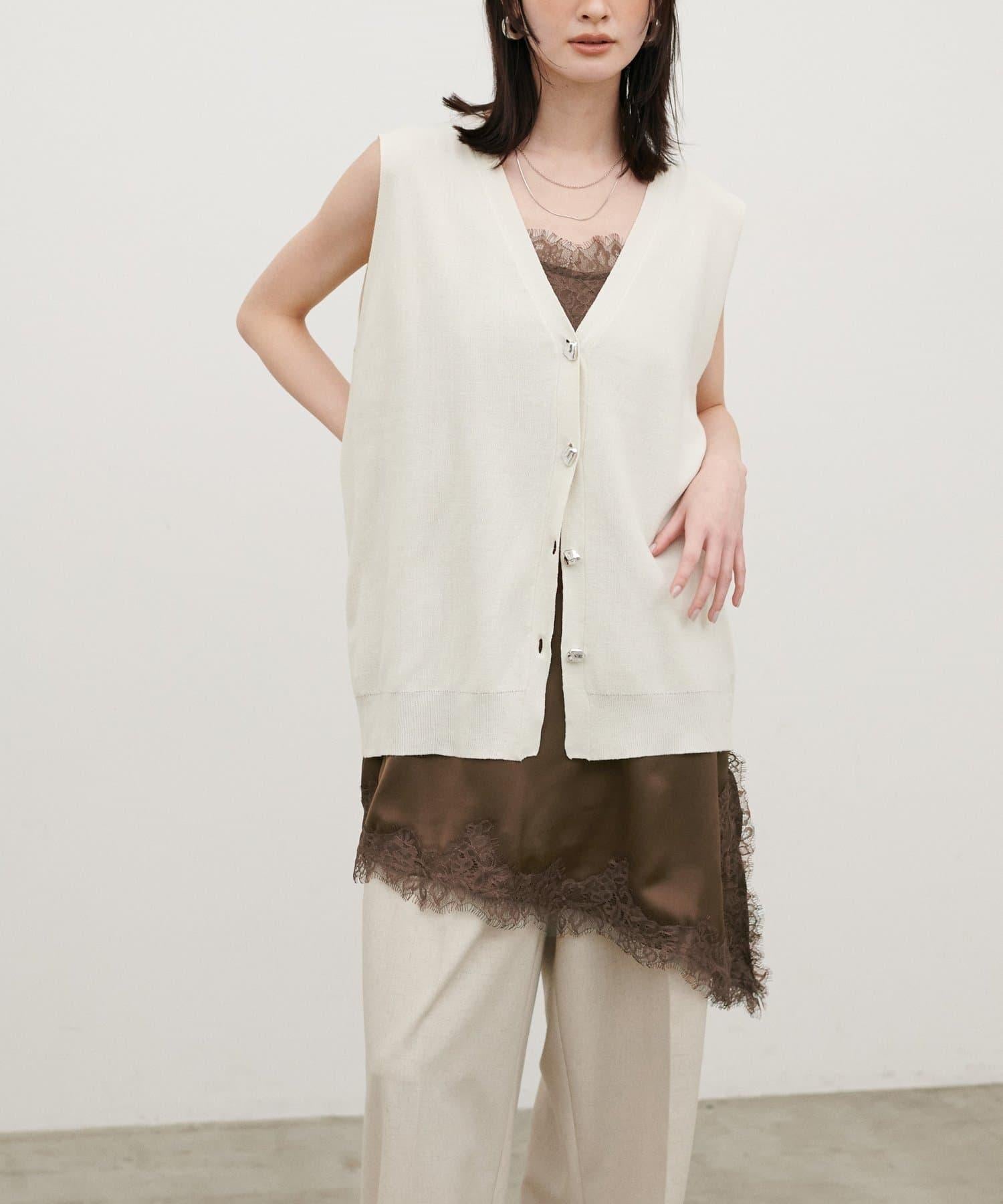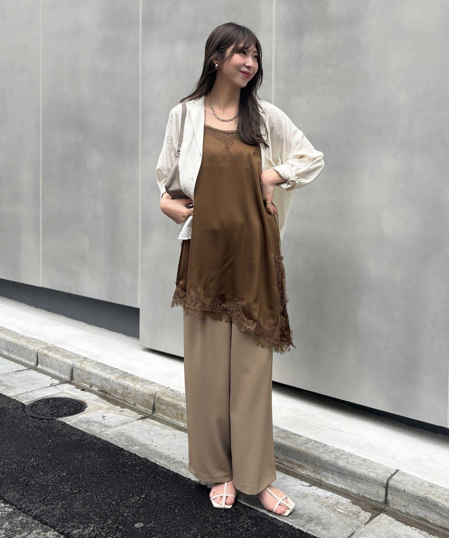 [Yurie Pick] 緞面不對稱蕾絲吊帶衫