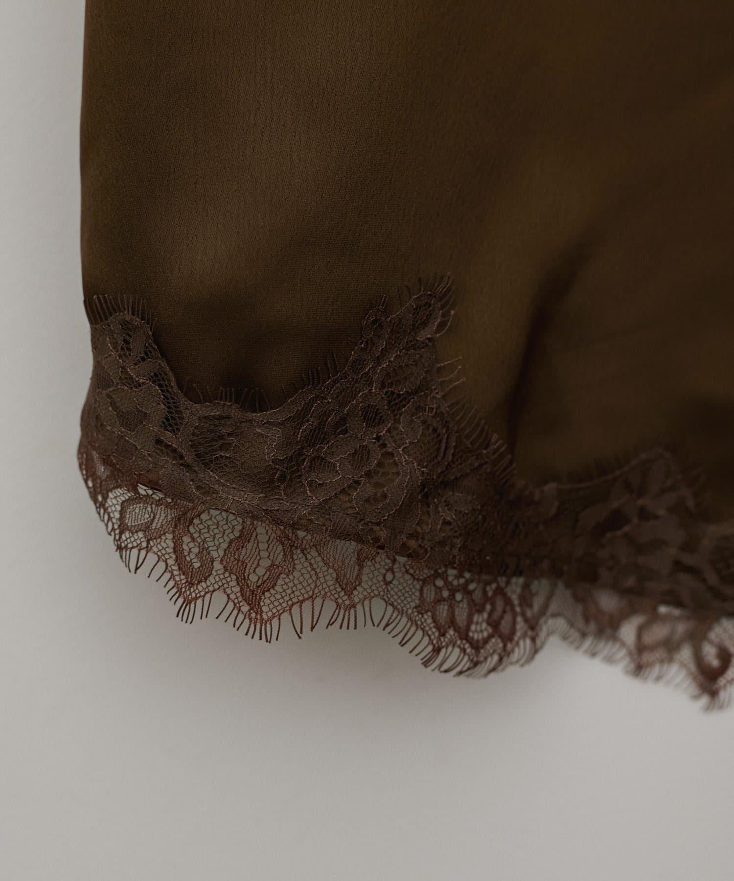 光滑閃亮的緞面面料,配以精緻的蕾絲。
