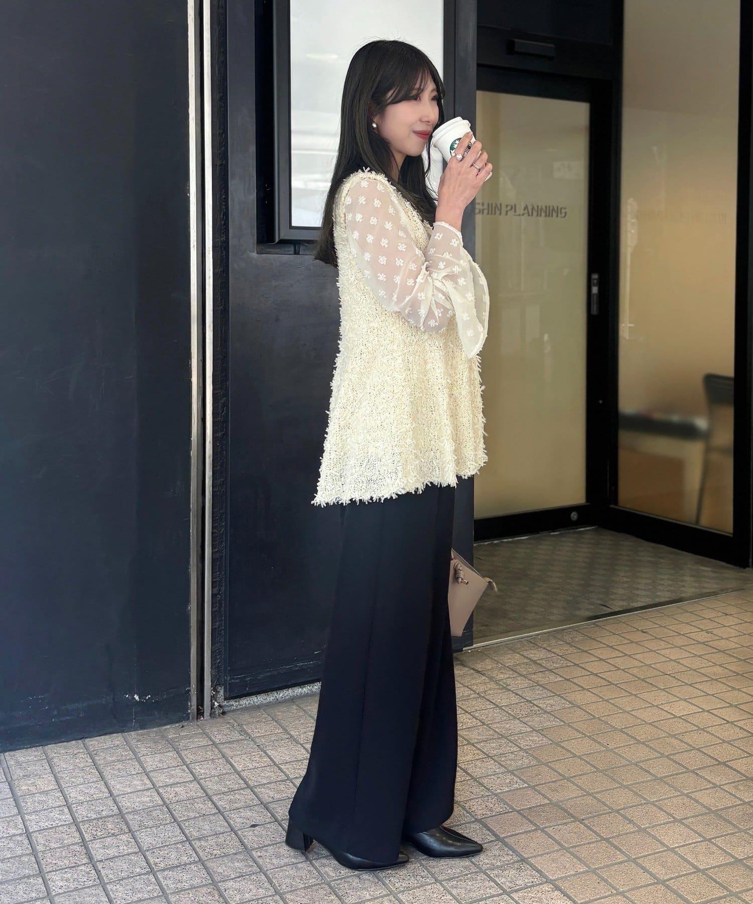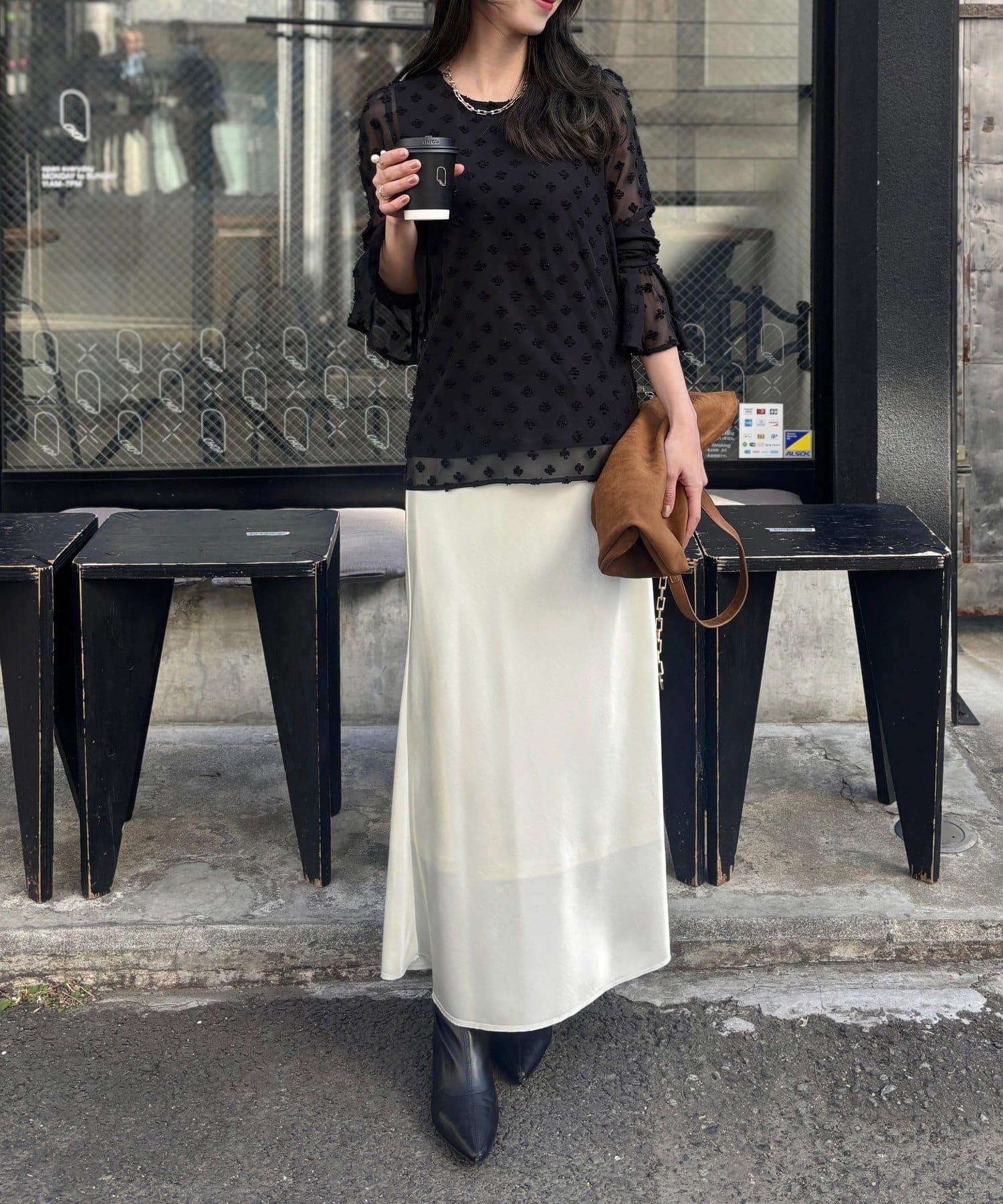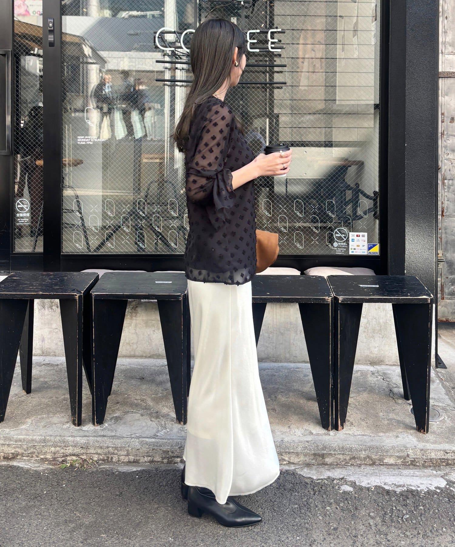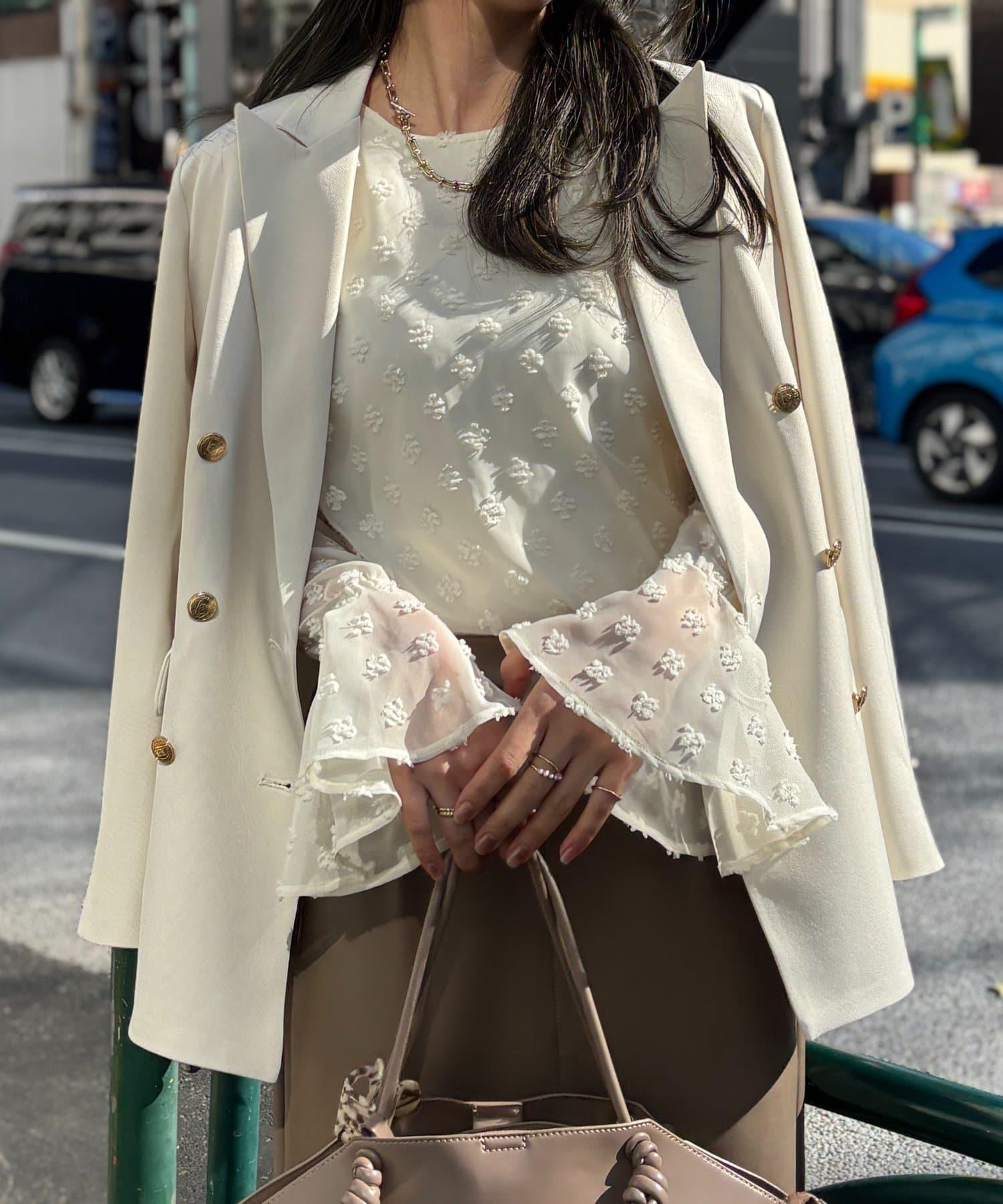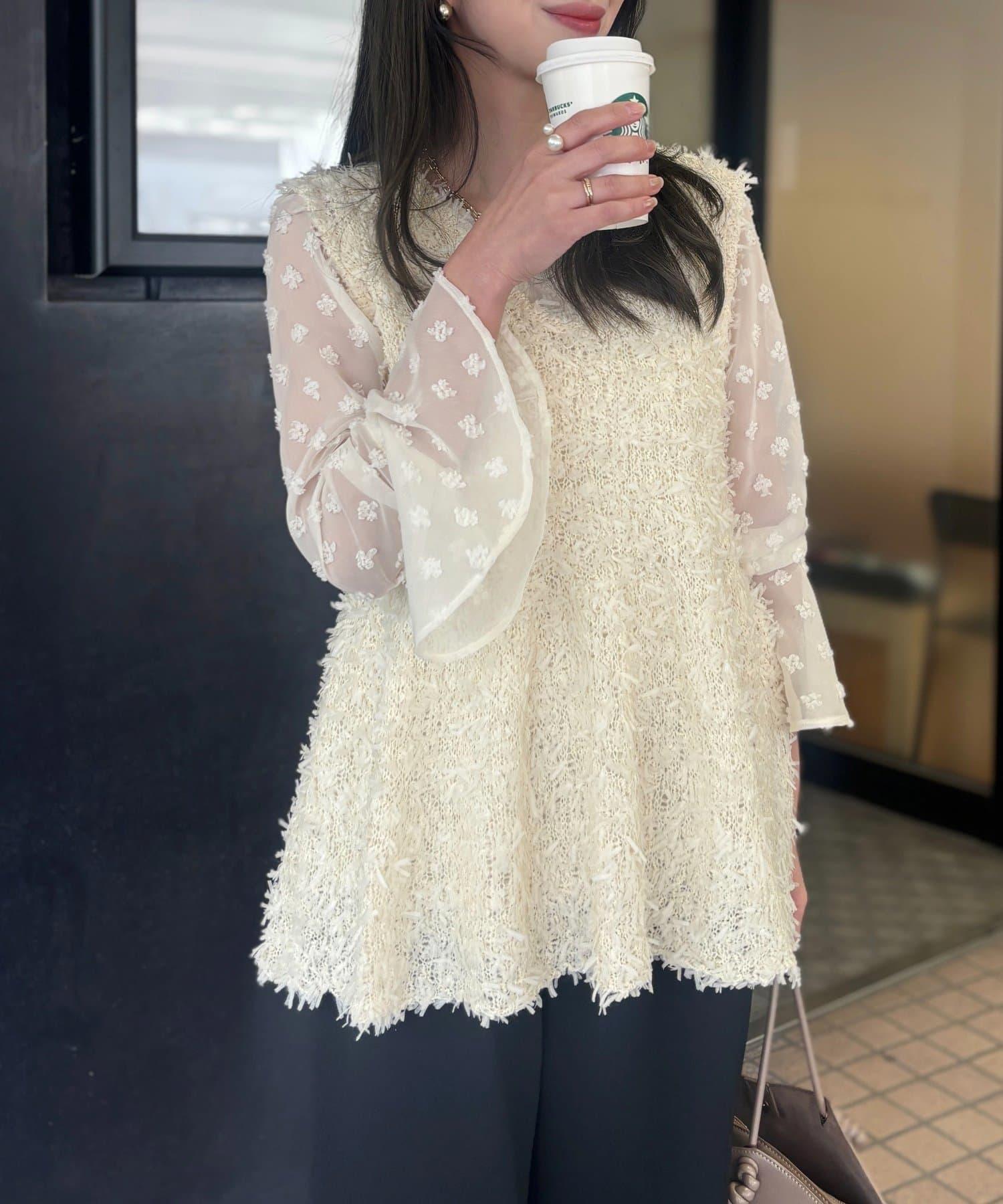 [Yurie Project] 花朵圓點圖案提花薄紗上衣