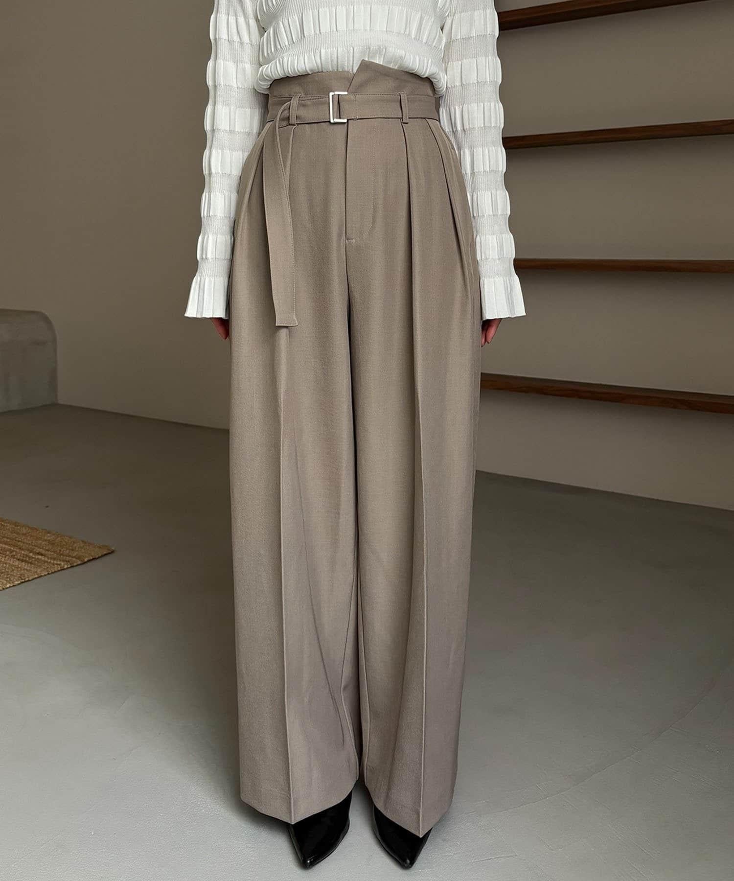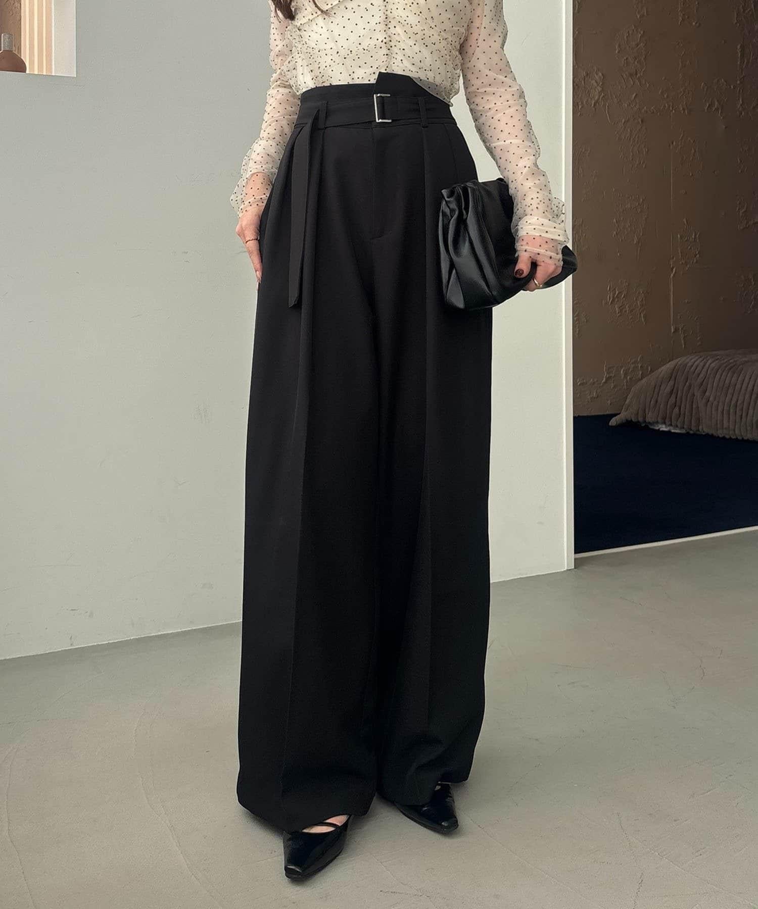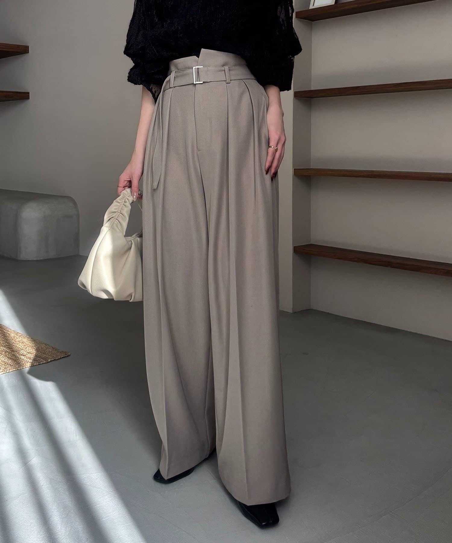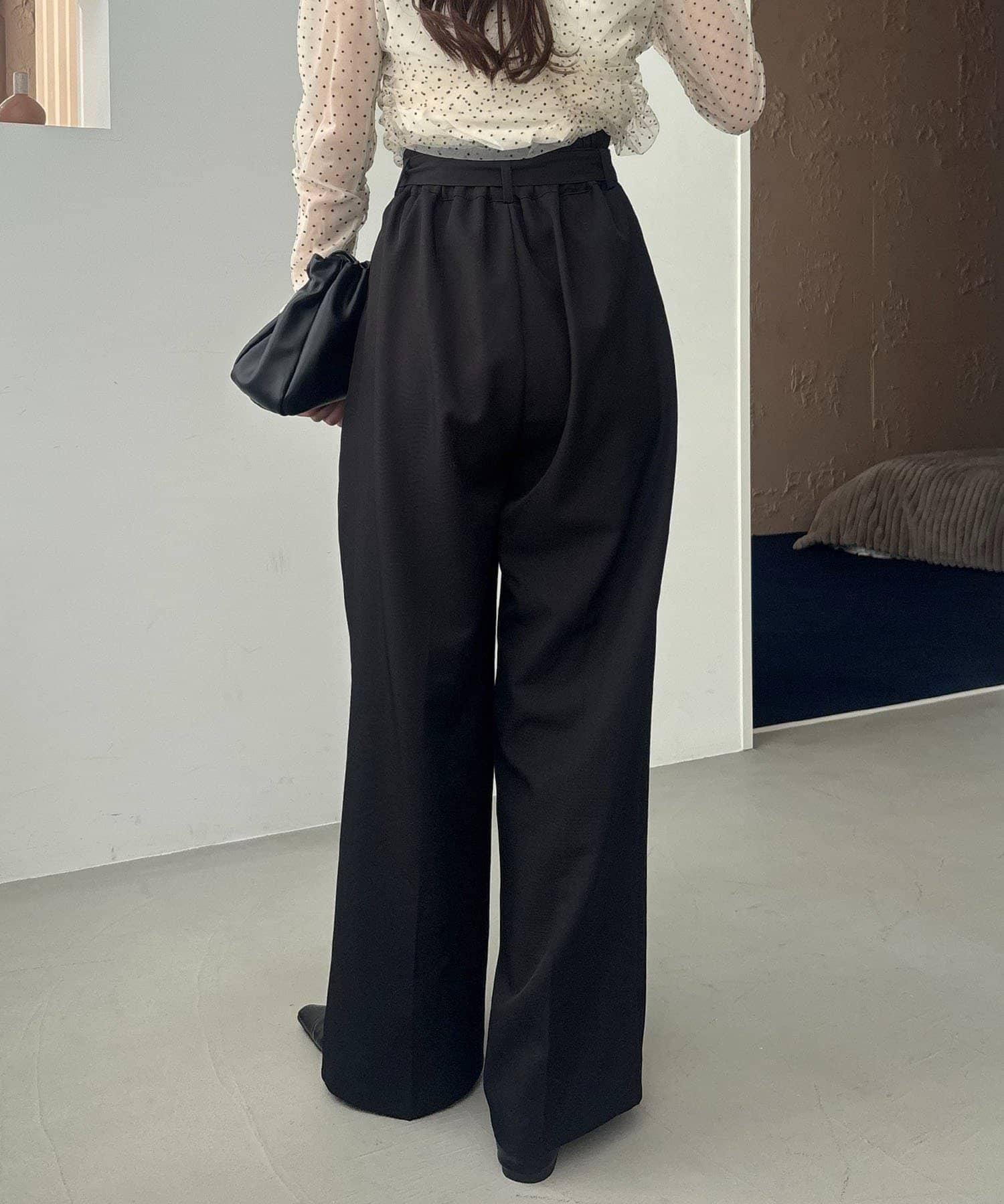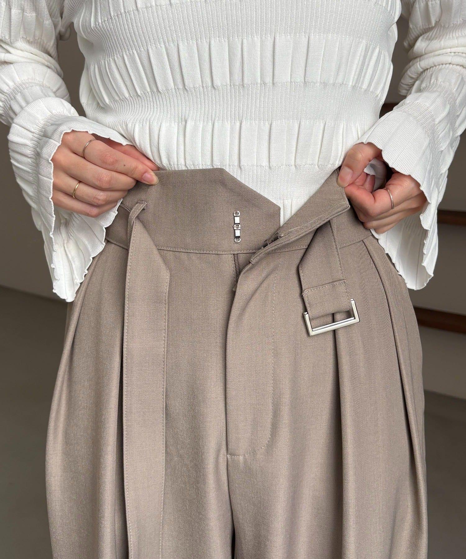 漂亮的廓形長褲,腰部設計。