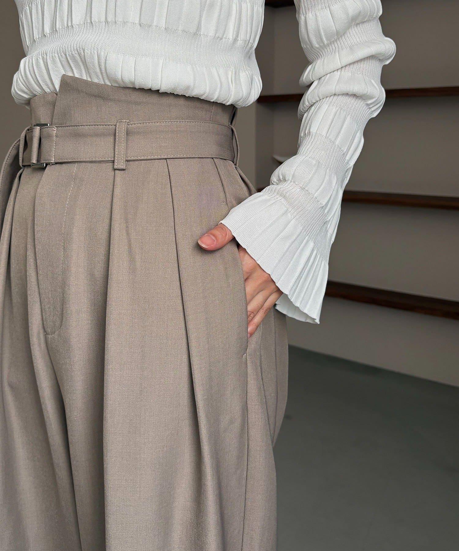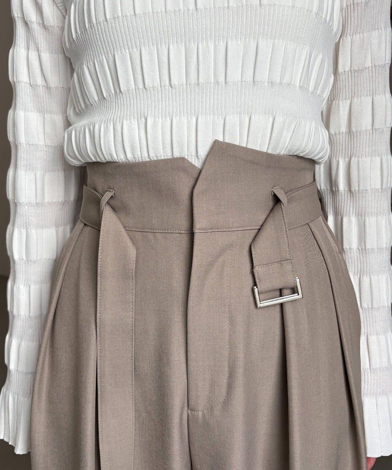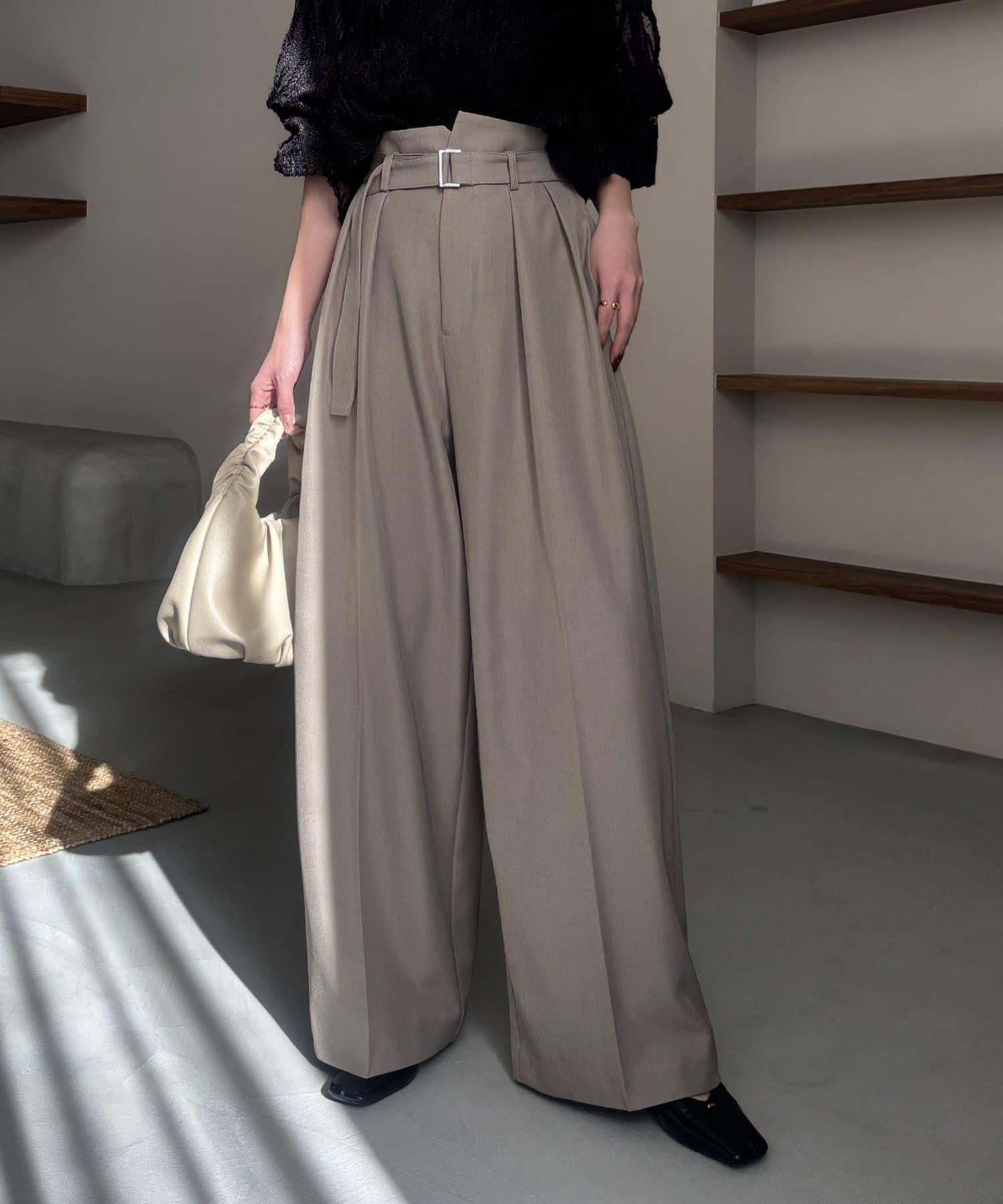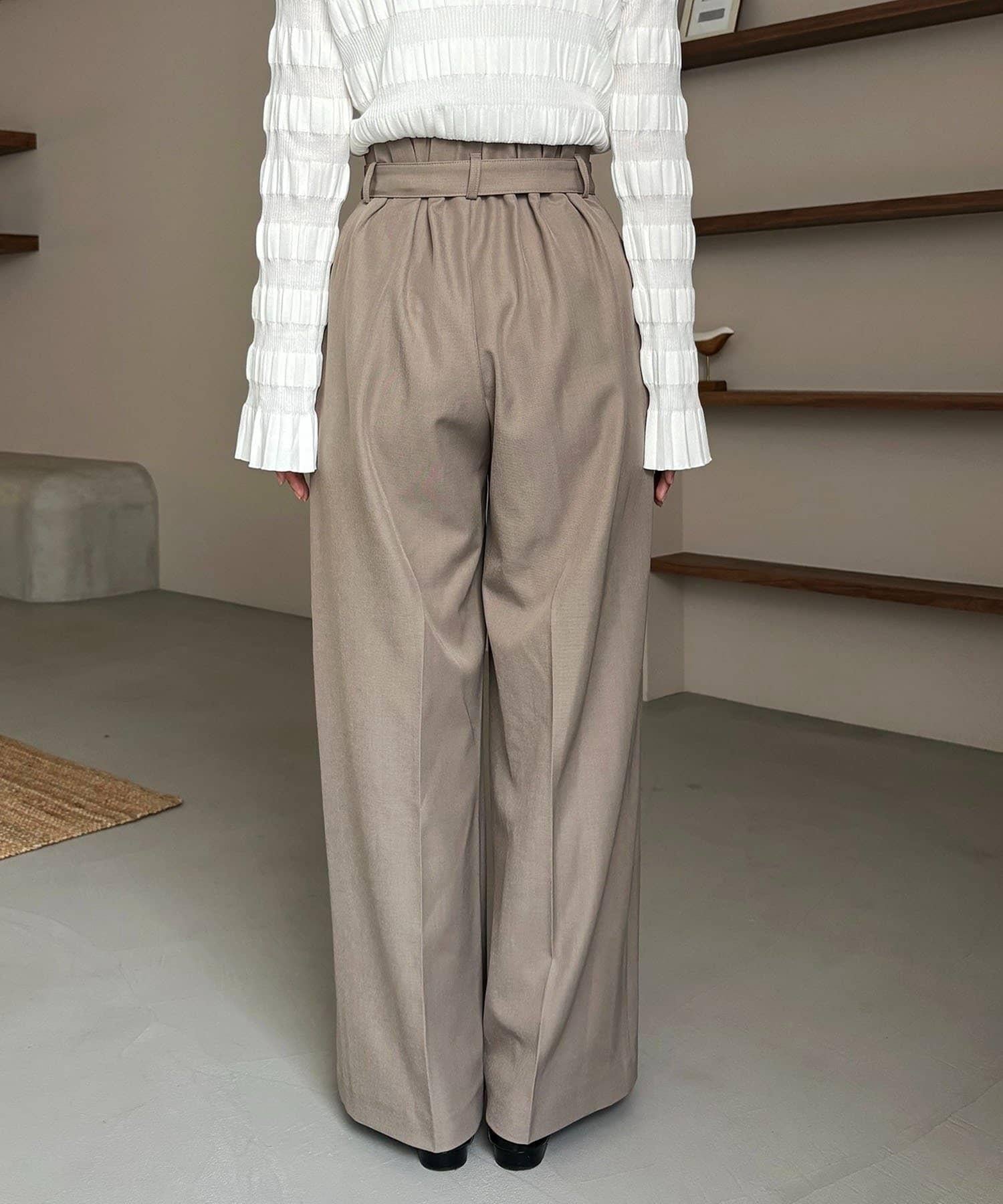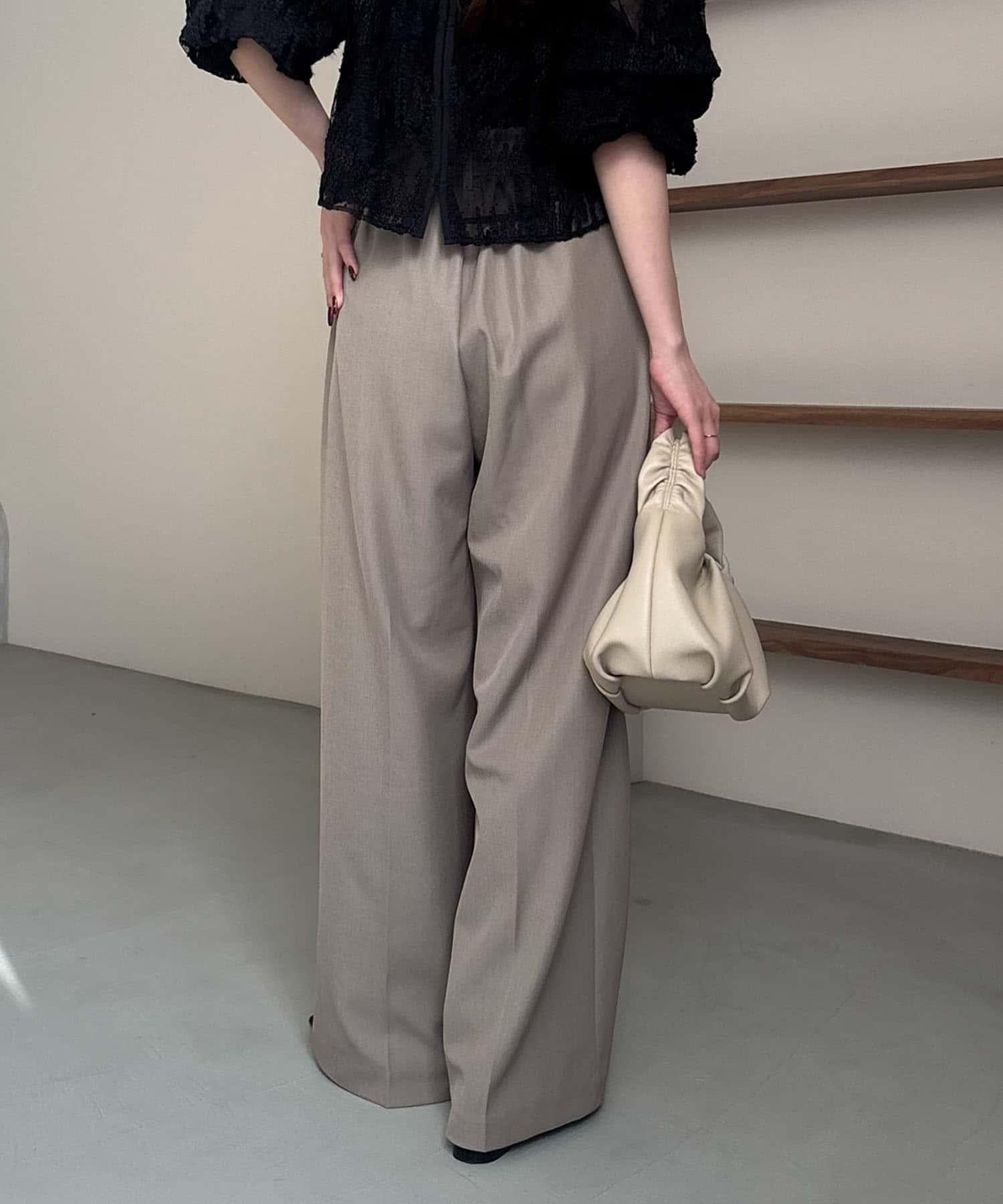 漂亮的廓形長褲,腰部設計。