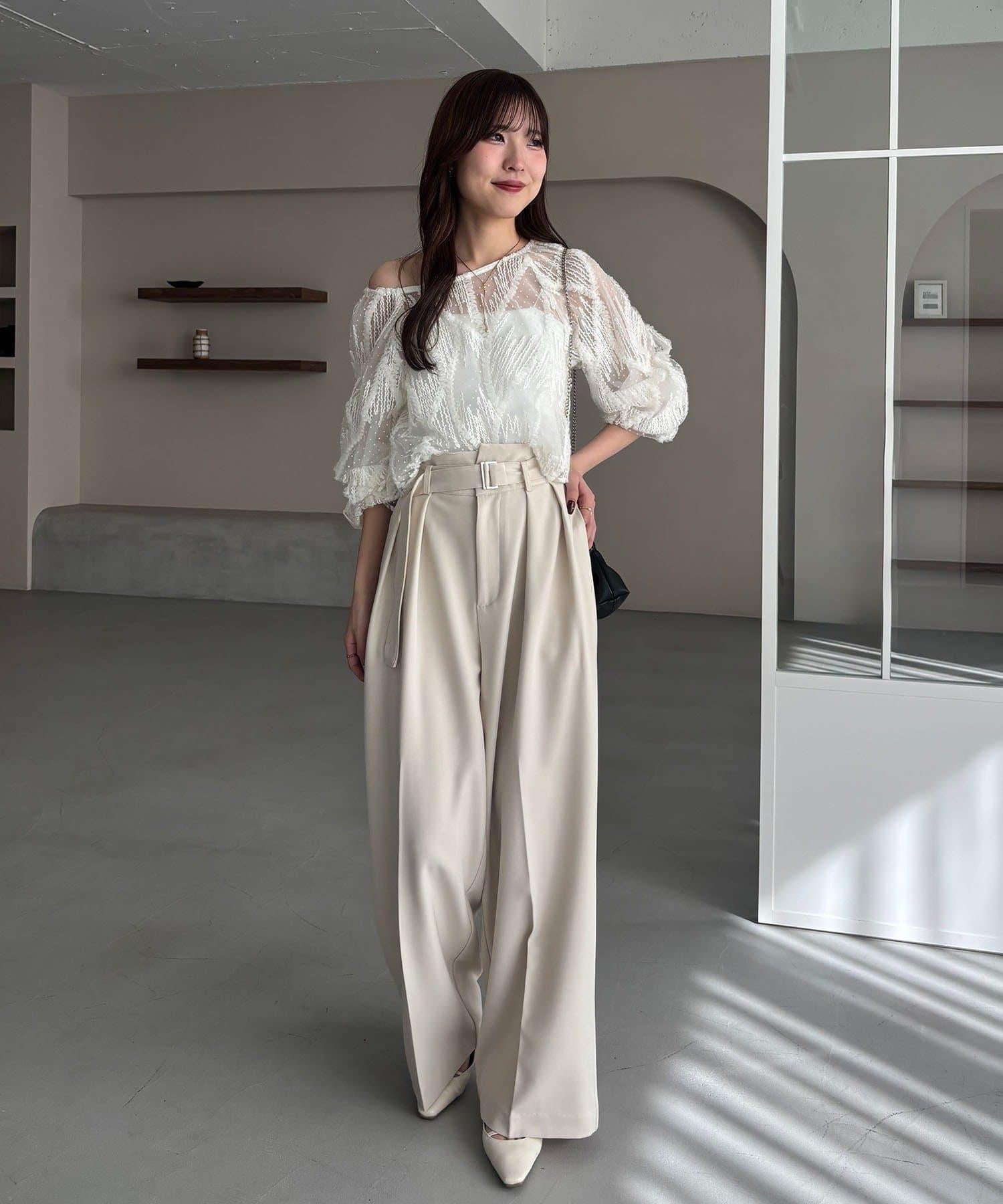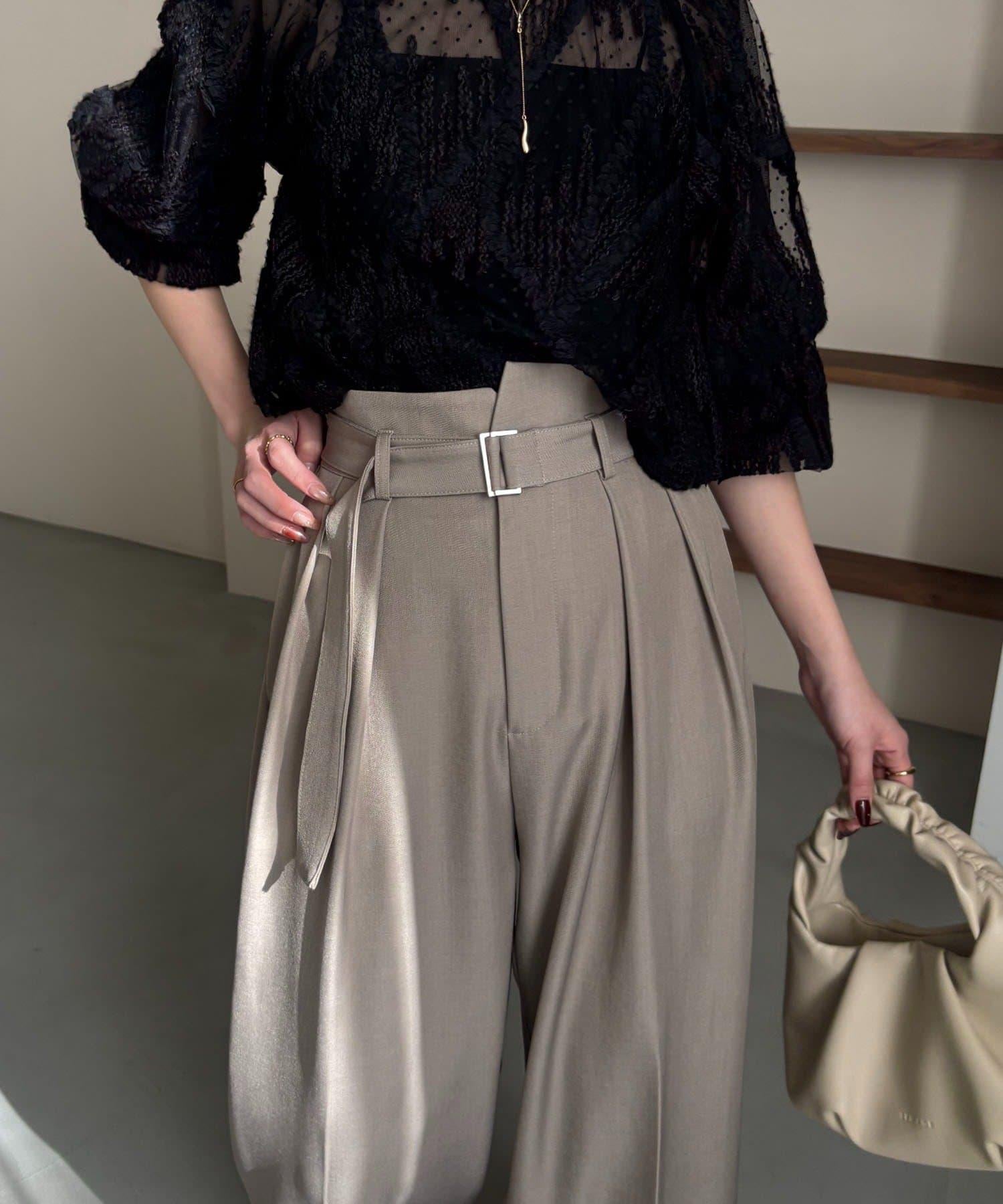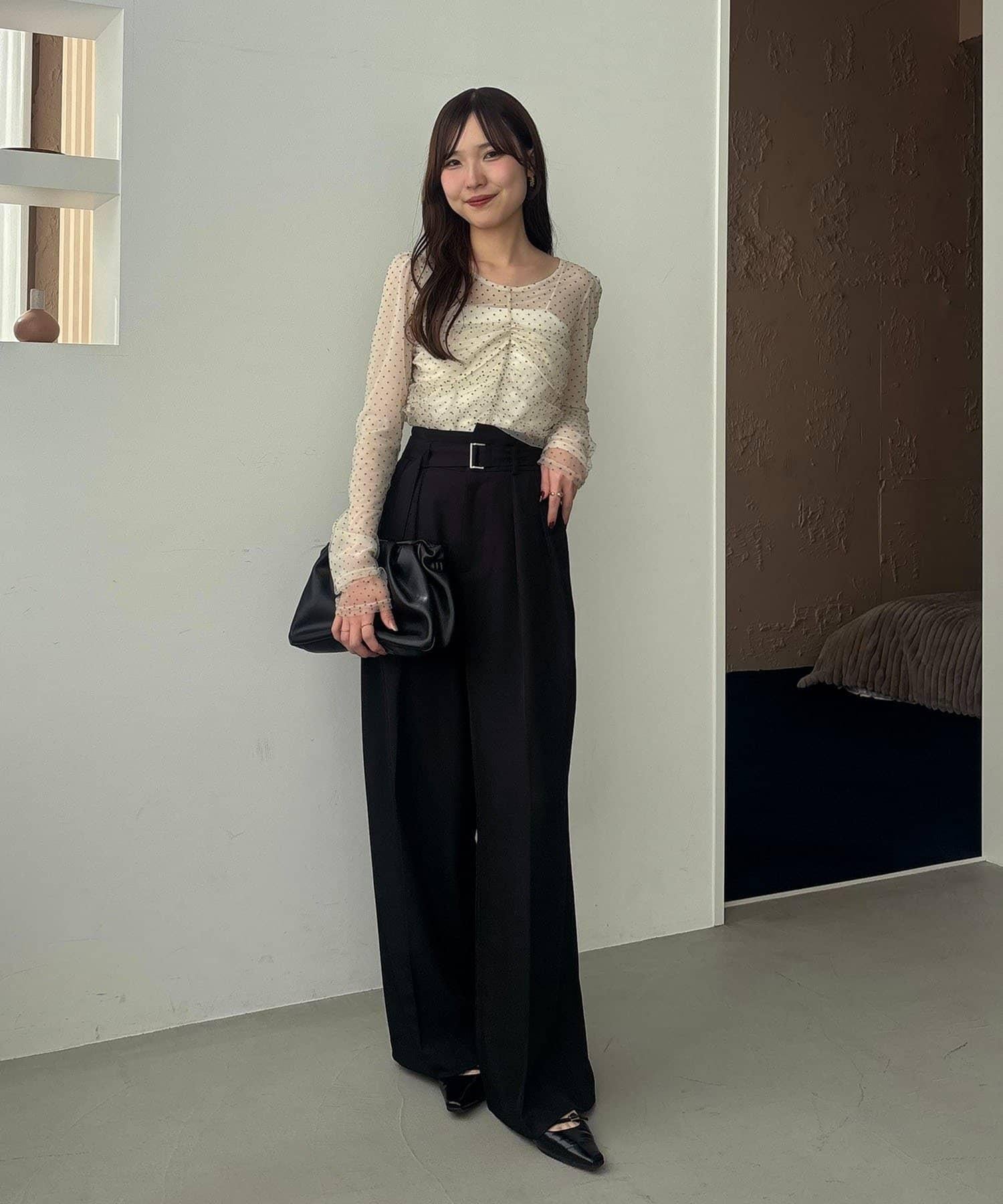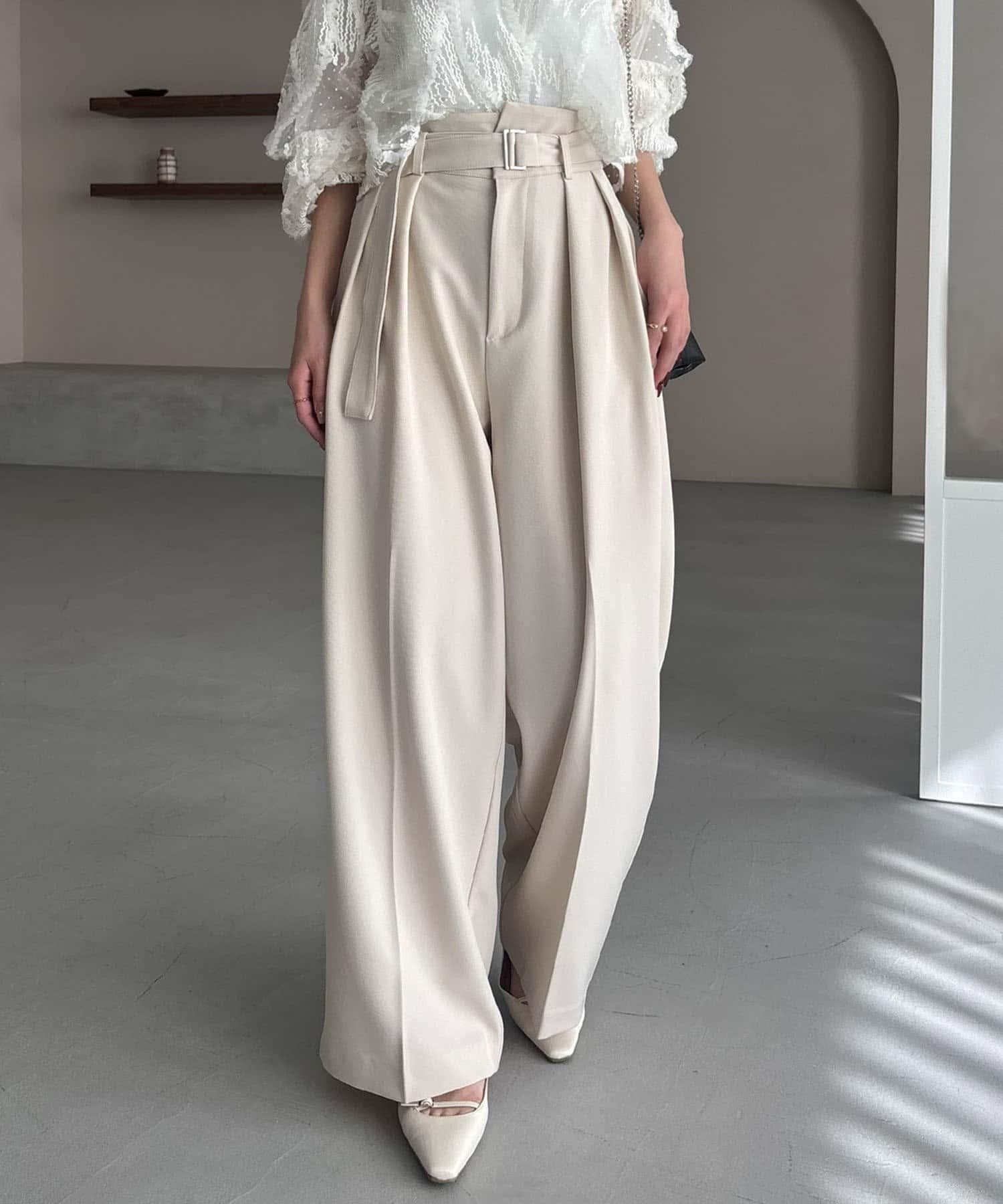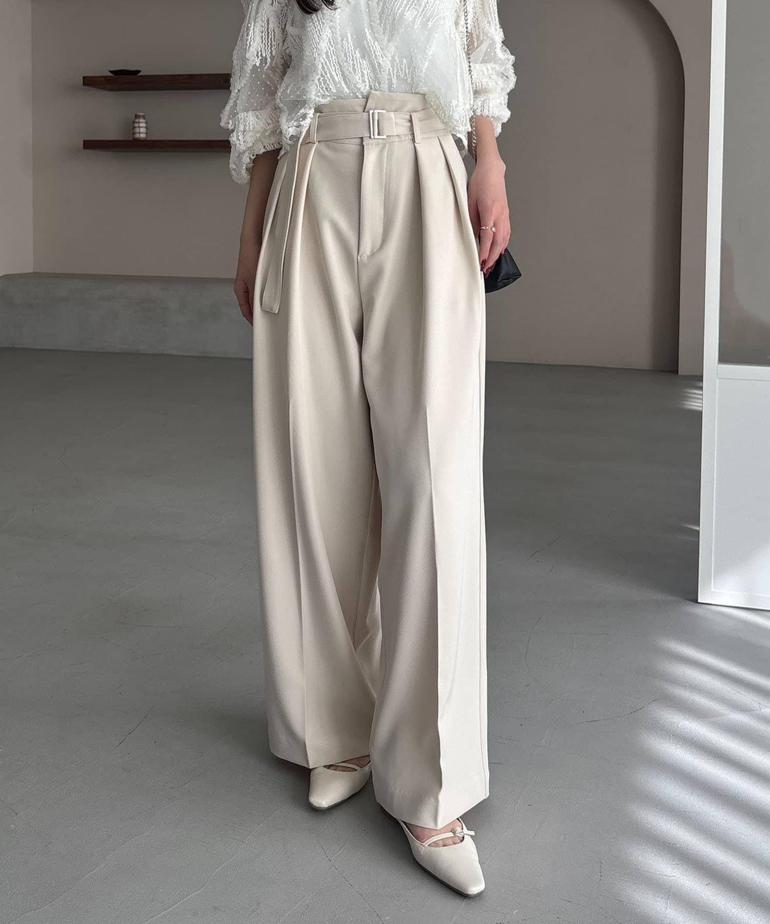 漂亮的廓形長褲,腰部設計。