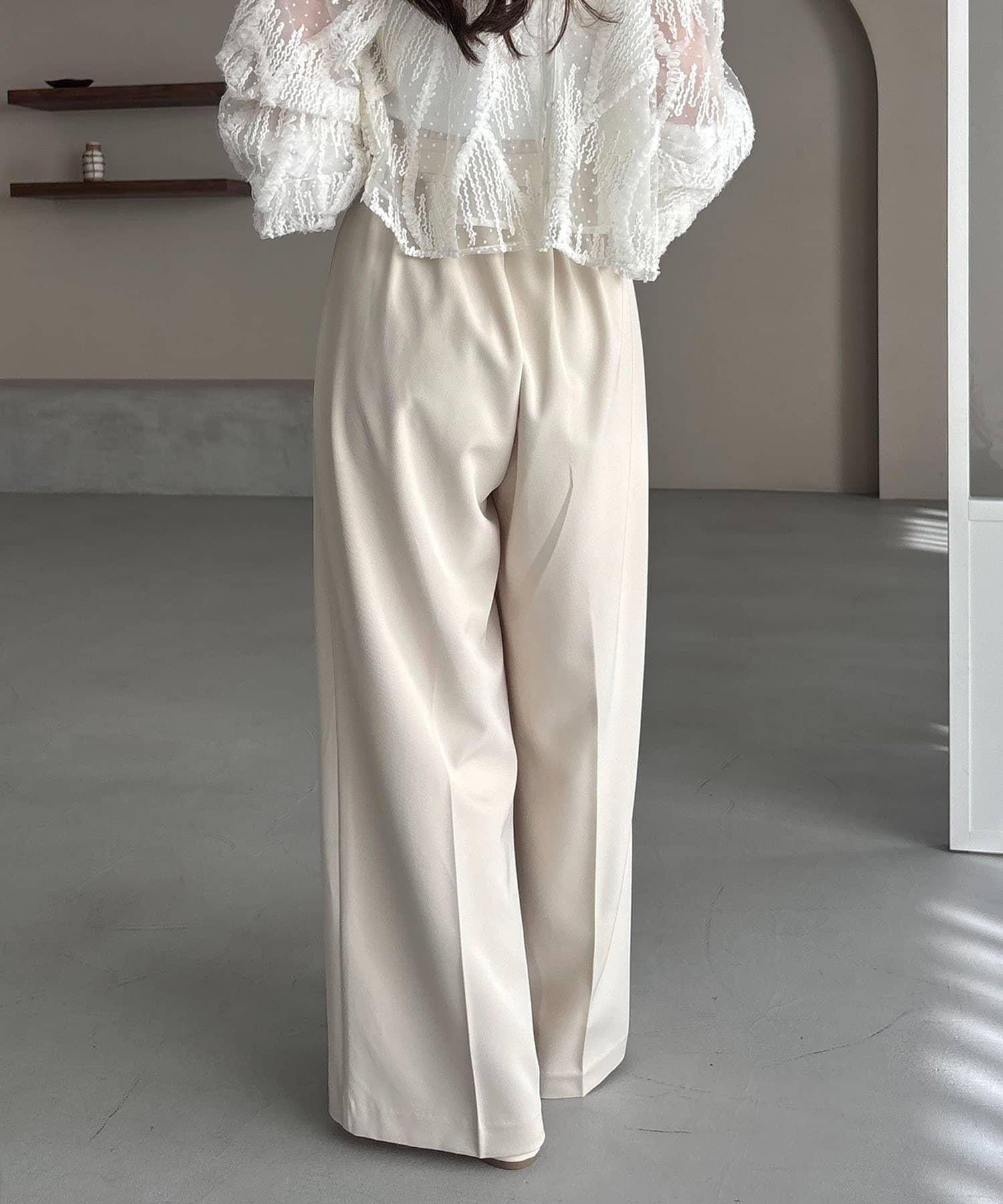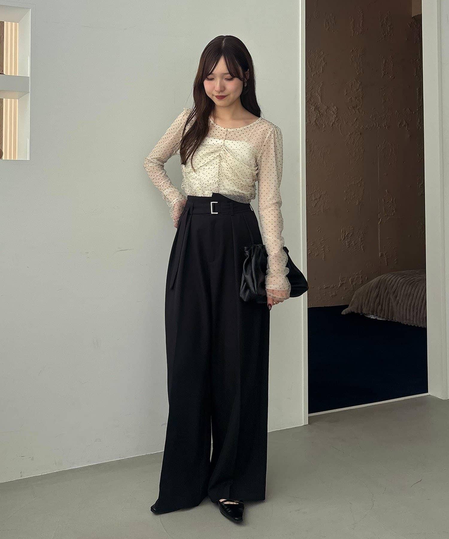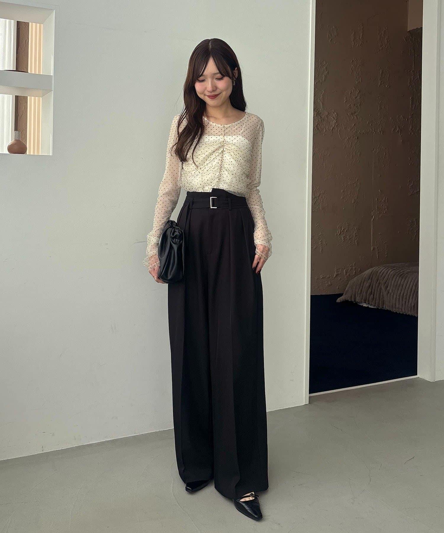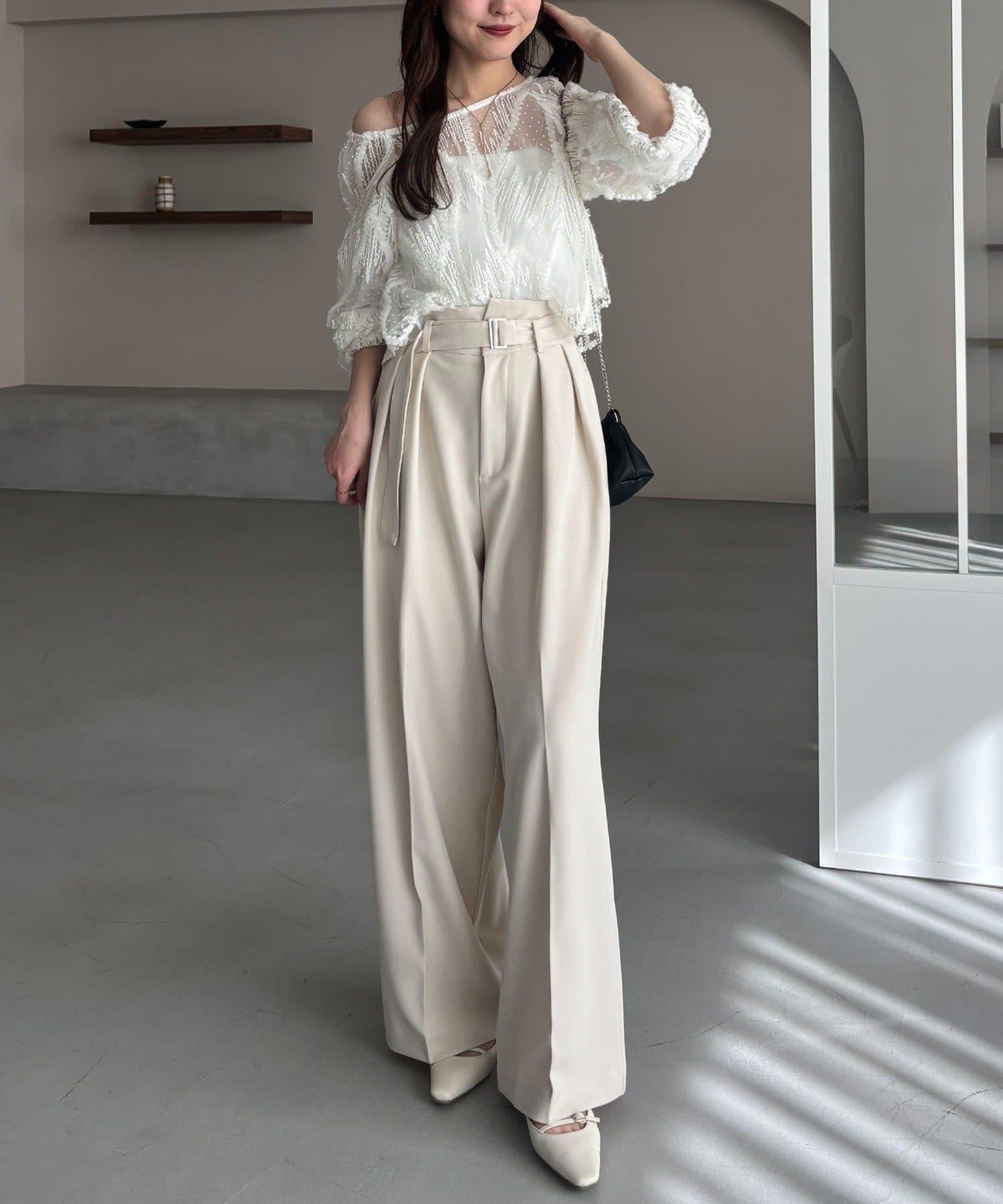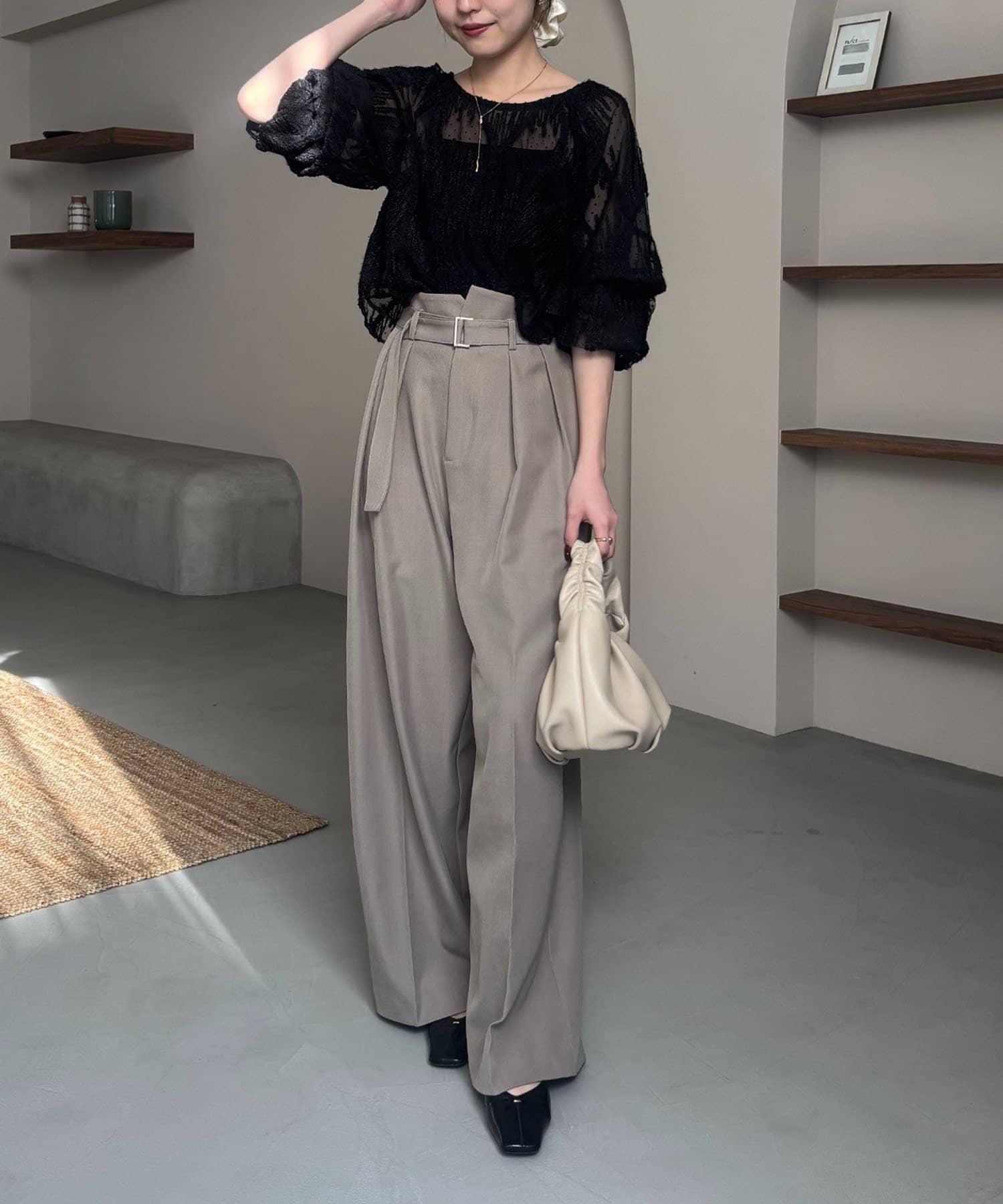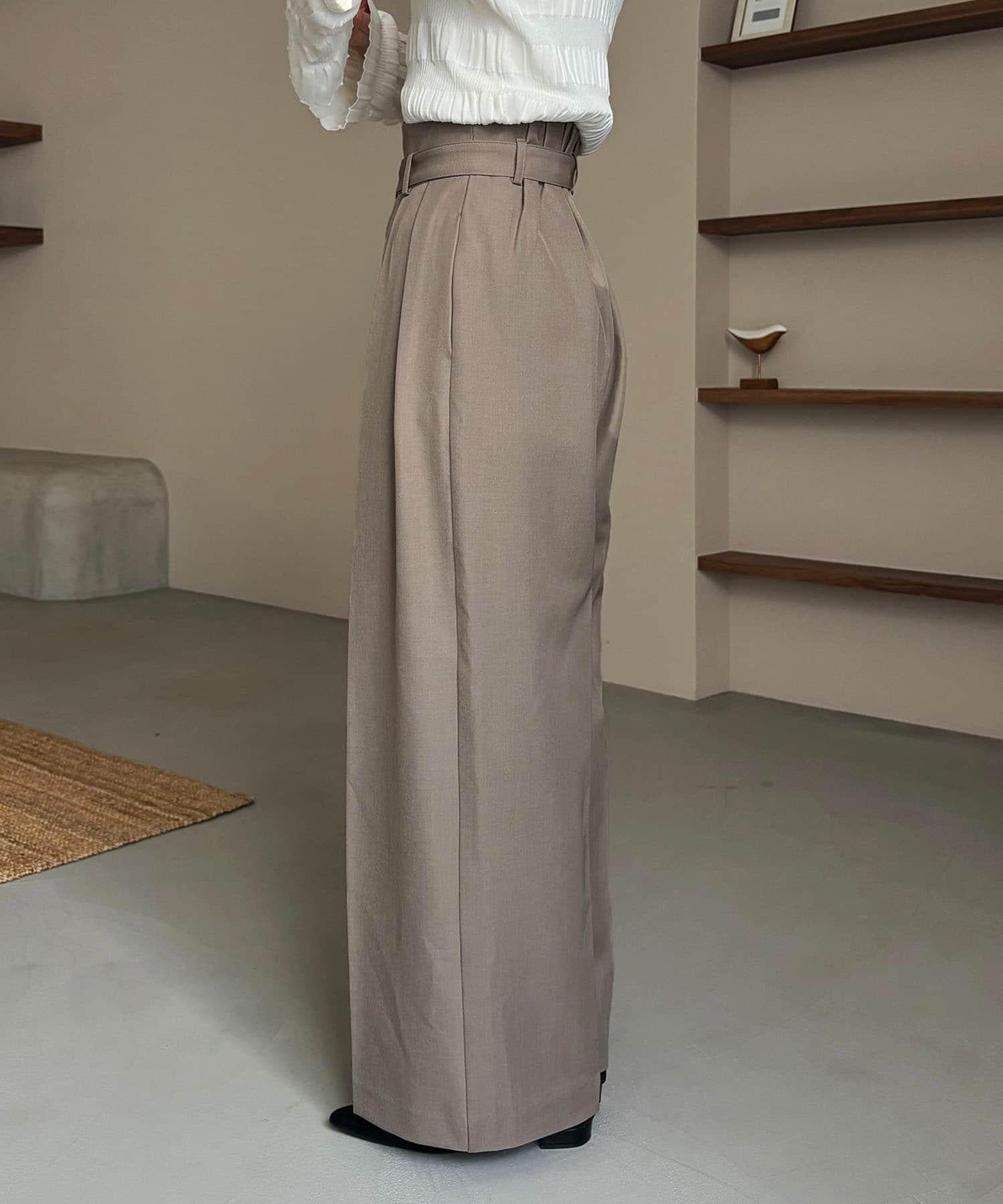 漂亮的廓形長褲,腰部設計。
