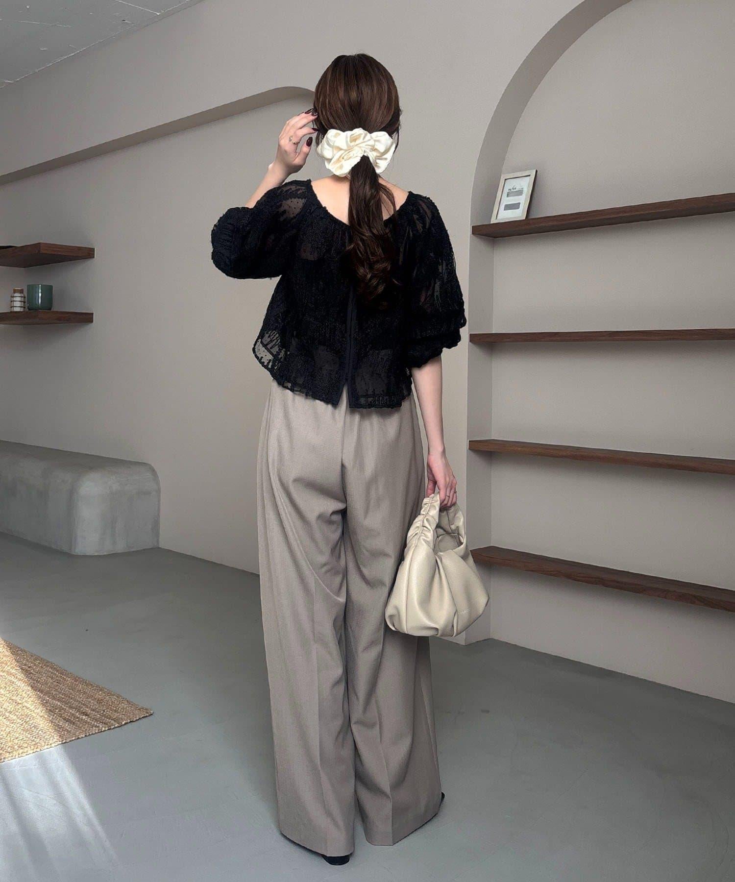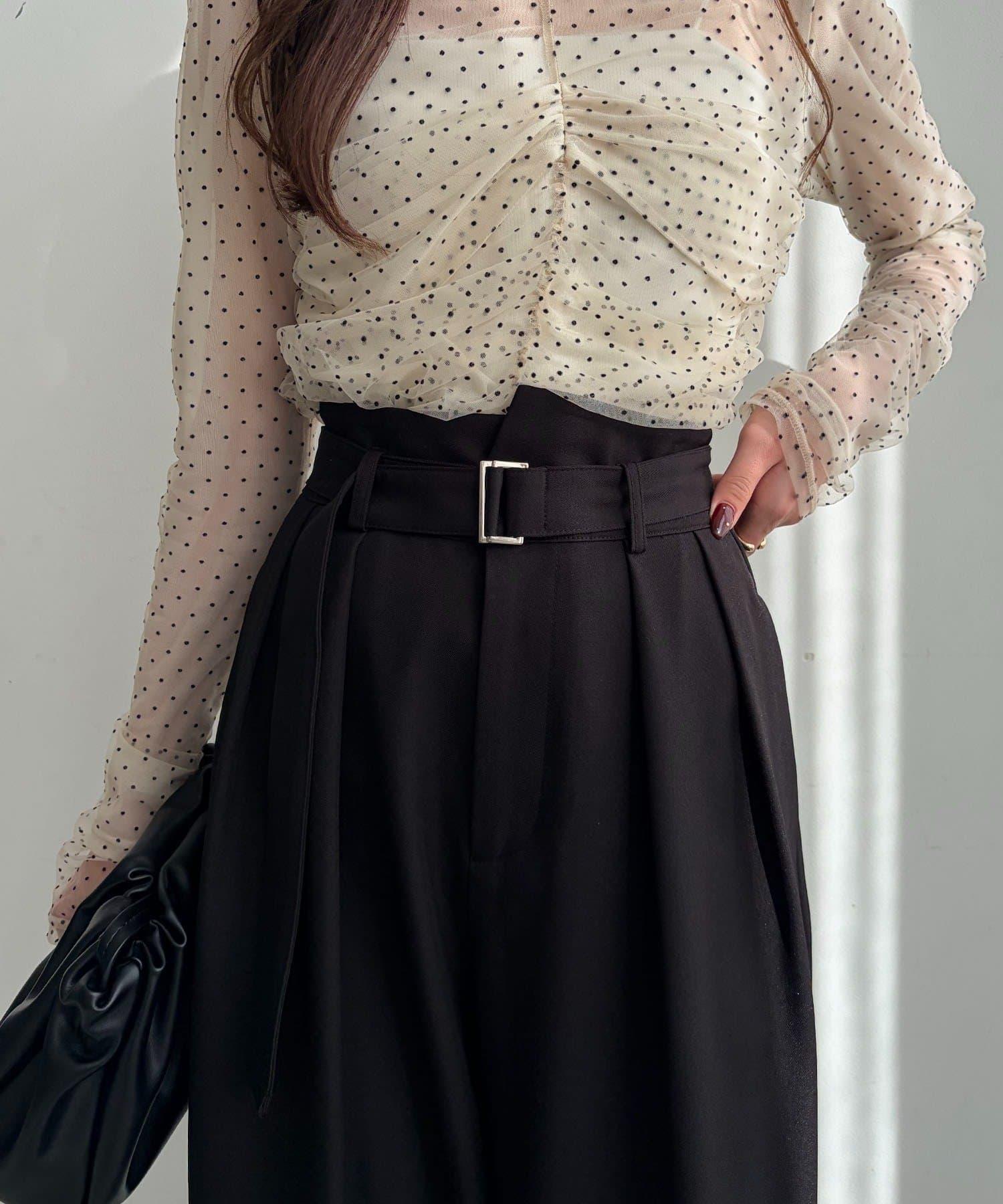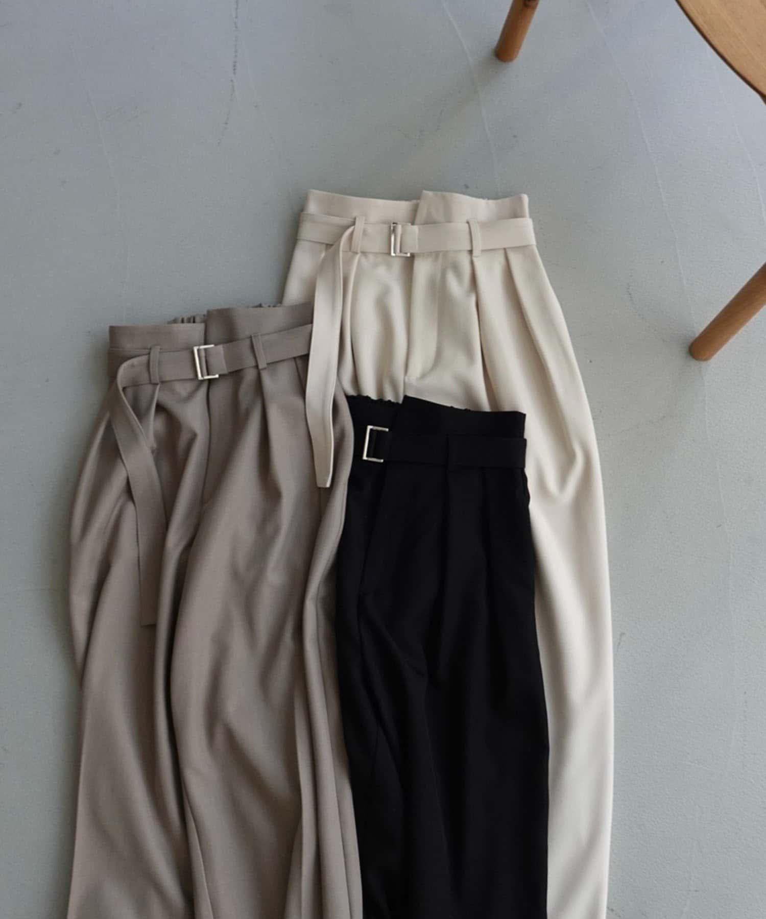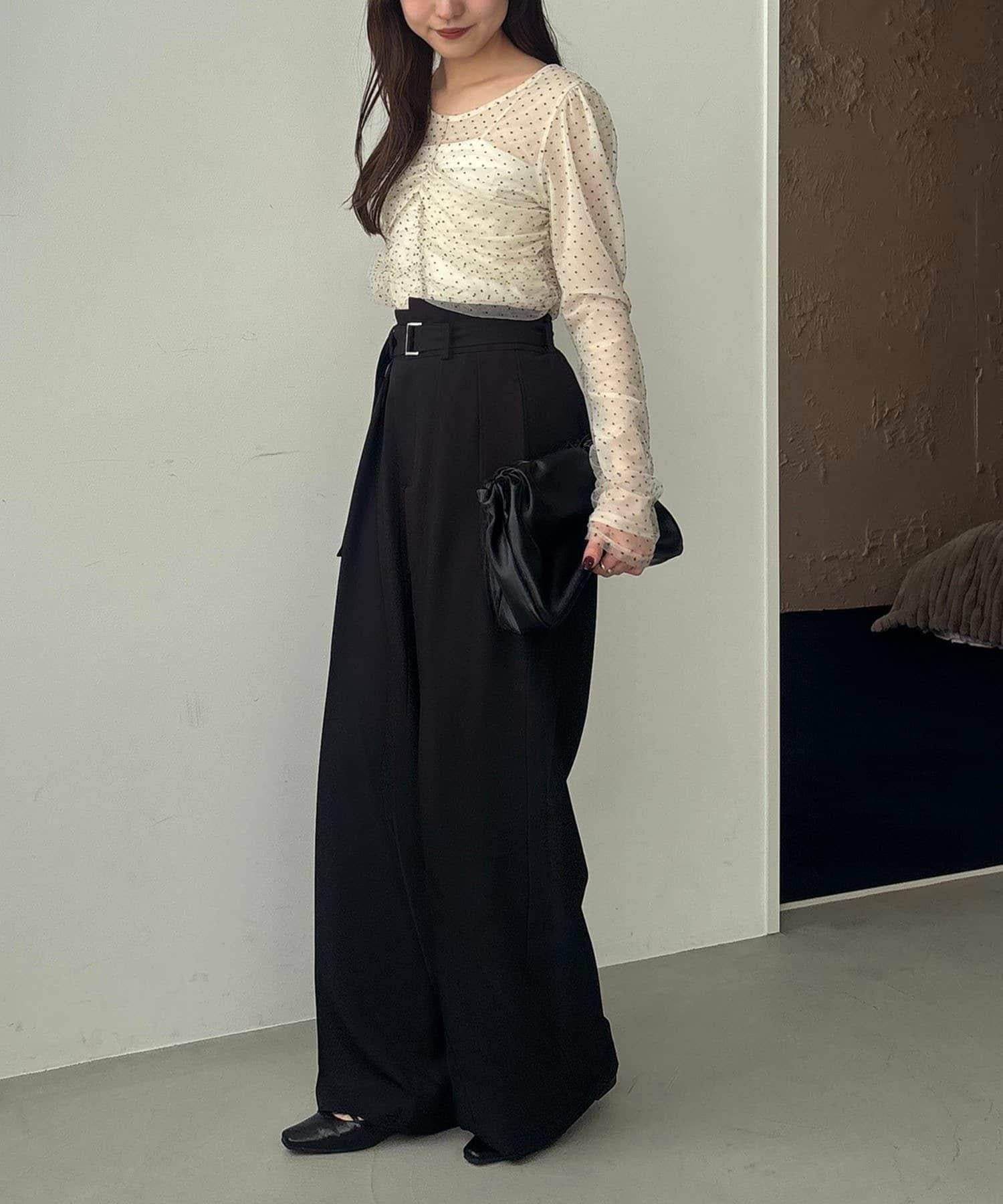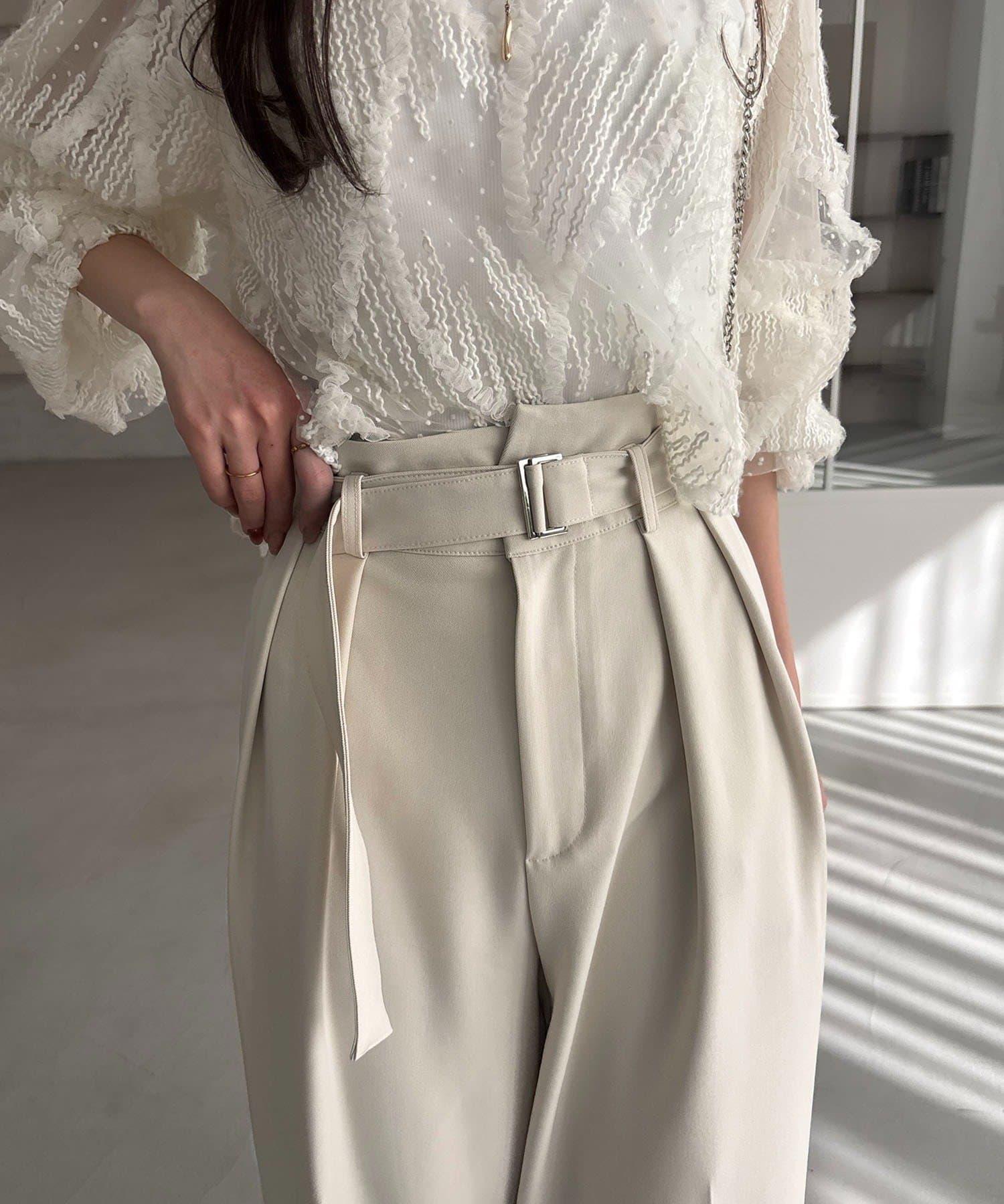 漂亮的廓形長褲,腰部設計。