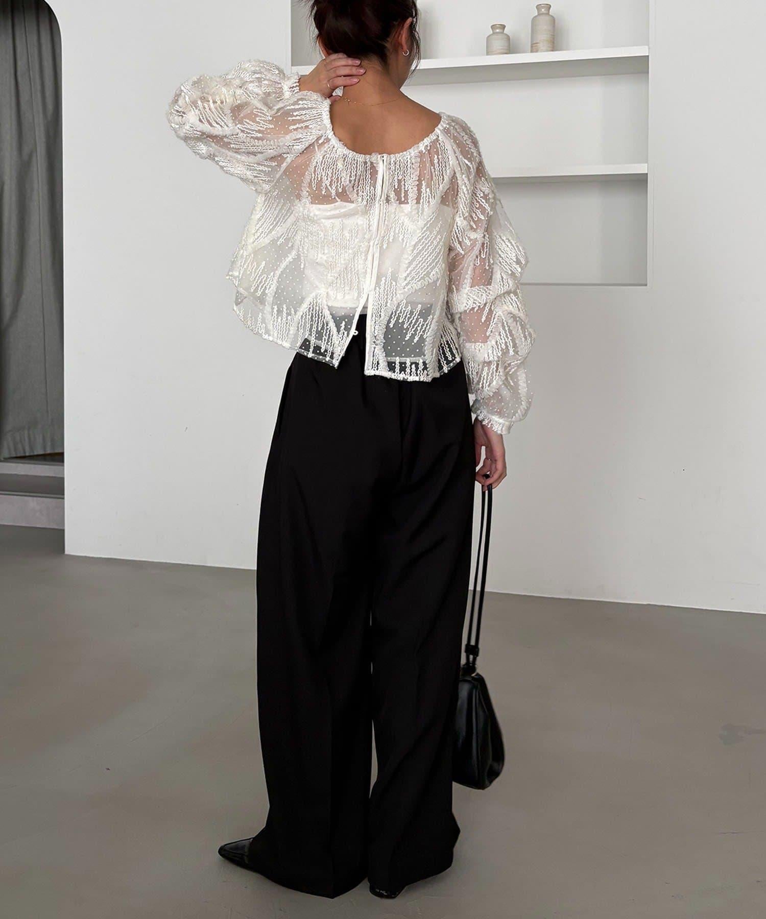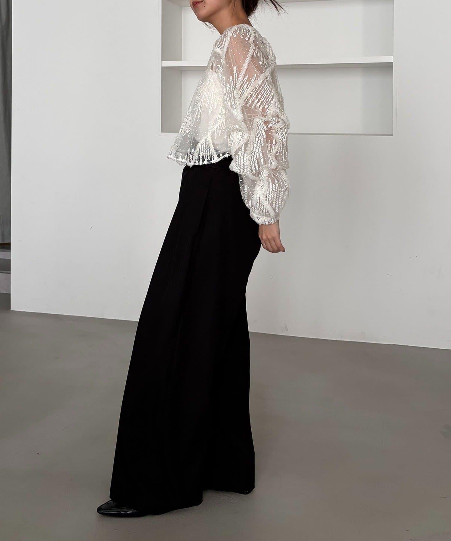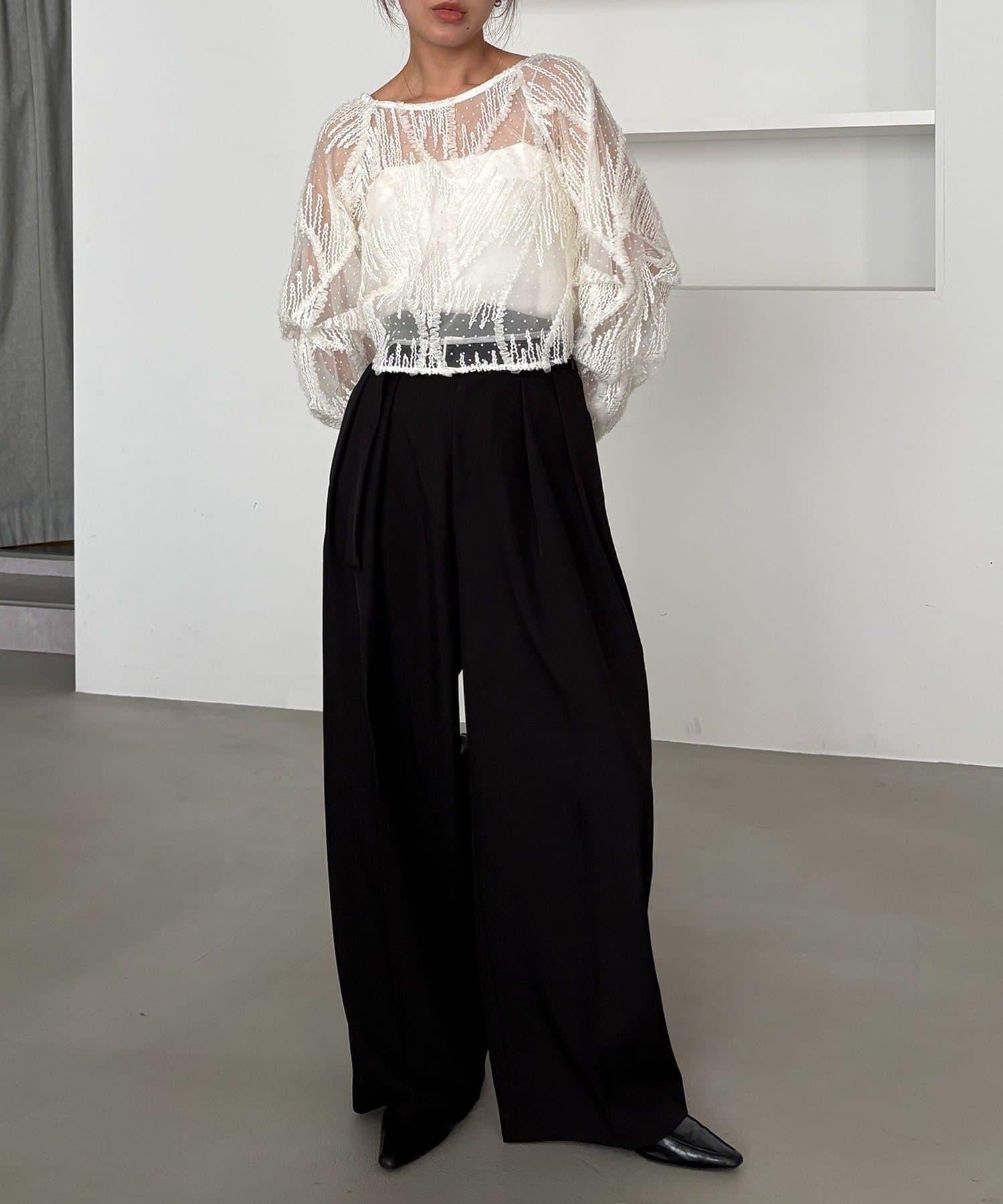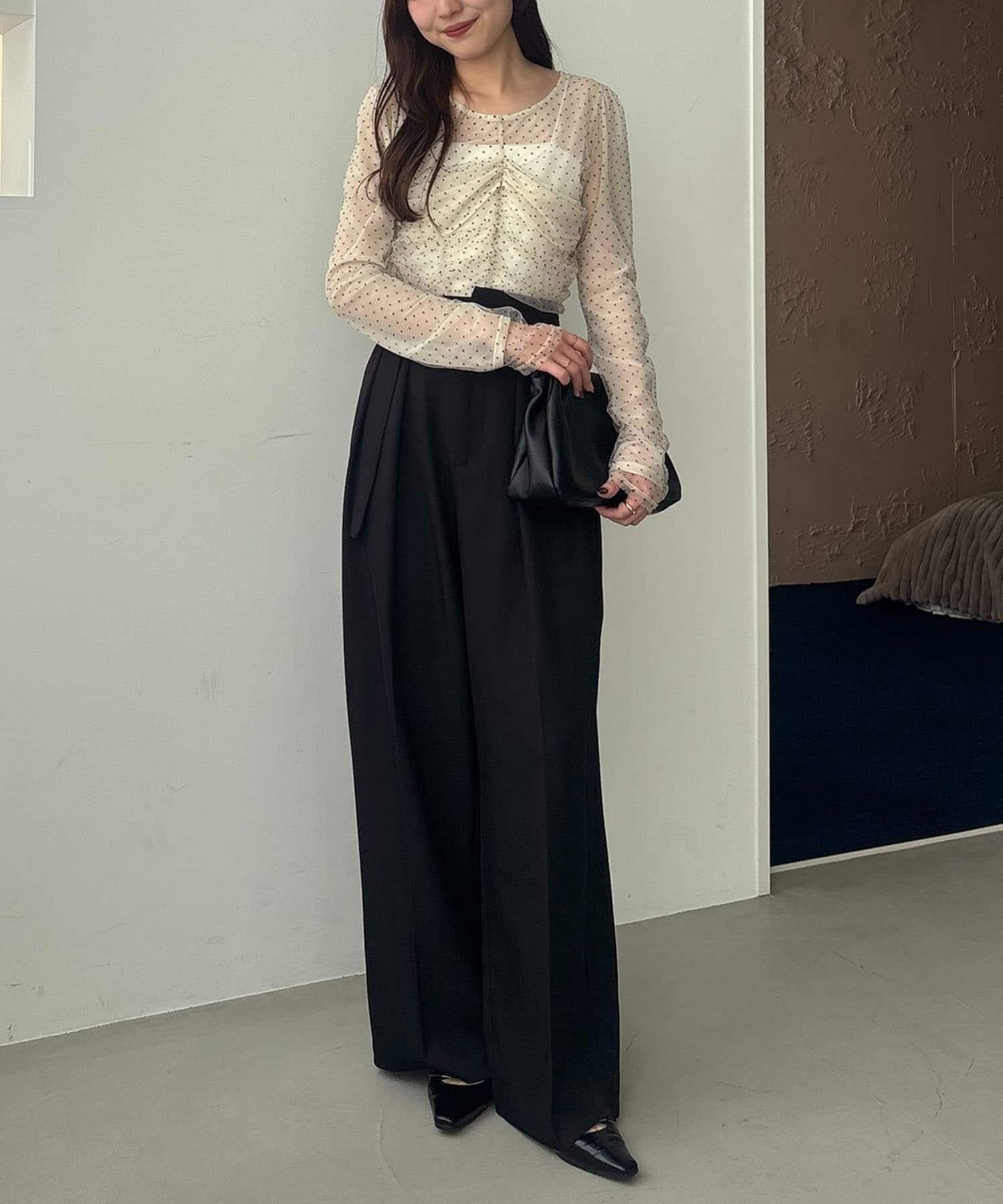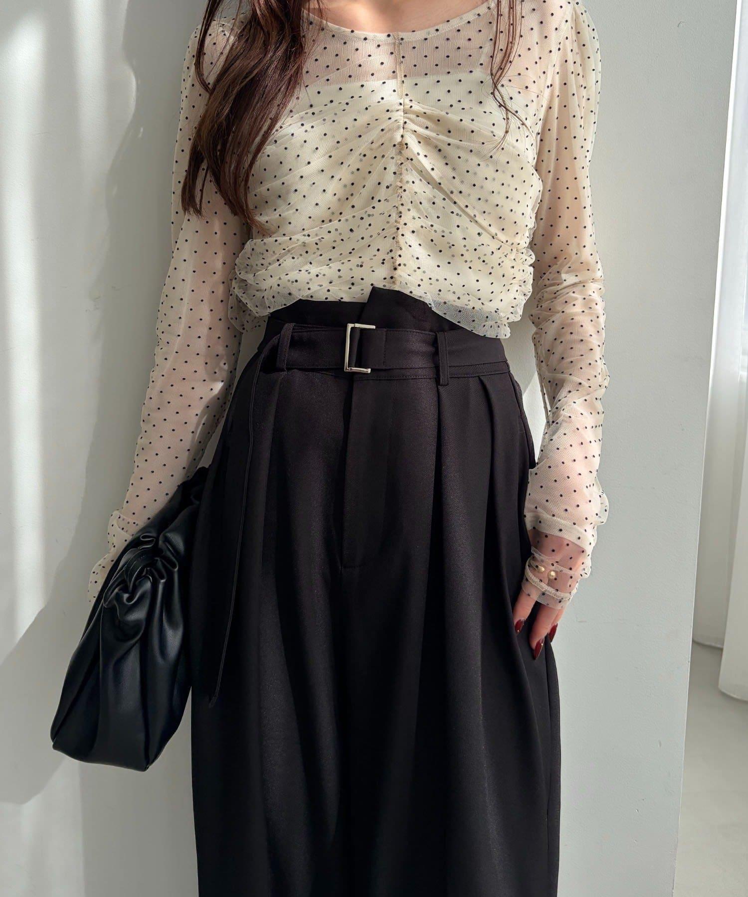 漂亮的廓形長褲,腰部設計。