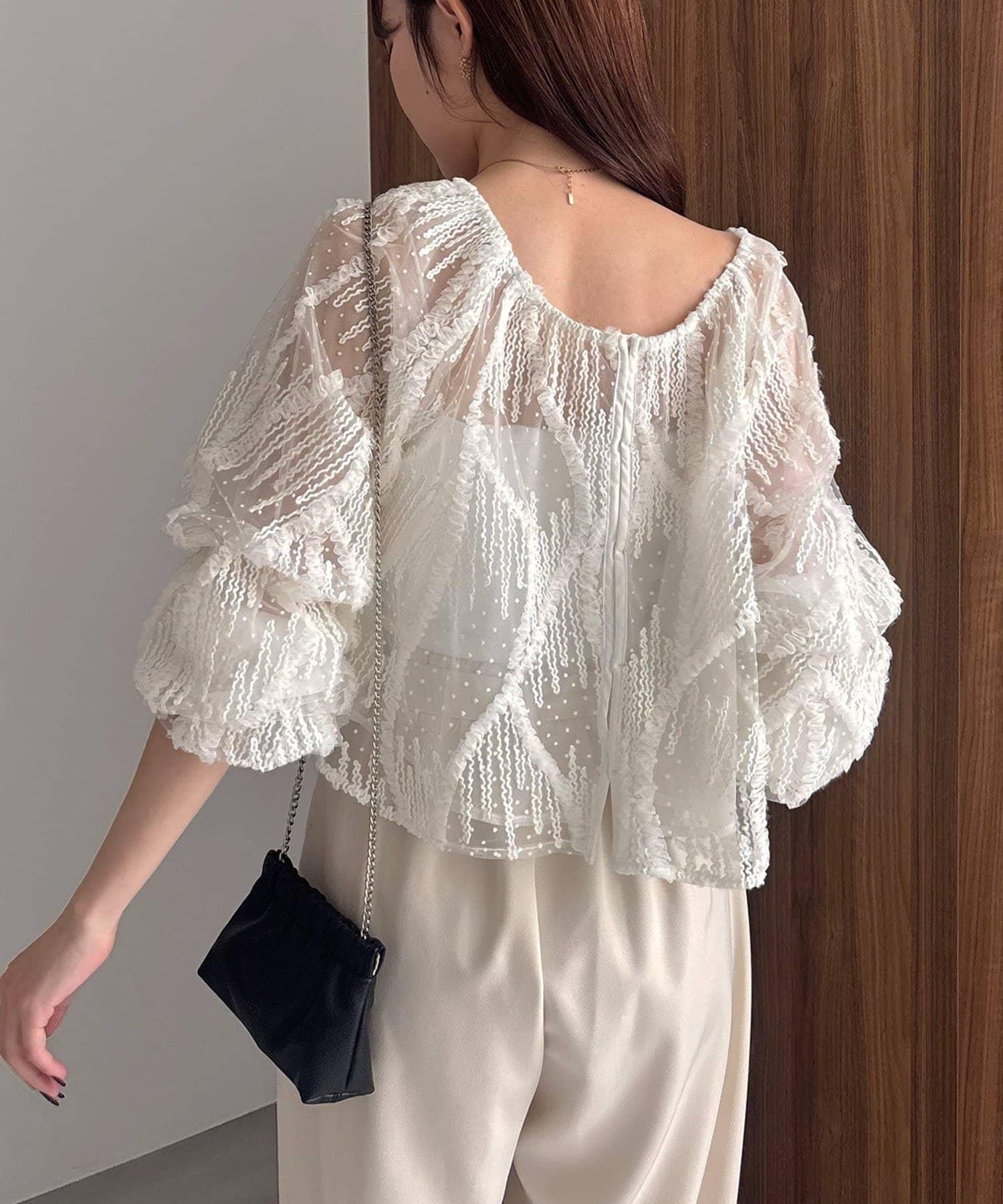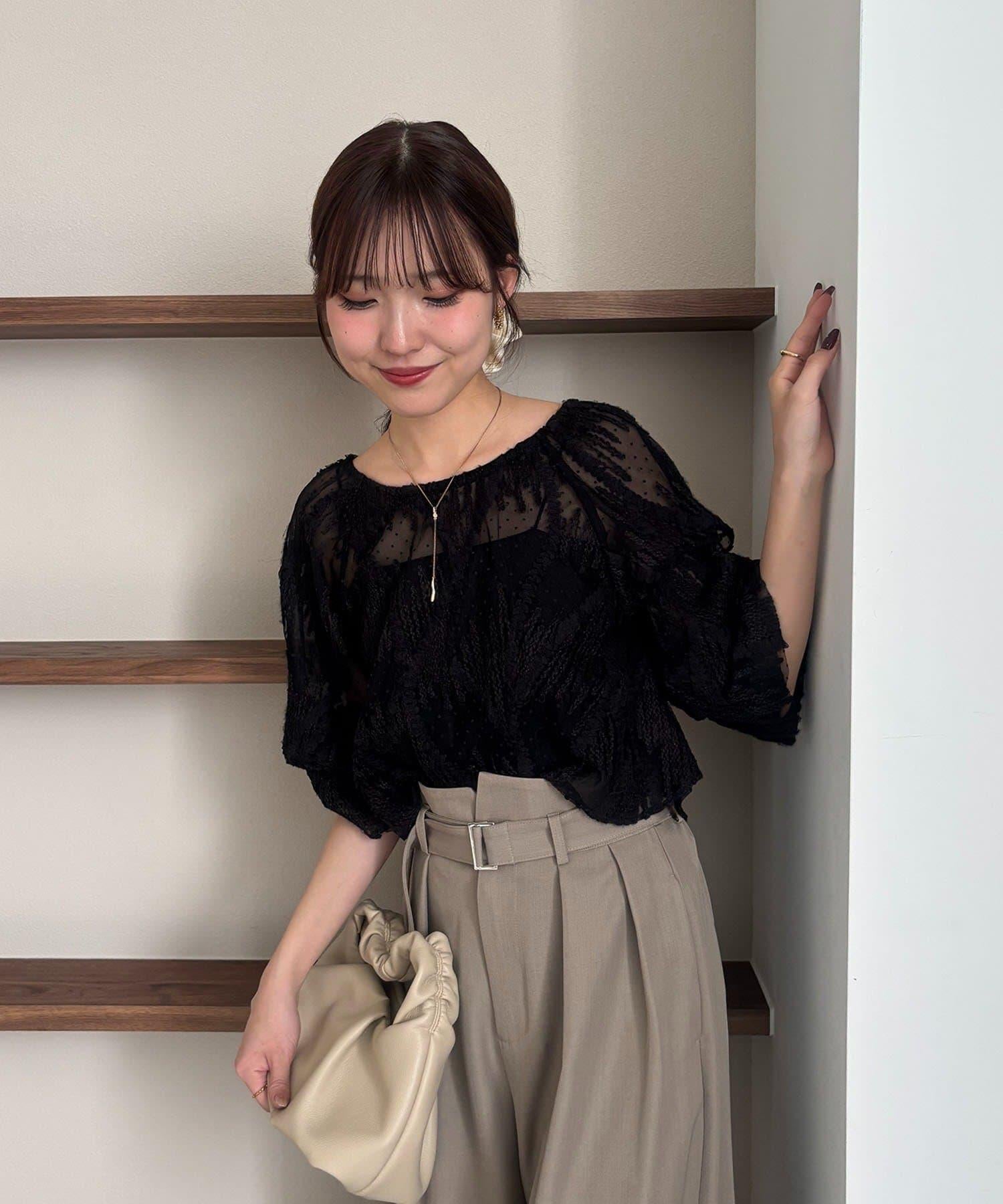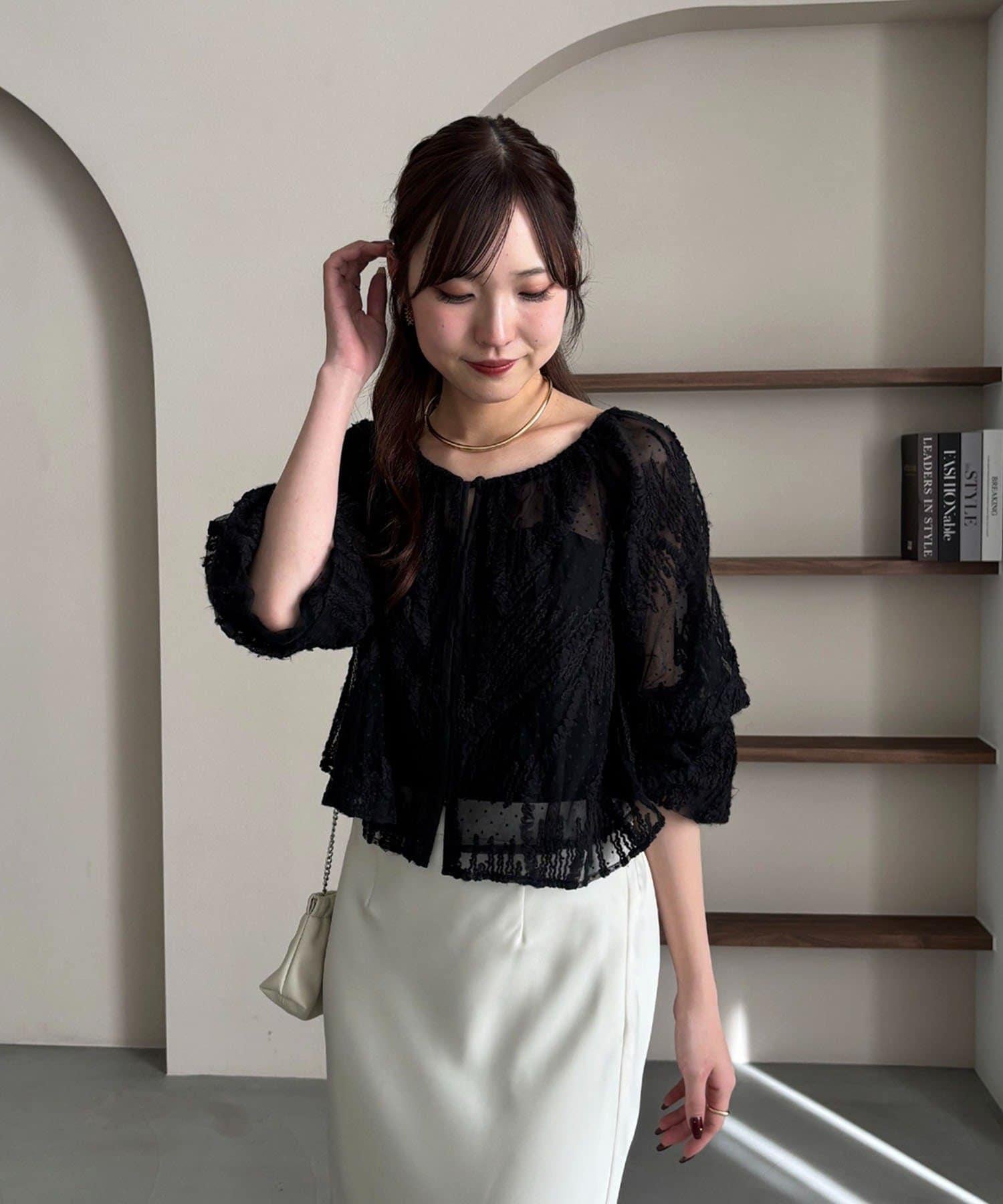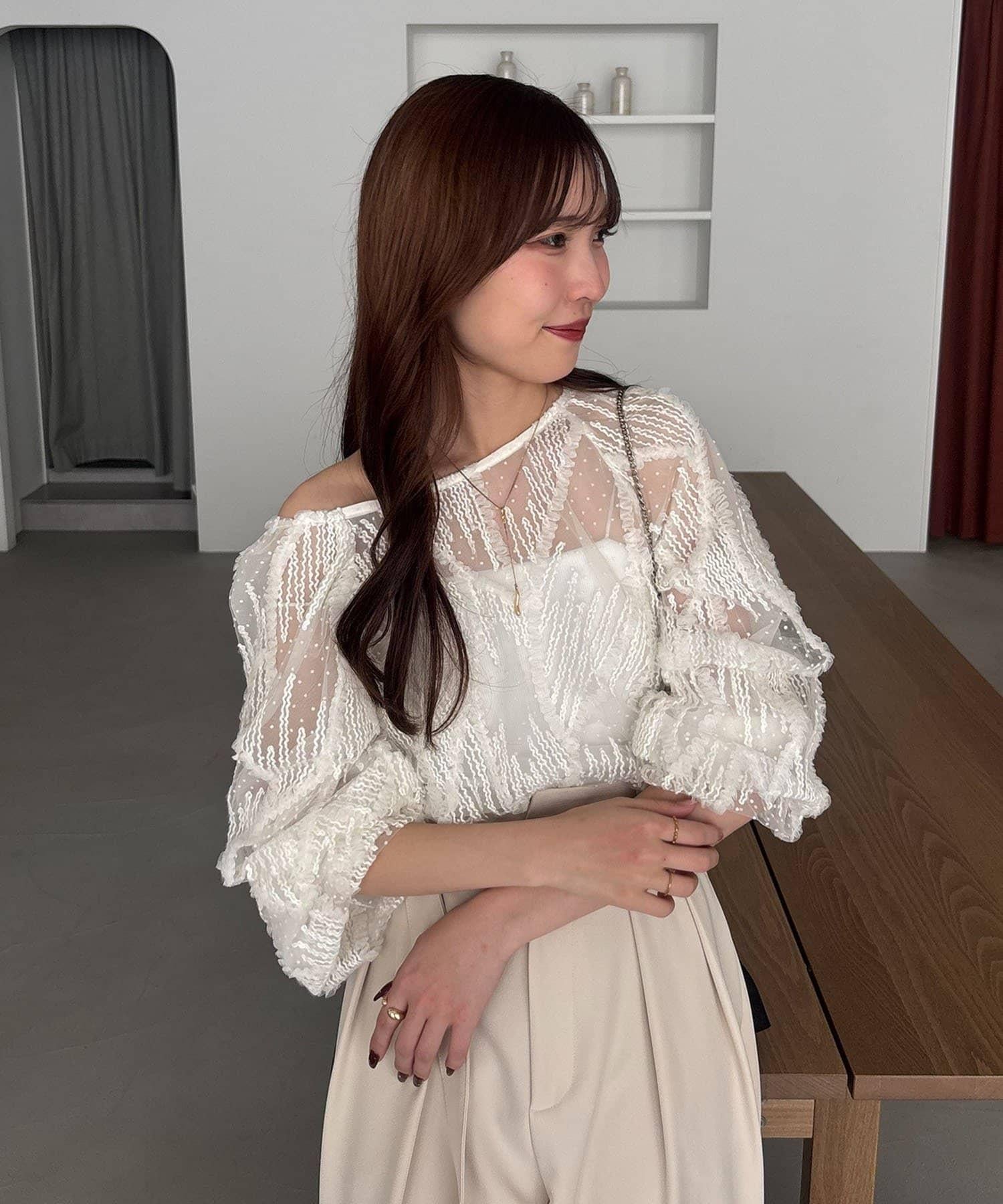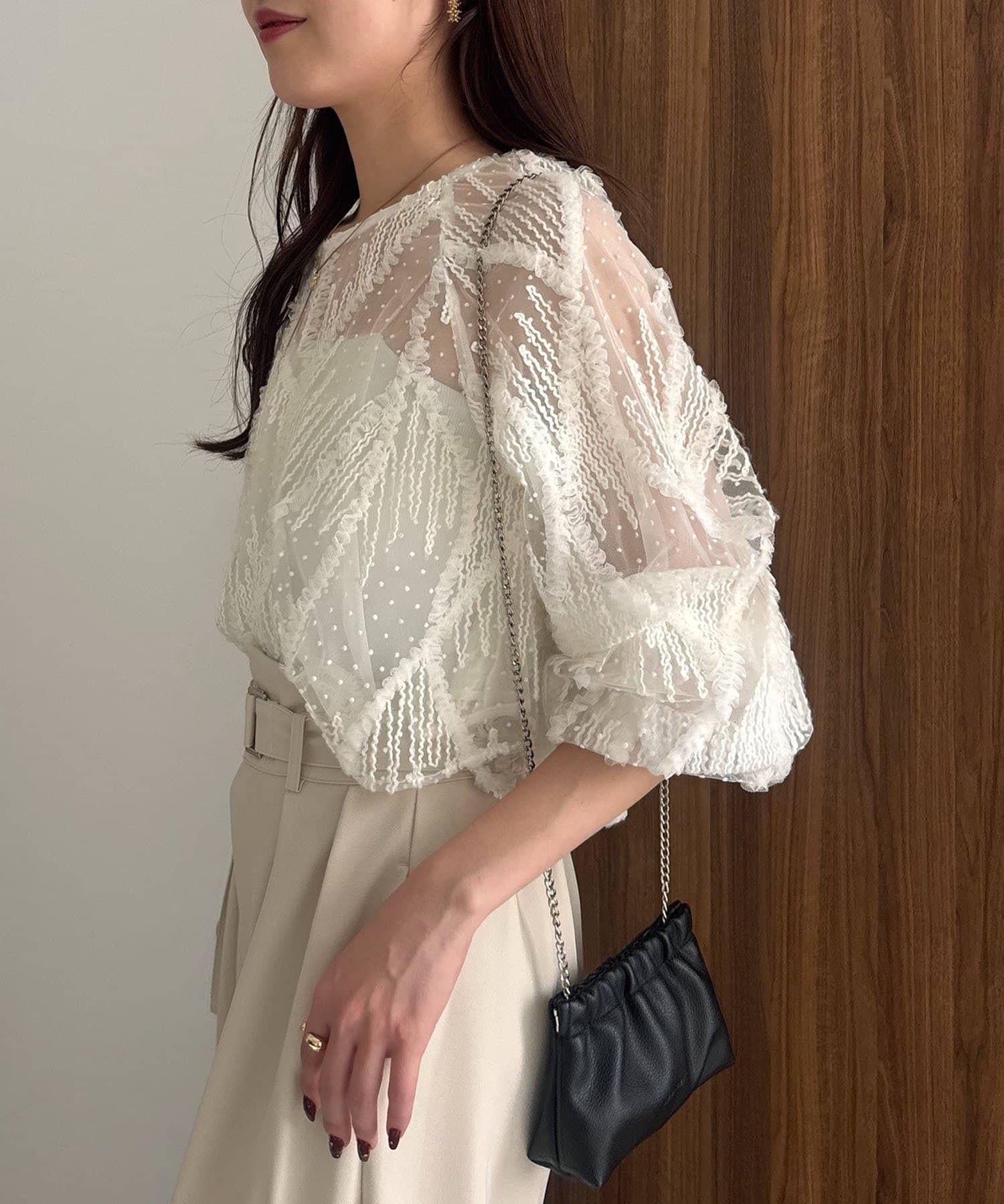 採用點線交織的精緻提花面料,是一款具有獨特表現力的上衣。