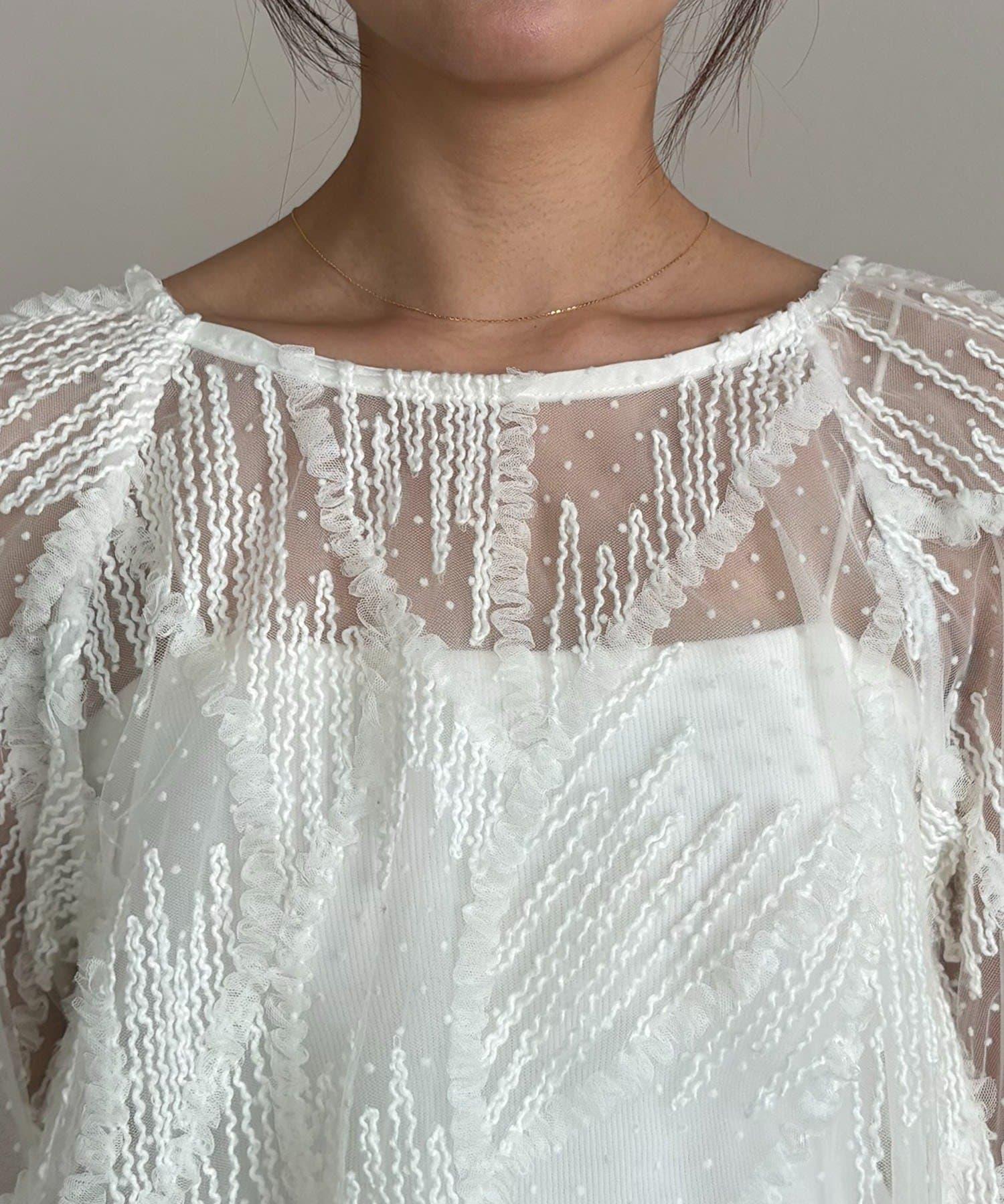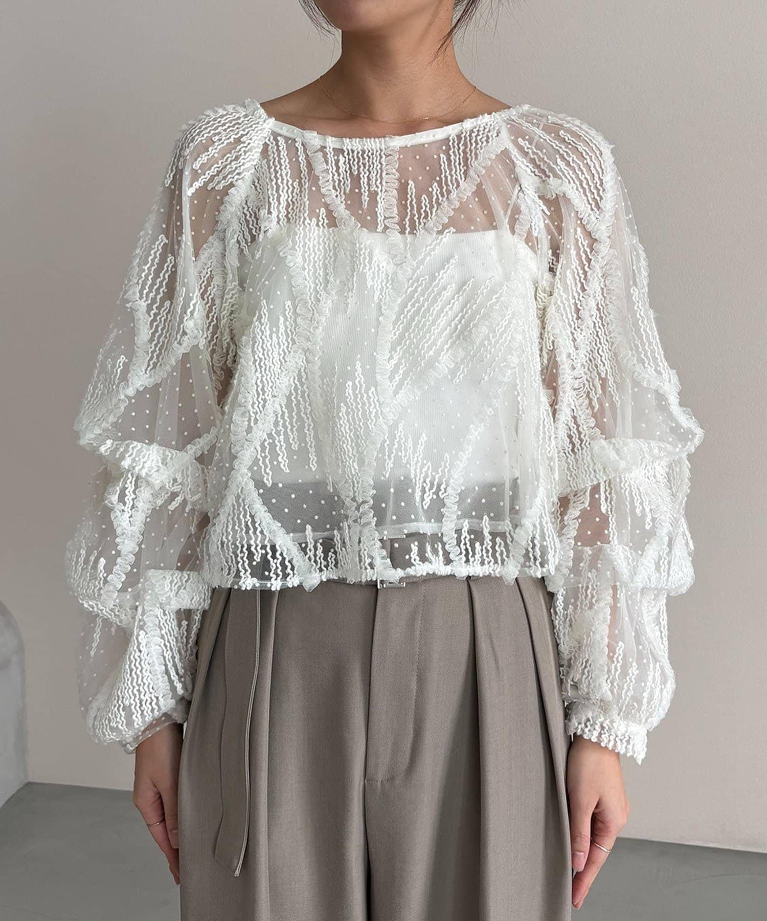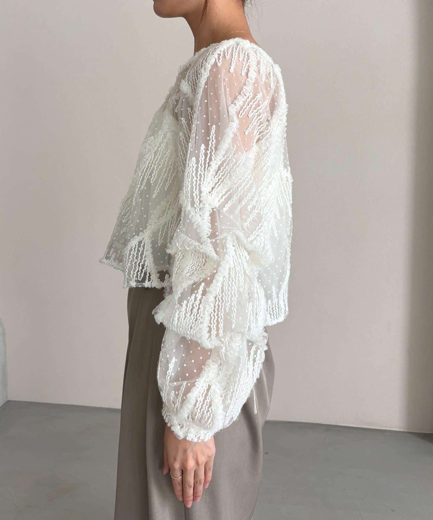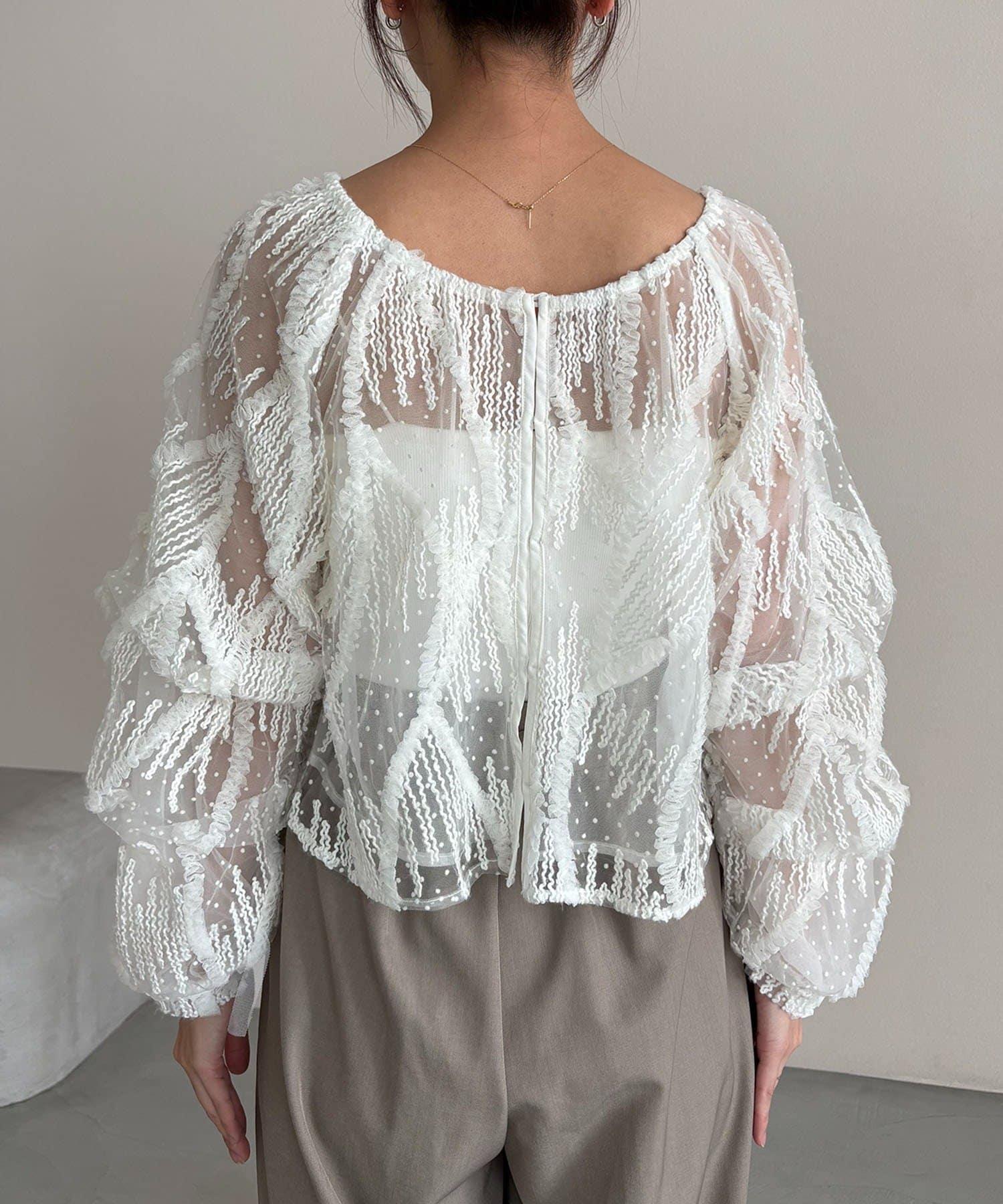 採用點線交織的精緻提花面料,是一款具有獨特表現力的上衣。